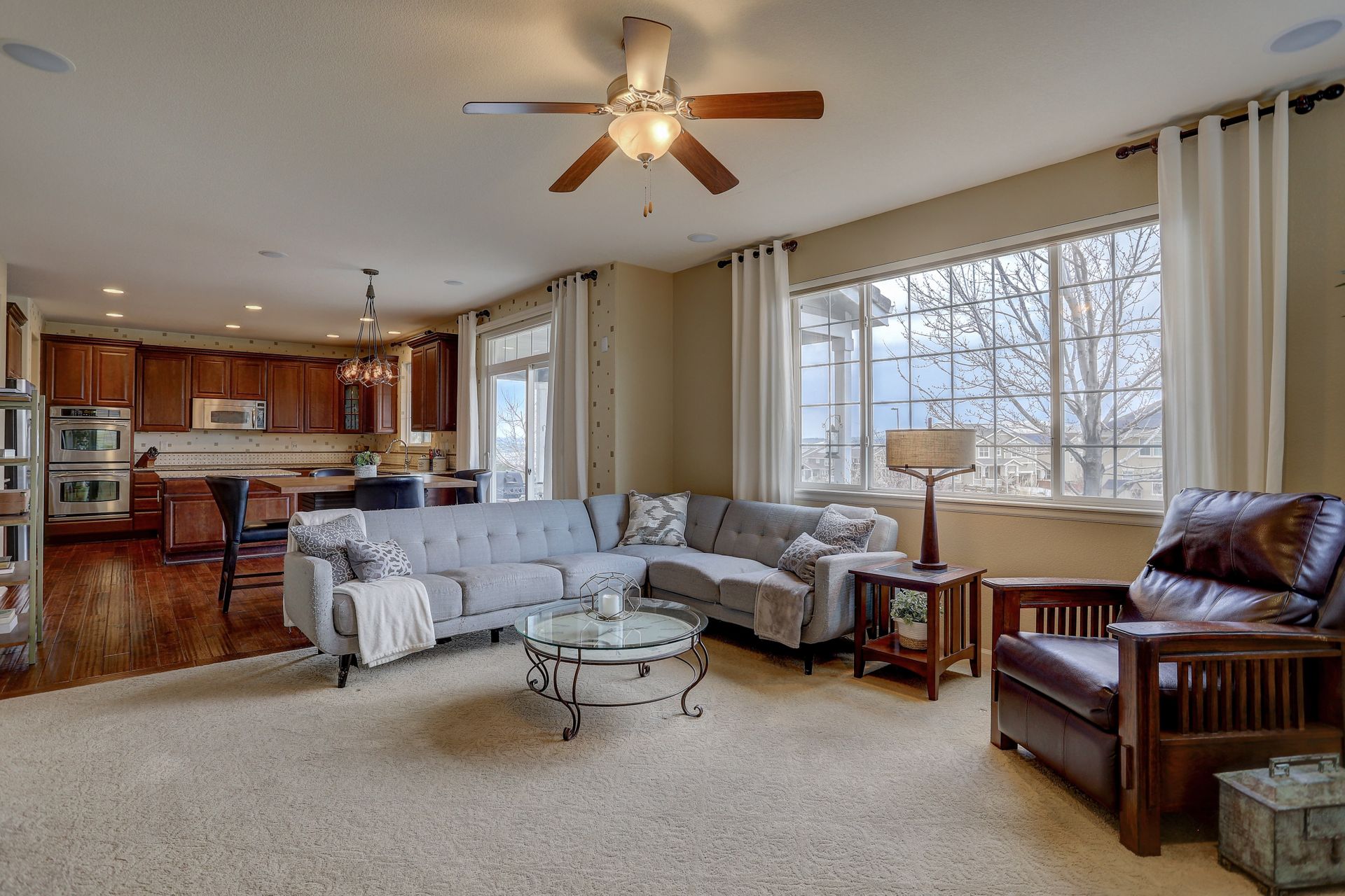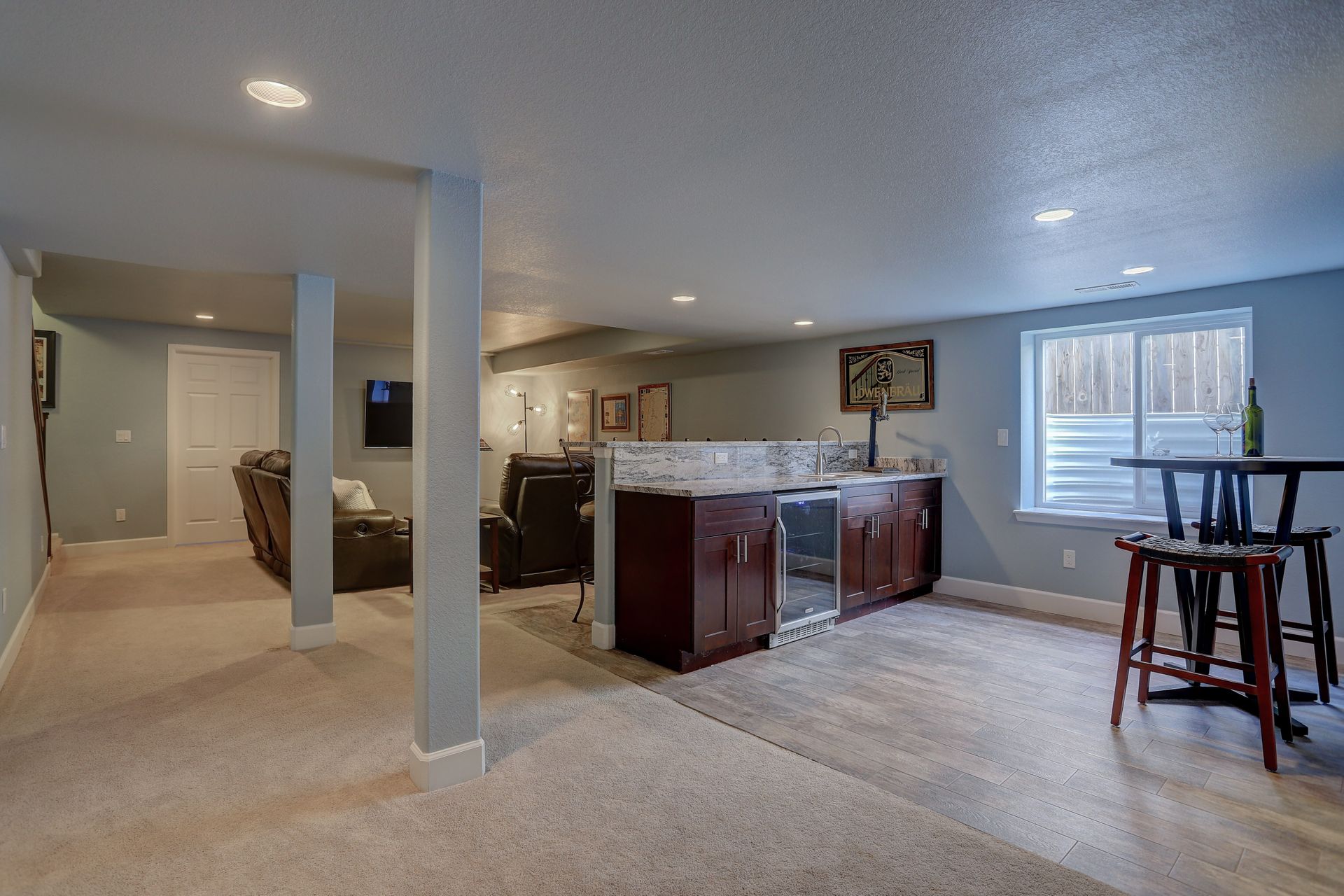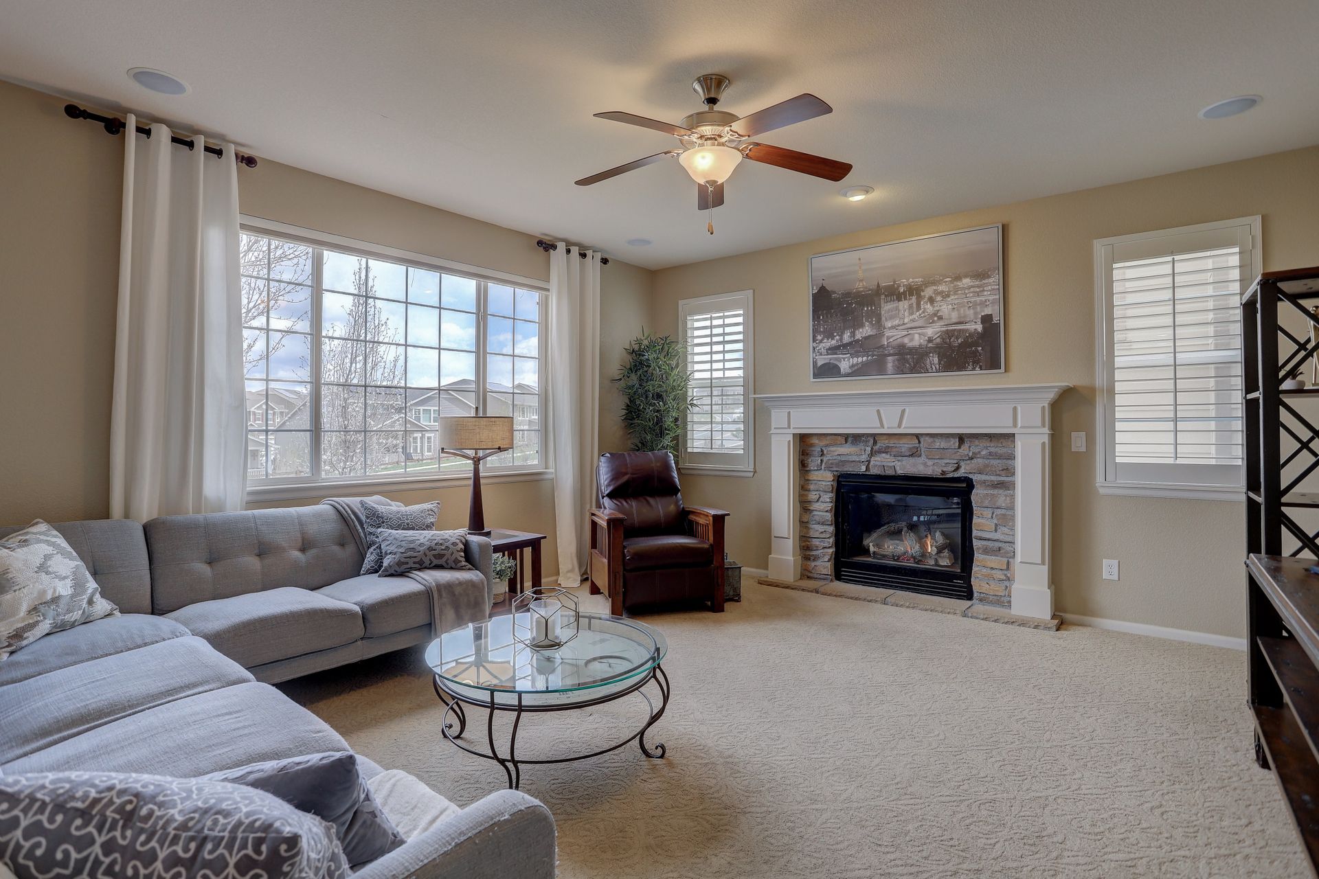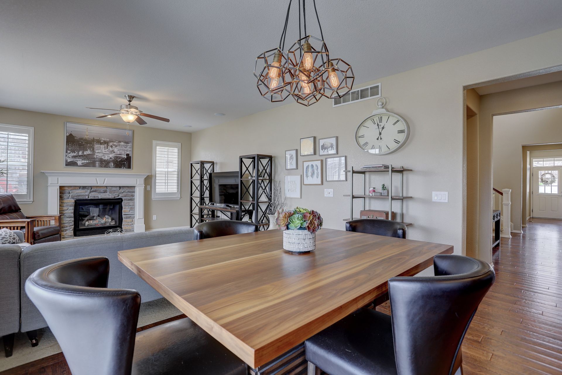 This dazzling home in The Meadows greets you with a charming, covered front porch, designer upgrades, hand-scraped wood floors throughout the main level and an open floor plan. Host dinners in style in this formal dining room featuring a tray ceiling with crown molding, a large bay window and a butler’s pantry that offers a sink, wine storage, walk-in pantry and beverage fridge. The chef’s kitchen features 42-inch cherry cabinets, double ovens, an oversized center island, slab granite and a casual dining area that flows out to the covered back patio. This home features an A-Bus home audio system with speakers and controls in the family room, breakfast area, dining room, office and primary bedroom. Your new home office boasts glass French doors and an entire wall of built-in bookshelves. The upper level offers three bedrooms and a full bathroom along with the primary suite. The primary bedroom has tray ceilings with crown molding and a five-piece en-suite bathroom with soaking tub and glass-enclosed Euro shower with rainfall head accented with marble tile. The basement is ideal for entertaining with a large wet bar with a beverage fridge. Enjoy watching movies or gaming in the comfy recreation room. Your guests will love the luxury of the private fifth bedroom and three-quarter bathroom. There is also a large unfinished room (18.5-foot by 15.5-foot) just waiting to be another bedroom, an exercise room, wine cellar or whatever else you can dream of. You will enjoy sitting around the fire pit or dining under the covered patio in this low-maintenance yard. The park across the street is only the beginning of the amenities you will enjoy in The Meadows. This community offers parks, a pool, trails, community space and events. The Outlets and Promenade at Castle Rock provide all the shopping and restaurants you could wish for. Centrally located between Colorado Springs and Denver makes for a fast commute and quick access to all the recreation the front range provides.