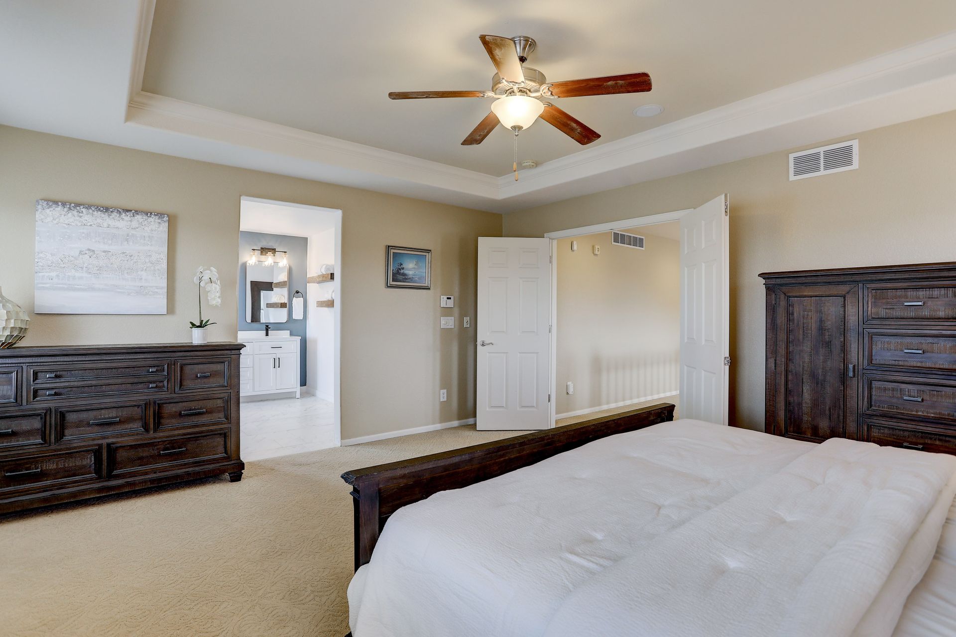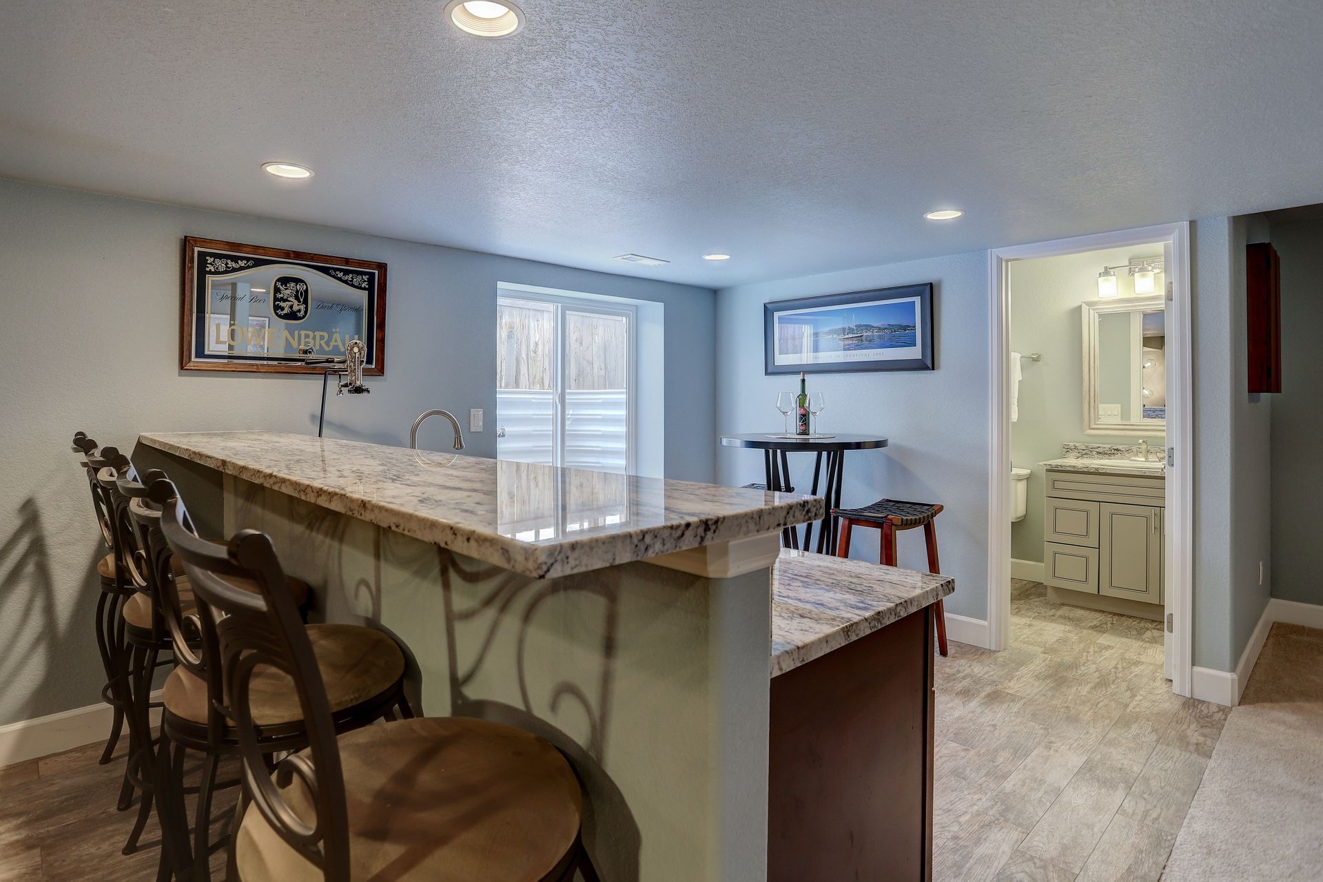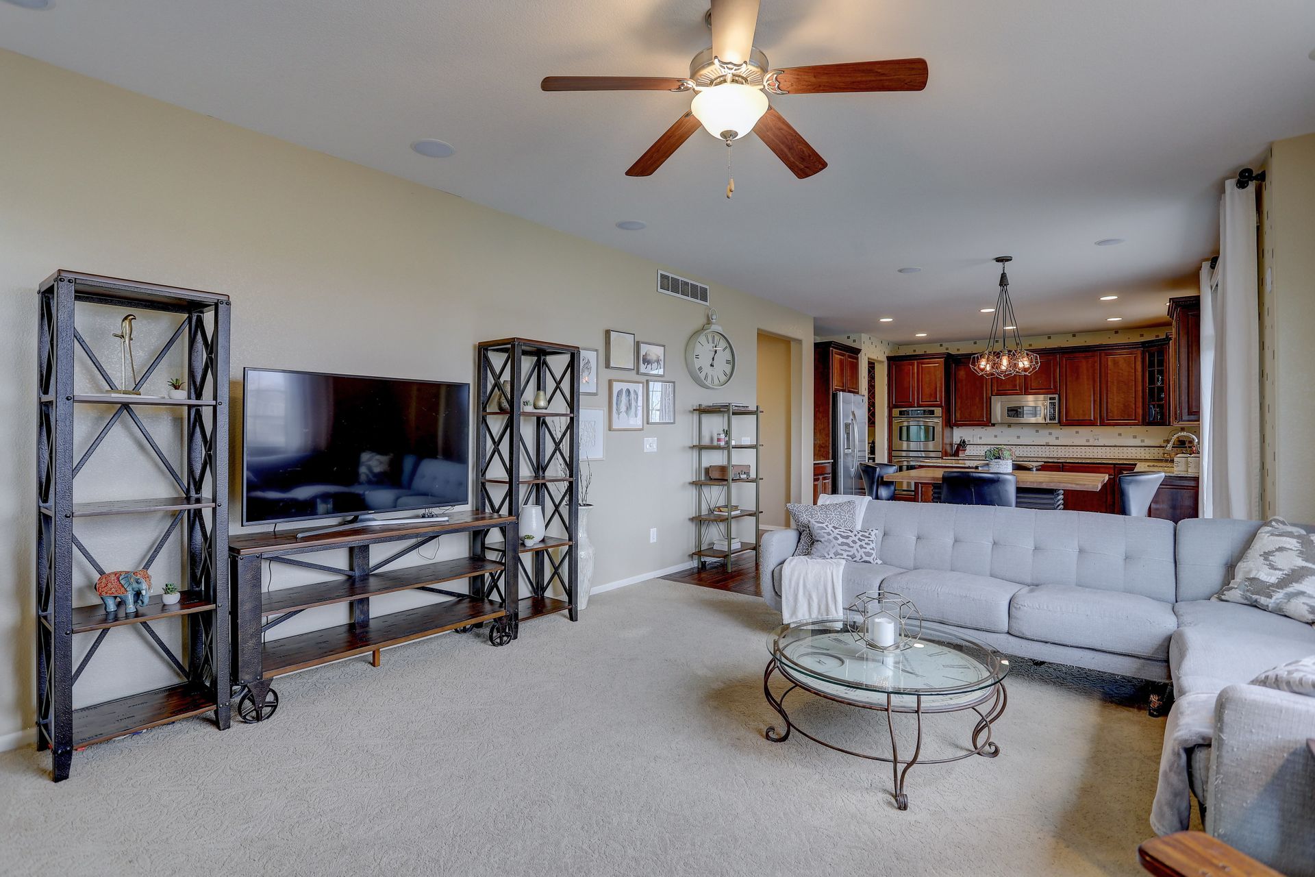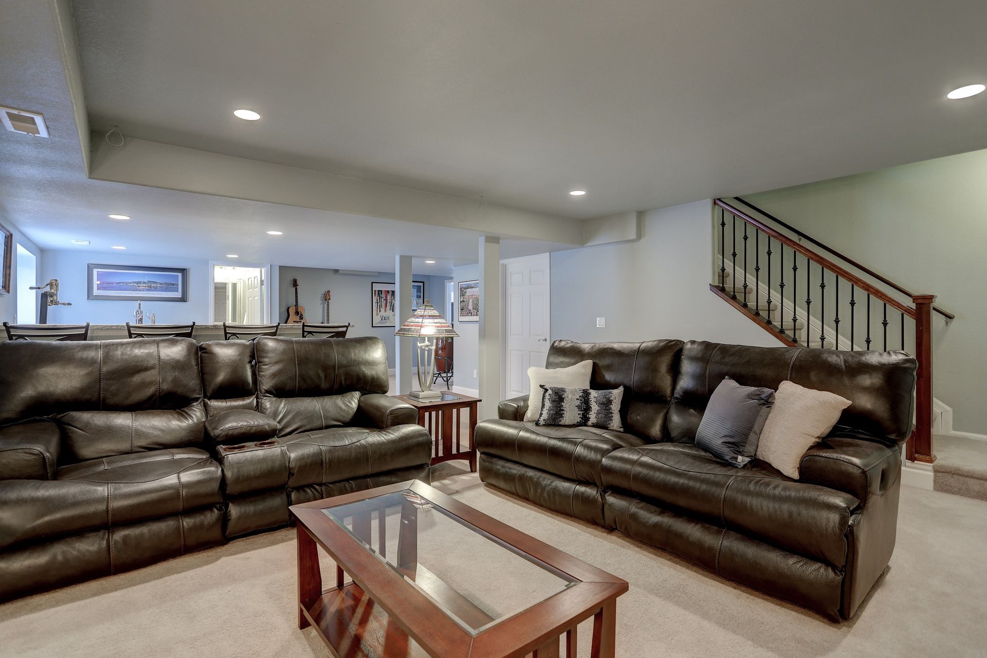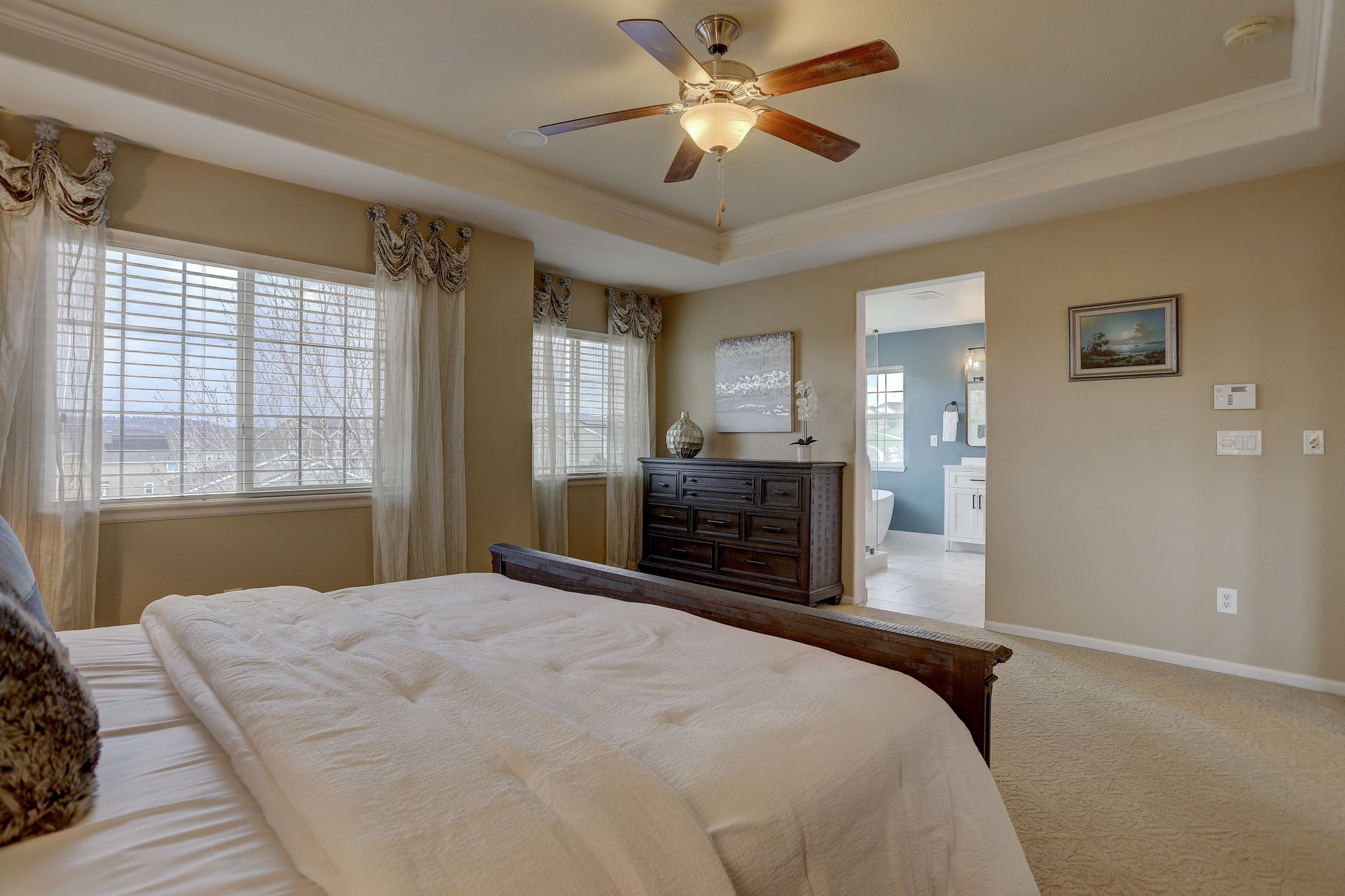 This dazzling home in The Meadows greets you with a charming, covered front porch, designer upgrades, hand-scraped wood floors throughout the main level and an open floor plan. Host dinners in style in this formal dining room featuring a tray ceiling with crown molding, a large bay window and a butler’s pantry that offers a sink, wine storage, walk-in pantry and beverage fridge. The chef’s kitchen features 42-inch cherry cabinets, double ovens, an oversized center island, slab granite and a casual dining area that flows out to the covered back patio. This home features an A-Bus home audio system with speakers and controls in the family room, breakfast area, dining room, office and primary bedroom. Your new home office boasts glass French doors and an entire wall of built-in bookshelves. The upper level offers three bedrooms and a full bathroom along with the primary suite. The primary bedroom has tray ceilings with crown molding and a five-piece en-suite bathroom with soaking tub and glass-enclosed Euro shower with rainfall head accented with marble tile. The basement is ideal for entertaining with a large wet bar with a beverage fridge. Enjoy watching movies or gaming in the comfy recreation room. Your guests will love the luxury of the private fifth bedroom and three-quarter bathroom. There is also a large unfinished room (18.5-foot by 15.5-foot) just waiting to be another bedroom, an exercise room, wine cellar or whatever else you can dream of. You will enjoy sitting around the fire pit or dining under the covered patio in this low-maintenance yard. The park across the street is only the beginning of the amenities you will enjoy in The Meadows. This community offers parks, a pool, trails, community space and events. The Outlets and Promenade at Castle Rock provide all the shopping and restaurants you could wish for. Centrally located between Colorado Springs and Denver makes for a fast commute and quick access to all the recreation the front range provides.