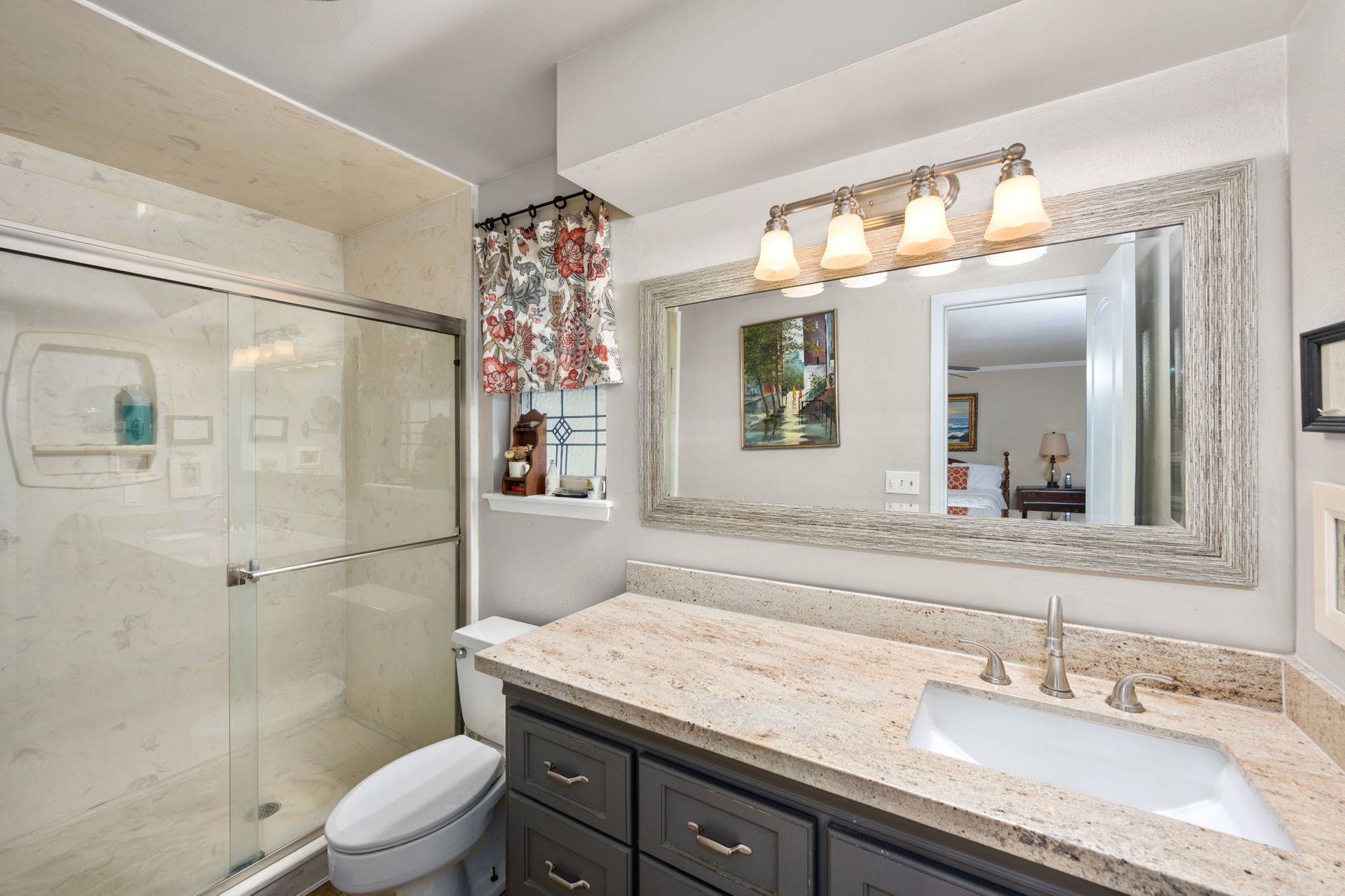 Unique property in old Katy. Lovely three bedroom, three and one half bath home on oversized 7/10 acre lot. Garage parking for four cars - one attached two car garage + additional two car detached garage. This lot has room to park your boat or RV as well. Mature trees shade the beautiful yard front and back. Large screened porch provide views of the backyard and opens off the living/breakfast area. Air-conditioned shed in the backyard is being used as a hobby/craft area - could be a great Man-Cave/She-Shed. Living room has fireplace, built-ins and is adjacent to breakfast/kitchen area. Formal dining has been converted to a home office and formal living room is now the dining room. Plenty of options for you to utilize the space to best suit your needs. Home boasts large closets with built-ins throughout. Updates to kitchens and baths. Each bedroom has its own ensuite bath. Recent roof. Large utility room has extra storage. No MUD tax or HOA. Low city of Katy tax rate. Zoned to Katy High. Home has never flooded.