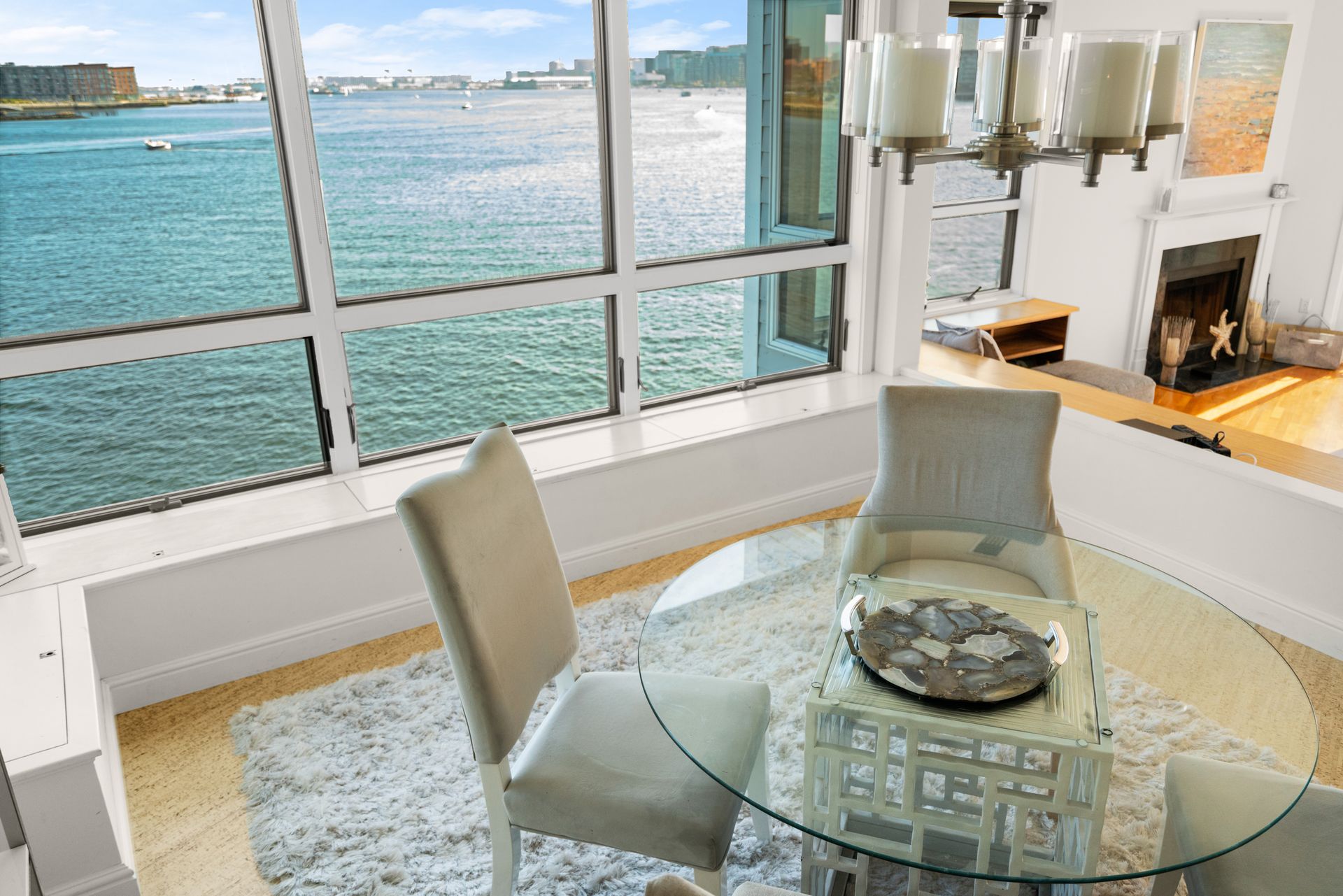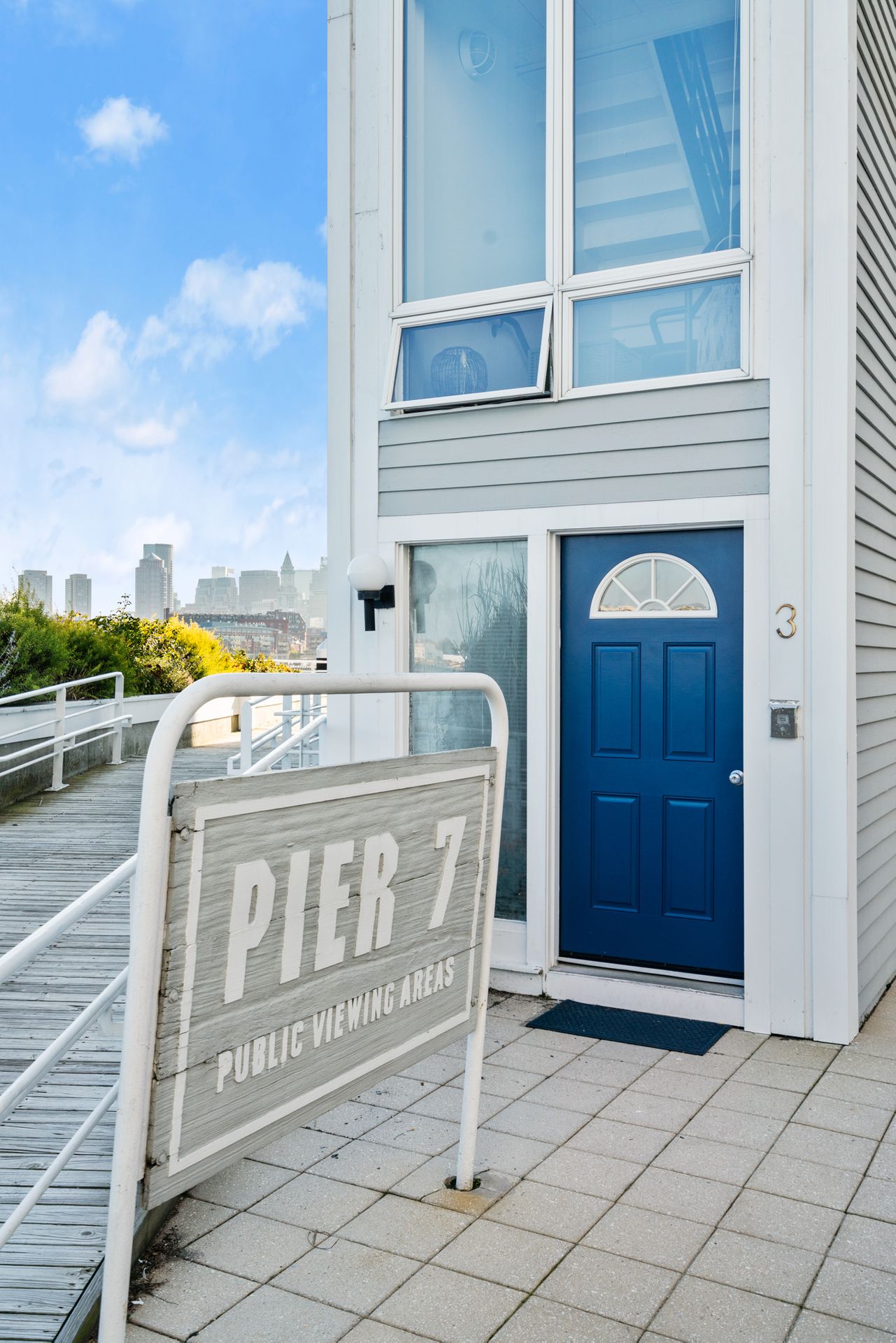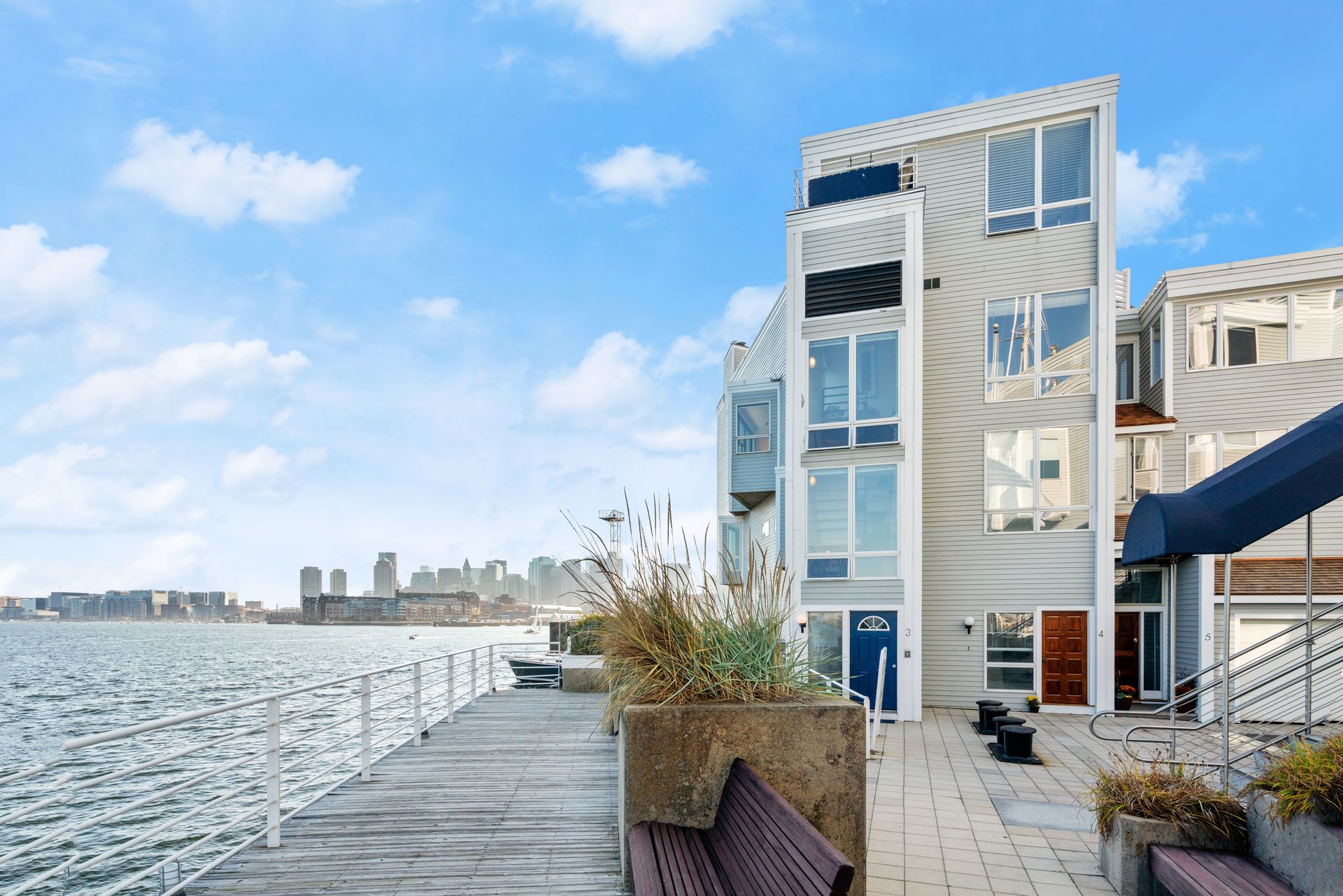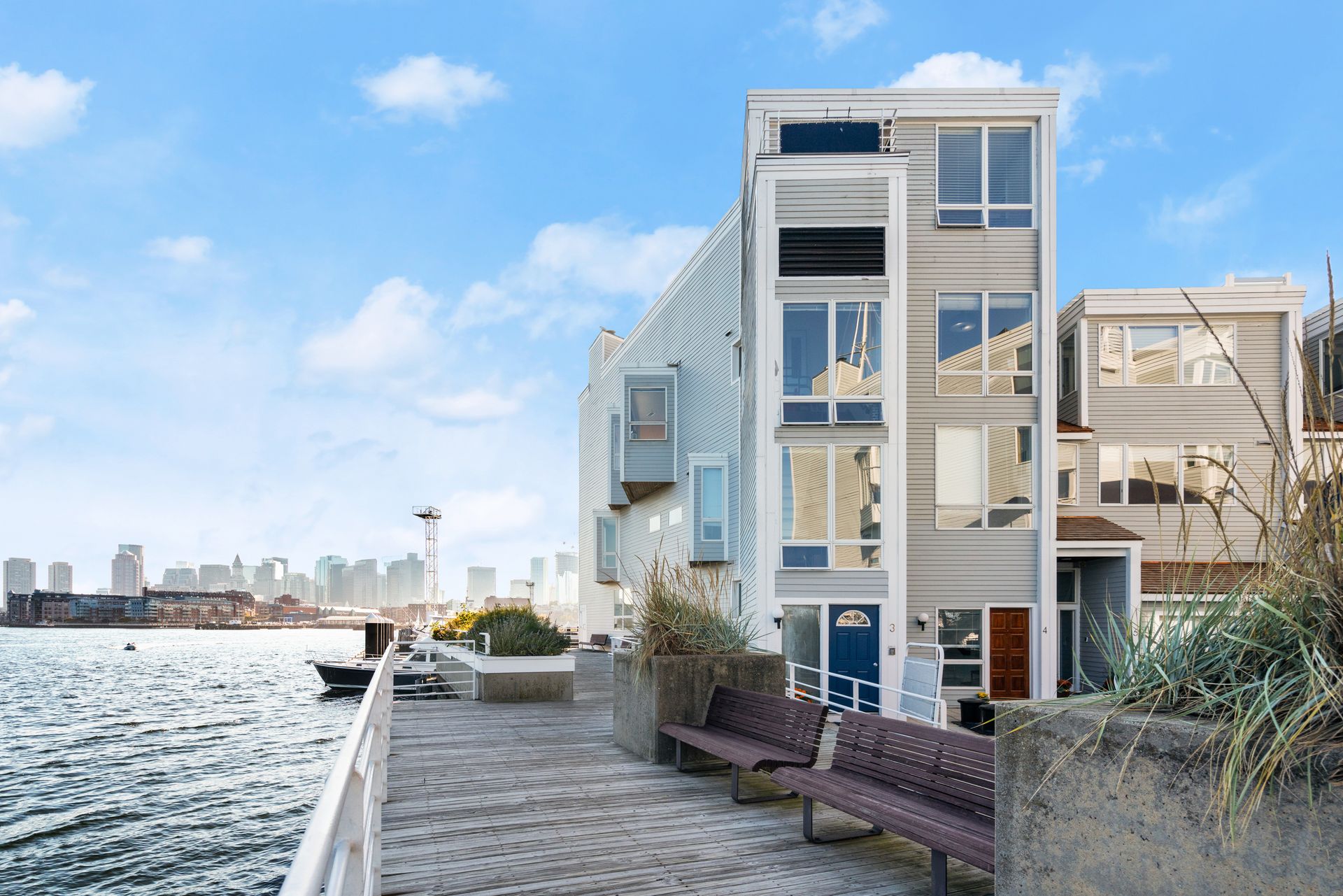 Look no further as you have arrived at the most magnificent home at the end of Pier 7 on Boston's waterfront. Enjoy living on Boston Harbor, with the likeness of living on a top deck of a luxury ship with unparalleled panoramic water views from every room of Boston Harbor and City of Boston, from the North End, Beacon Hill, Back Bay and Seaport on one side, to the airport and East Boston harborfront on the other. You would be hard pressed to find a better view anywhere in Boston! Enjoy having your own private entrance where you have the choice of taking the stairs for exercise or a PRIVATE ELEVATOR right to the third floor where you will be introduced to a modern kitchen with peninsula seating, formal dining room, sunken living room with wood burning fireplace- all leading you to a deck overlooking the Boston skyline. A second floor has two large bedrooms with adjoining baths and additional two decks with gorgeous views similar to being on a cruise ship. Park your boat right in front within full view of adjacent Charlestown Marina. Covered tandem parking. Secure gated community.