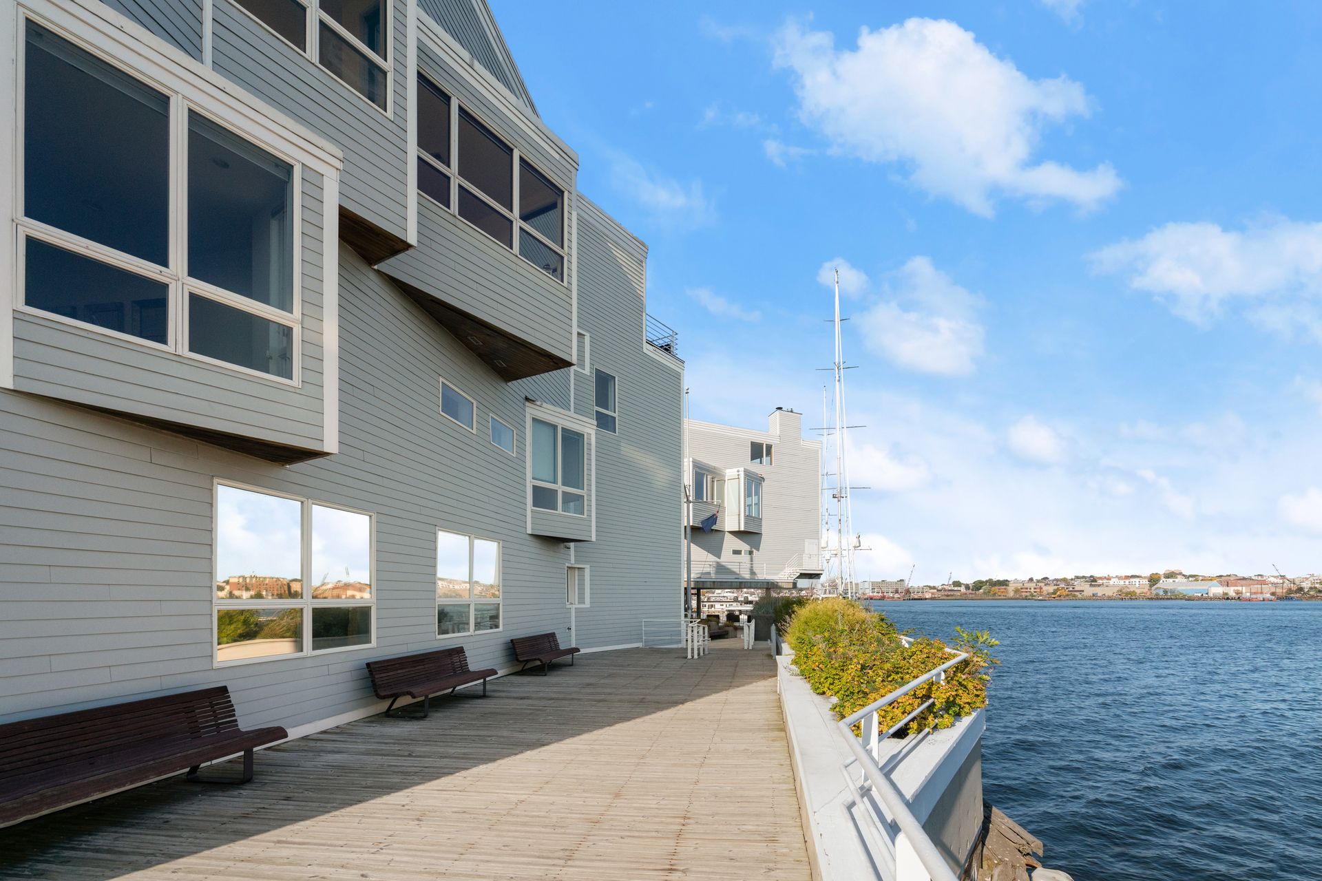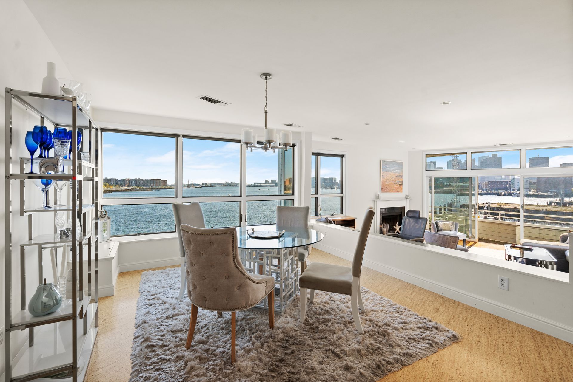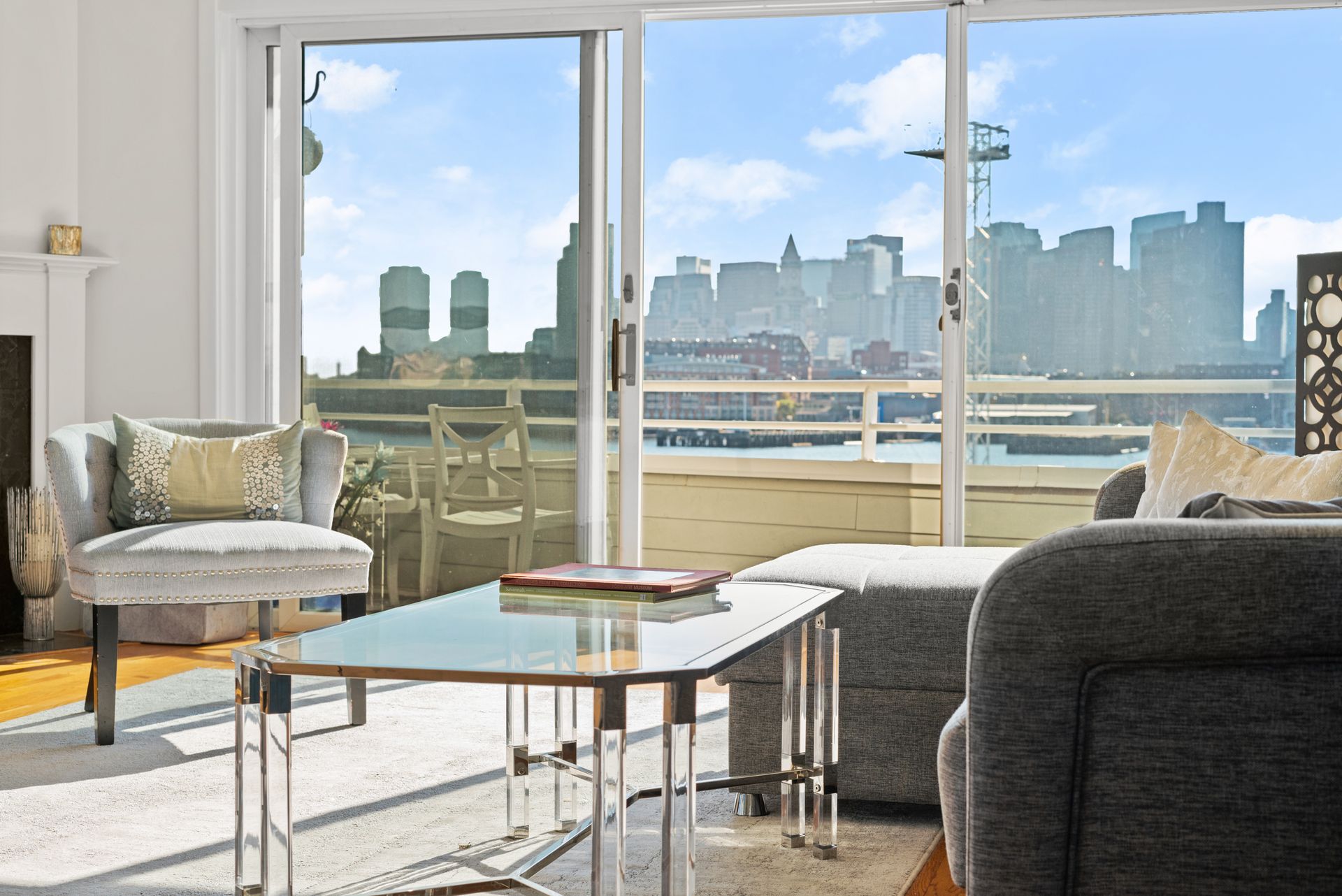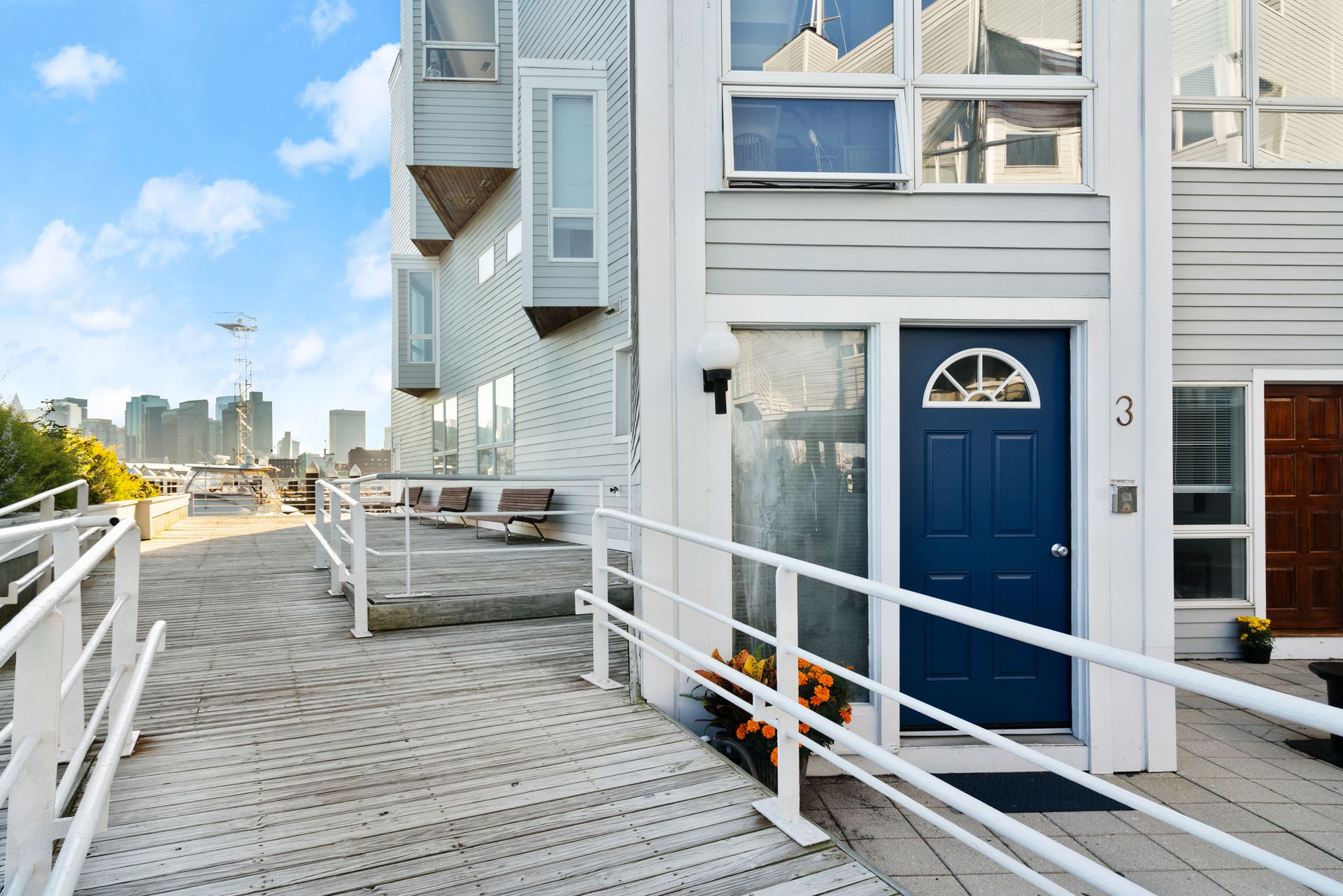 Look no further as you have arrived at the most magnificent home at the end of Pier 7 on Boston's waterfront. Enjoy living on Boston Harbor, with the likeness of living on a top deck of a luxury ship with unparalleled panoramic water views from every room of Boston Harbor and City of Boston, from the North End, Beacon Hill, Back Bay and Seaport on one side, to the airport and East Boston harborfront on the other. You would be hard pressed to find a better view anywhere in Boston! Enjoy having your own private entrance where you have the choice of taking the stairs for exercise or a PRIVATE ELEVATOR right to the third floor where you will be introduced to a modern kitchen with peninsula seating, formal dining room, sunken living room with wood burning fireplace- all leading you to a deck overlooking the Boston skyline. A second floor has two large bedrooms with adjoining baths and additional two decks with gorgeous views similar to being on a cruise ship. Park your boat right in front within full view of adjacent Charlestown Marina. Covered tandem parking. Secure gated community.