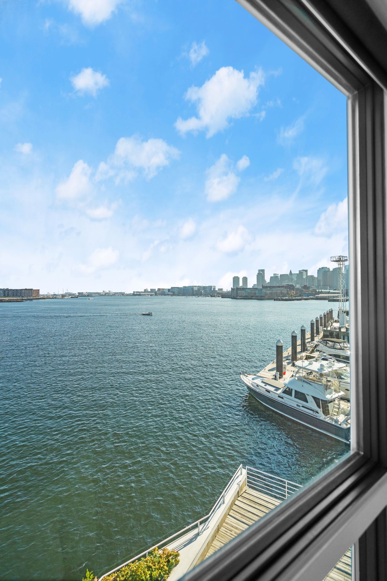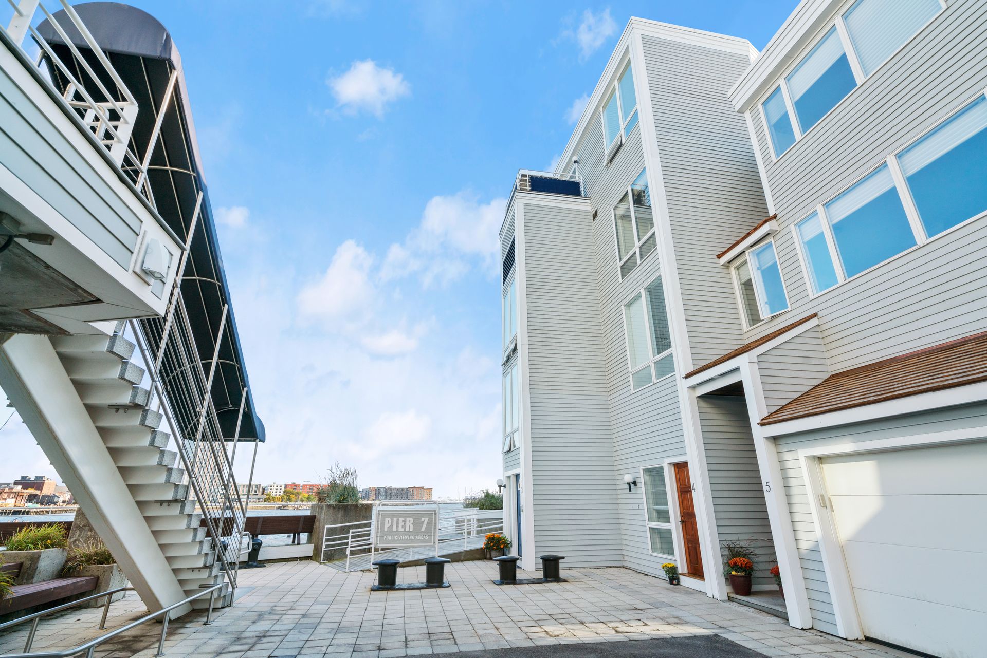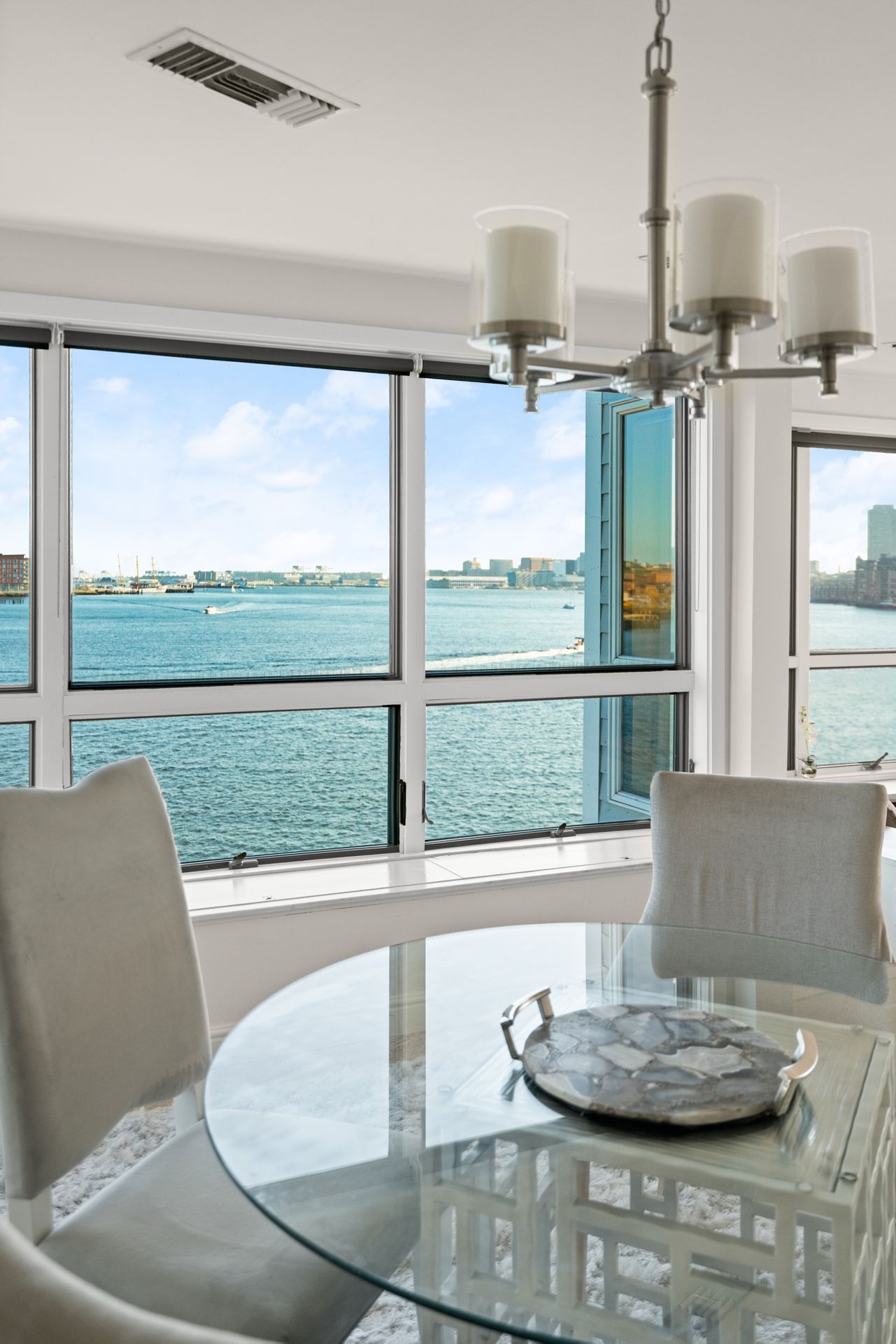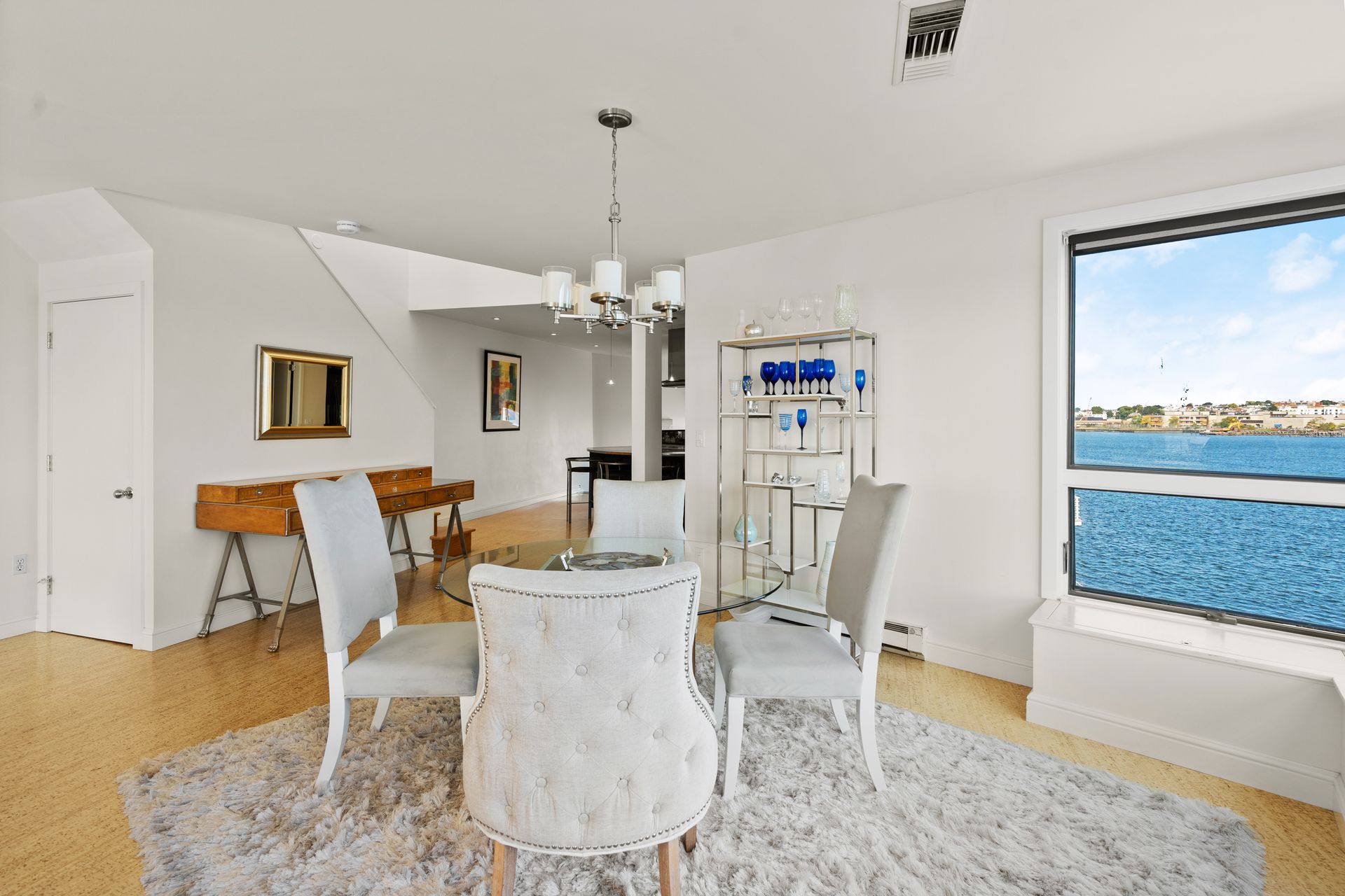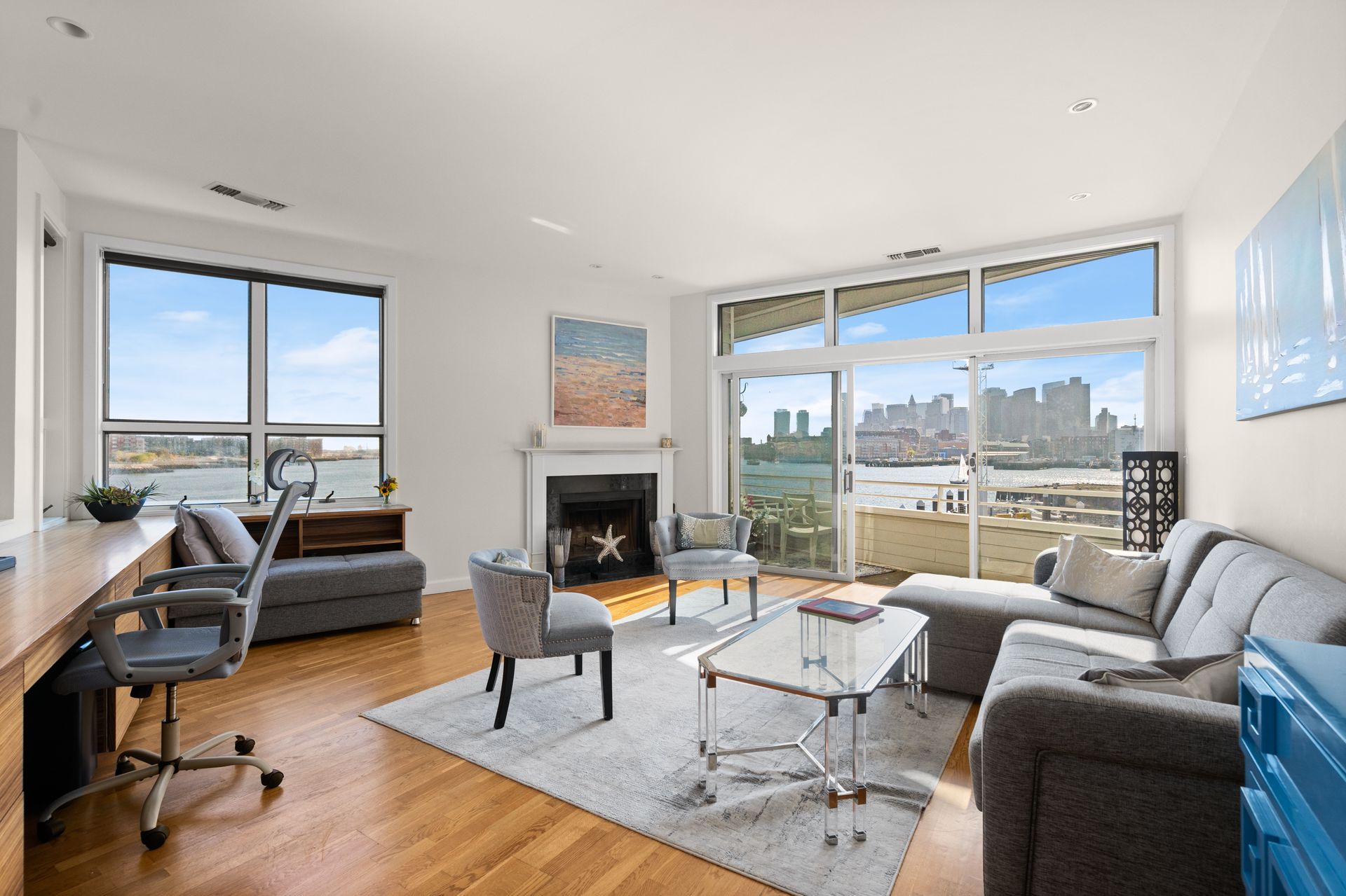 Look no further as you have arrived at the most magnificent home at the end of Pier 7 on Boston's waterfront. Enjoy living on Boston Harbor, with the likeness of living on a top deck of a luxury ship with unparalleled panoramic water views from every room of Boston Harbor and City of Boston, from the North End, Beacon Hill, Back Bay and Seaport on one side, to the airport and East Boston harborfront on the other. You would be hard pressed to find a better view anywhere in Boston! Enjoy having your own private entrance where you have the choice of taking the stairs for exercise or a PRIVATE ELEVATOR right to the third floor where you will be introduced to a modern kitchen with peninsula seating, formal dining room, sunken living room with wood burning fireplace- all leading you to a deck overlooking the Boston skyline. A second floor has two large bedrooms with adjoining baths and additional two decks with gorgeous views similar to being on a cruise ship. Park your boat right in front within full view of adjacent Charlestown Marina. Covered tandem parking. Secure gated community.