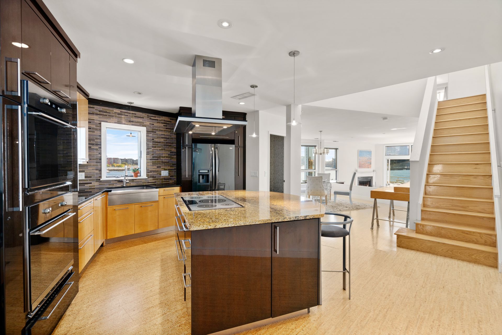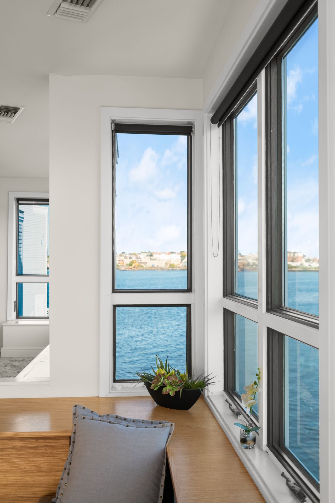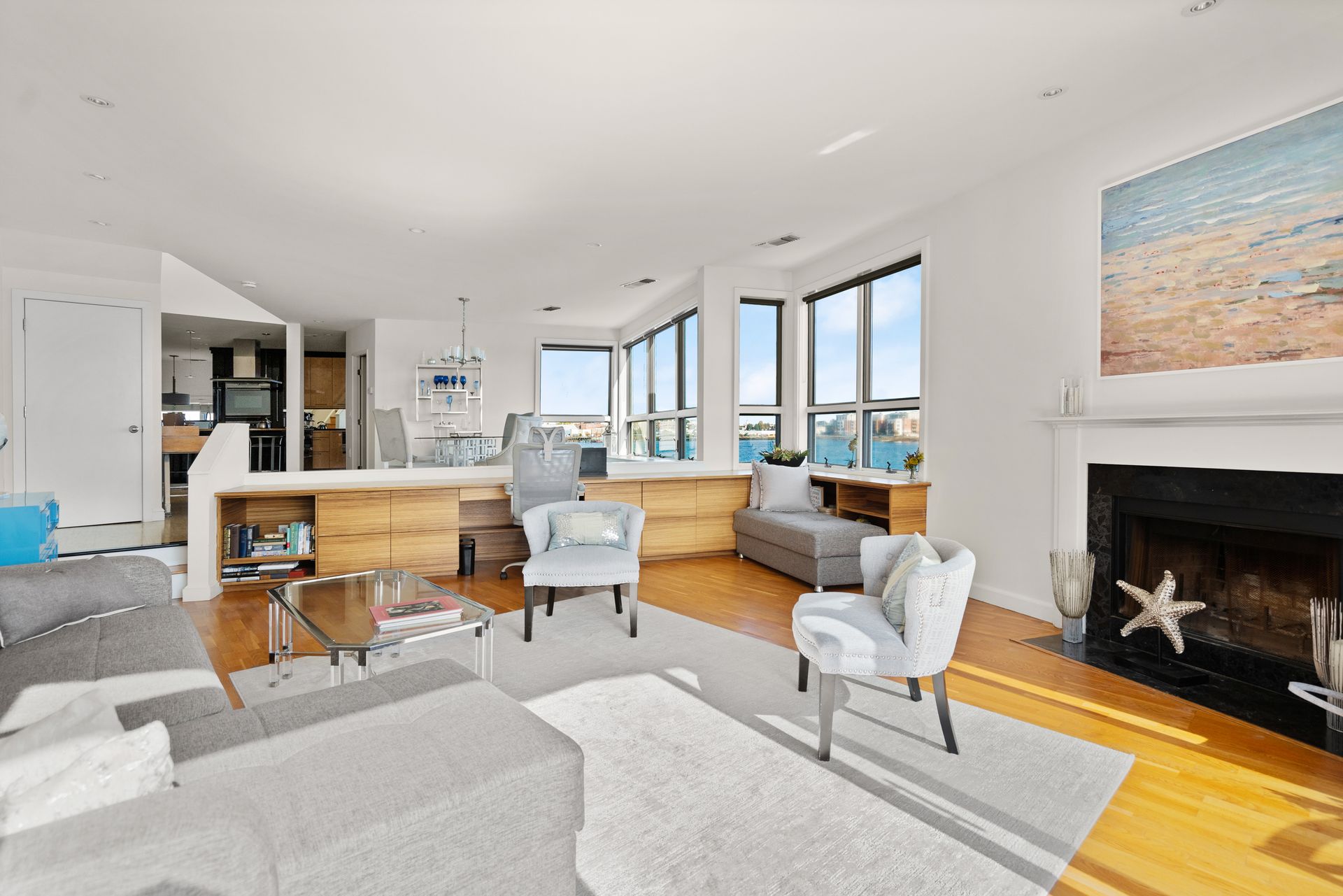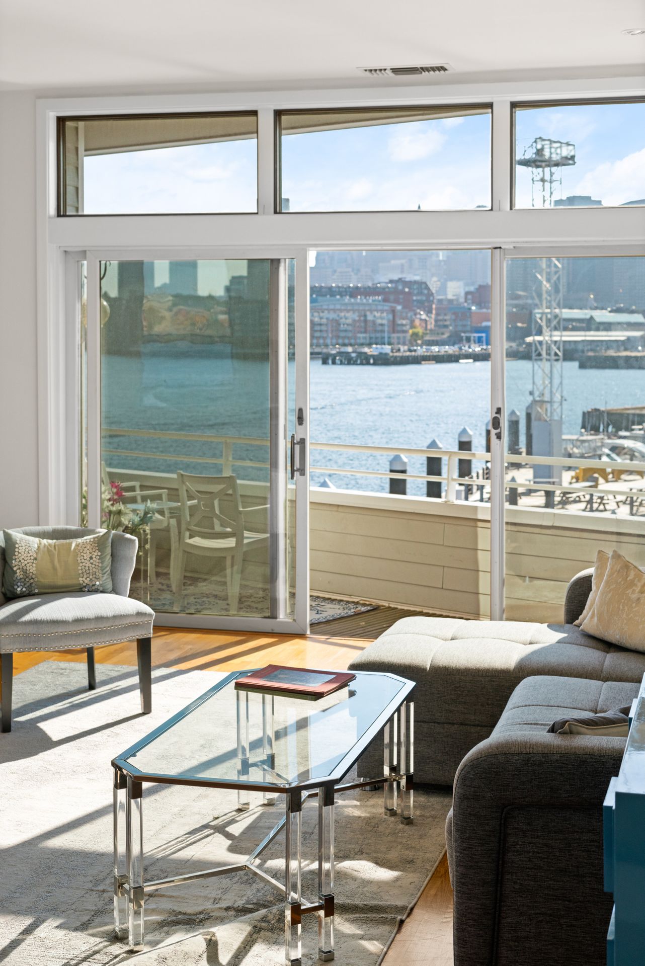 Look no further as you have arrived at the most magnificent home at the end of Pier 7 on Boston's waterfront. Enjoy living on Boston Harbor, with the likeness of living on a top deck of a luxury ship with unparalleled panoramic water views from every room of Boston Harbor and City of Boston, from the North End, Beacon Hill, Back Bay and Seaport on one side, to the airport and East Boston harborfront on the other. You would be hard pressed to find a better view anywhere in Boston! Enjoy having your own private entrance where you have the choice of taking the stairs for exercise or a PRIVATE ELEVATOR right to the third floor where you will be introduced to a modern kitchen with peninsula seating, formal dining room, sunken living room with wood burning fireplace- all leading you to a deck overlooking the Boston skyline. A second floor has two large bedrooms with adjoining baths and additional two decks with gorgeous views similar to being on a cruise ship. Park your boat right in front within full view of adjacent Charlestown Marina. Covered tandem parking. Secure gated community.