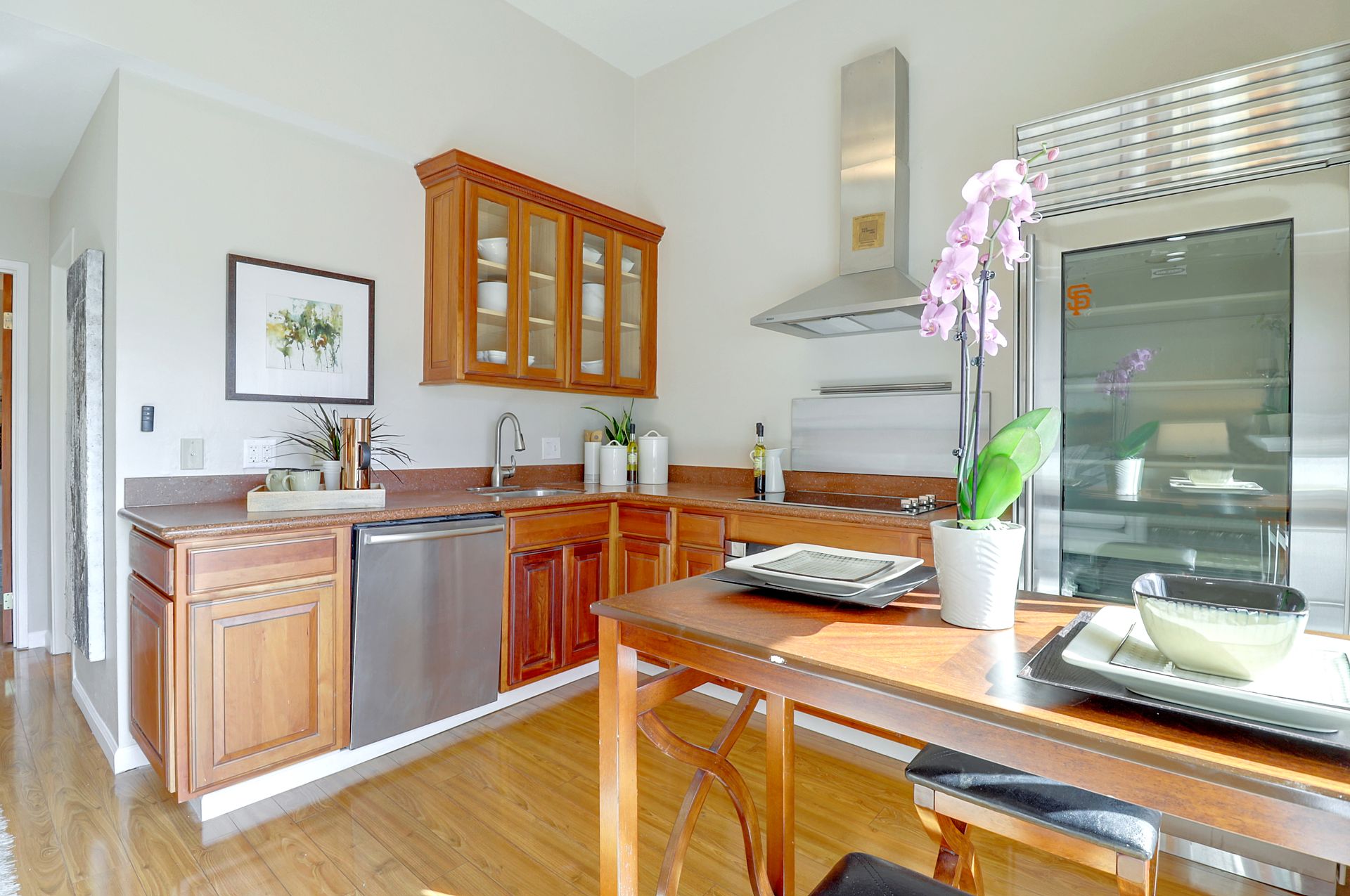 Beautifully updated one bedroom, one bath condo just steps from Jack London Square. The open floorplan presents a sliding door to the balcony allowing natural light to living room and updated kitchen. Brand new cooktop, SUBZERO refrigerator, updated bathroom. Plantation shutters in bedroom. The PORTOBELLO complex has elevator access, one designated parking spot and plenty of guest parking, private storage, package lockers, secure bike storage and a smartphone video intercom system. The Portobello community amenities include a remodeled gym, tennis courts, clubhouse, sauna, jacuzzi and outdoor swimming pool overlooking the marina. Conveniently located to BART, ferry and AMTRAK. Jack London Square is home to many restaurants, breweries, coffee shops and weekly Farmer's Market.