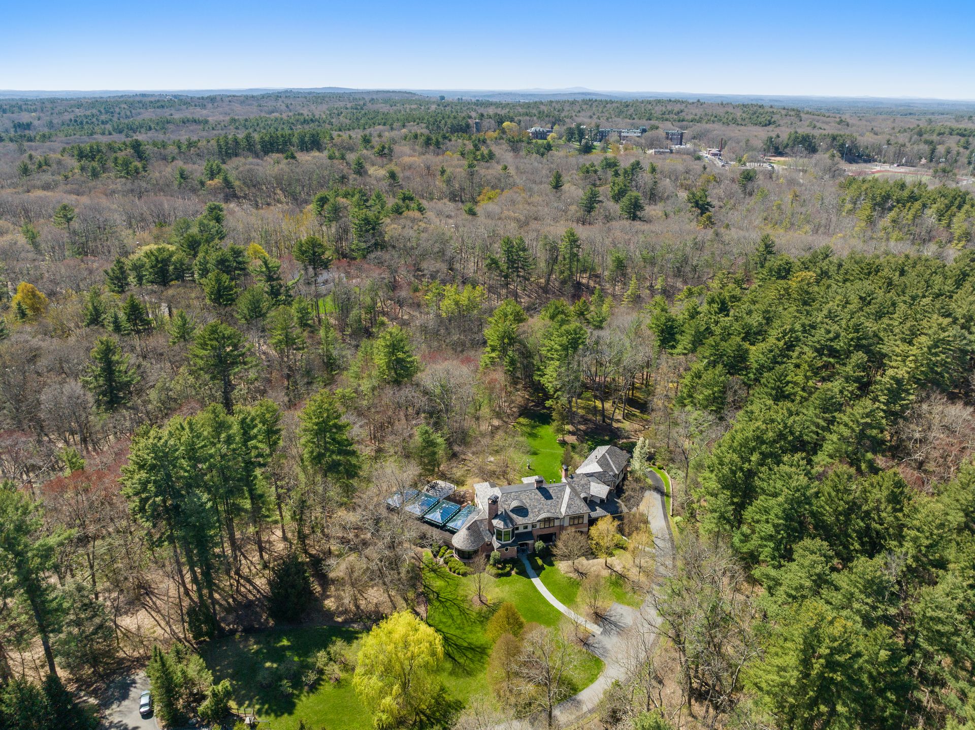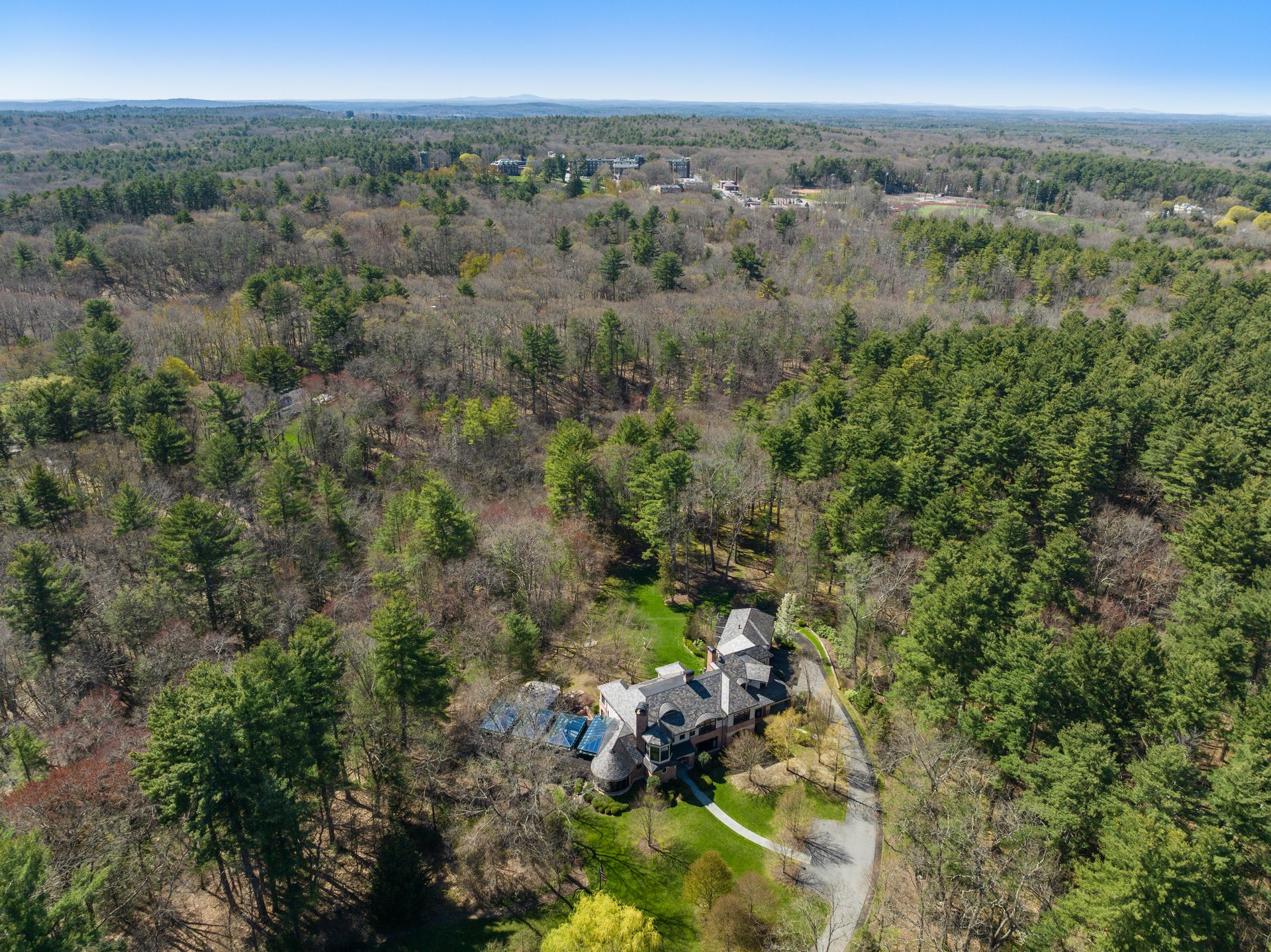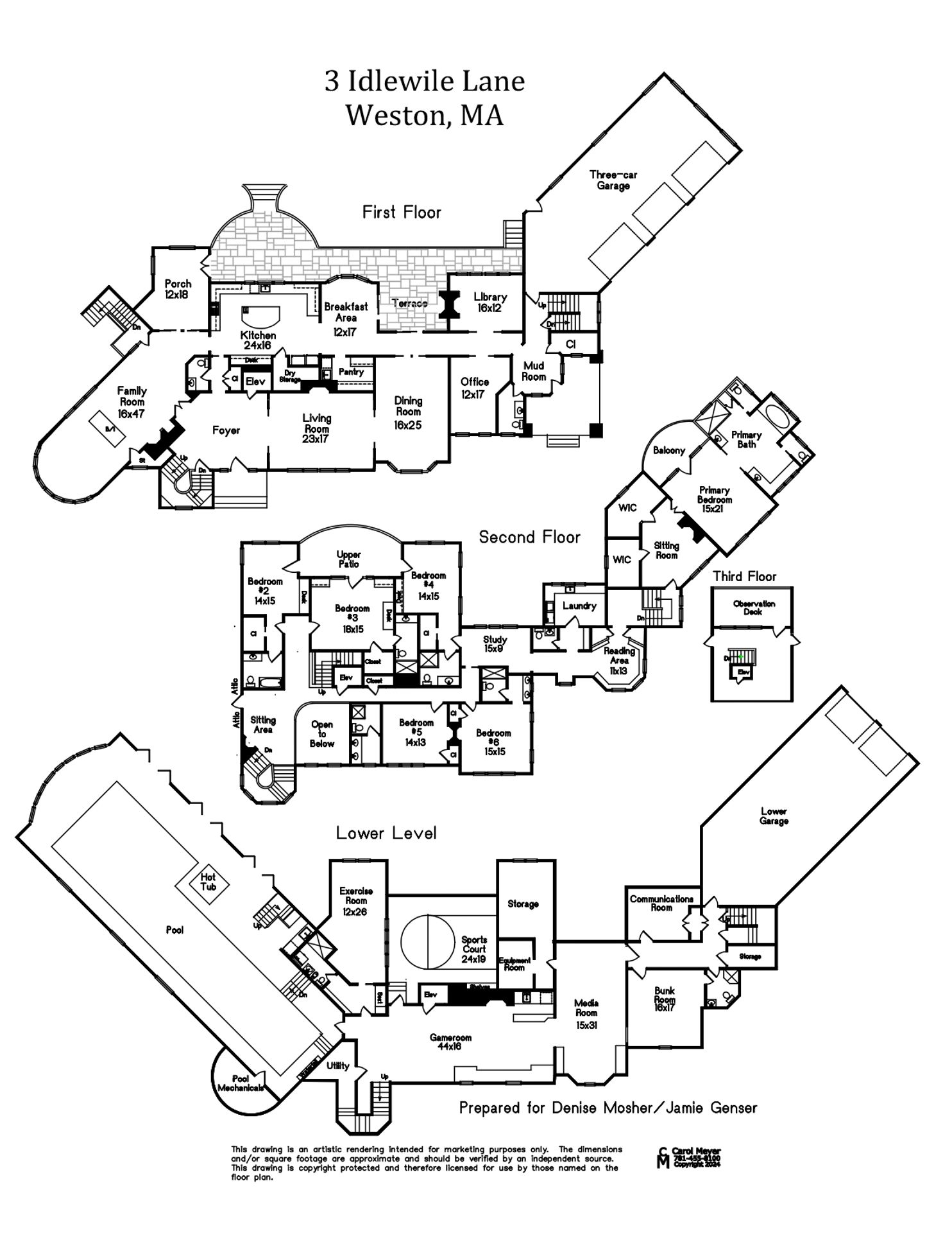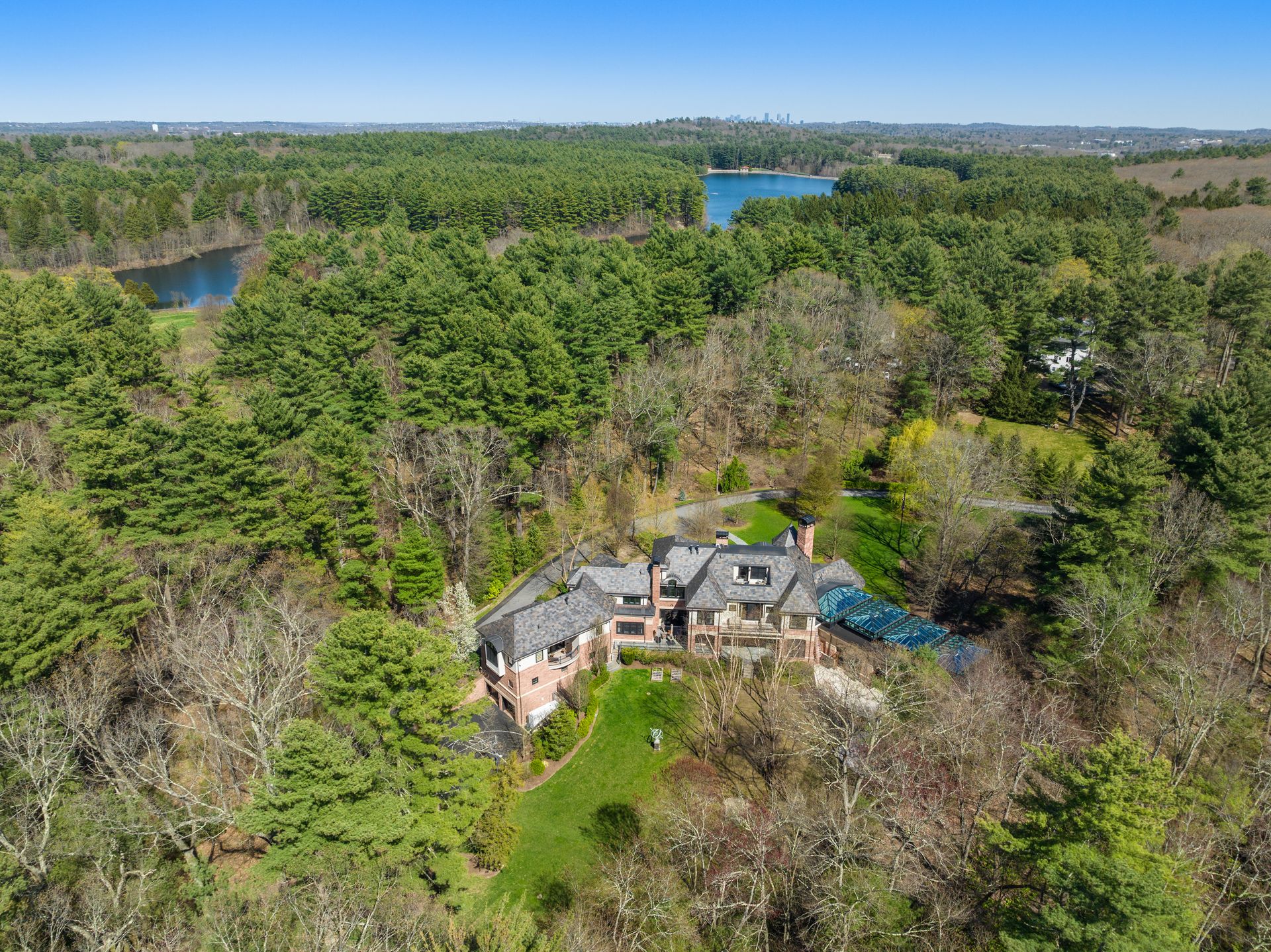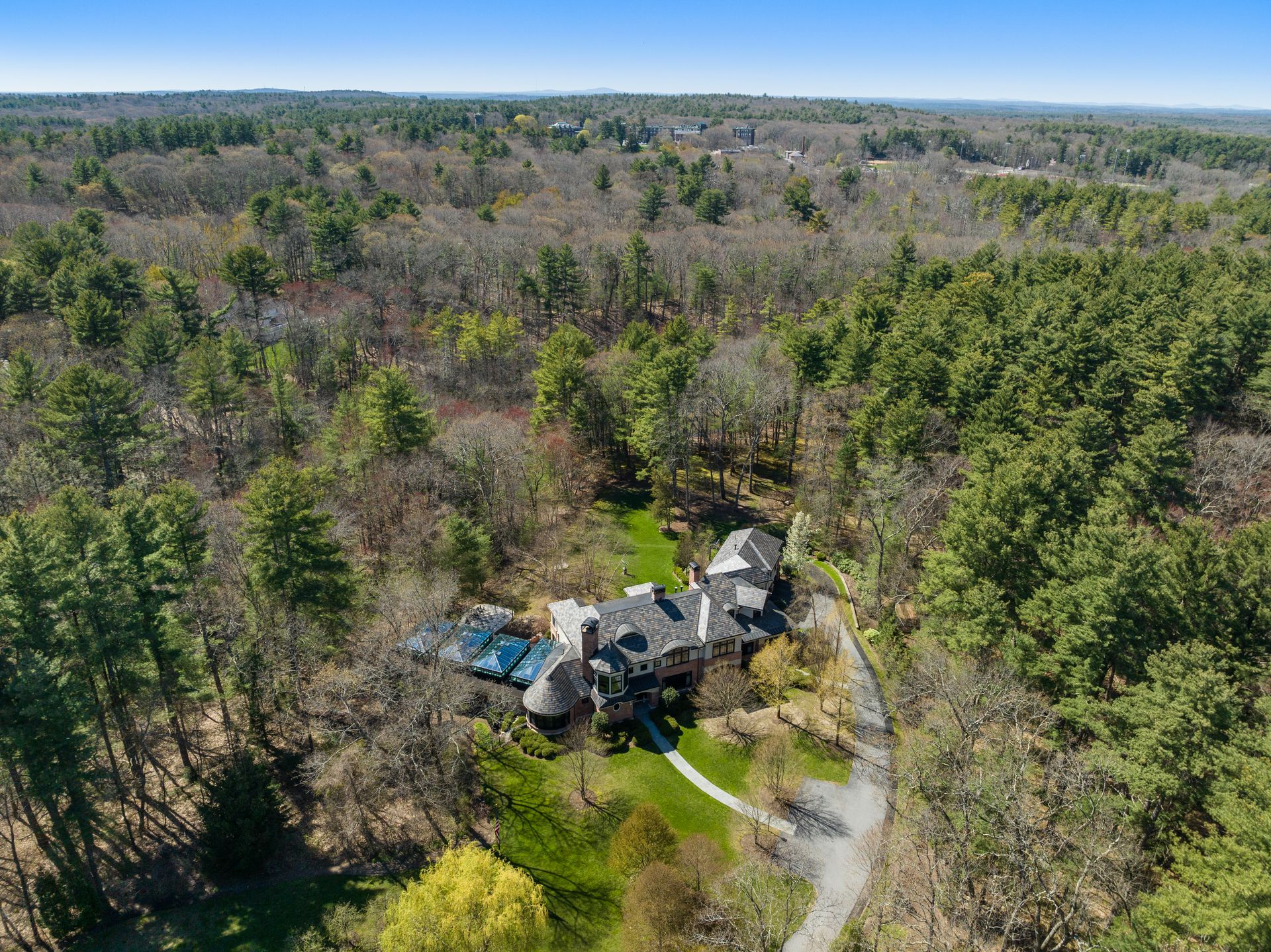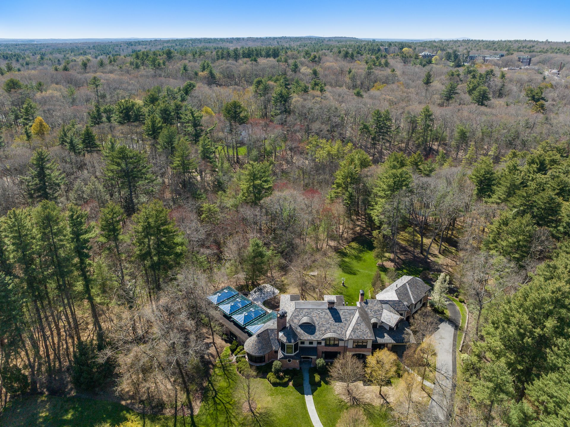 Exceptional gated estate privately sited on 8+ acres abutting conservation in one of Weston's most exclusive south-side neighborhoods. 14,000+ square feet of living space featuring uncompromising design in custom mill and stonework with fabulous amenities for entertaining on a grand scale with the ultimate facilities for sports & leisure. Formal living room with arched doors leads to an expansive formal dining room, Chef’s dream kitchen, and a comfortable family room with a domed ceiling. Private, paneled office and den. Serene primary suite with sitting room, 2 dressing rooms, 5 additional bedrooms with en suite baths. Stunning 3-story foyer, venetian plaster walls, arched doorways, coffered ceilings, elevator, whole house generator. The fantastic entertainment level features a game room with theater, indoor lap pool, indoor basketball court, gym & spa, as well as a bunk bedroom. 7-car heated garage with 4 EV chargers. Expansive lawn and specimen plantings. A rare opportunity for the discerning buyer to own one of the Boston area's finest homes.