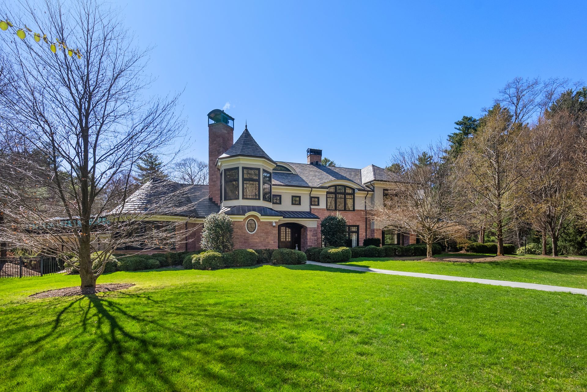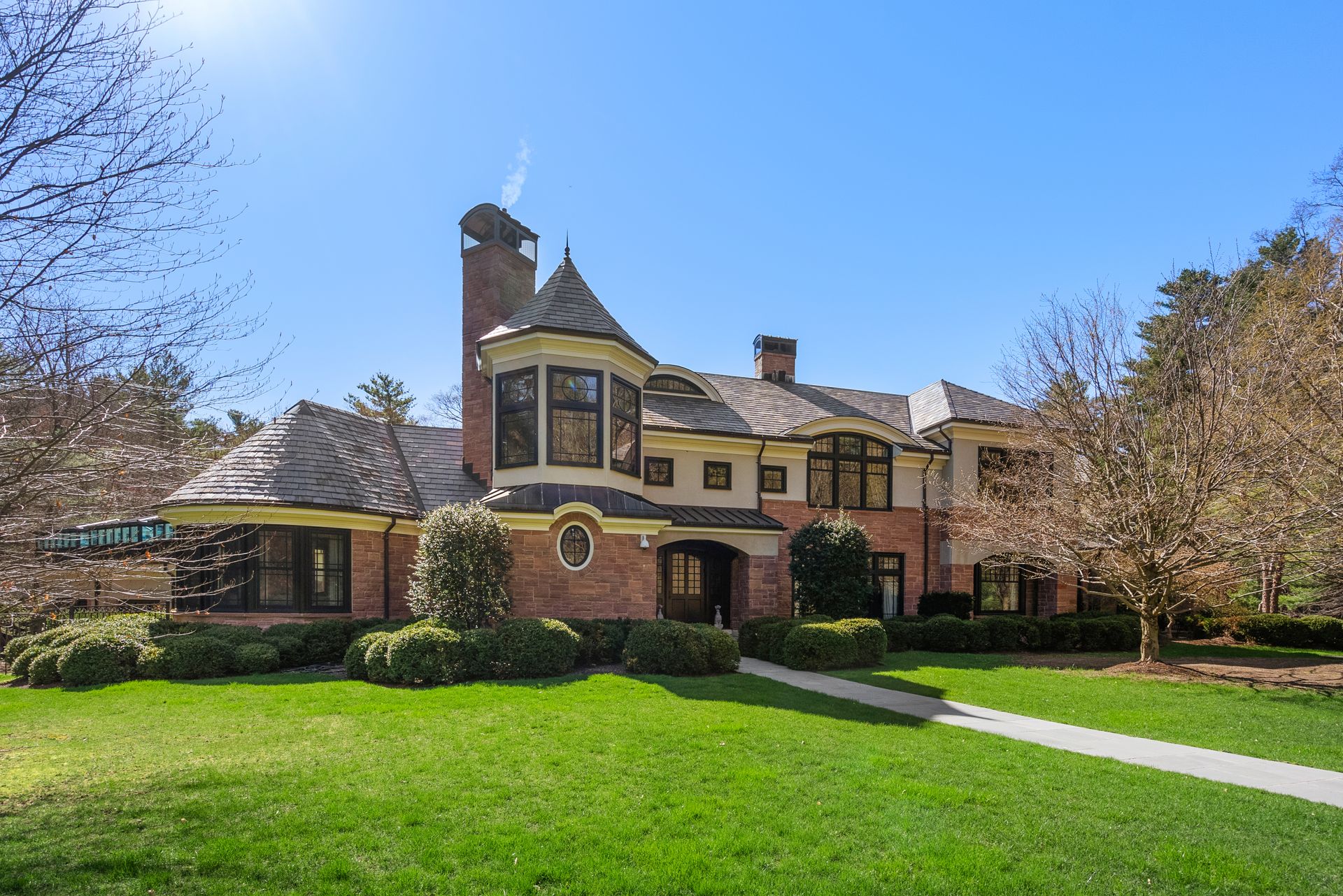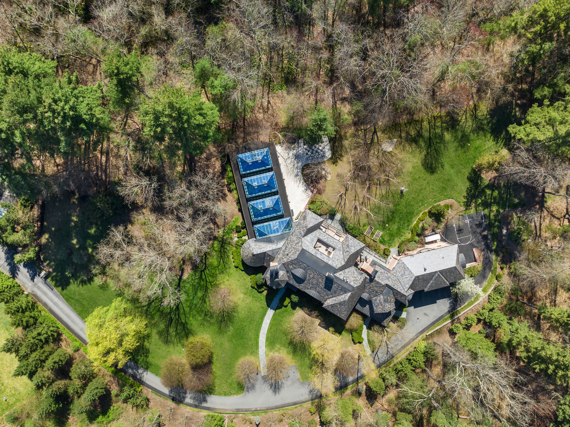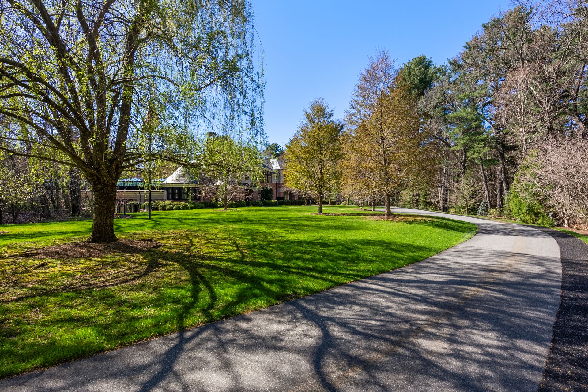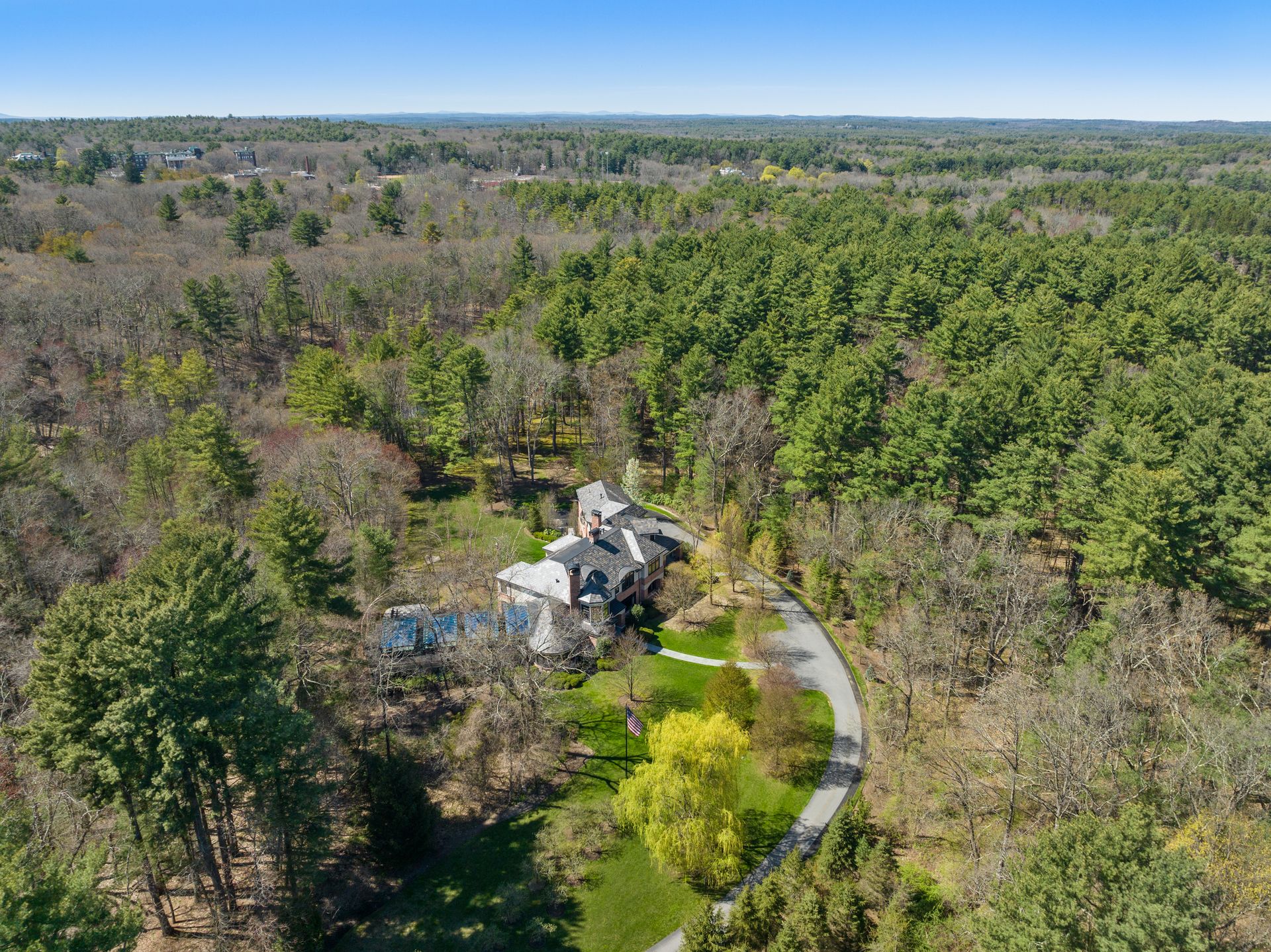 Exceptional gated estate privately sited on 8+ acres abutting conservation in one of Weston's most exclusive south-side neighborhoods. 14,000+ square feet of living space featuring uncompromising design in custom mill and stonework with fabulous amenities for entertaining on a grand scale with the ultimate facilities for sports & leisure. Formal living room with arched doors leads to an expansive formal dining room, Chef’s dream kitchen, and a comfortable family room with a domed ceiling. Private, paneled office and den. Serene primary suite with sitting room, 2 dressing rooms, 5 additional bedrooms with en suite baths. Stunning 3-story foyer, venetian plaster walls, arched doorways, coffered ceilings, elevator, whole house generator. The fantastic entertainment level features a game room with theater, indoor lap pool, indoor basketball court, gym & spa, as well as a bunk bedroom. 7-car heated garage with 4 EV chargers. Expansive lawn and specimen plantings. A rare opportunity for the discerning buyer to own one of the Boston area's finest homes.