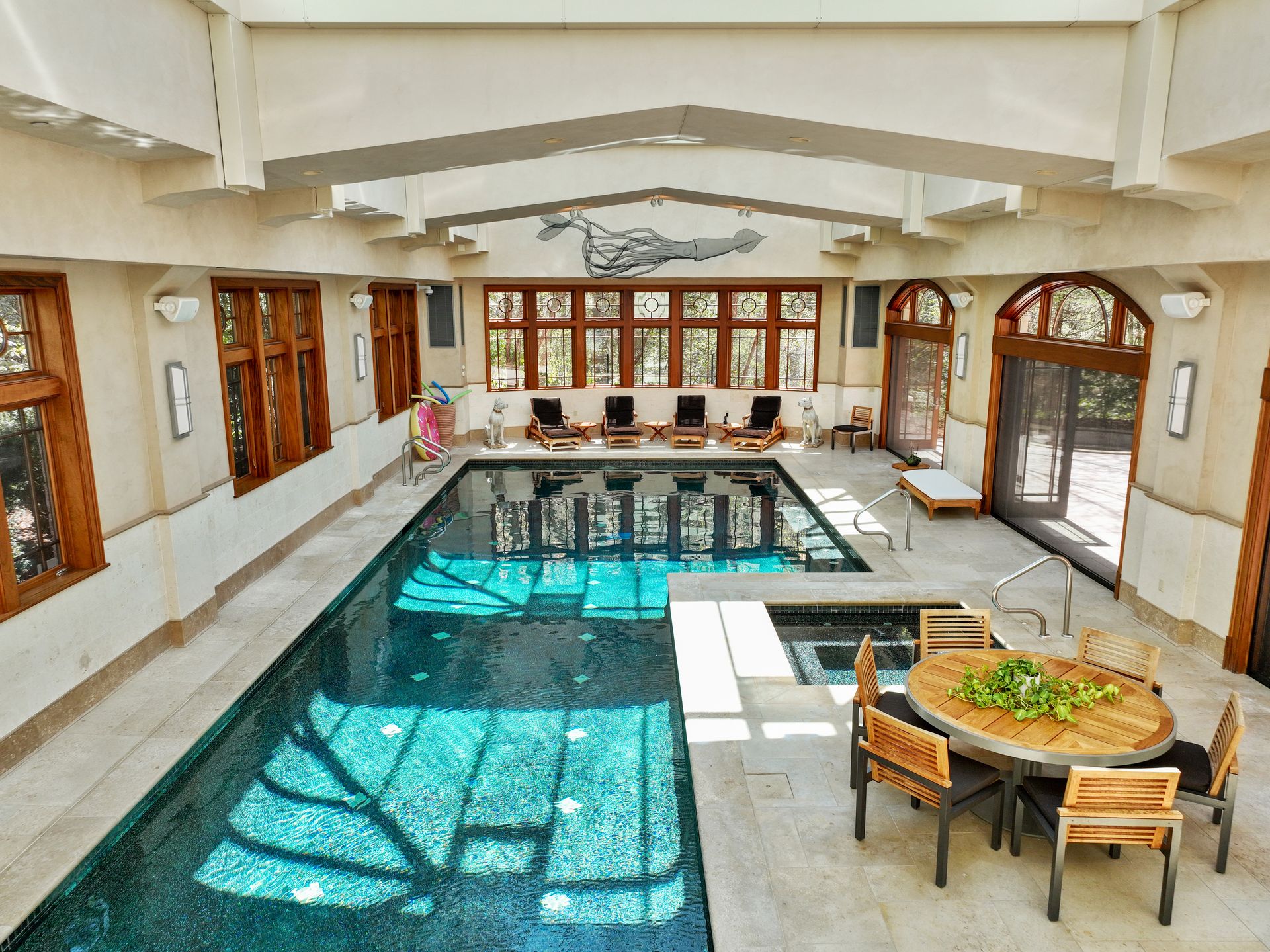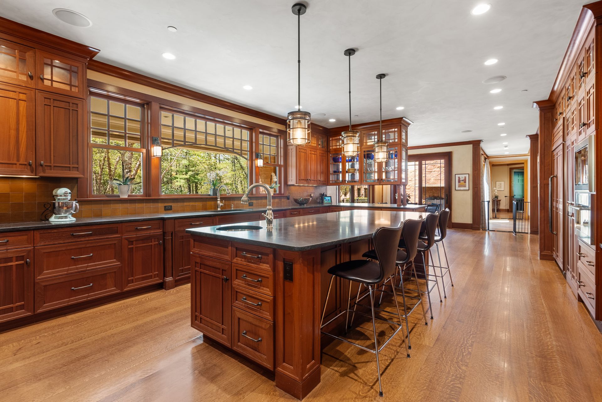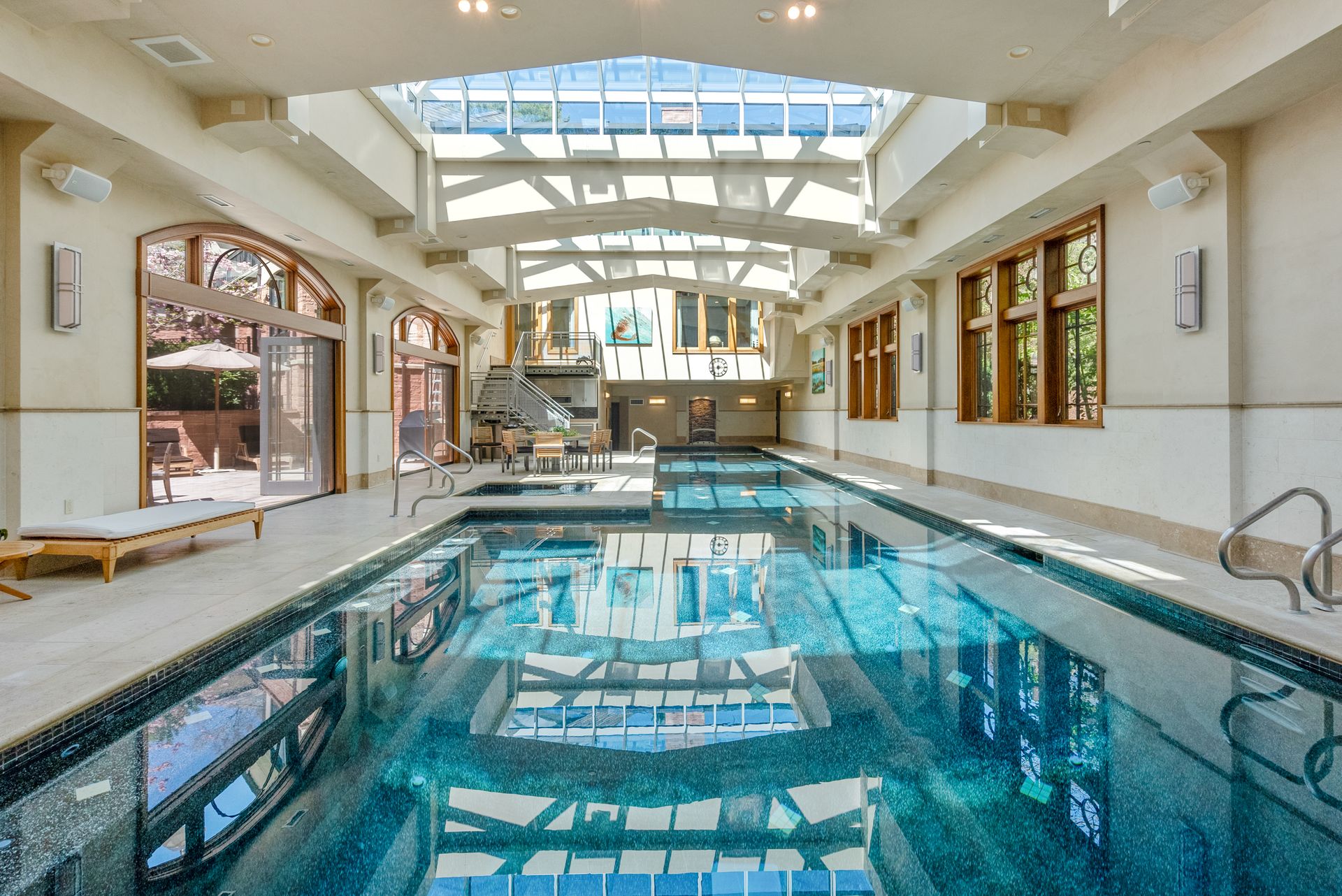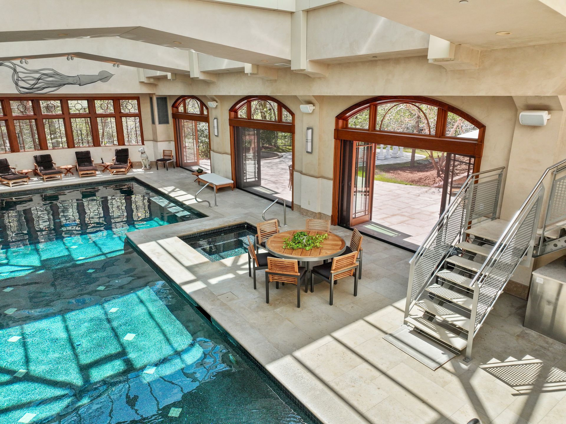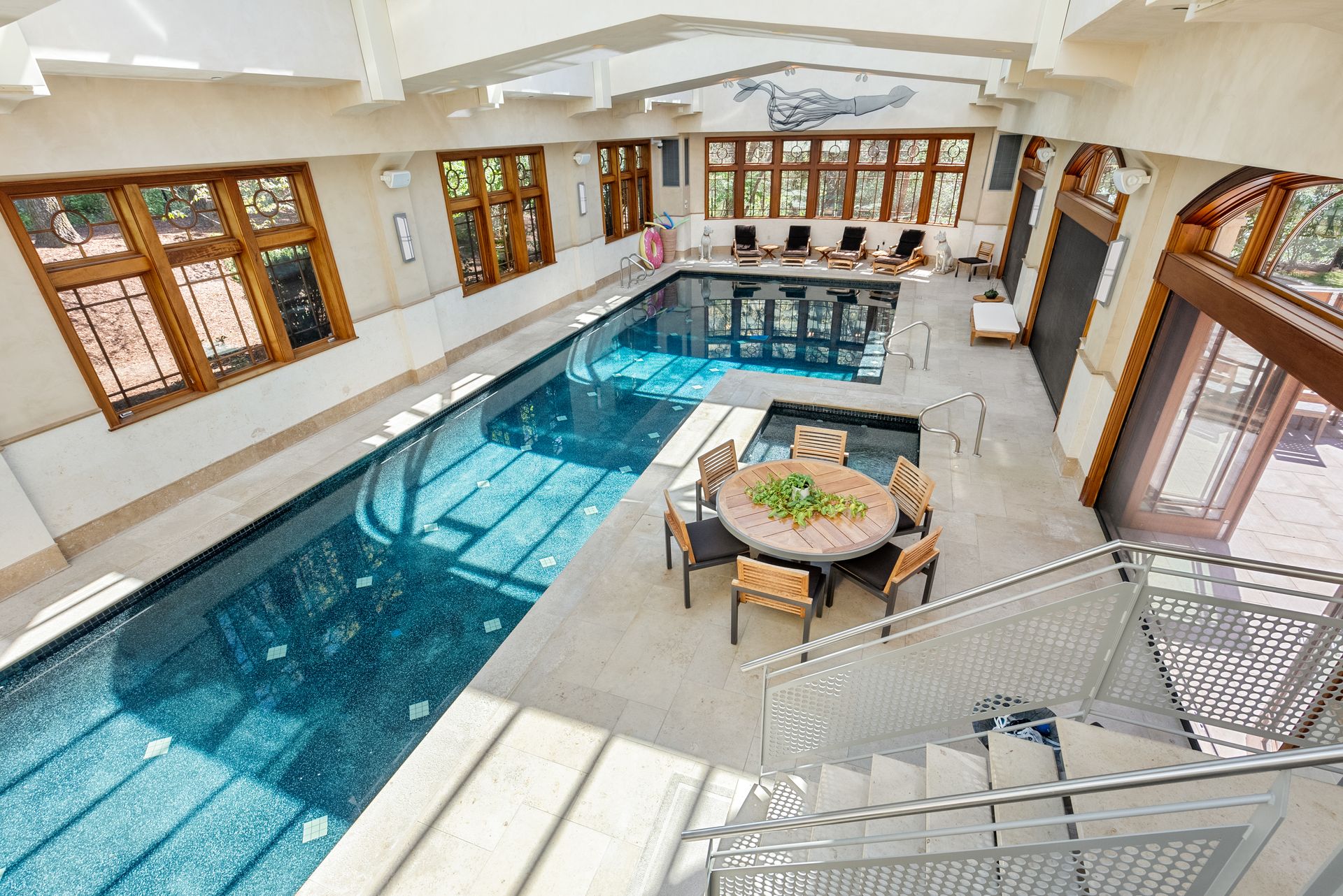 Exceptional gated estate privately sited on 8+ acres abutting conservation in one of Weston's most exclusive south-side neighborhoods. 14,000+ square feet of living space featuring uncompromising design in custom mill and stonework with fabulous amenities for entertaining on a grand scale with the ultimate facilities for sports & leisure. Formal living room with arched doors leads to an expansive formal dining room, Chef’s dream kitchen, and a comfortable family room with a domed ceiling. Private, paneled office and den. Serene primary suite with sitting room, 2 dressing rooms, 5 additional bedrooms with en suite baths. Stunning 3-story foyer, venetian plaster walls, arched doorways, coffered ceilings, elevator, whole house generator. The fantastic entertainment level features a game room with theater, indoor lap pool, indoor basketball court, gym & spa, as well as a bunk bedroom. 7-car heated garage with 4 EV chargers. Expansive lawn and specimen plantings. A rare opportunity for the discerning buyer to own one of the Boston area's finest homes.