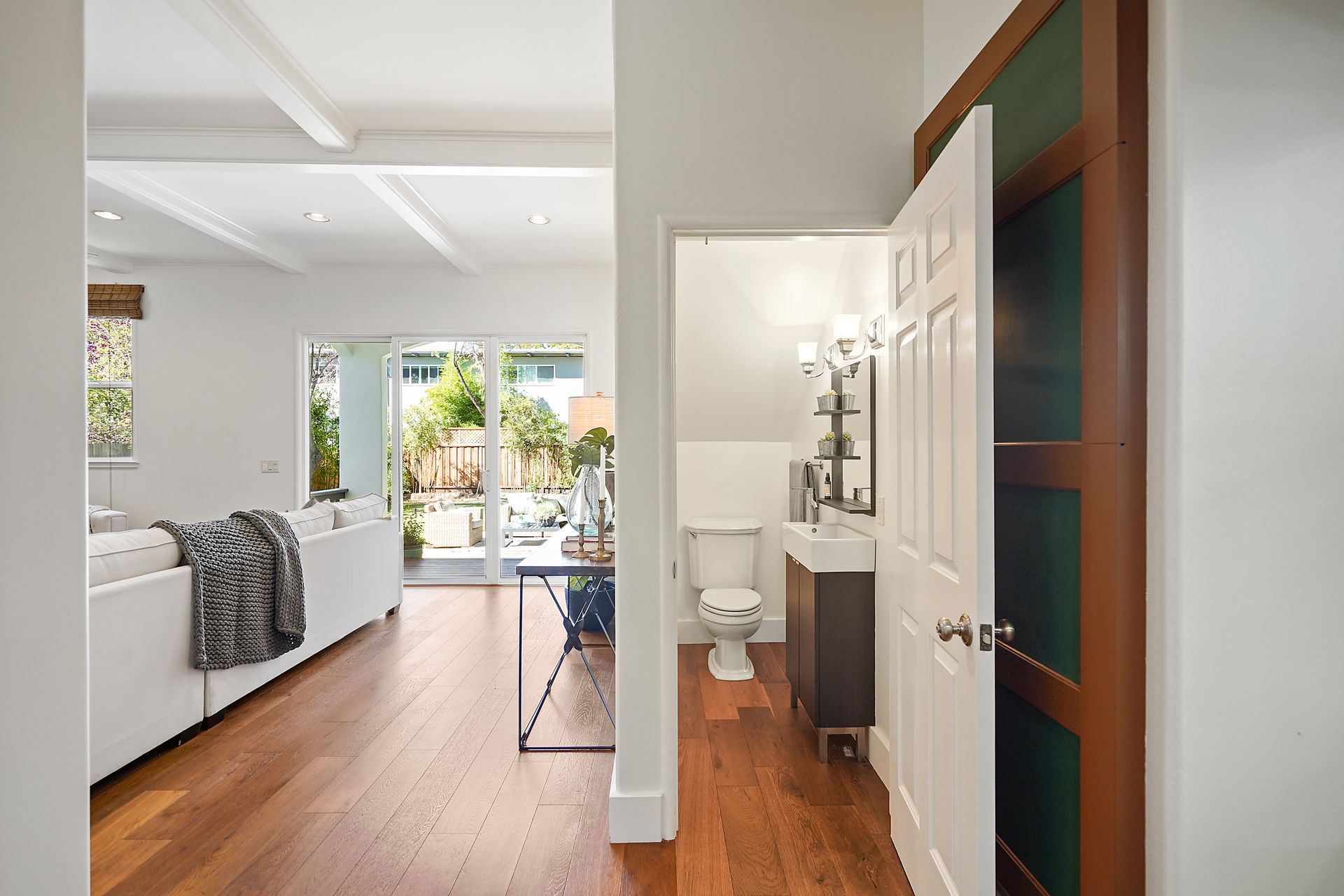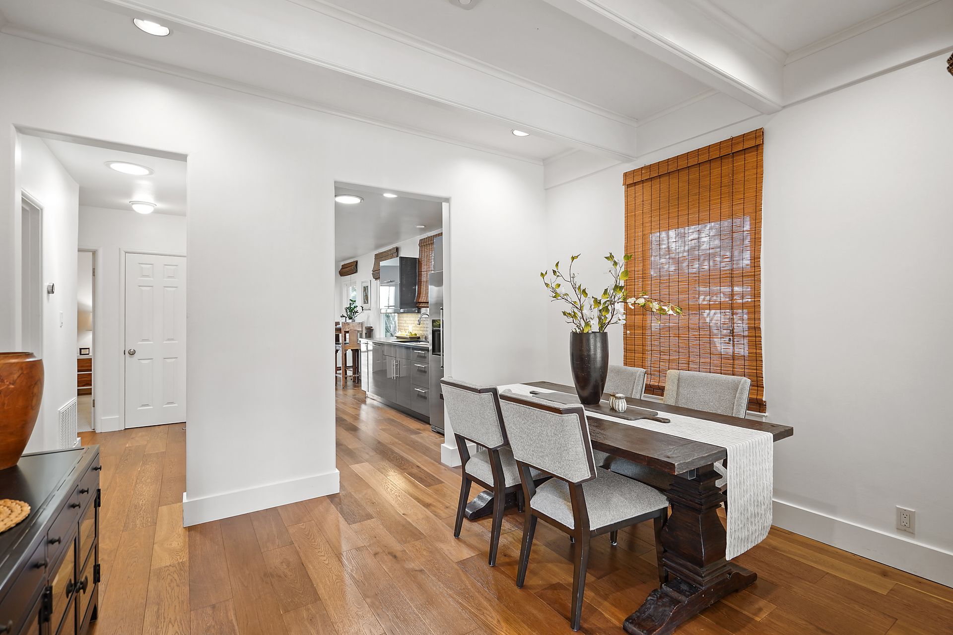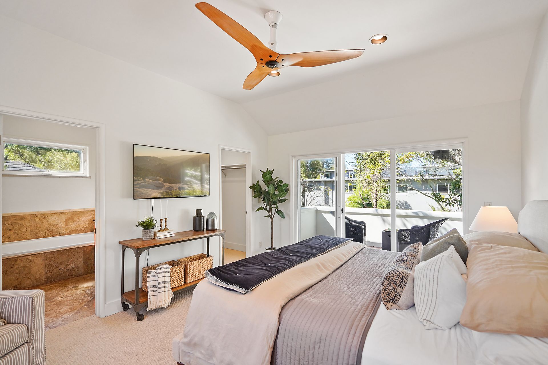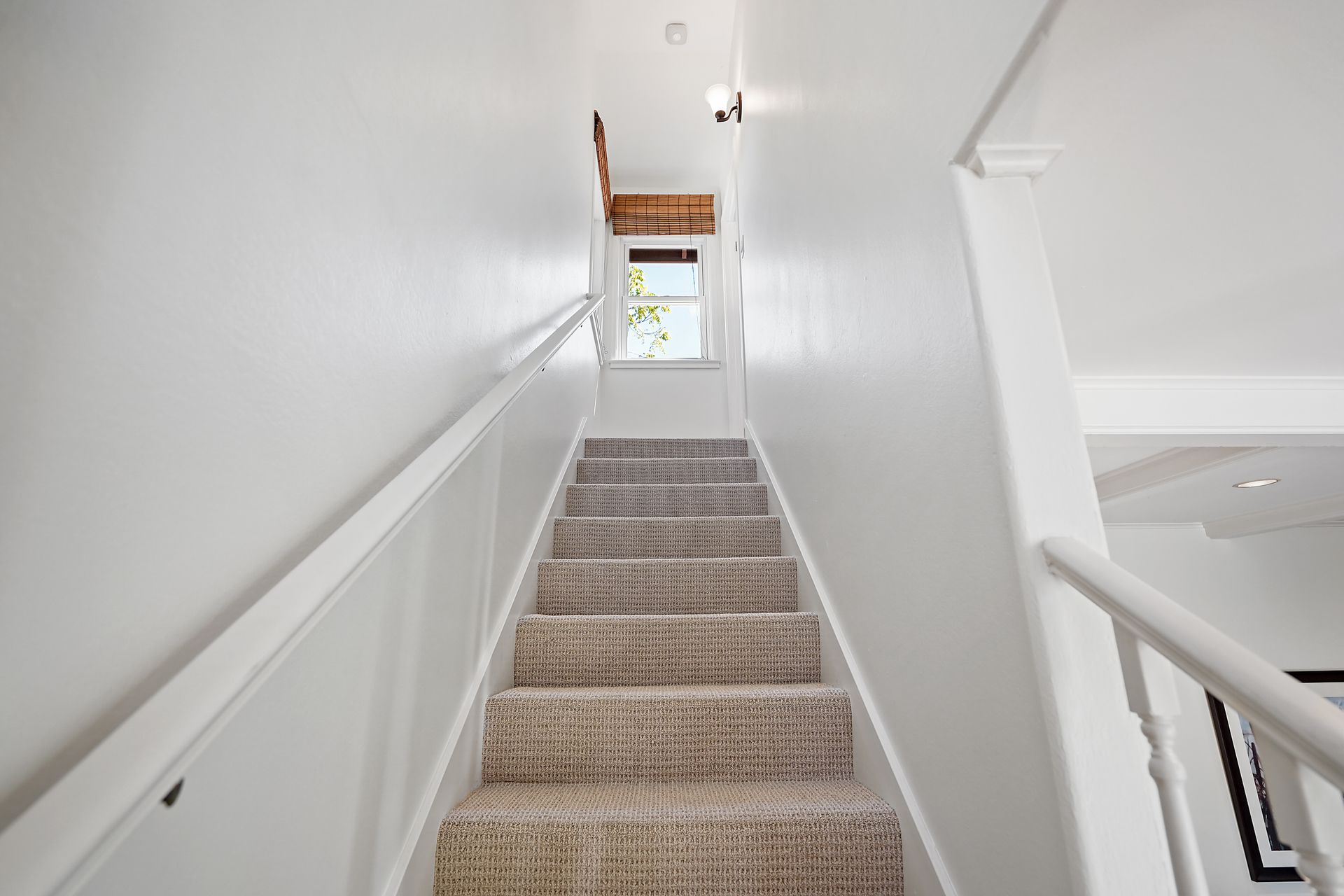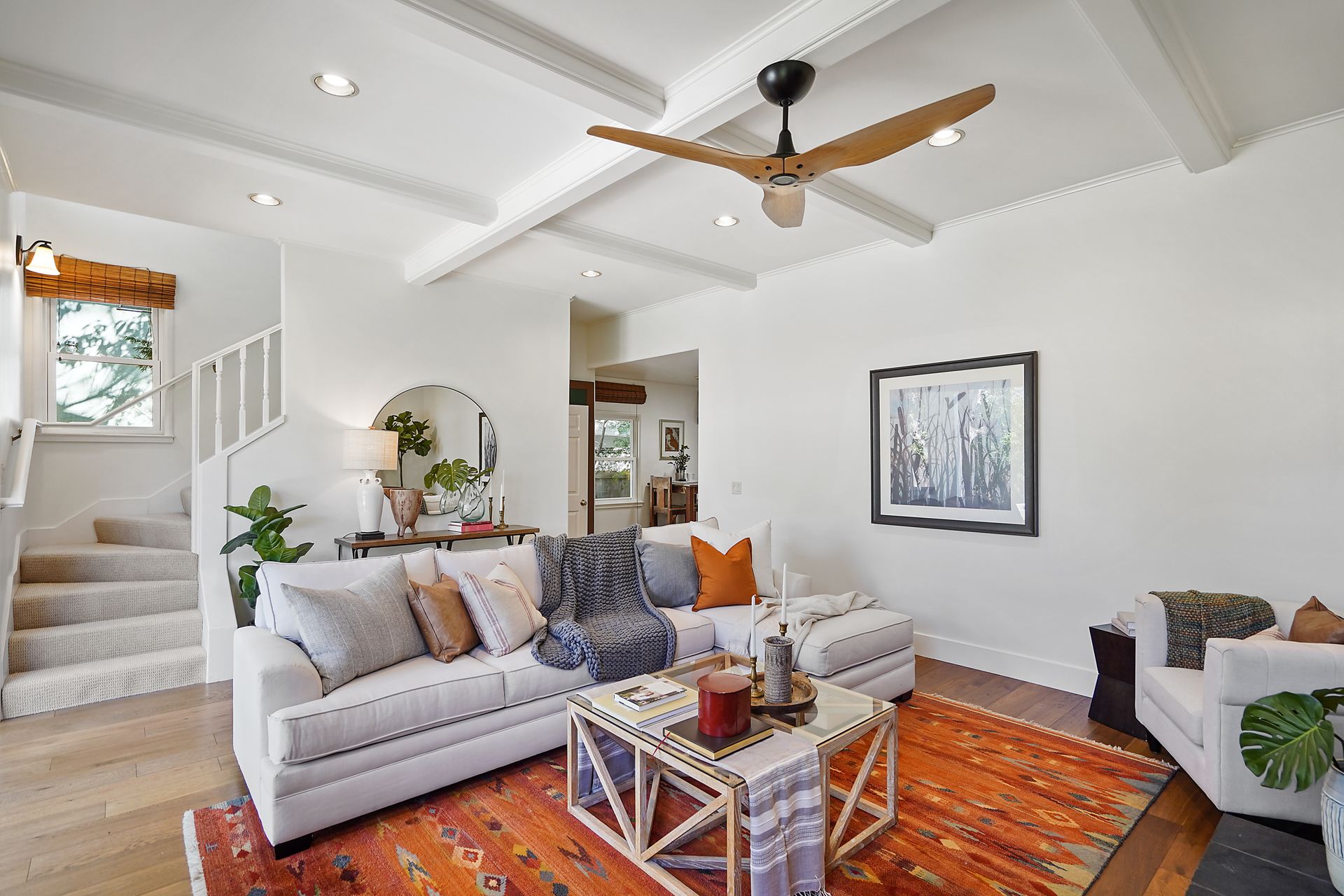 Just minutes to popular downtown San Anselmo's terrific restaurants, eclectic shops, fun community events and Farmers' Market sits this expanded three bedroom, two and one-half bath California Mediterranean offering classic vintage charm and a stylish remodel. Beam ceilings, wood floors and a fireplace in the living room adjoins a delightful dining area. The spacious kitchen with stainless-steel appliances and gas cooktop has plenty of counter space for multiple cooks and entertaining. A fabulous family room off the kitchen with a cozy gas fireplace, beam ceiling and recessed lighting is the central gathering area of the home. Directly off the family room you will enjoy a huge, sunny, level yard with a flagstone patio and eco-friendly lawn, ideal for play and parties. Two well-sized bedrooms downstairs and an impressive primary bedroom upstairs feature a high ceiling, walk-in closet, jetted tub, dual sinks, separate shower and relaxing balcony. Close to top-rated schools as well as world-class hiking and biking trails.