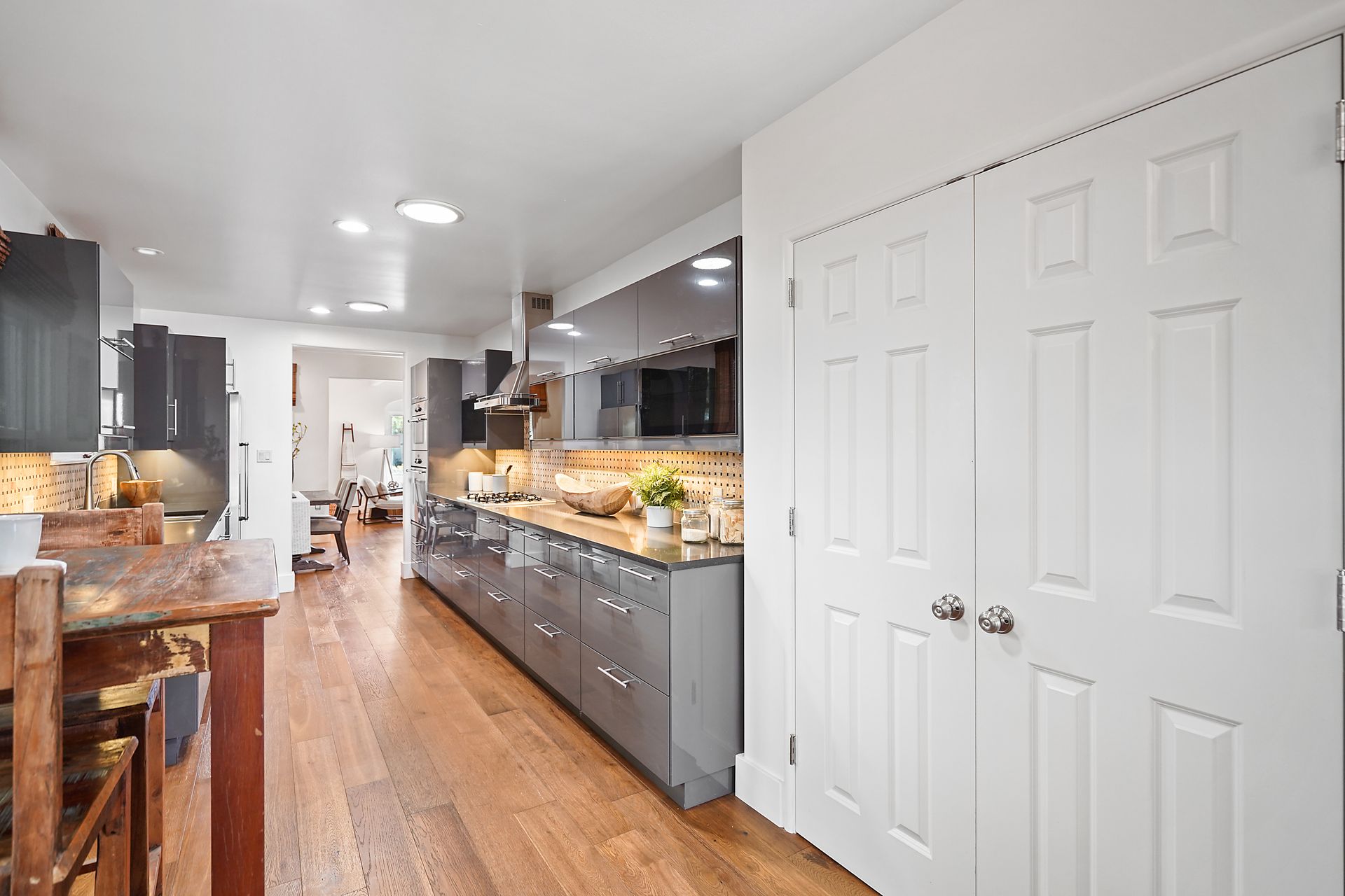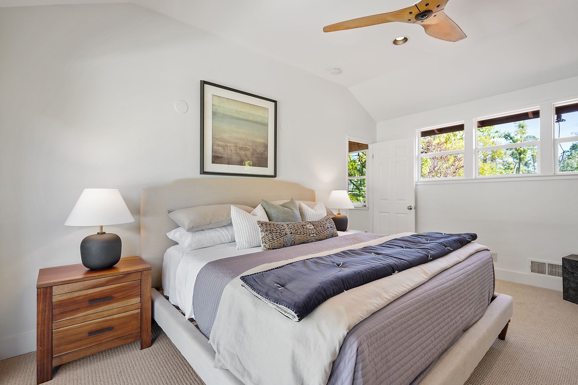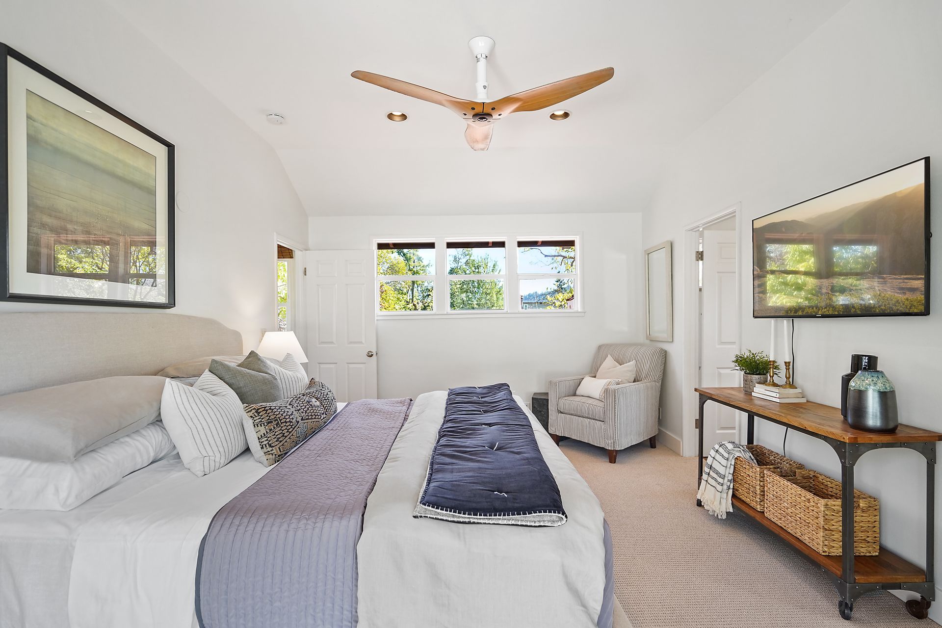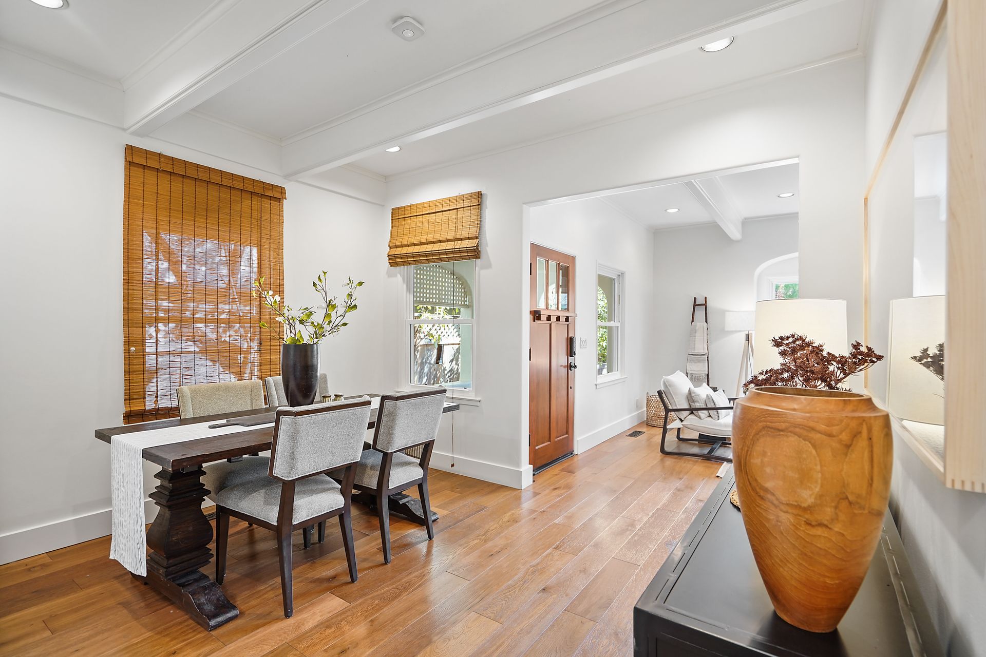 Just minutes to popular downtown San Anselmo's terrific restaurants, eclectic shops, fun community events and Farmers' Market sits this expanded three bedroom, two and one-half bath California Mediterranean offering classic vintage charm and a stylish remodel. Beam ceilings, wood floors and a fireplace in the living room adjoins a delightful dining area. The spacious kitchen with stainless-steel appliances and gas cooktop has plenty of counter space for multiple cooks and entertaining. A fabulous family room off the kitchen with a cozy gas fireplace, beam ceiling and recessed lighting is the central gathering area of the home. Directly off the family room you will enjoy a huge, sunny, level yard with a flagstone patio and eco-friendly lawn, ideal for play and parties. Two well-sized bedrooms downstairs and an impressive primary bedroom upstairs feature a high ceiling, walk-in closet, jetted tub, dual sinks, separate shower and relaxing balcony. Close to top-rated schools as well as world-class hiking and biking trails.