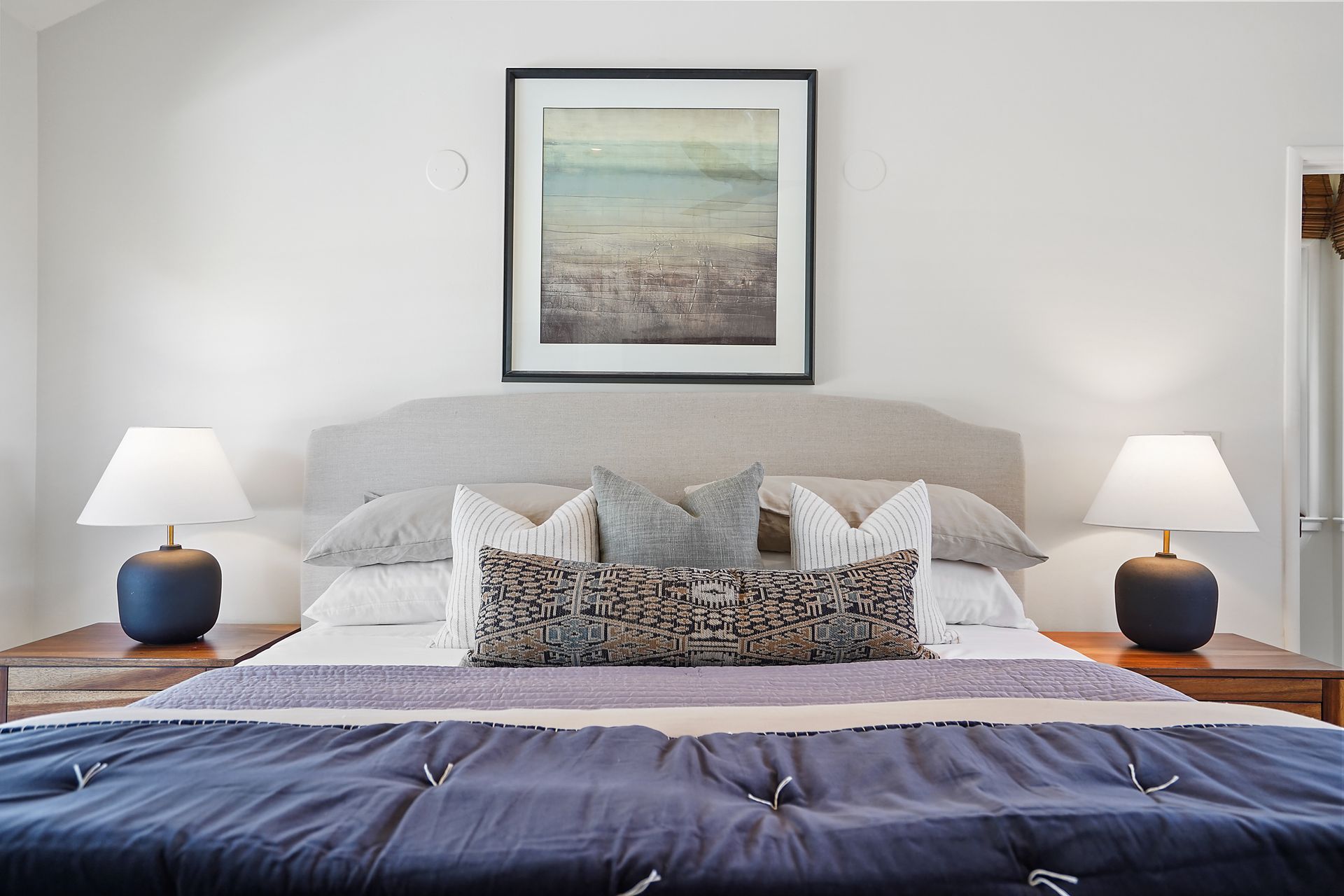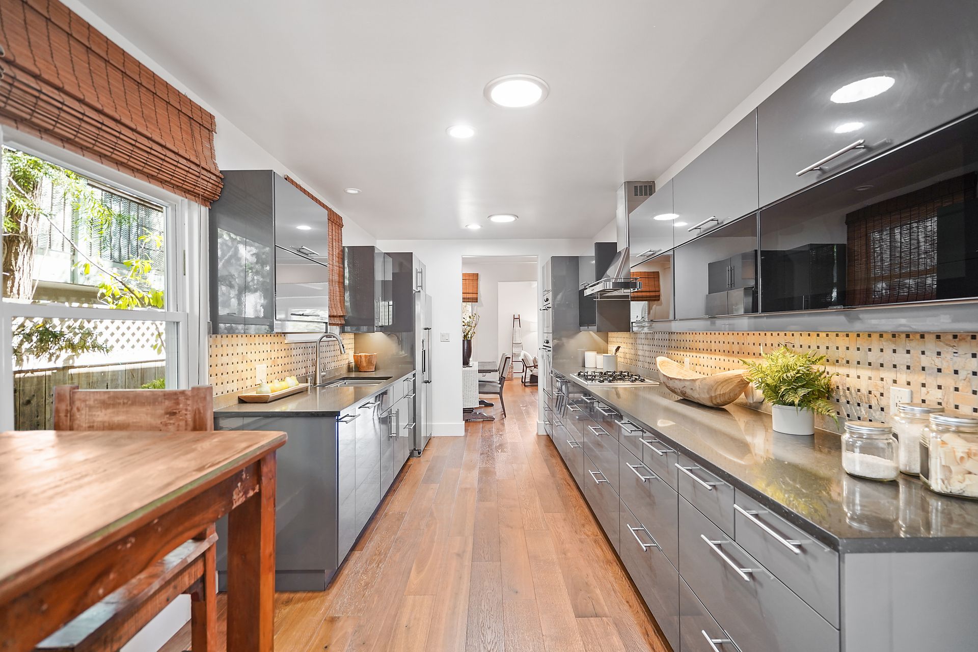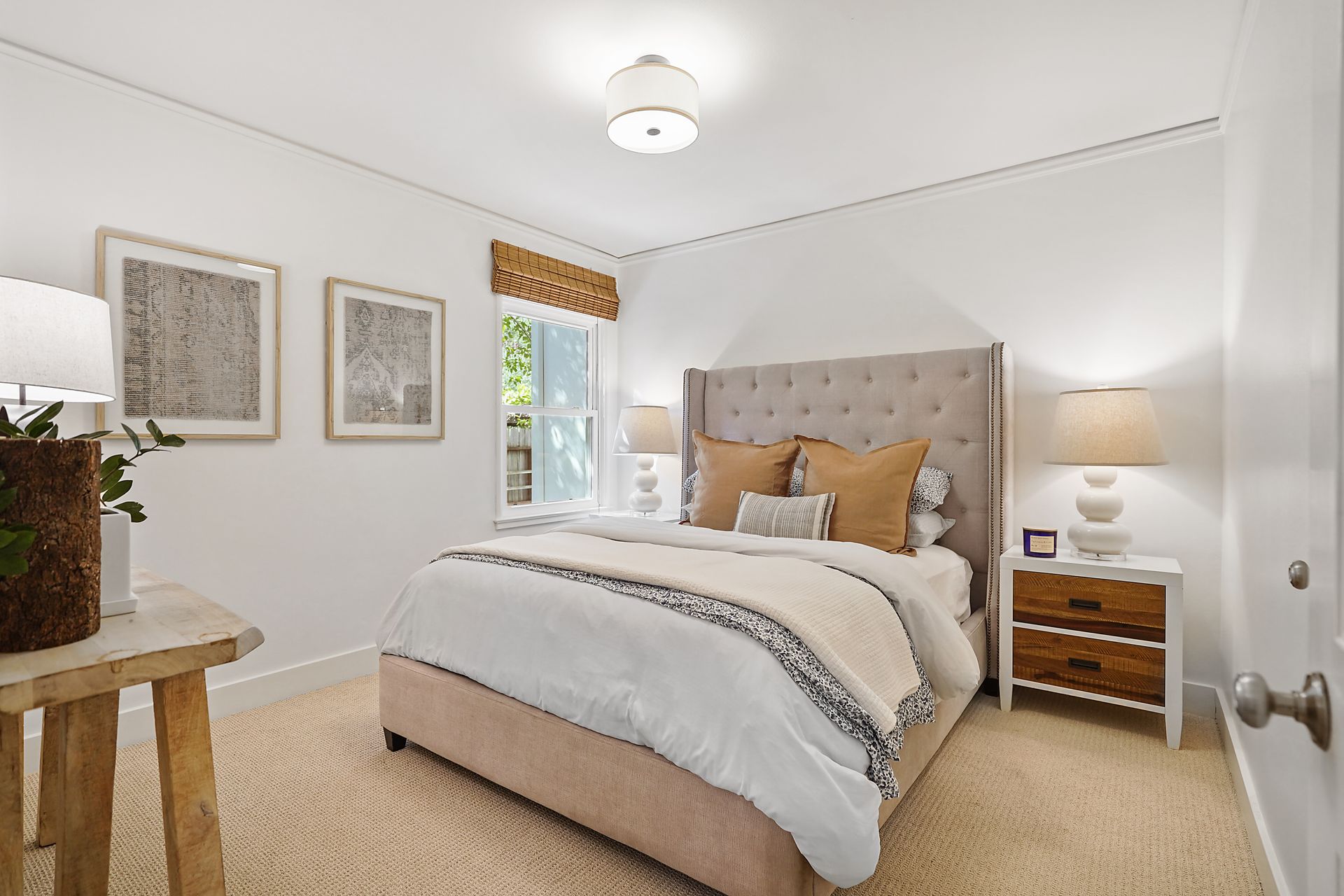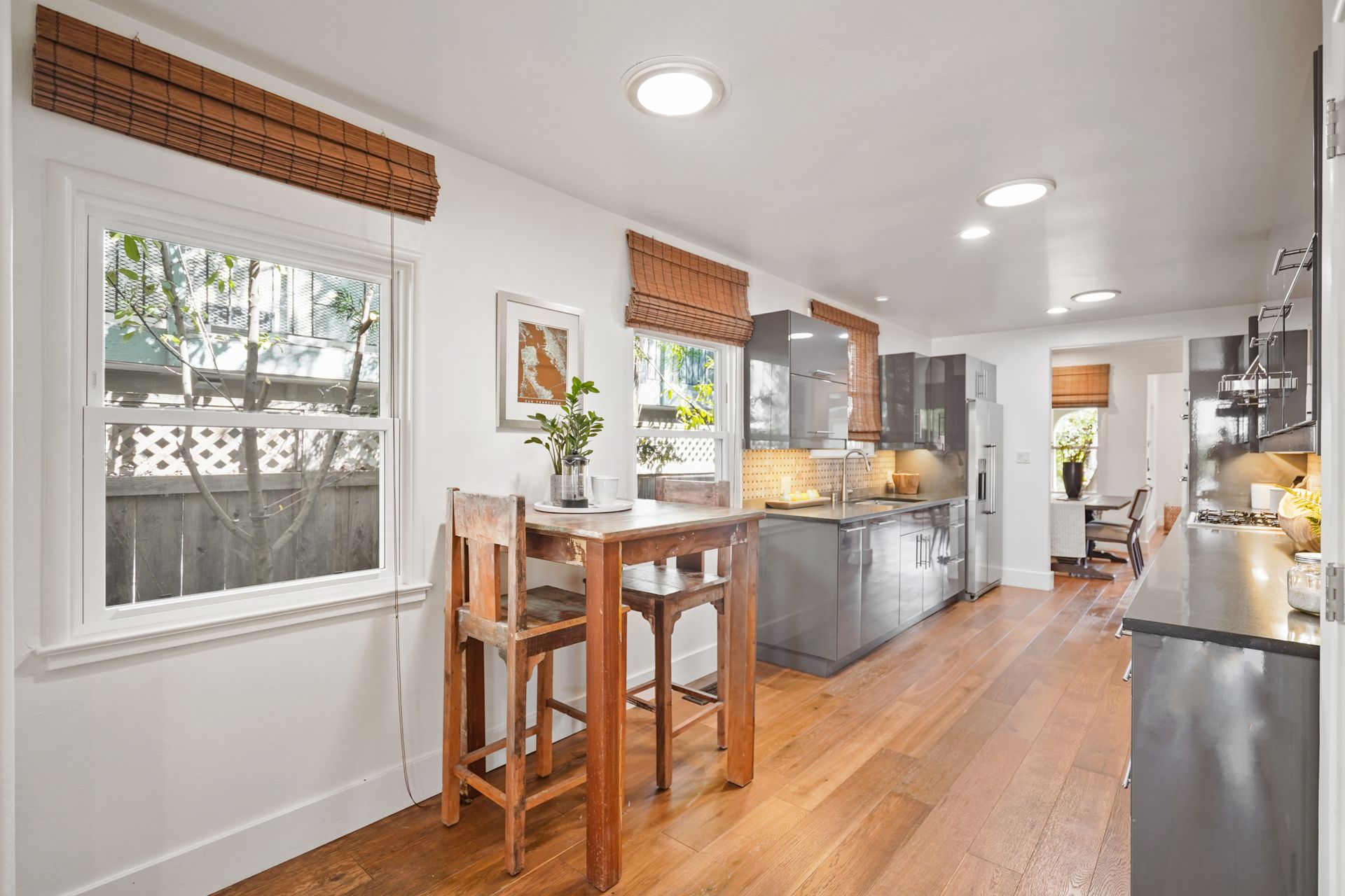 Just minutes to popular downtown San Anselmo's terrific restaurants, eclectic shops, fun community events and Farmers' Market sits this expanded three bedroom, two and one-half bath California Mediterranean offering classic vintage charm and a stylish remodel. Beam ceilings, wood floors and a fireplace in the living room adjoins a delightful dining area. The spacious kitchen with stainless-steel appliances and gas cooktop has plenty of counter space for multiple cooks and entertaining. A fabulous family room off the kitchen with a cozy gas fireplace, beam ceiling and recessed lighting is the central gathering area of the home. Directly off the family room you will enjoy a huge, sunny, level yard with a flagstone patio and eco-friendly lawn, ideal for play and parties. Two well-sized bedrooms downstairs and an impressive primary bedroom upstairs feature a high ceiling, walk-in closet, jetted tub, dual sinks, separate shower and relaxing balcony. Close to top-rated schools as well as world-class hiking and biking trails.