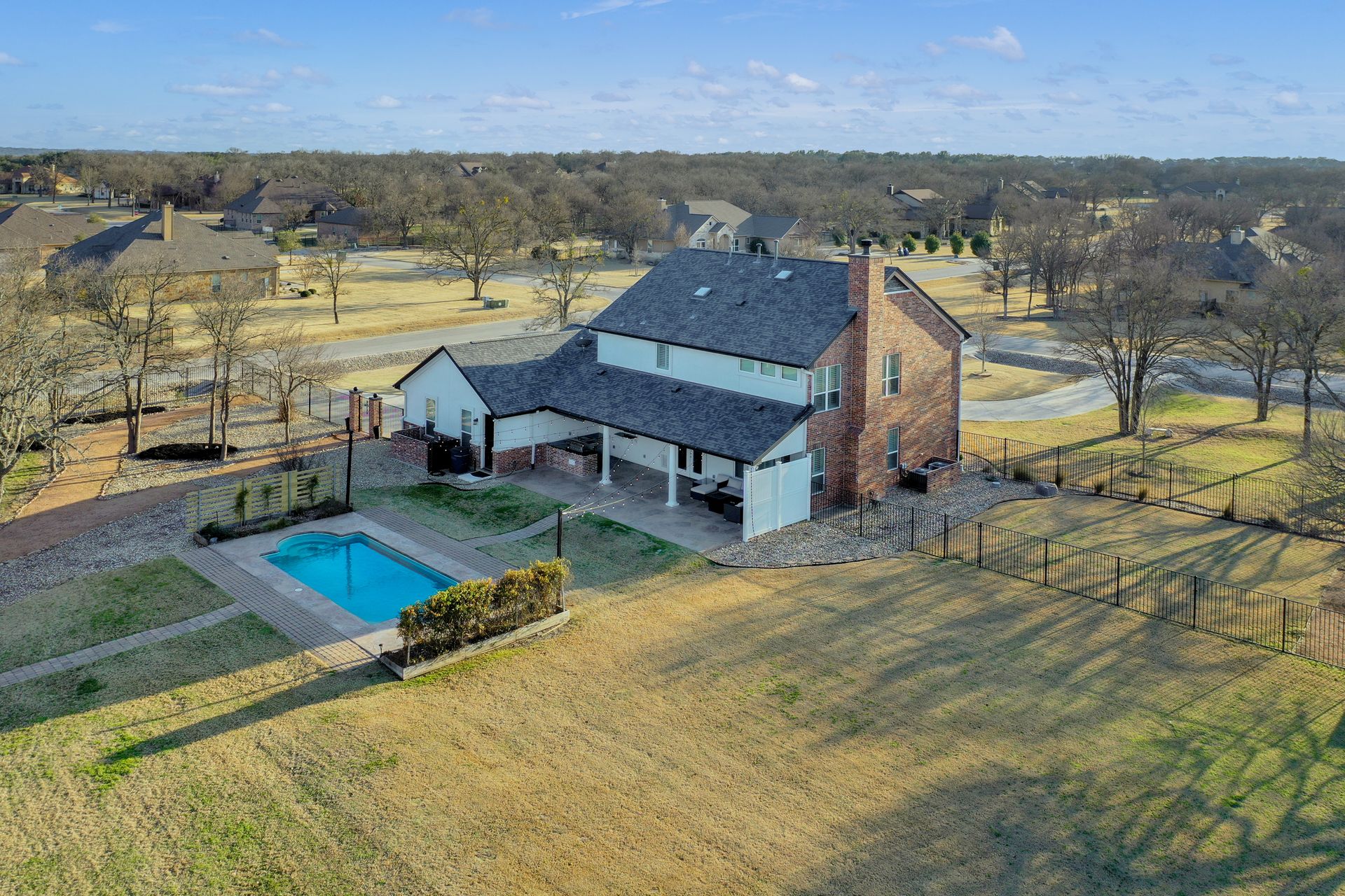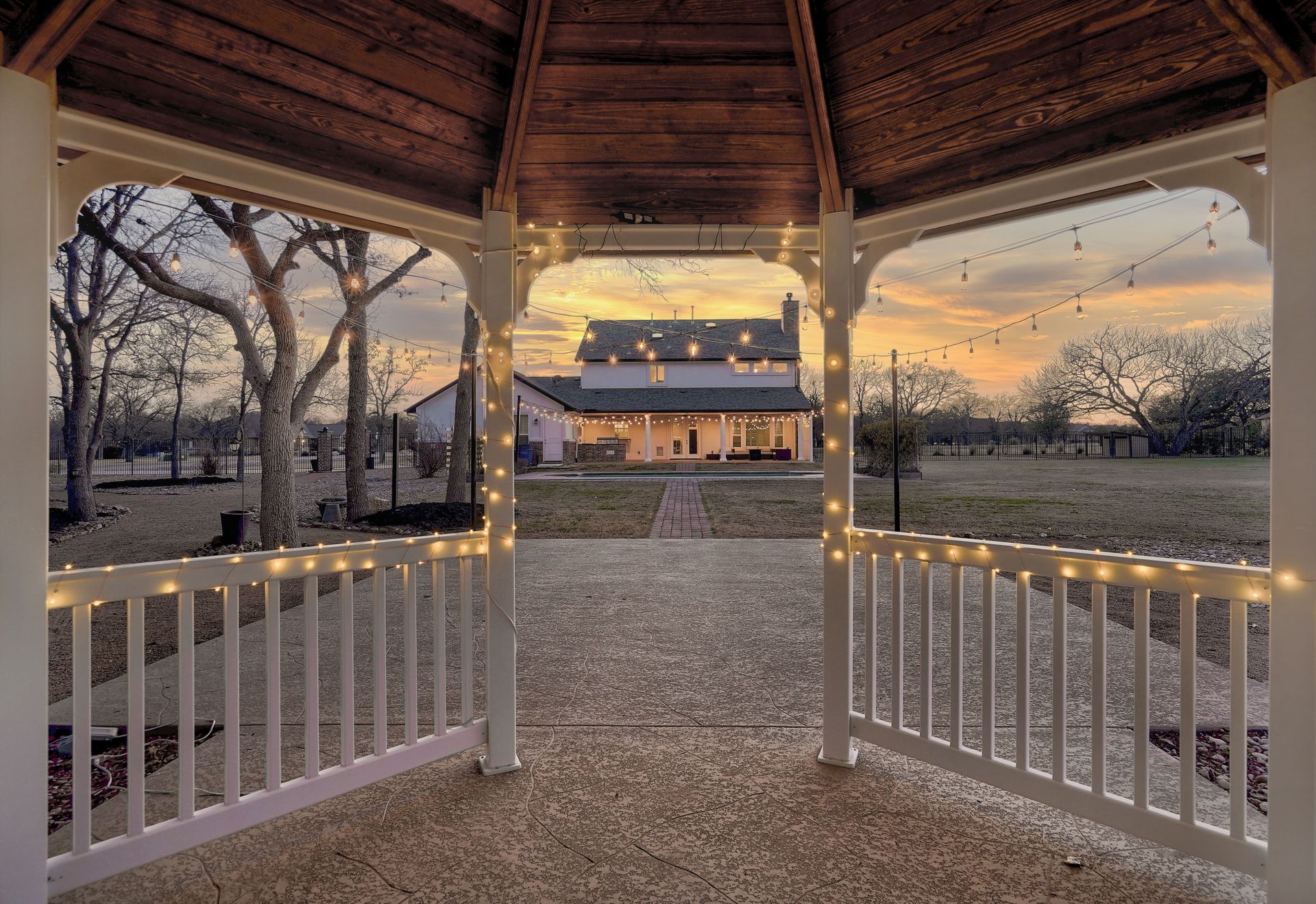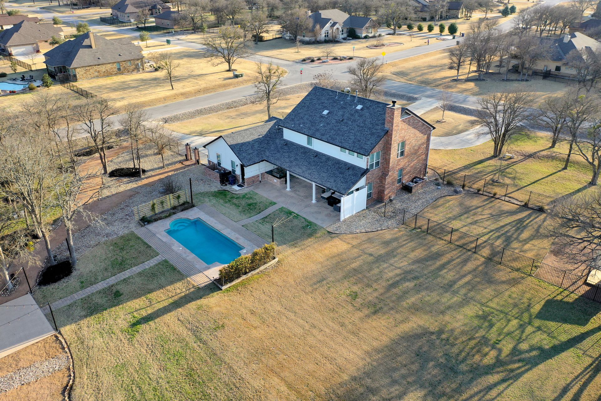 Want to be in the suburbs but have some elbow room between homes? This colonial style gem sits on 1.45 acres in the quaint and quiet Mission Oaks subdivision. The back yard is fully fenced with a saltwater pool, dedicated area with raised gardens equipped with its own water source, a gazebo with lighting and concrete pad for guests and a large dog run. The outdoor patio has a full outdoor kitchen with a gas grill, sink and convenient pass-through window to the indoor kitchen. Walk into the grand foyer with high ceilings and a traditional staircase. There is a dedicated office with multiple double French doors that open into the living room and a flex room with a full closet currently being used as a workout gym. The living room is large with a propane-fed fireplace, surround sound and zero grout line plank tile. The kitchen and dining lends itself well for large entertainment. Includes a 6-burner gas cooktop, double ovens, a wine cooler and beautiful glass front cabinets. And look at the chandelier in the dining room! Also, downstairs is a large half bath and separate laundry room. Upstairs boast three bedrooms with two full baths. The flooring is mahogany hard wood except for the primary bath which is the tile plank. The primary bedroom is upstairs with a deluxe on-suite primary bathroom including a soaking tub and walk in shower with double shower heads, double vanities and a walk-in closet. The plantation shutters are throughout the home as well. The other two bedrooms upstairs share a large bathroom with a claw foot tub and shower. Heading to the garage the full shelving and cabinet units will convey with the home as well as all the televisions. There is extra attic access in both attics as well. Contact me today for your private showing