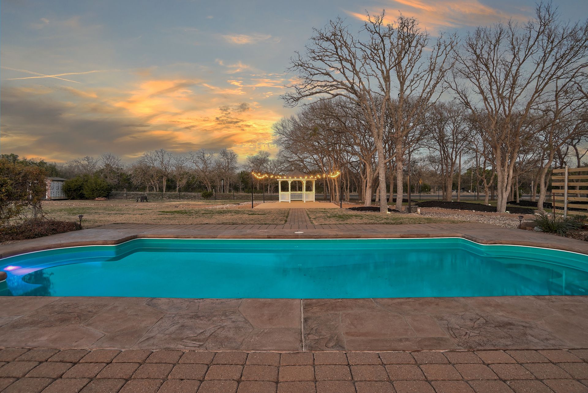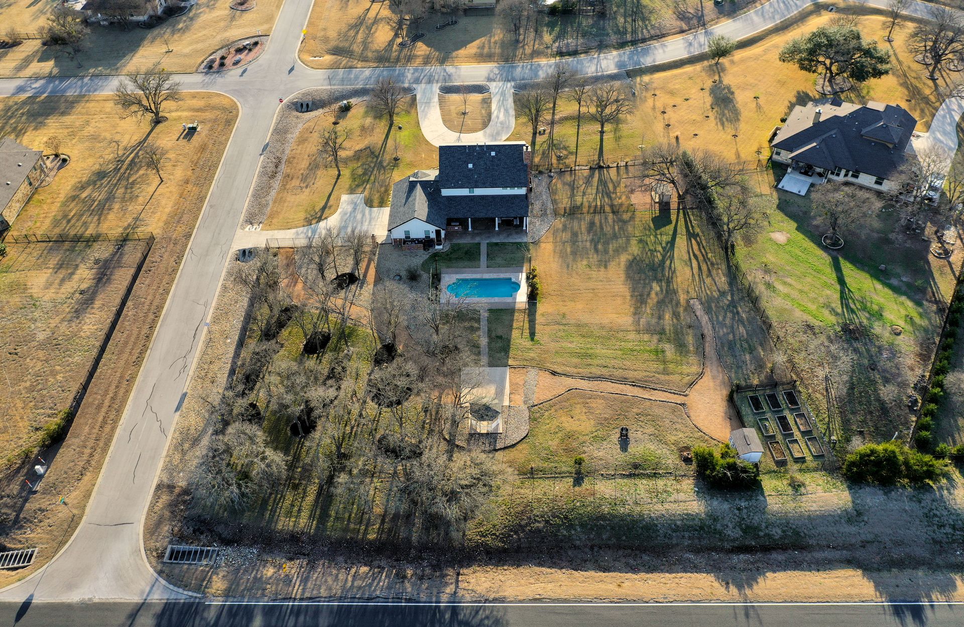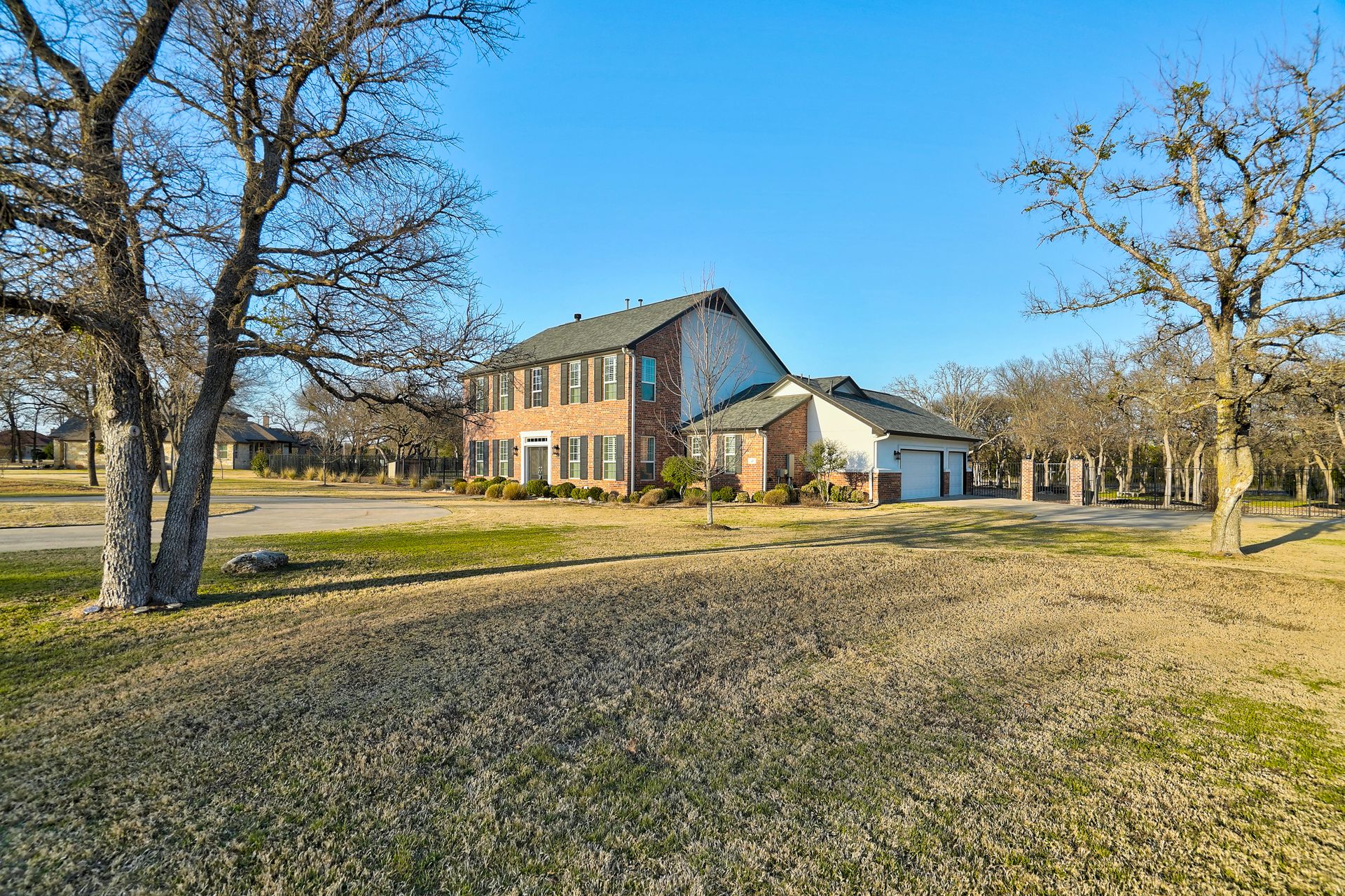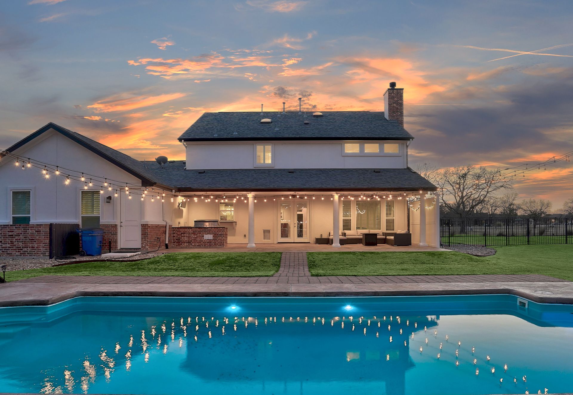 Want to be in the suburbs but have some elbow room between homes? This colonial style gem sits on 1.45 acres in the quaint and quiet Mission Oaks subdivision. The back yard is fully fenced with a saltwater pool, dedicated area with raised gardens equipped with its own water source, a gazebo with lighting and concrete pad for guests and a large dog run. The outdoor patio has a full outdoor kitchen with a gas grill, sink and convenient pass-through window to the indoor kitchen. Walk into the grand foyer with high ceilings and a traditional staircase. There is a dedicated office with multiple double French doors that open into the living room and a flex room with a full closet currently being used as a workout gym. The living room is large with a propane-fed fireplace, surround sound and zero grout line plank tile. The kitchen and dining lends itself well for large entertainment. Includes a 6-burner gas cooktop, double ovens, a wine cooler and beautiful glass front cabinets. And look at the chandelier in the dining room! Also, downstairs is a large half bath and separate laundry room. Upstairs boast three bedrooms with two full baths. The flooring is mahogany hard wood except for the primary bath which is the tile plank. The primary bedroom is upstairs with a deluxe on-suite primary bathroom including a soaking tub and walk in shower with double shower heads, double vanities and a walk-in closet. The plantation shutters are throughout the home as well. The other two bedrooms upstairs share a large bathroom with a claw foot tub and shower. Heading to the garage the full shelving and cabinet units will convey with the home as well as all the televisions. There is extra attic access in both attics as well. Contact me today for your private showing