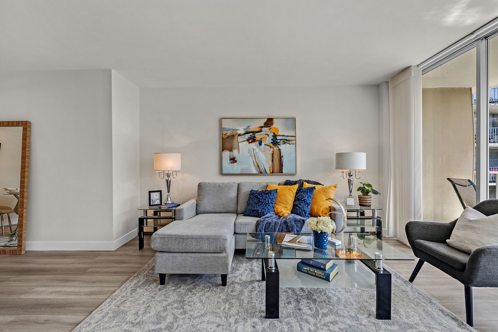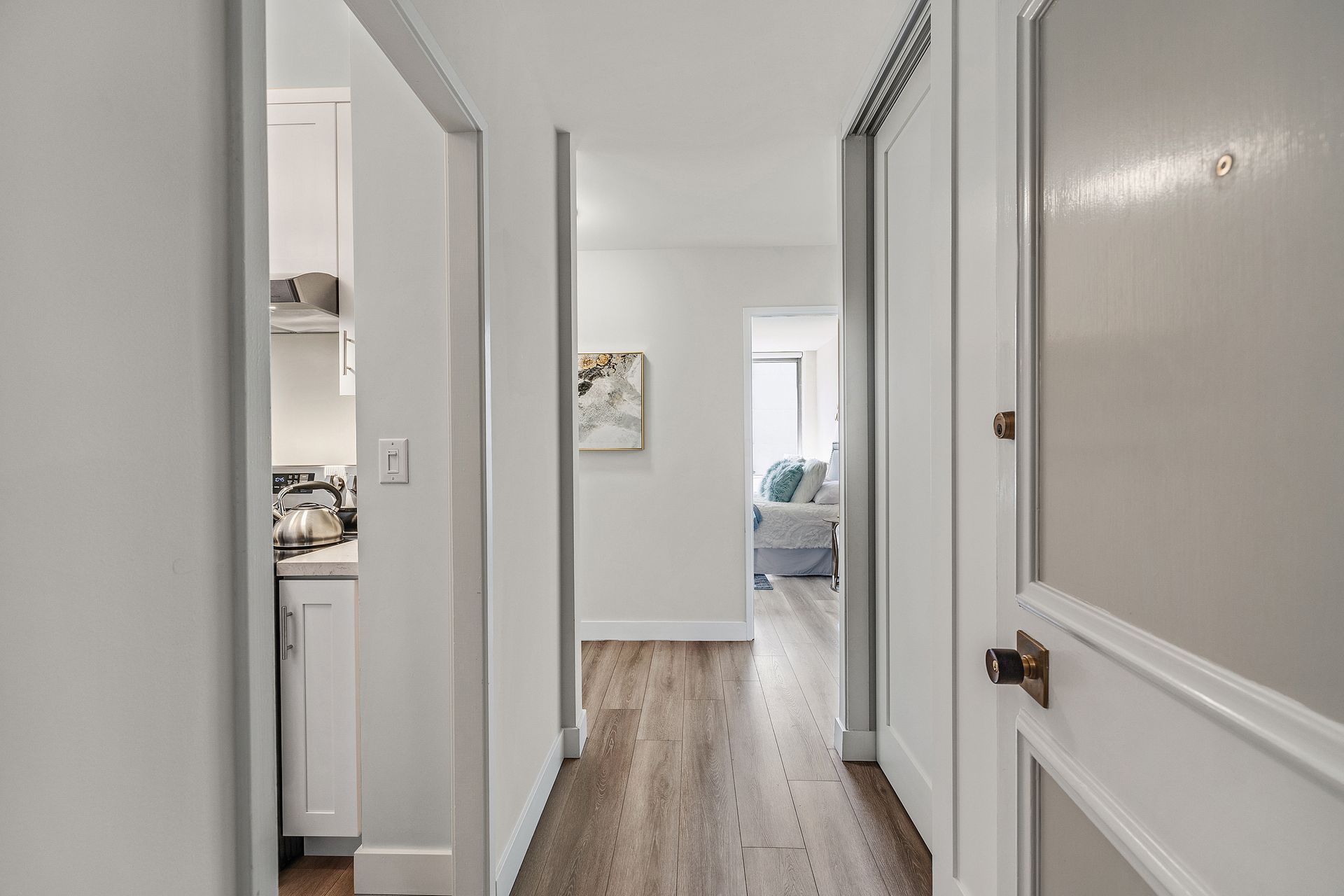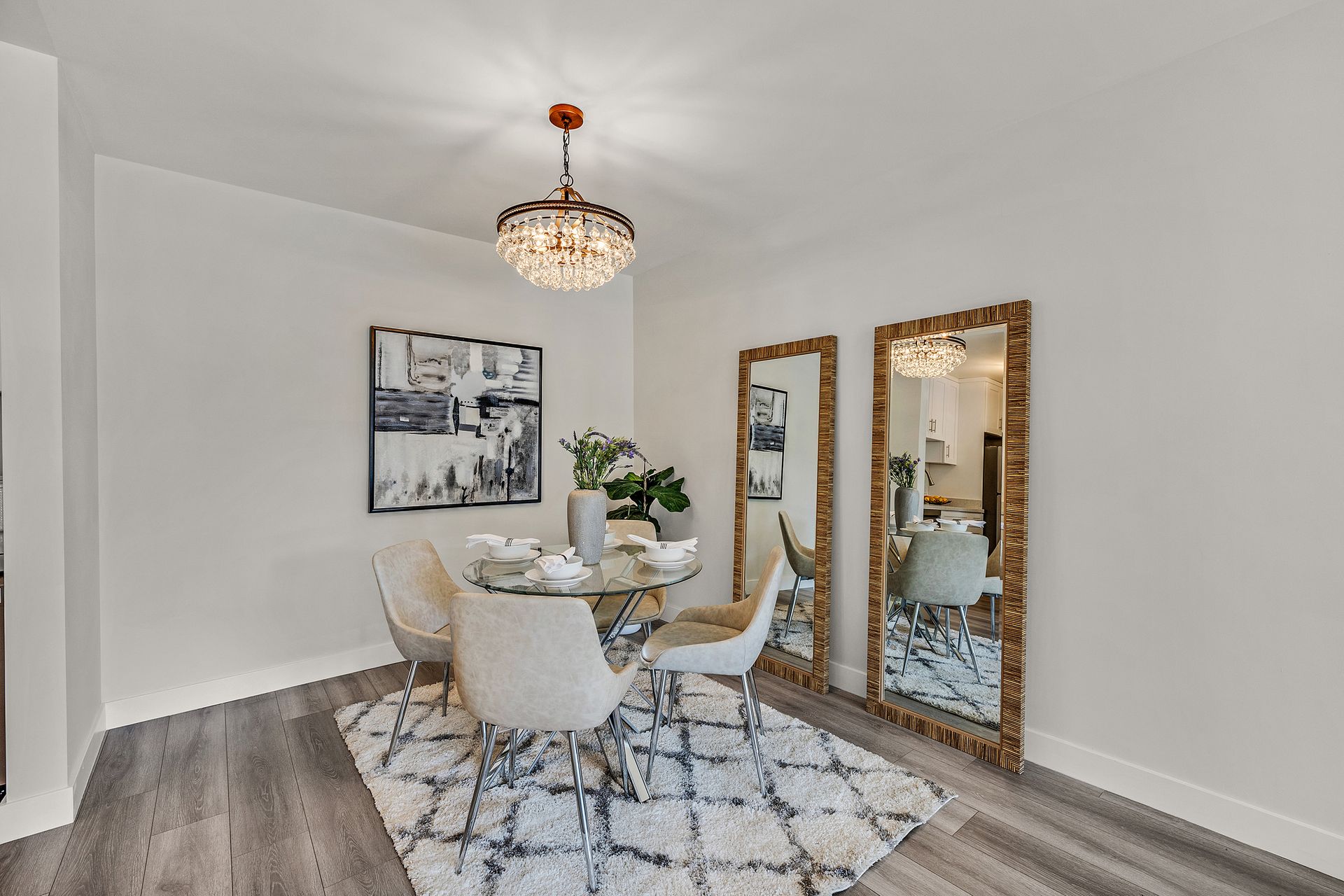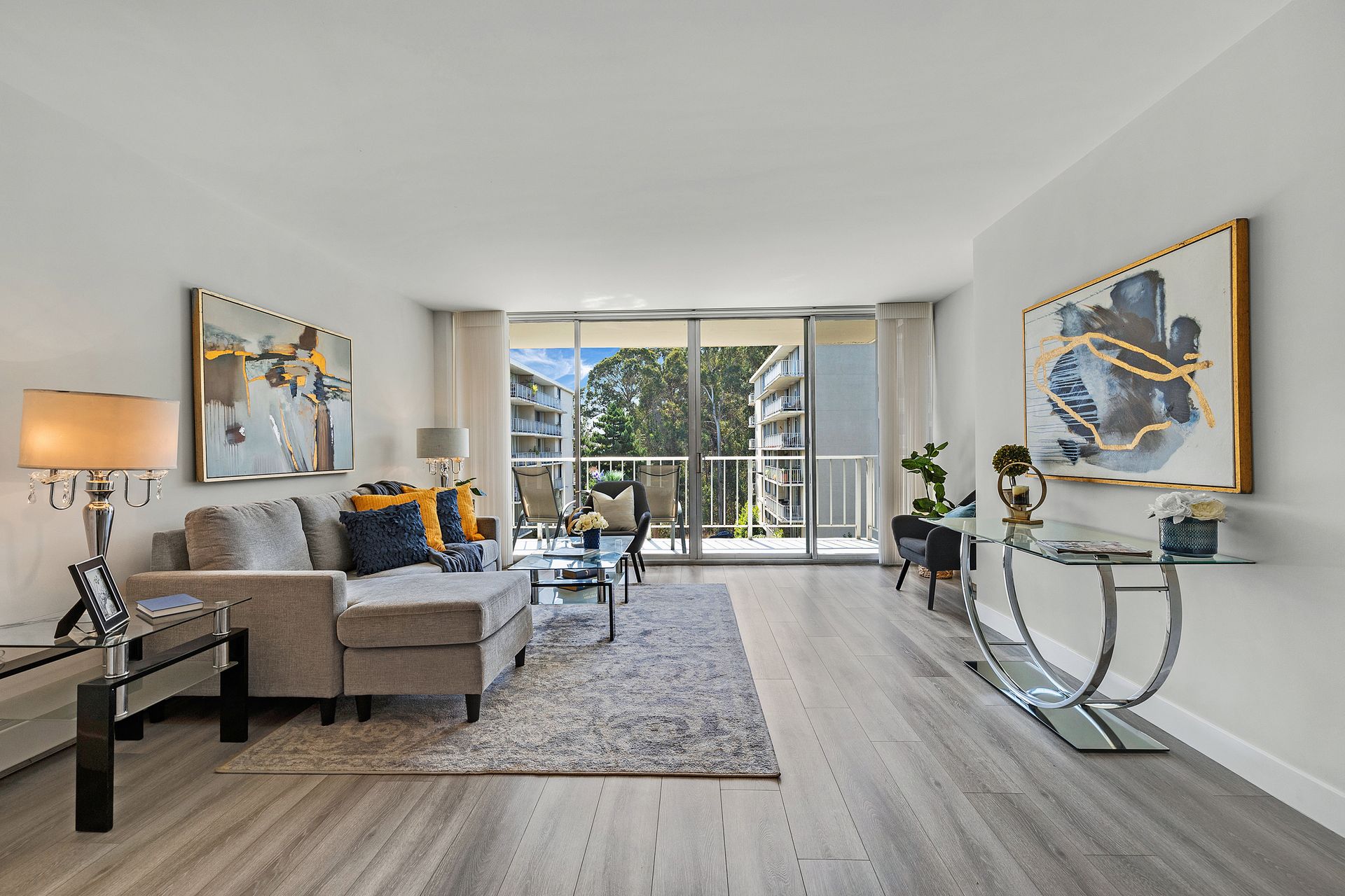 Graceful natural light streams through expansive floor-to-ceiling windows, emphasizing the distinctive clean lines, light plank flooring and contemporary aesthetic throughout. Thoughtfully designed for optimal functionality, the open living spaces seamlessly connect and effortlessly flow to the exclusive deck, inviting occupants to experience an indoor/outdoor lifestyle.