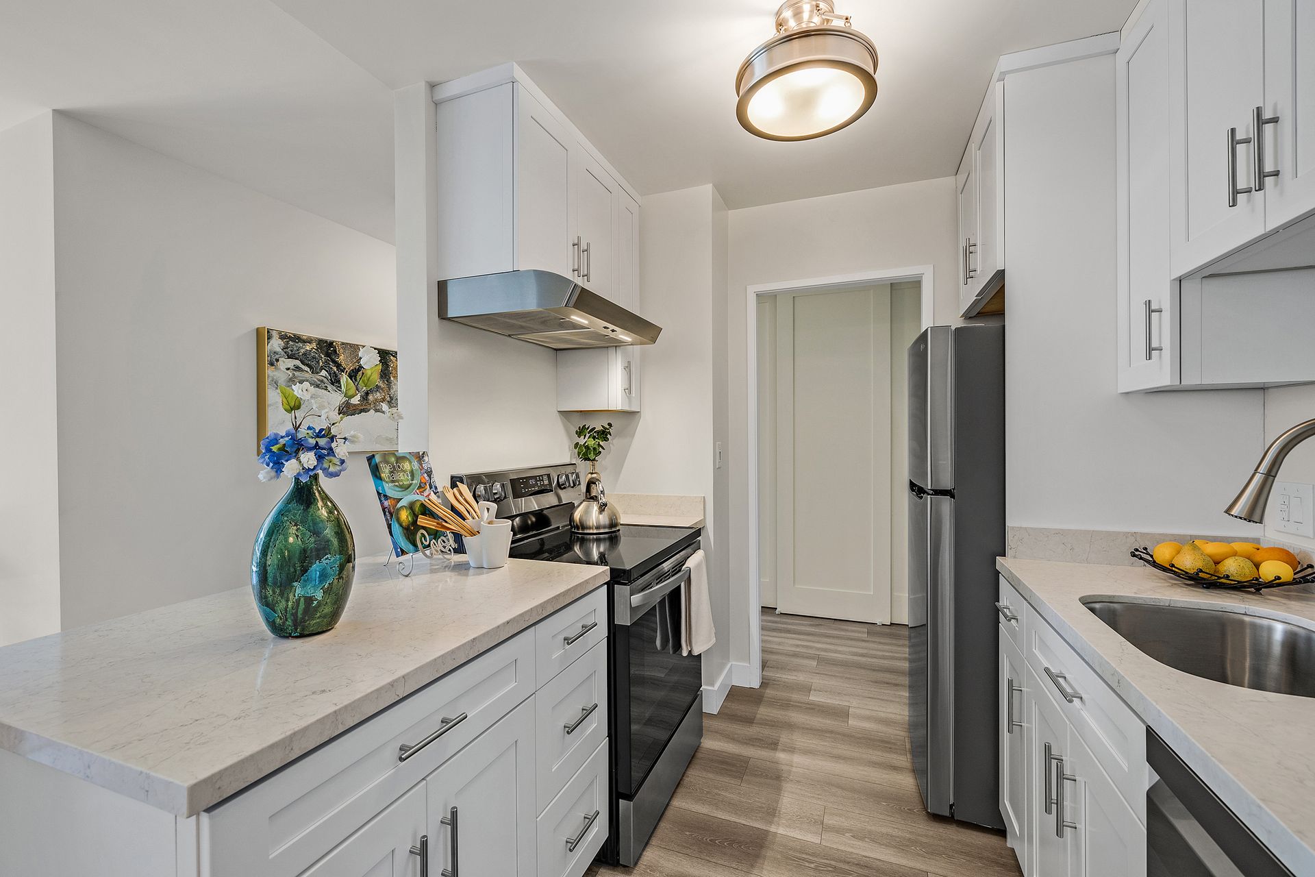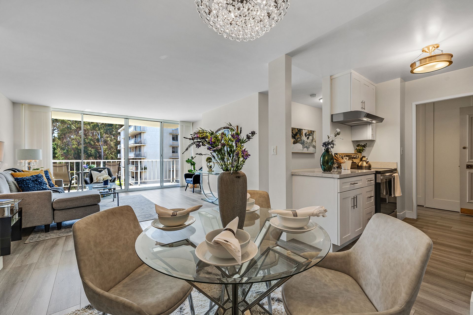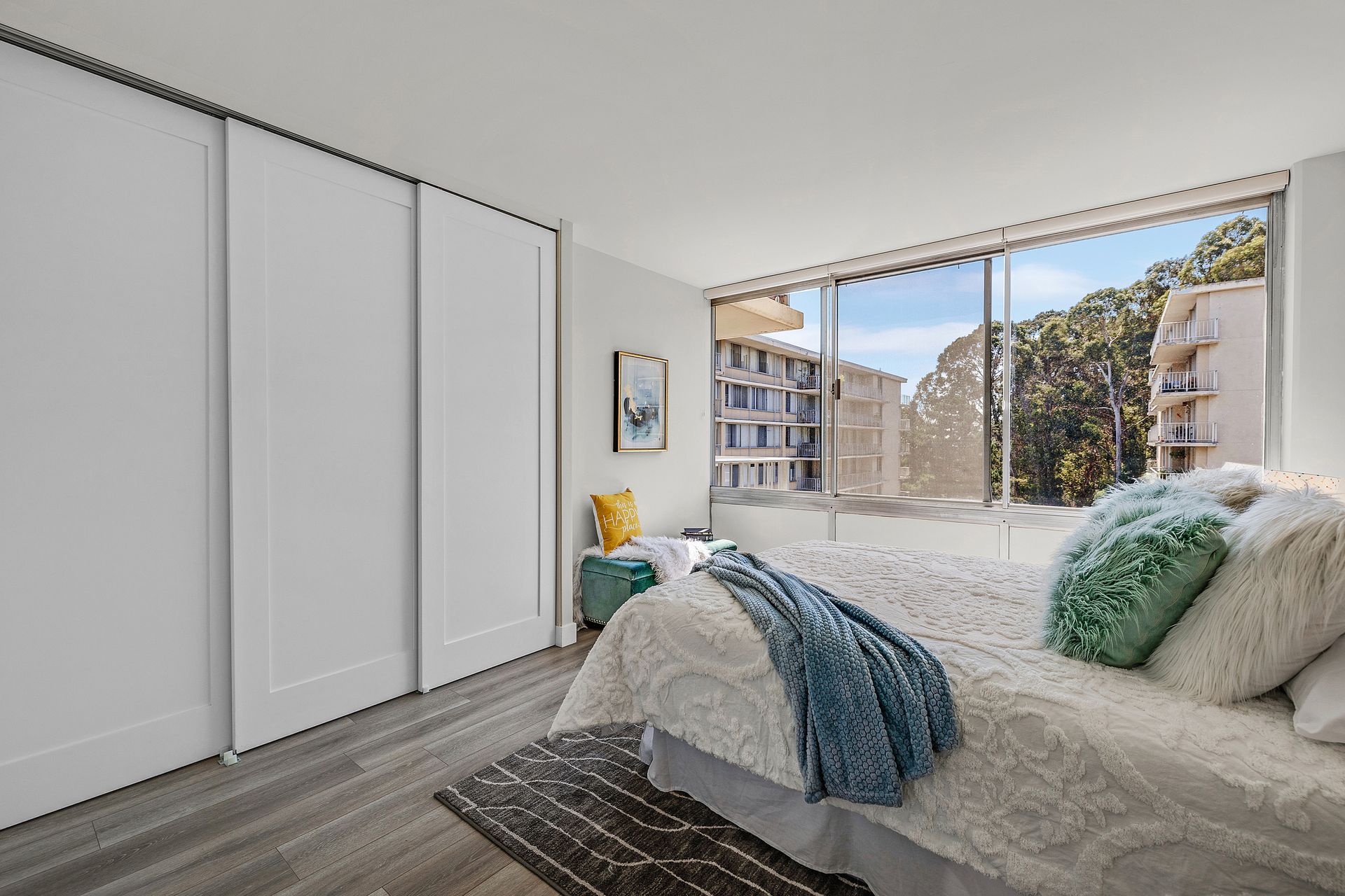 Fully renovated and meticulously maintained, this one bedroom/one bathroom mid-century modern condo in pristine condition boasts a newly updated kitchen with quartz countertops, stainless steel appliances, and shaker cabinets, an updated modern bathroom, newer closets with built-in storage and newly installed light laminate floors throughout. Elegant newly installed Hunter Douglas custom window treatments adorn the expansive floor-to-ceiling windows. Simplicity and sophistication converge in this charming home nestled in the rolling hills of Belmont.