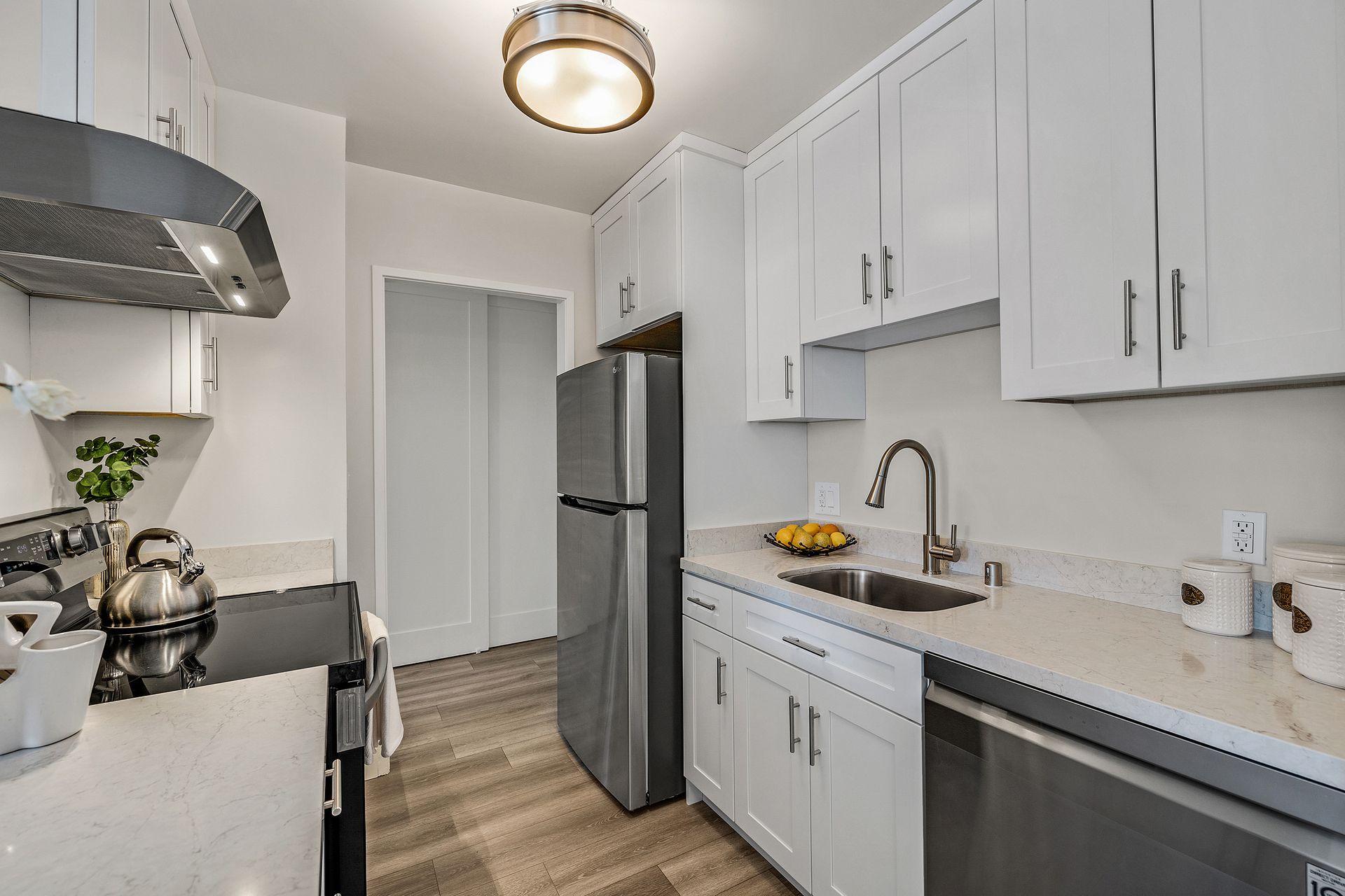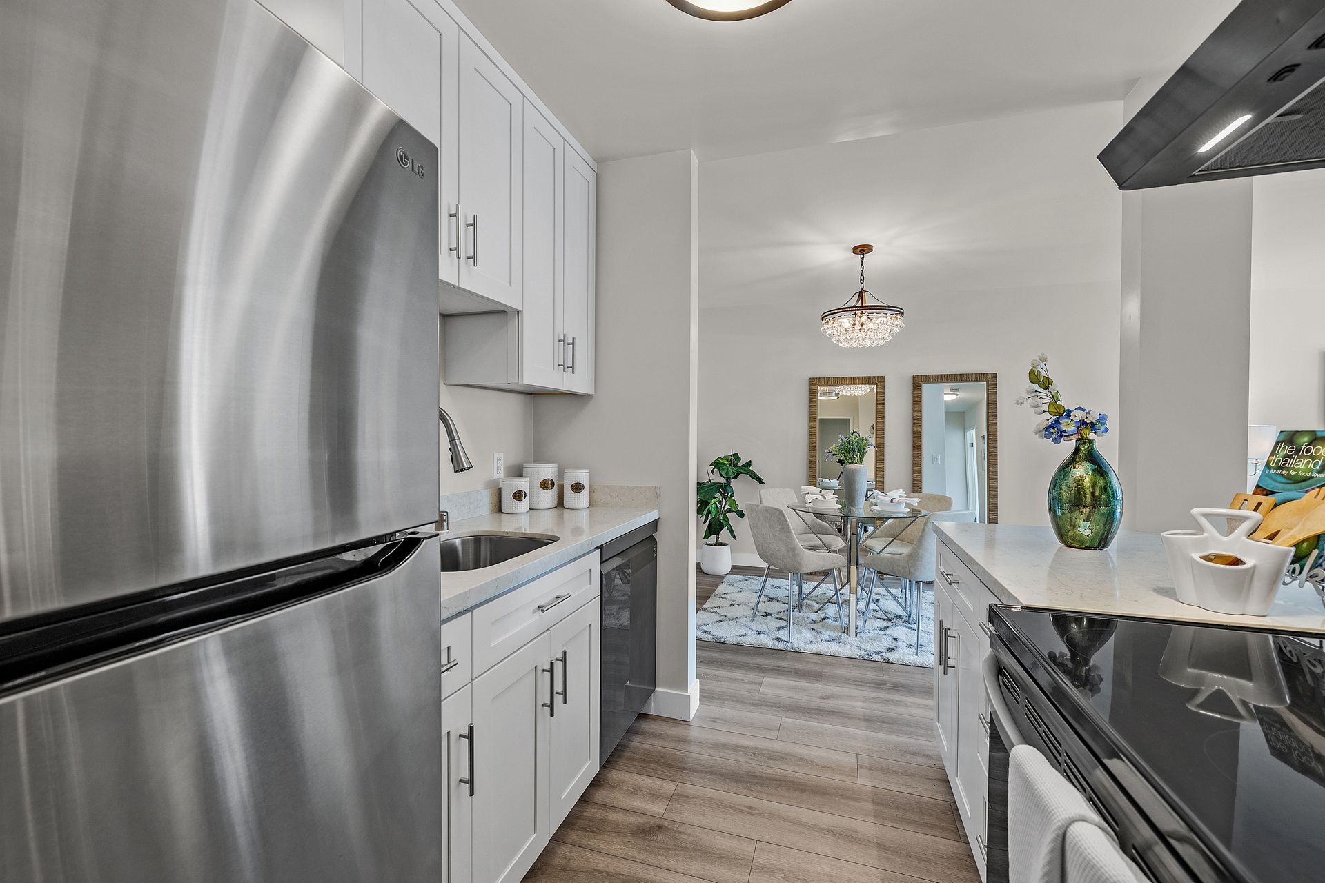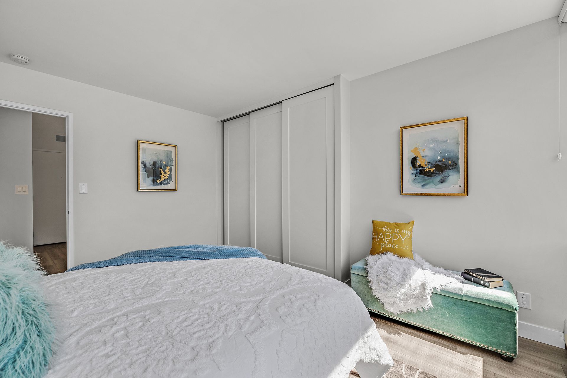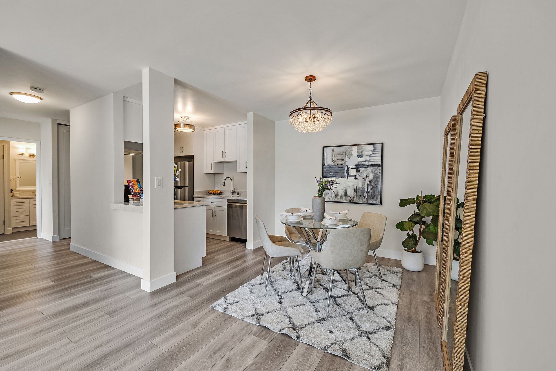 Fully renovated and meticulously maintained, this one bedroom/one bathroom mid-century modern condo in pristine condition boasts a newly updated kitchen with quartz countertops, stainless steel appliances, and shaker cabinets, an updated modern bathroom, newer closets with built-in storage and newly installed light laminate floors throughout. Elegant newly installed Hunter Douglas custom window treatments adorn the expansive floor-to-ceiling windows. Simplicity and sophistication converge in this charming home nestled in the rolling hills of Belmont.
