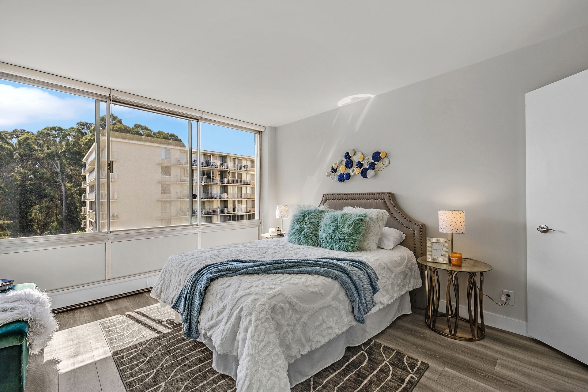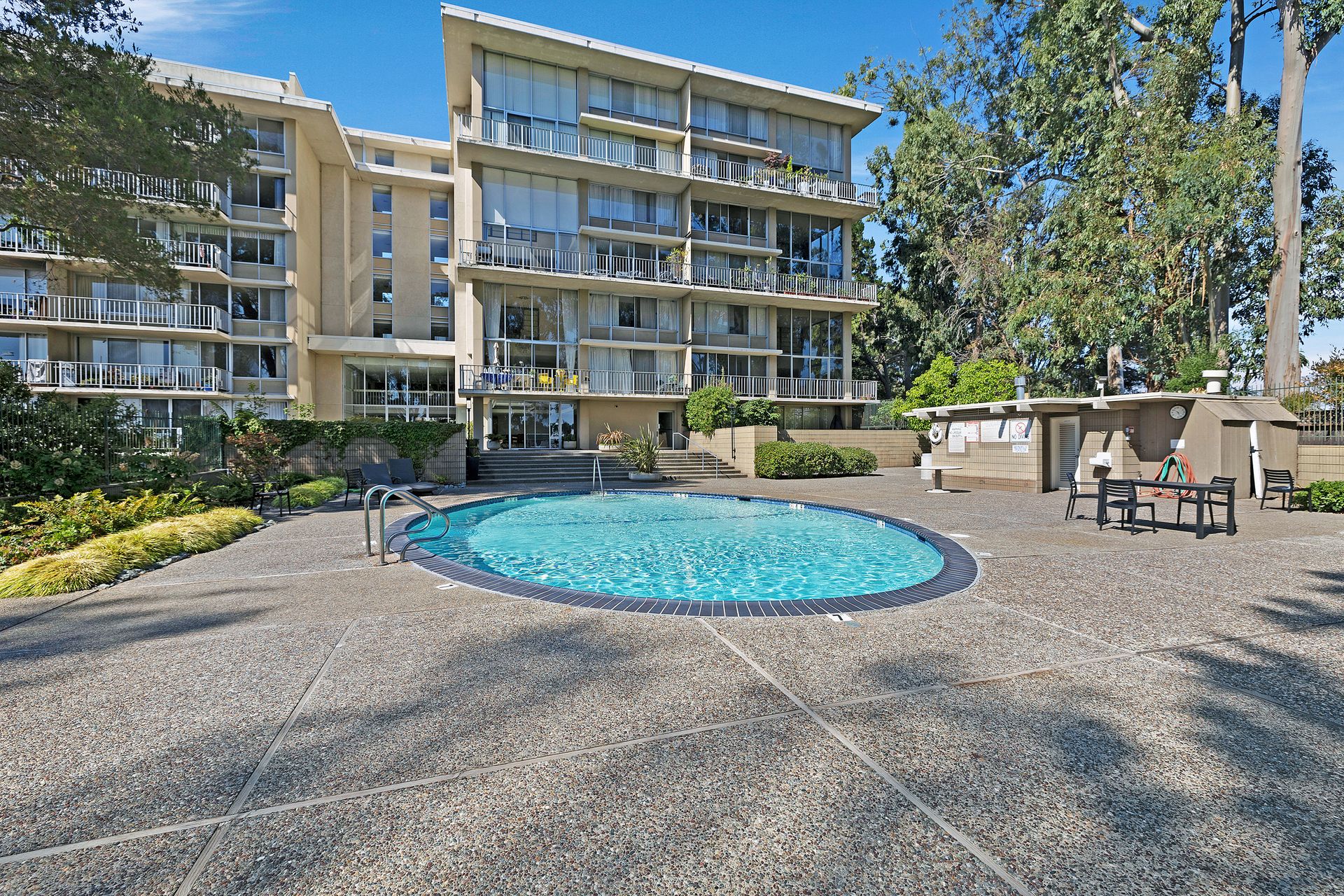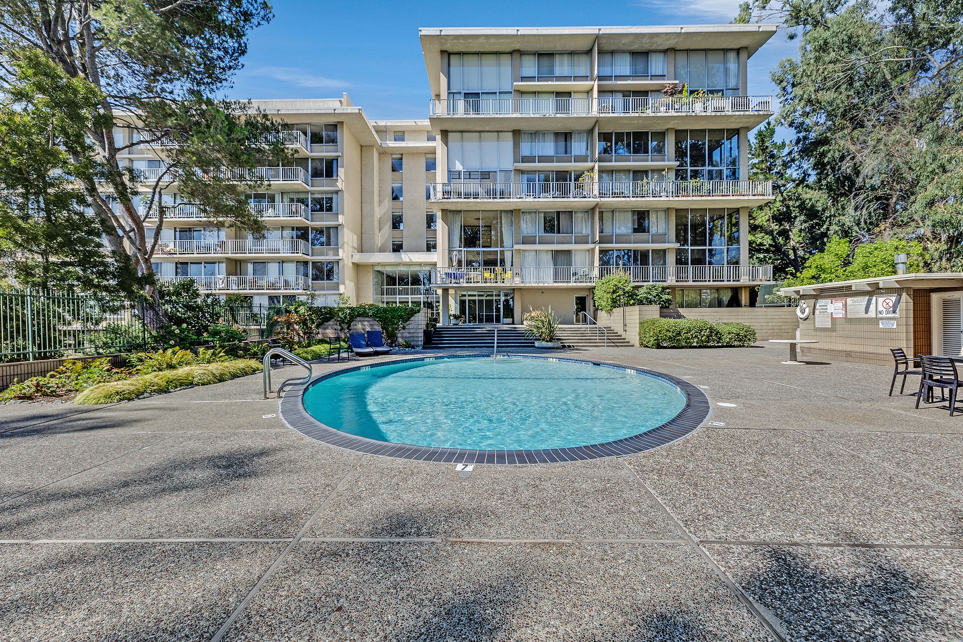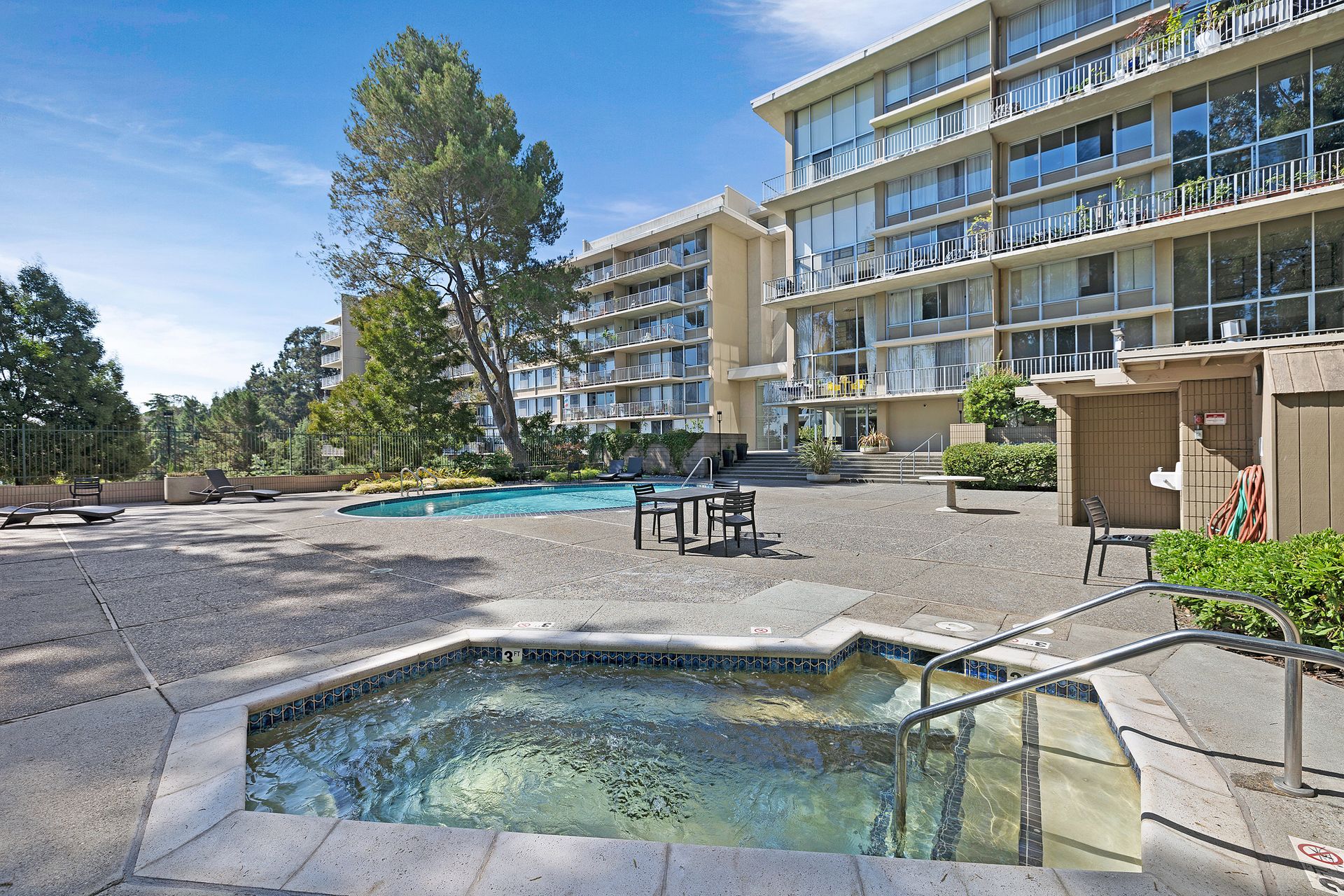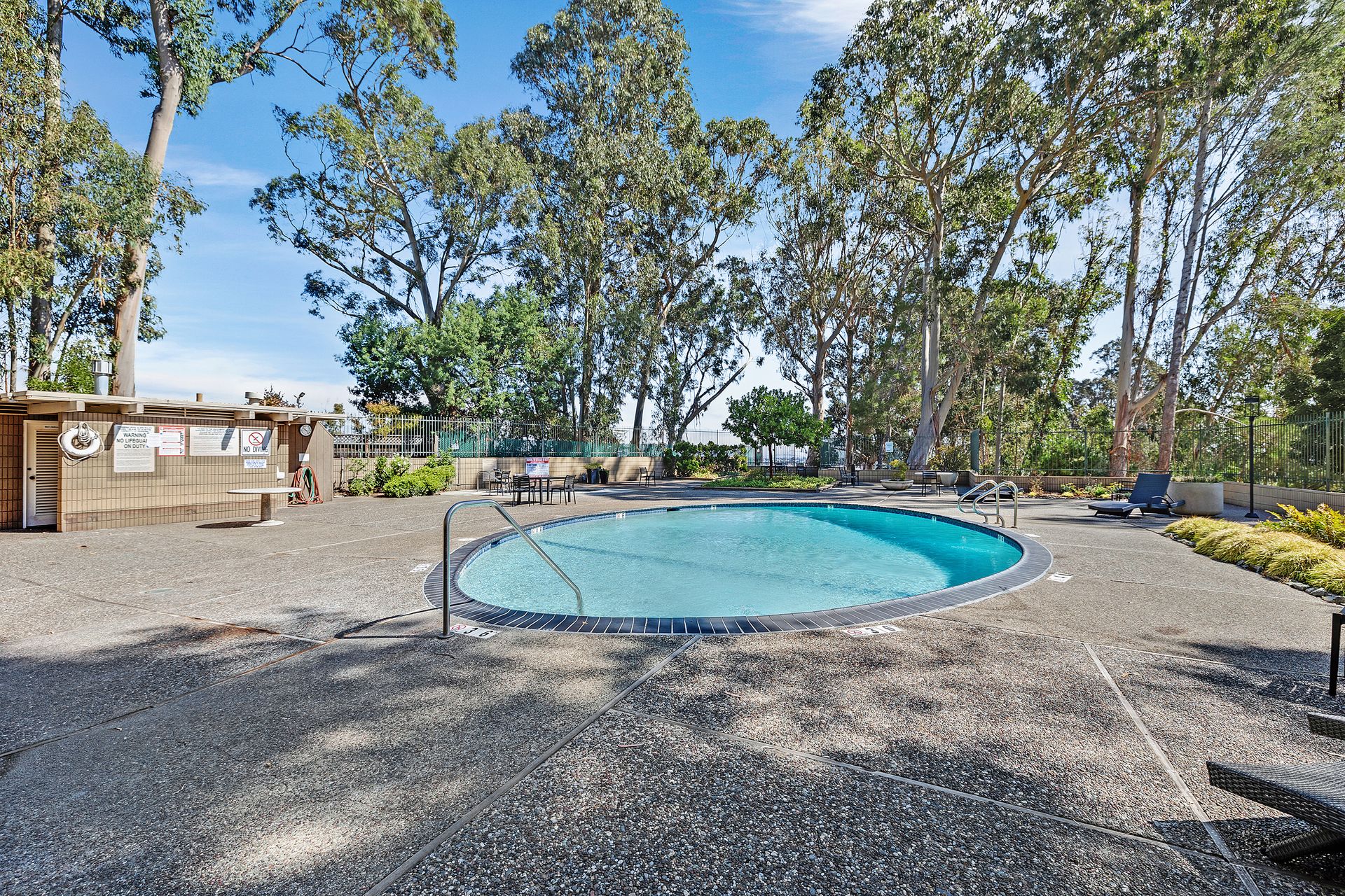 Situated on the sixth floor of a secure building, this unit includes one deeded underground parking spot and an additional storage facility. Enjoy remarkable amenities such as a sky room and rooftop deck with captivating bay views, two swimming pools, two spas, a gym and a billiards room. Just moments away from Davey Glen Park and minutes to Caltrain and major commuter routes!