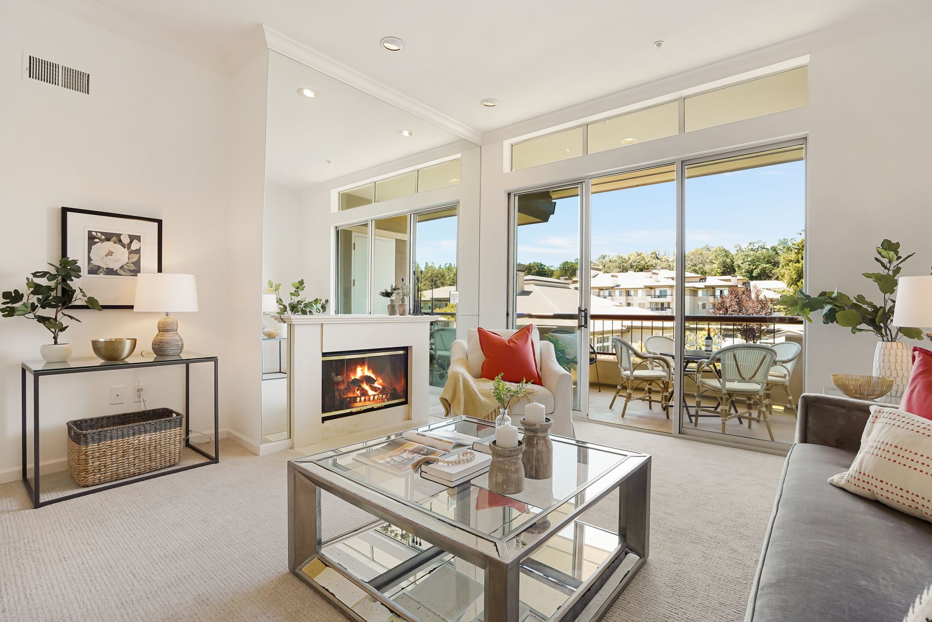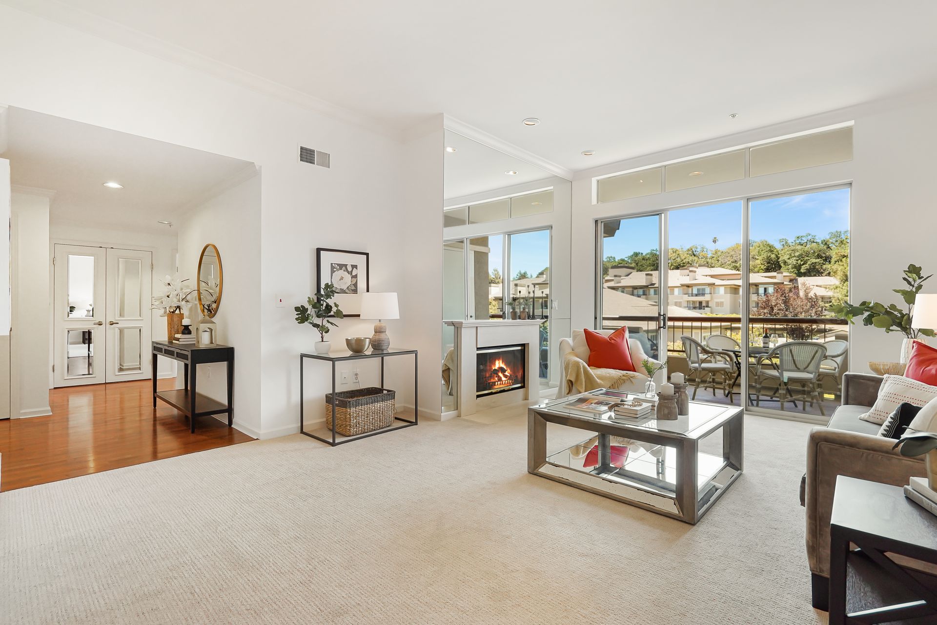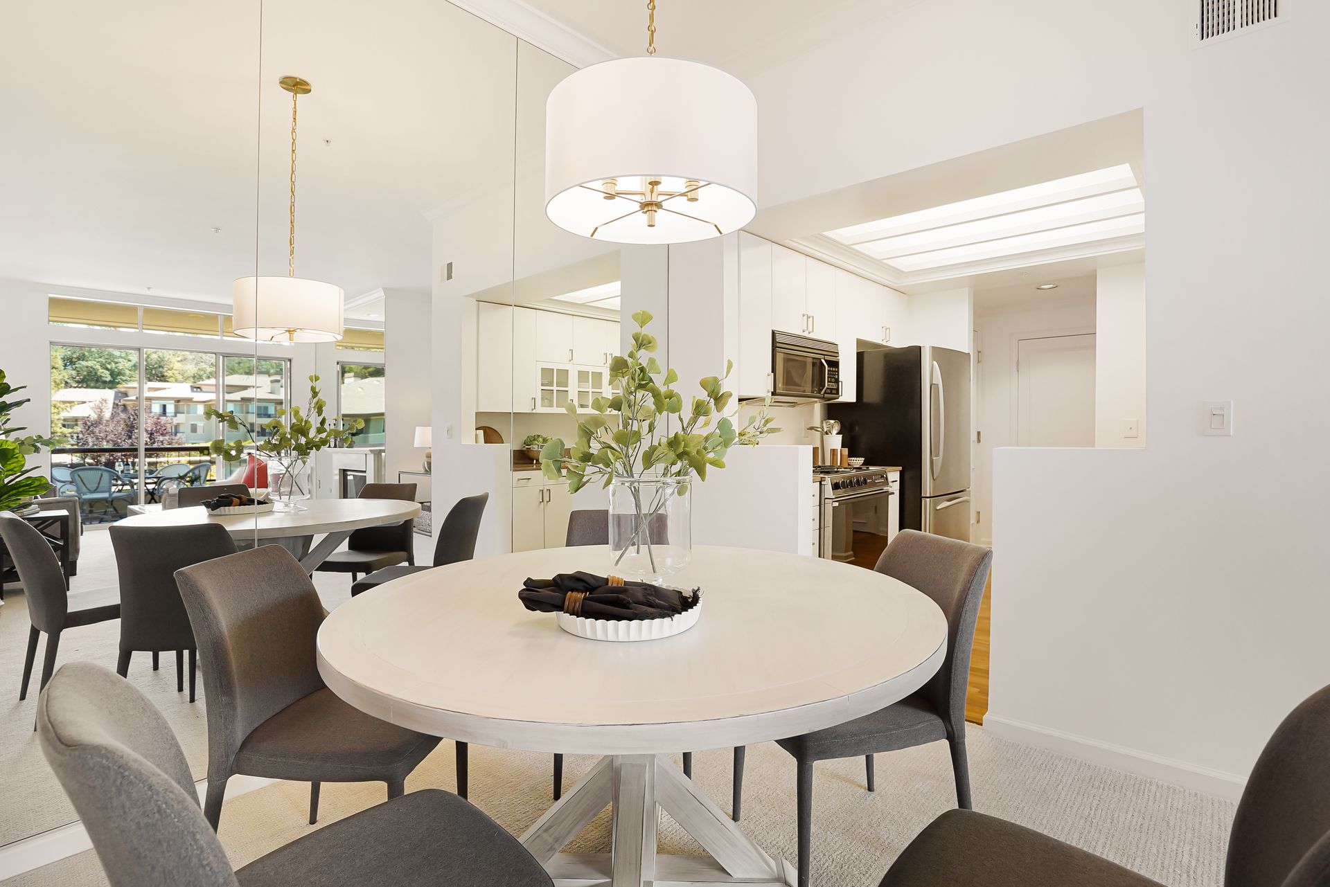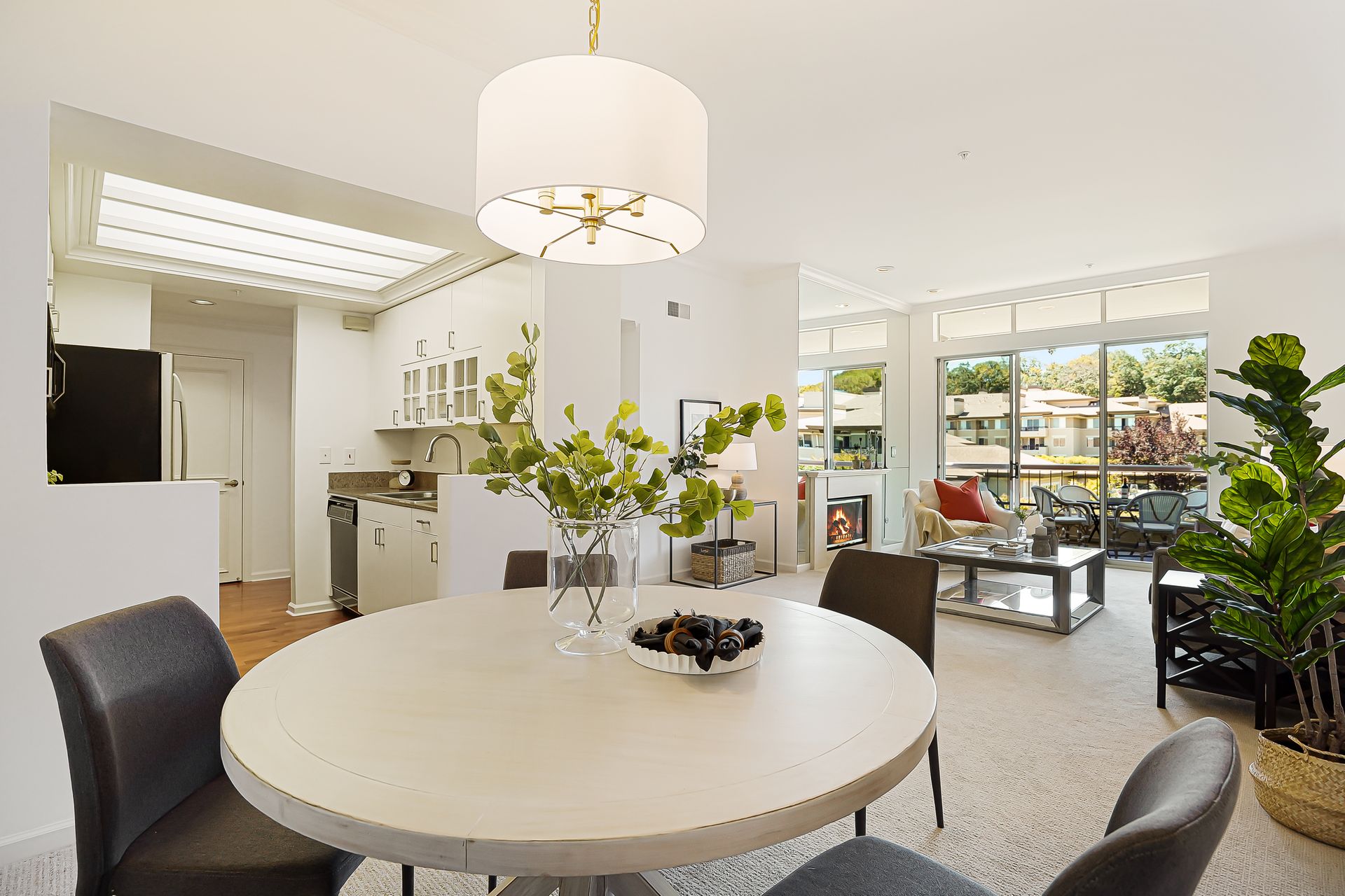 This top-floor unit and premium location offer exceptional views. A south-facing orientation, floor-to-ceiling windows, and 10-foot ceiling heights allow in plenty of natural light. Special features include hardwood floors, designer mirrored walls, gas fireplace, newly installed carpet, freshly painted walls and cabinetry, newer hardware, light fixtures and faucets. The monthly assessment is $2,701.98/unit. The meal plan is $833/person. Fees are mandatory. Pets are welcome. Marin Civic Center, McGinnis Golf Club, twice-weekly farmer's market, Northgate Shopping, and the world-famous wine country of Sonoma and Napa are nearby.