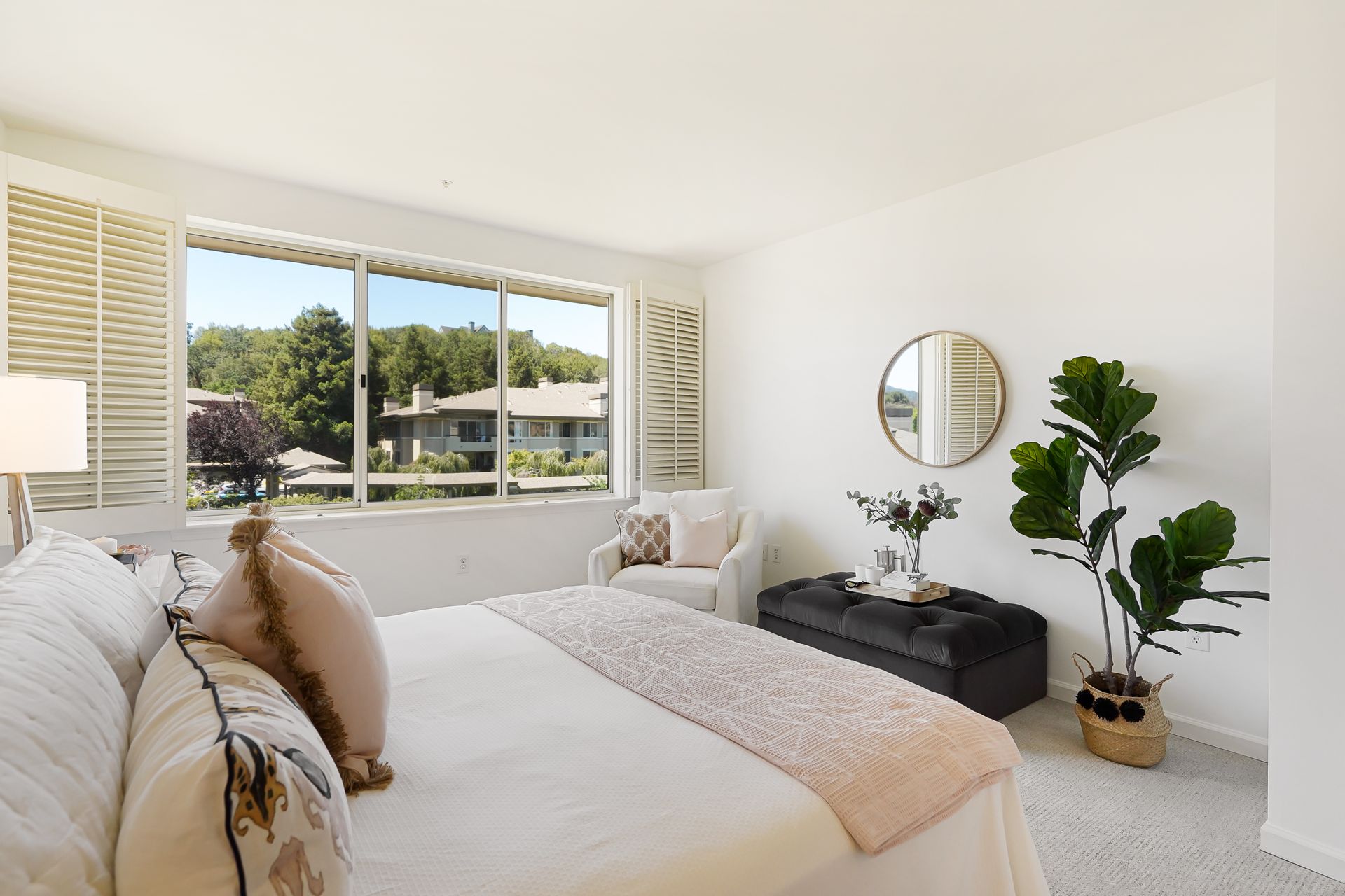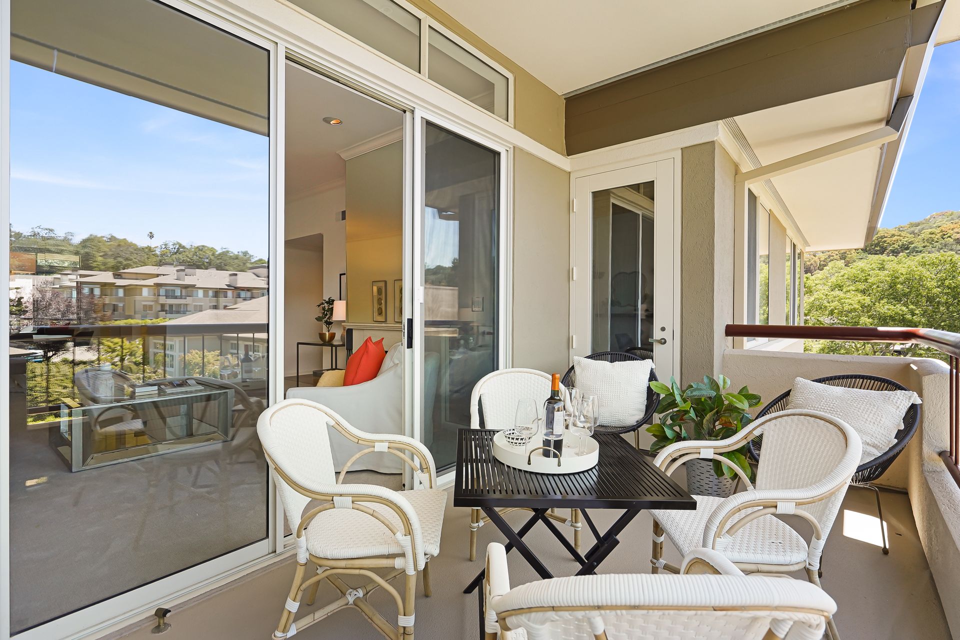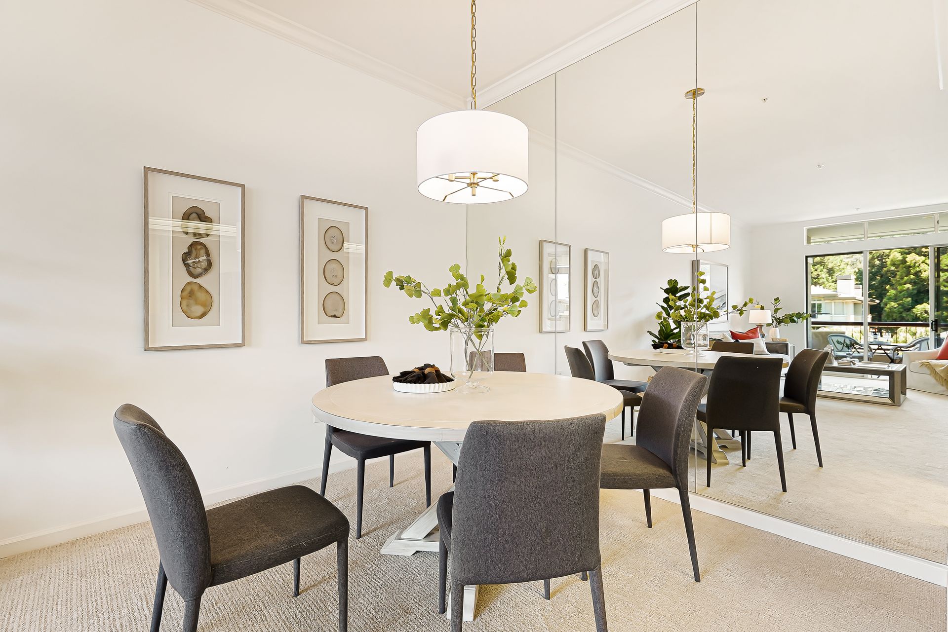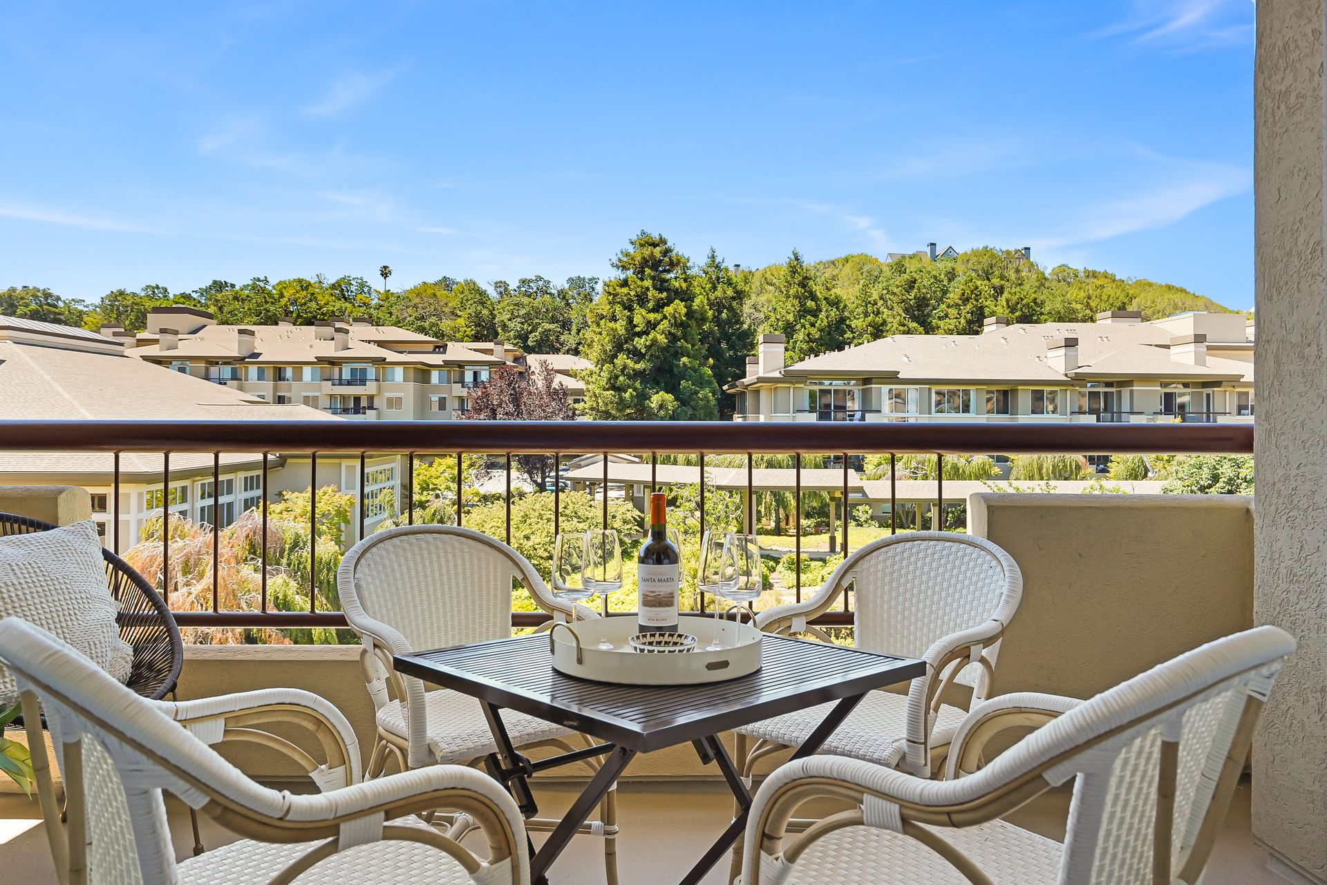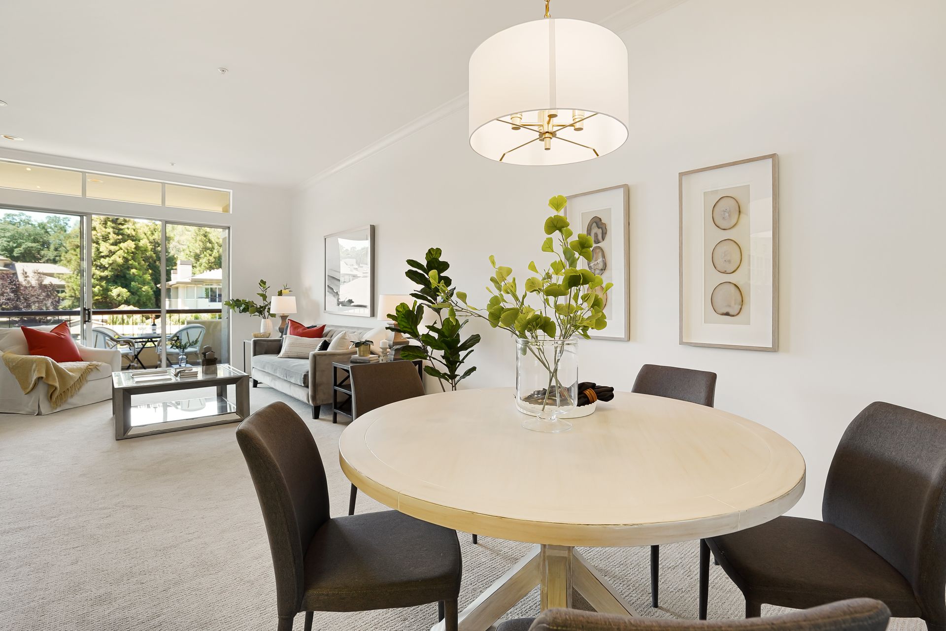 This top-floor unit and premium location offer exceptional views. A south-facing orientation, floor-to-ceiling windows, and 10-foot ceiling heights allow in plenty of natural light. Special features include hardwood floors, designer mirrored walls, gas fireplace, newly installed carpet, freshly painted walls and cabinetry, newer hardware, light fixtures and faucets. The monthly assessment is $2,701.98/unit. The meal plan is $833/person. Fees are mandatory. Pets are welcome. Marin Civic Center, McGinnis Golf Club, twice-weekly farmer's market, Northgate Shopping, and the world-famous wine country of Sonoma and Napa are nearby.