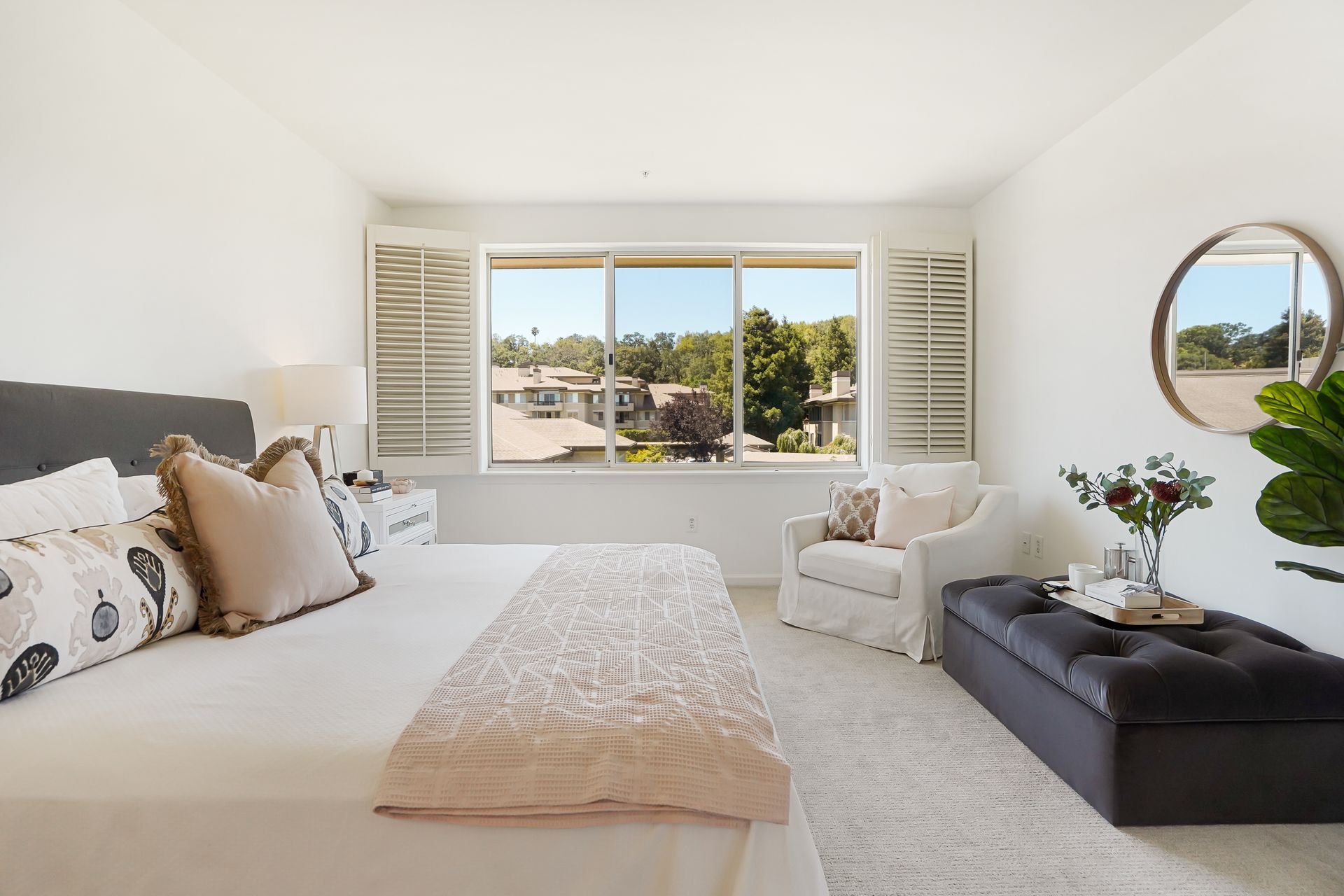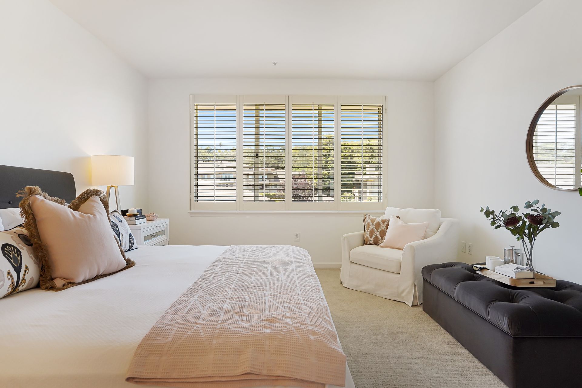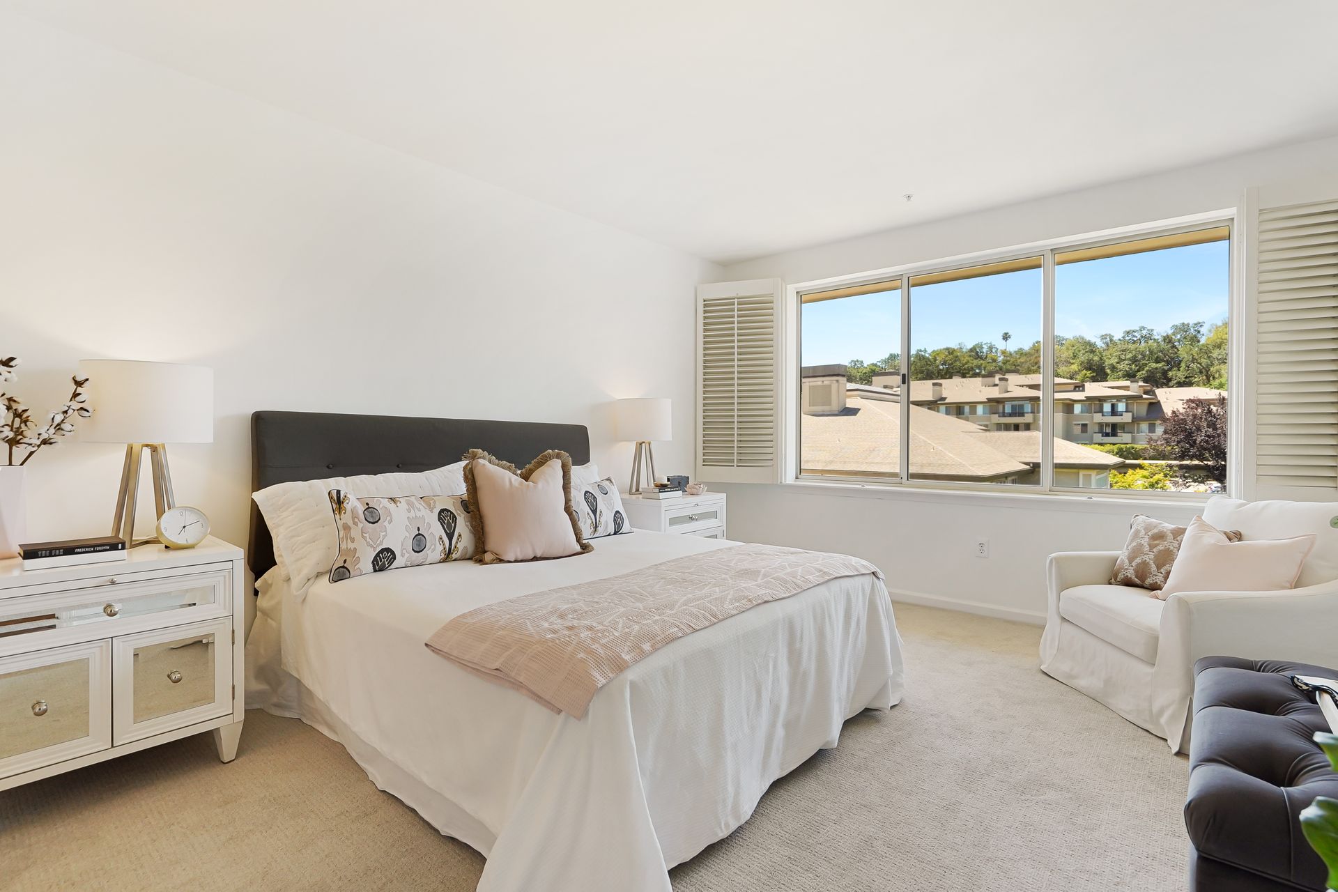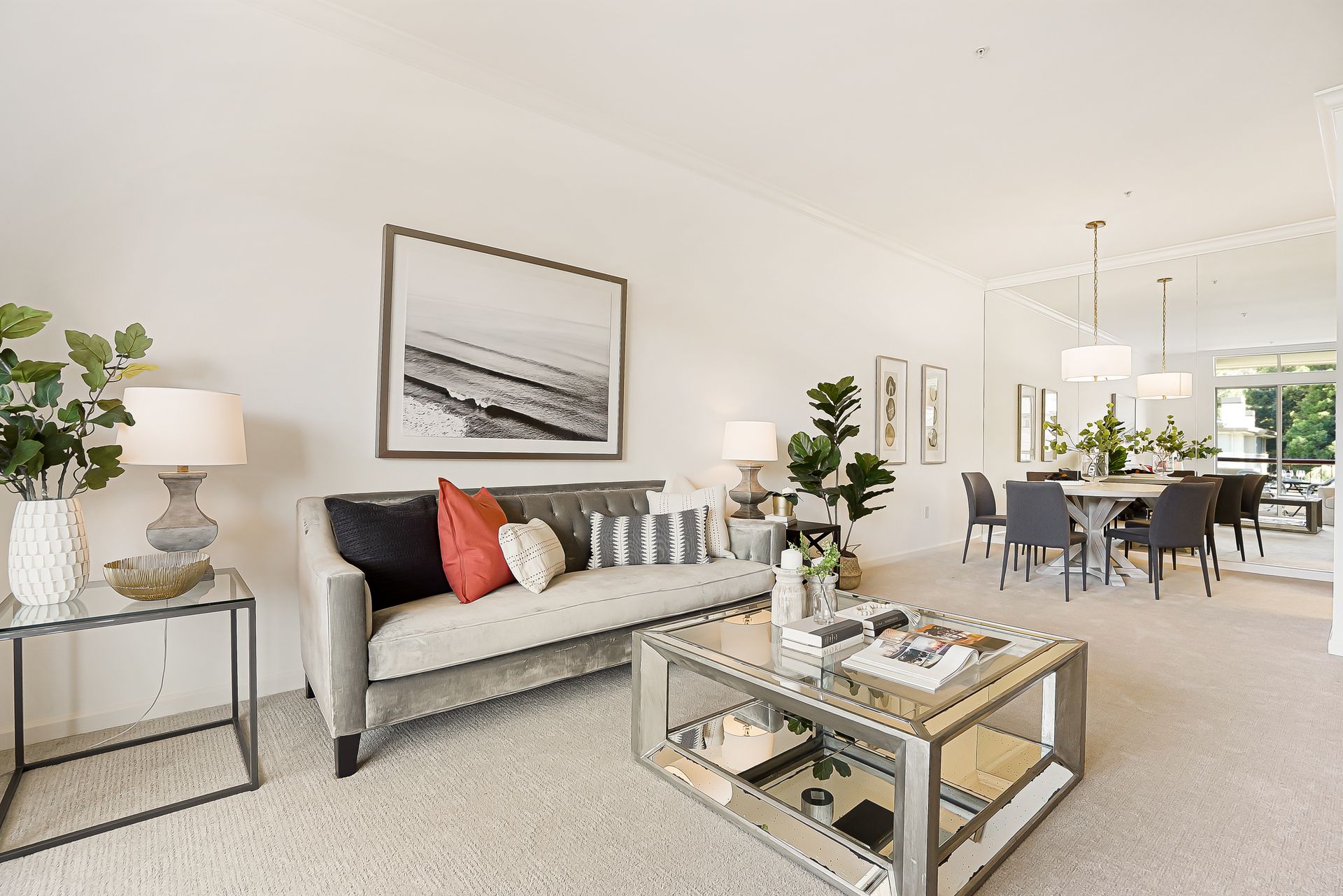 This top-floor unit and premium location offer exceptional views. A south-facing orientation, floor-to-ceiling windows, and 10-foot ceiling heights allow in plenty of natural light. Special features include hardwood floors, designer mirrored walls, gas fireplace, newly installed carpet, freshly painted walls and cabinetry, newer hardware, light fixtures and faucets. The monthly assessment is $2,701.98/unit. The meal plan is $833/person. Fees are mandatory. Pets are welcome. Marin Civic Center, McGinnis Golf Club, twice-weekly farmer's market, Northgate Shopping, and the world-famous wine country of Sonoma and Napa are nearby.