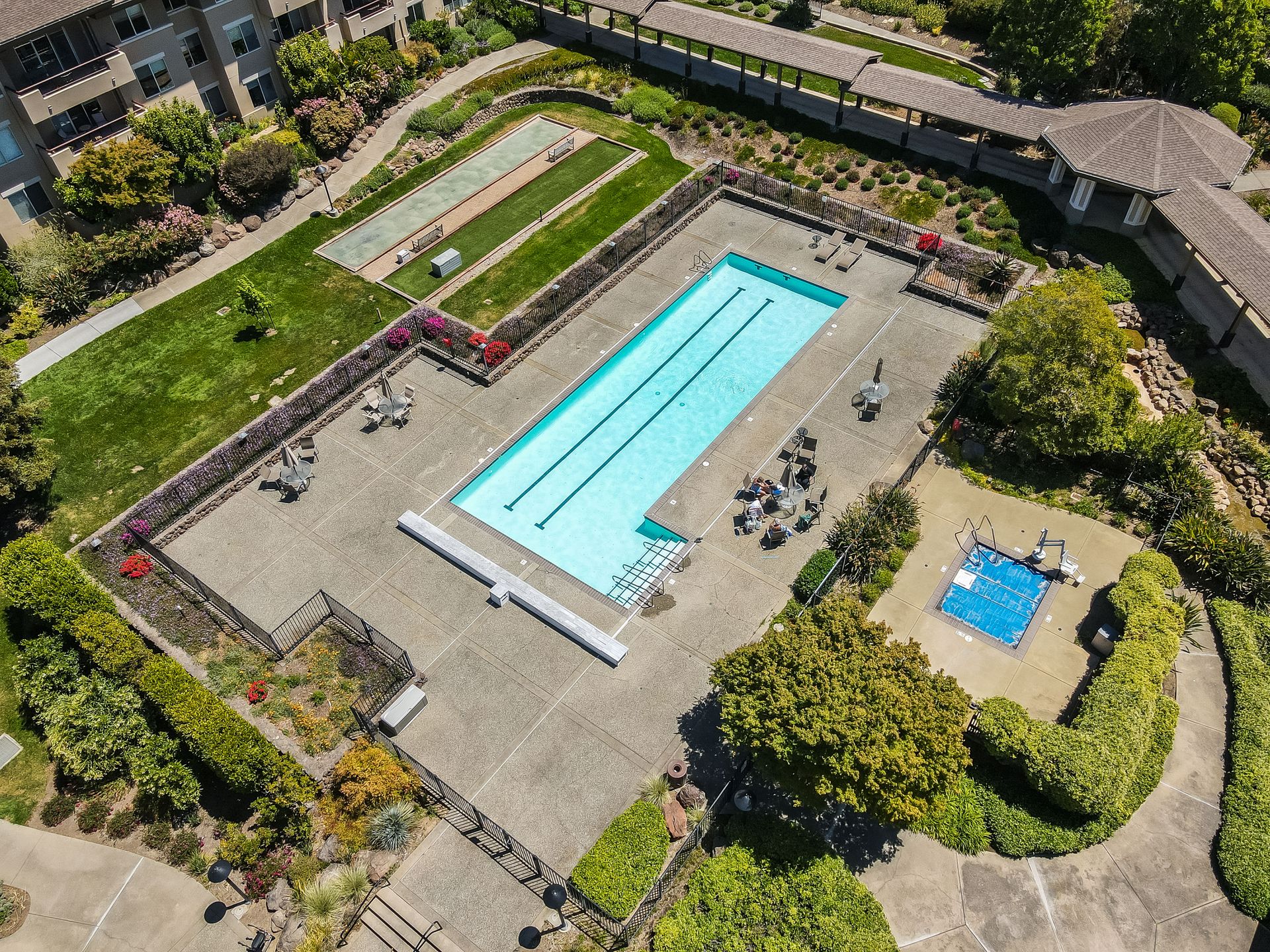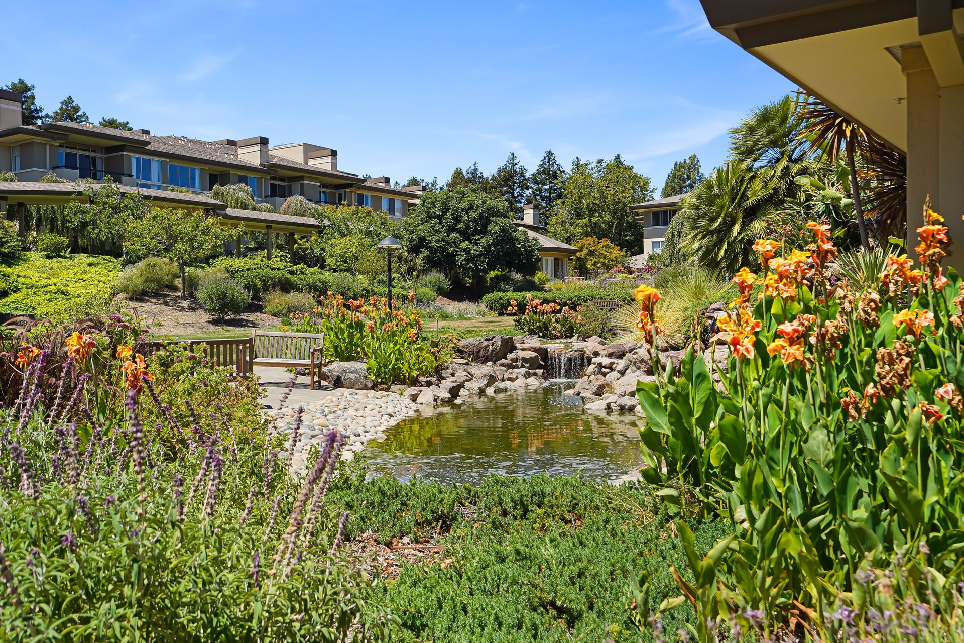 Luxury, independent living for 55+ on 30 lush acres of prime Marin County real estate. Smith Ranch Homes offers resort-style living for active and discerning residents – 5-star style dining, exercise facilities, pool and hot tub, gated, 24-hour security, housekeeping and valet services, personal vegetable/flower gardens, putting green, game room, library, hair salon, art studio, bocce ball courts, and many on and off-site activities, just to name a few. The many walking paths, gardens and water features create a setting that feels like a tropical paradise.