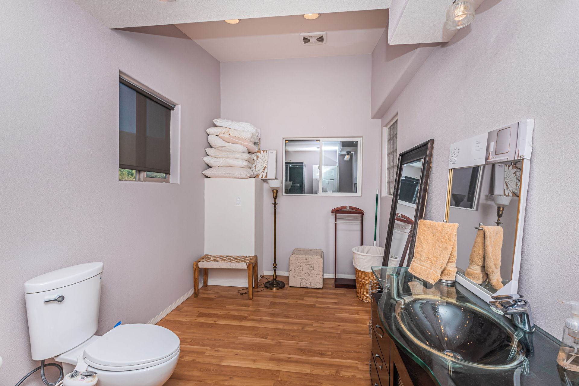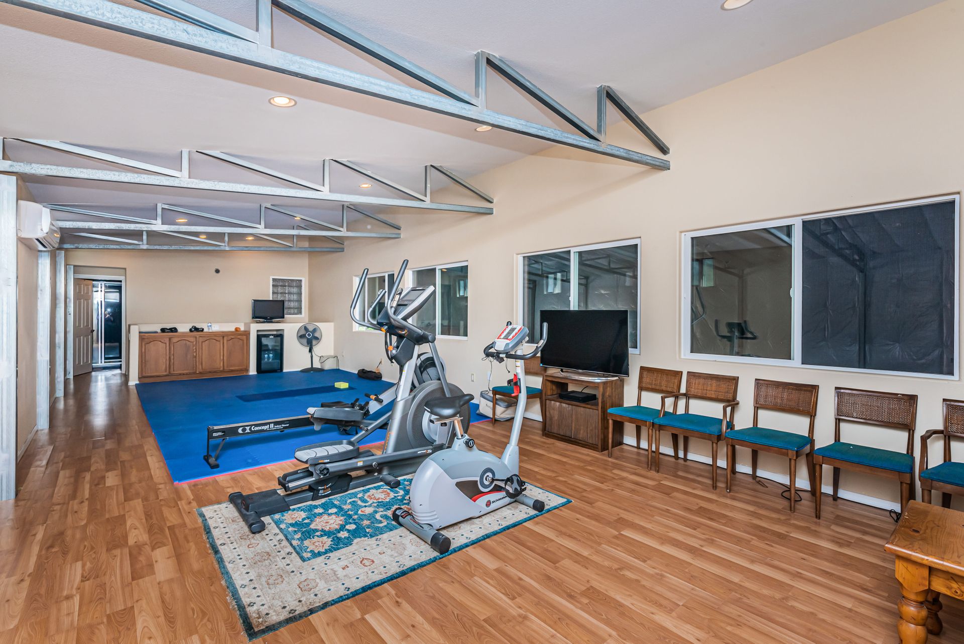 Attached to the main residence is a 3-car garage with plenty of storage and space to park a golf cart so you can drive between the house and the huge 44’x64’ shop at the bottom of the property. The shop is on a post-tension slab that sits on a flat usable acre with additional dirt space that has potential as a garden, chipping green, horse arena, etc. It has a 24’ awning/carport that spans the entire north side and roll-up garage doors on both ends for easy in & out access. Drive your RV with trailer/boat/car in from one end and drive it right out on the other! One-third of the shop is double-level. Both levels are built for living with a full kitchen, oversized sink, Viking fridge, icemaker, cabinet storage, washer/dryer, shower, and stairs/downstairs bathrooms. The shop shares a point-to-point WIFI system and solar meter with the house, a separate on-demand hot water system and a dedicated heating/AC unit. There is approximately 1,800 sf of space to build out as you desire - think game room, gym, woodshop, carshop, craft room, office or even a permitted business – it has room for it all!