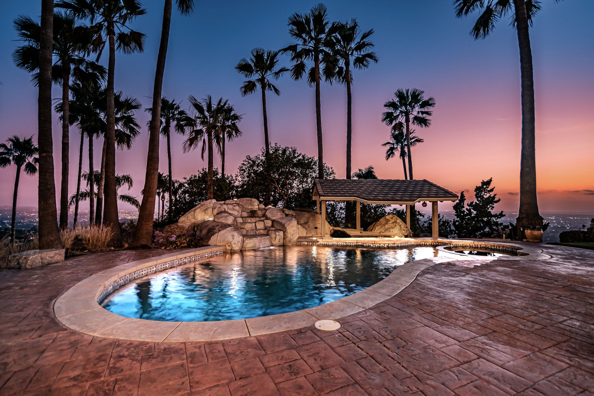 The property’s grandiose appeal is evident as you enter the secure gate, pass its lazy rock river, and take in the sweeping, unobstructed views at the top of the driveway. There is a gorgeous deck with a custom stone firepit and new outdoor BBQ kitchen on the west side and a side patio where you can watch the sun rise in the morning and set in the evening all from the secluded retreat of your salt water, solar-heated, resurfaced pool. The pool has a rock waterfall and a sunken kitchen area with built-in swim up stools for backyard entertaining. Mature palm and citrus trees round out the appeal of this immaculate, outdoor haven.