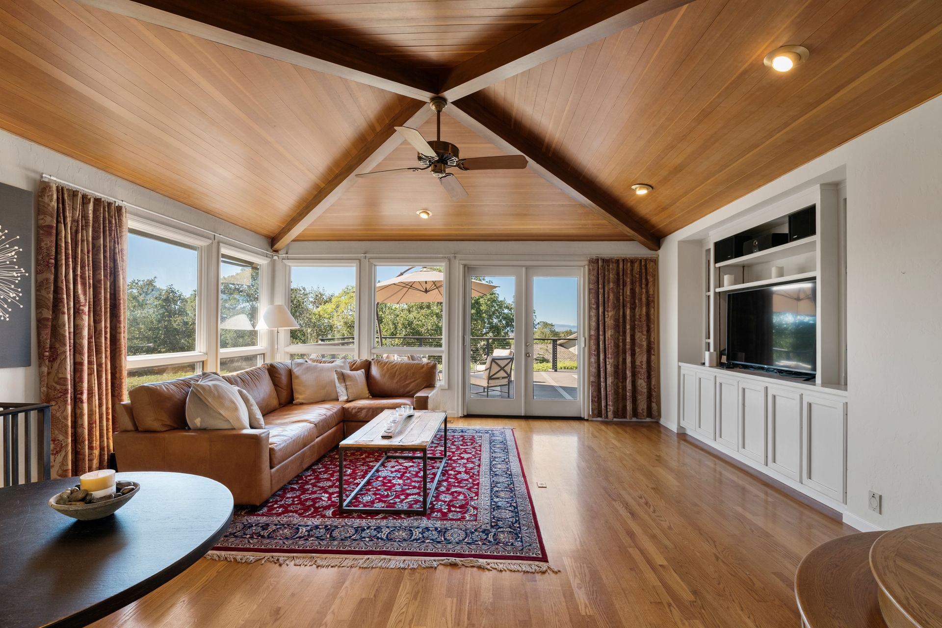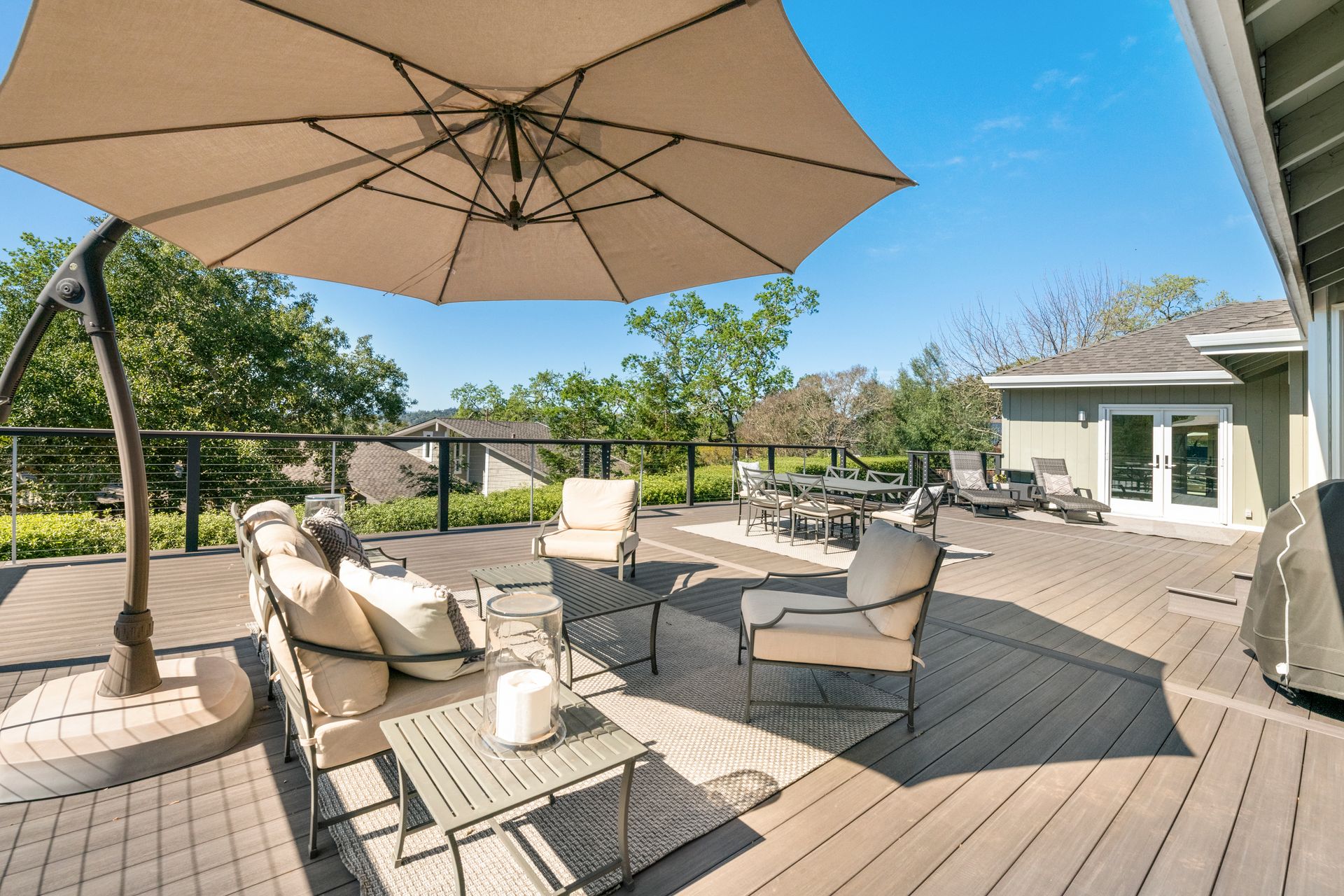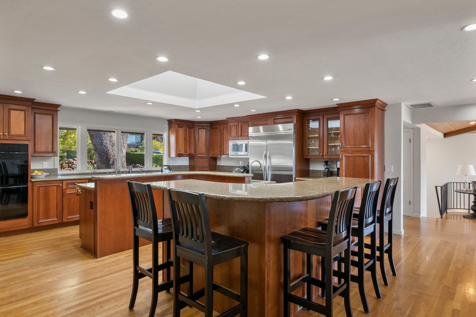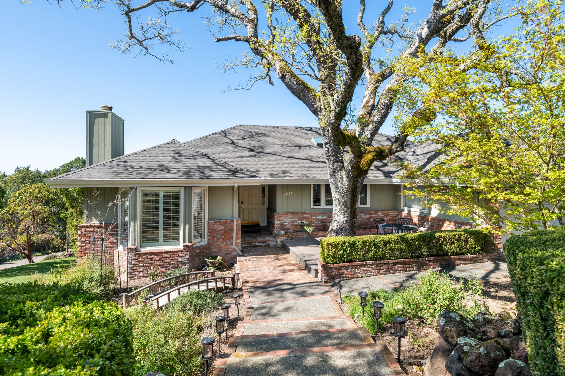 This stunning home is in a coveted location close to open space and Annadel State Park. The family room has dramatic vaulted ceiling accented in natural wood and breathtaking westerly views. An expansive deck with modern, cabled railings maximizes the view and is ideal for entertaining or relaxing. The deck's wide staircase with built-in lighting leads to a private sitting area and sunny garden. The spacious chef's kitchen is bathed in light, with an island and second sink, sitting/bar area, double ovens, an oversized, cabinet depth refrigerator and granite counters. The luxurious primary suite enjoys views, French doors to the deck and a sumptuous bathroom with a double vanity, soaking tub and separate shower. The primary and upstairs baths were updated in white, marble and tile finishes. The main floor has three bedrooms and two full bathrooms; downstairs, accessed from inside or through a separate exterior entrance, sits the fourth bedroom with a full bathroom. Enjoy roof, deck, furnace, A/C and bathroom remodels all done in the last four years.