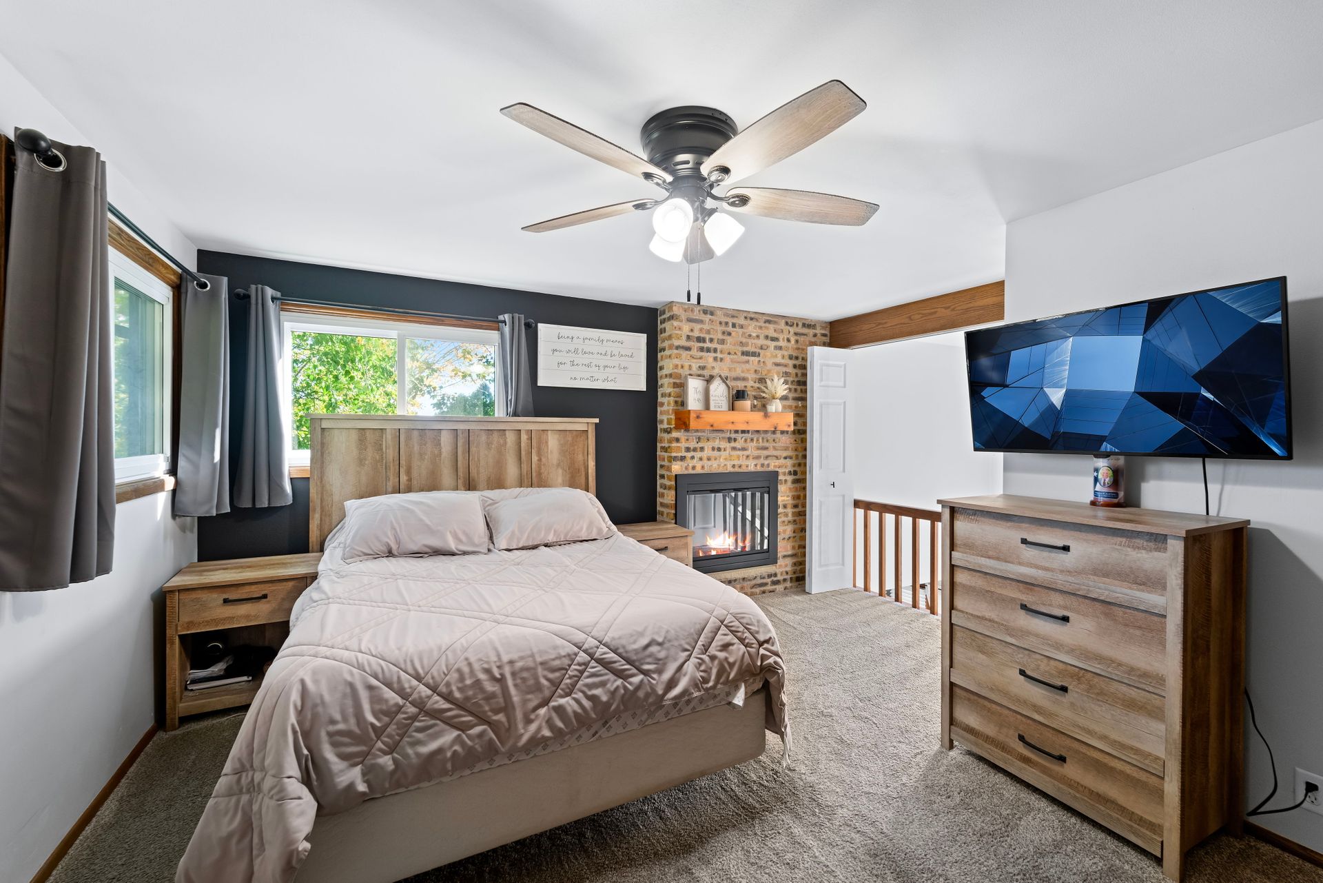 Incredibly unique mid-century contemporary located in Wind Point on a beautiful lot! Tons of recent updates. You'll feel all the charm and character of this home the moment you walk through the door. Living room features vaulted ceilings, a gorgeous fireplace display and huge windows for a ton of natural light. The kitchen features ample cabinet/counter space and flows perfectly into the dining area and secondary living space. The fourth bed on the main level could make a great guest suite with a full bath and the first floor laundry is nearby. Three bedrooms and an updated bathroom are located upstairs. The primary includes its own fireplace and a balcony overlooking the foyer. The approximately 0.65 acre lot is perfect for entertaining with a huge backyard and wrap around porch with a screened-in section. Located near Wind Point Lighthouse, Prairie School and North Beach.
