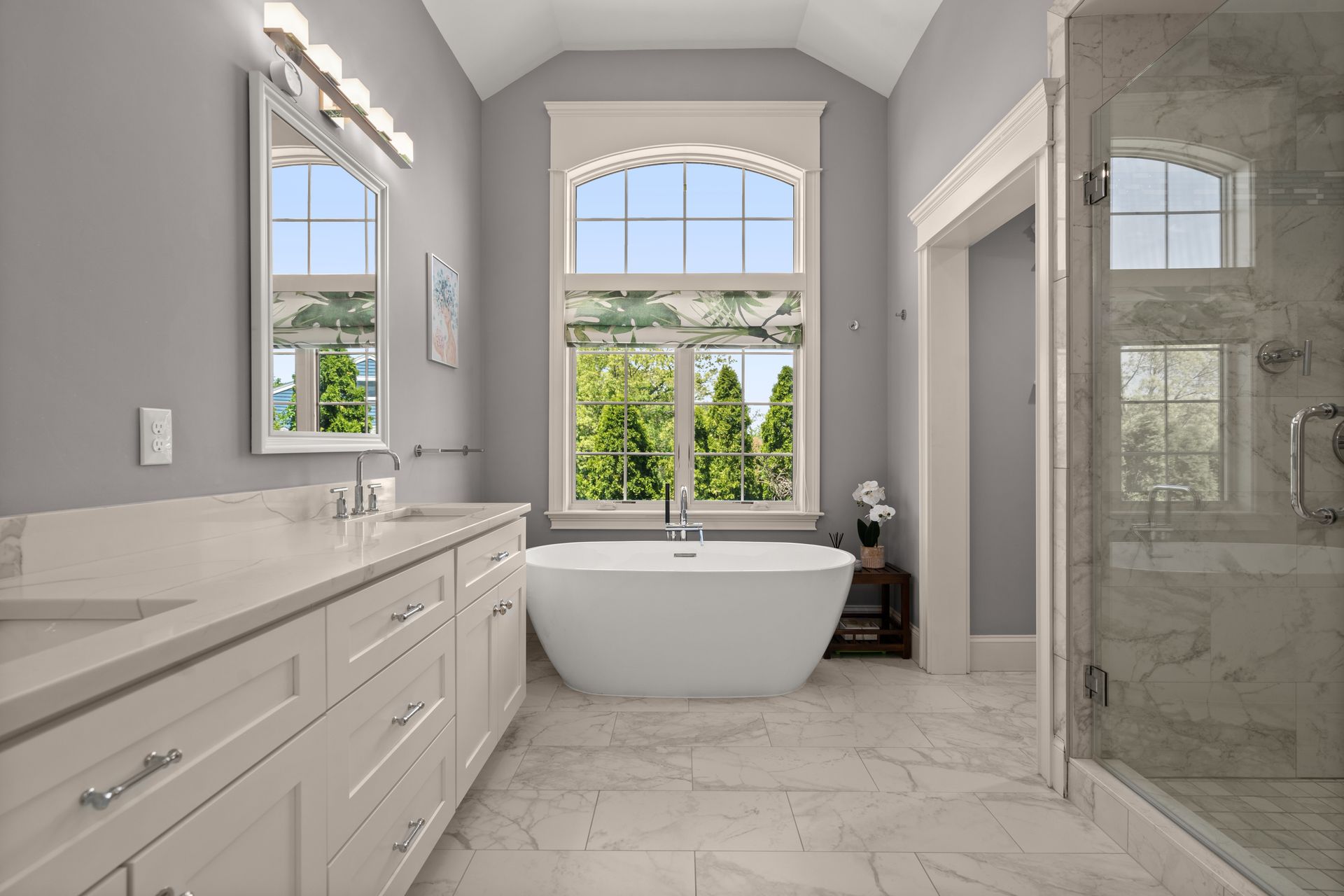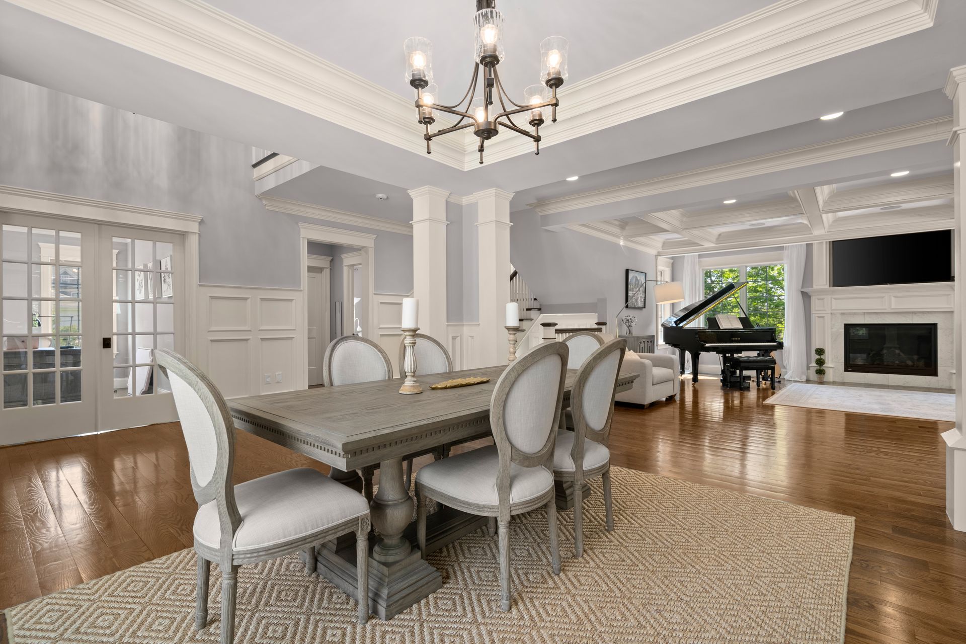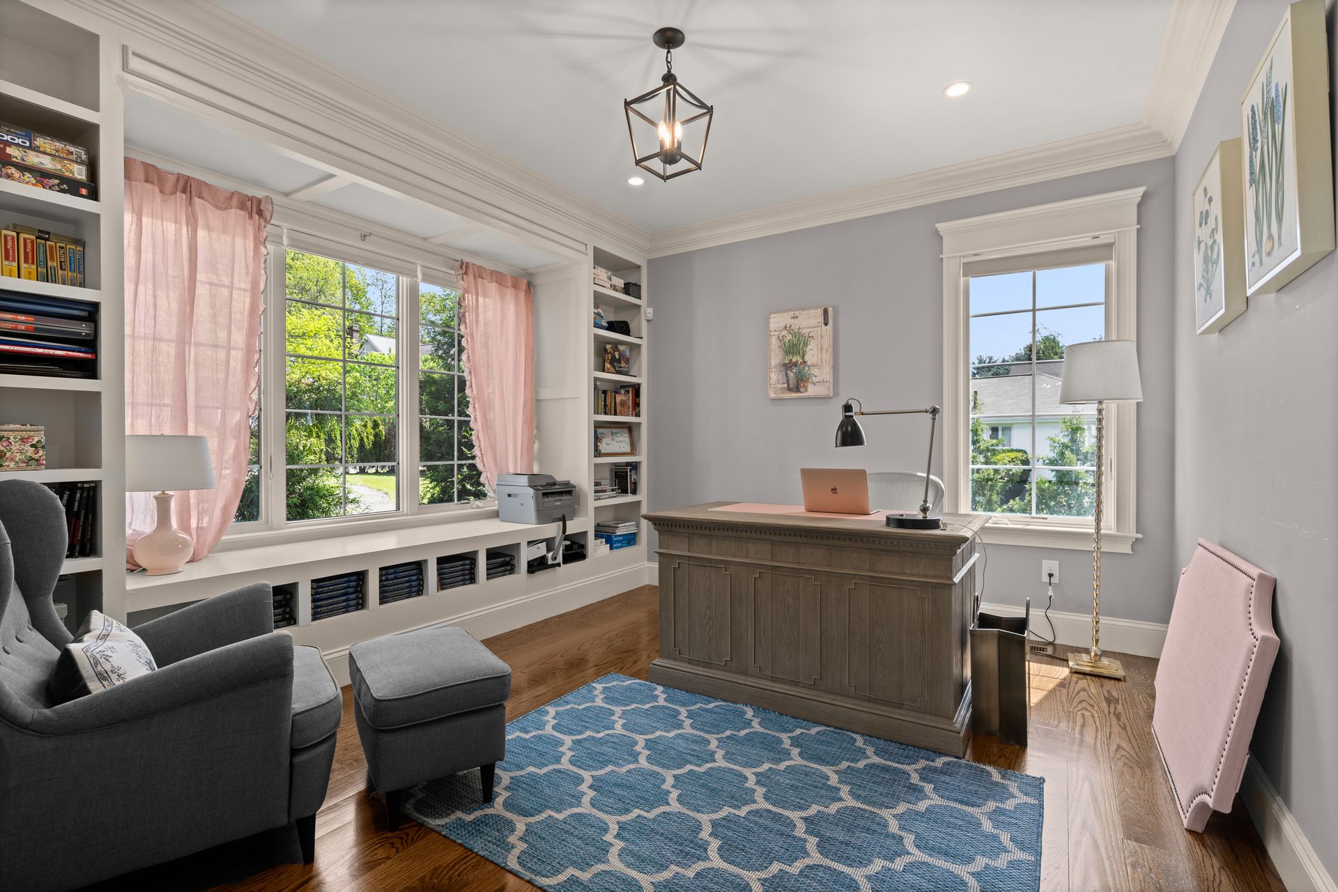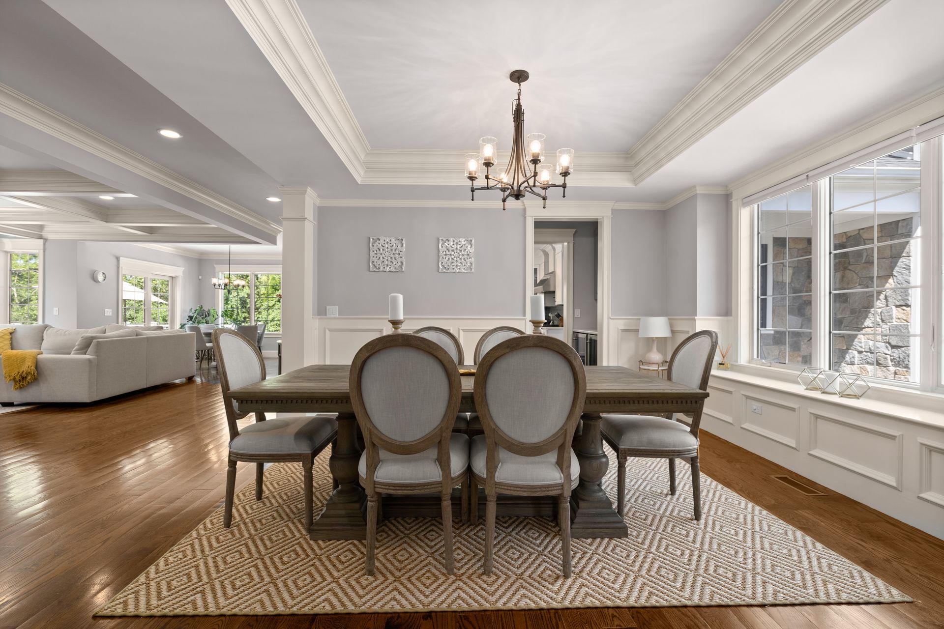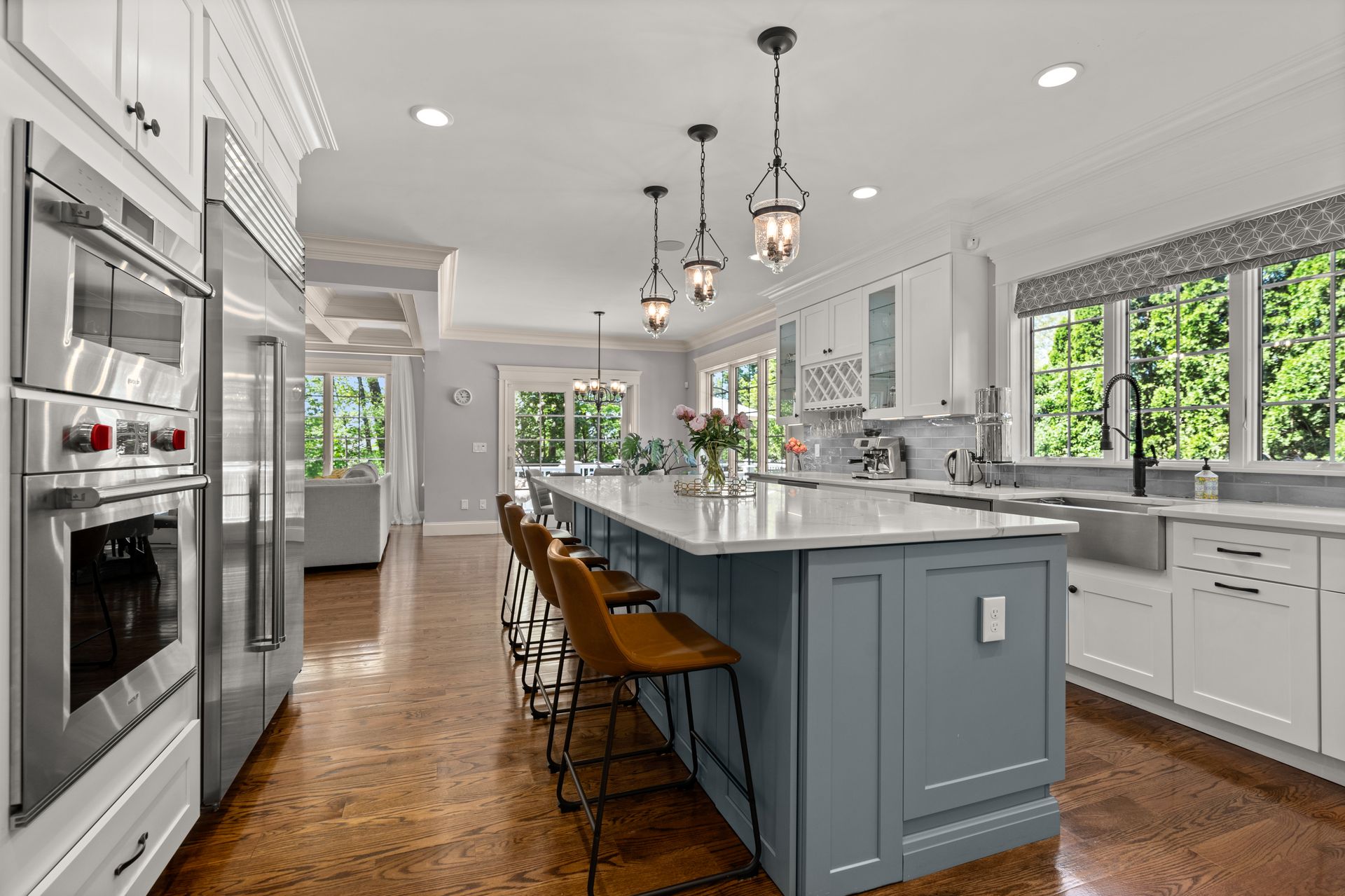 Formal entrance brings you to a bright and open floor plan, complemented by wainscoting and coffered ceilings. Immaculate Chef’s kitchen with Sub-Zero/Wolf appliances and direct access to newly expanded outdoor deck and sprawling yard. Mudroom with separate entrance has access to powder room and two car garage with electric car charger. Spacious multi-windowed office with cove lighting and large ensuite bedroom complete the main level.