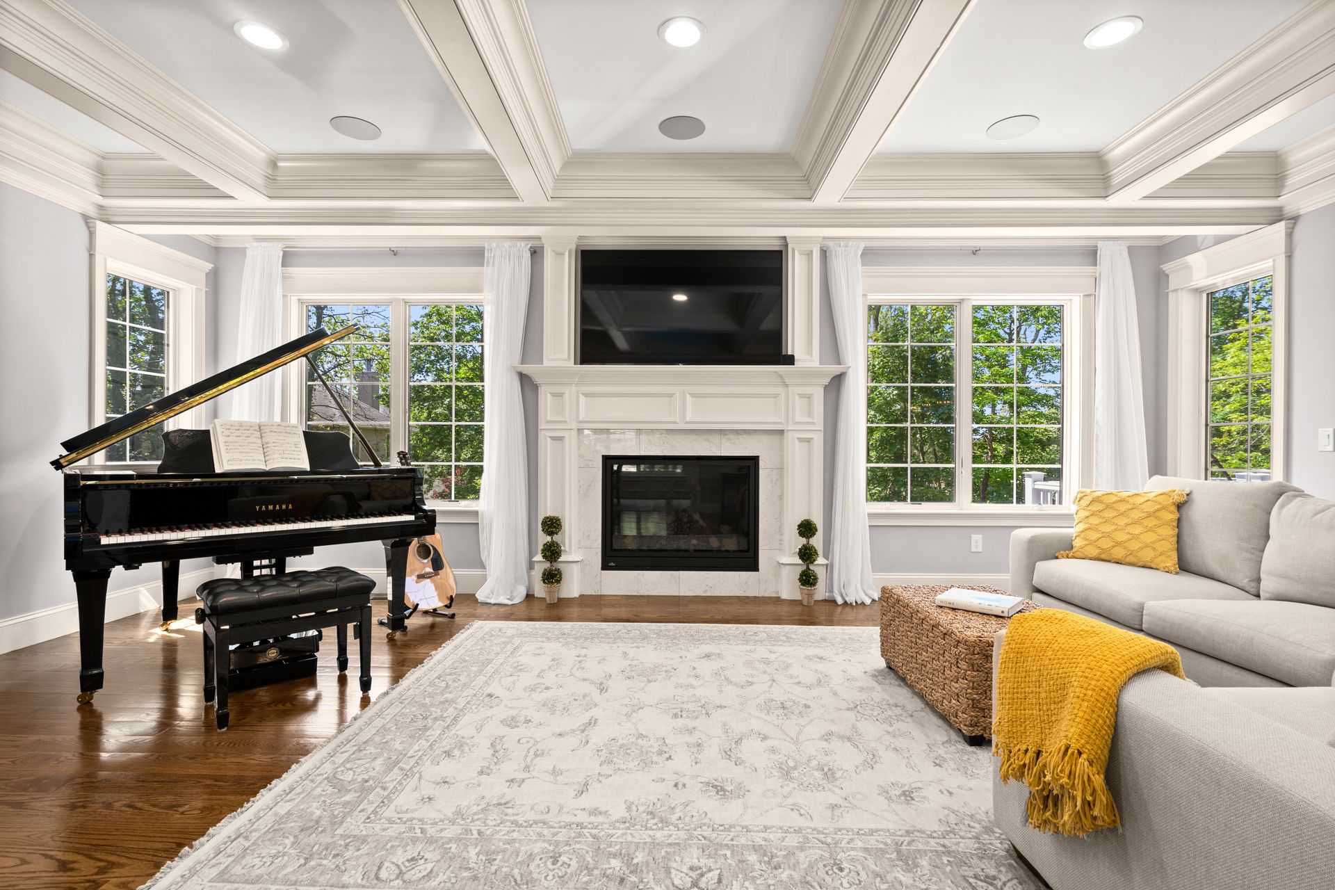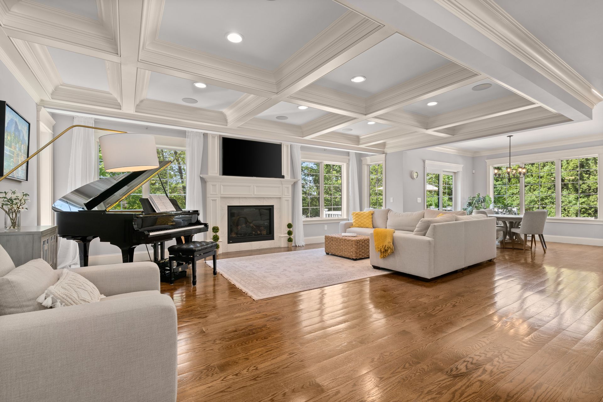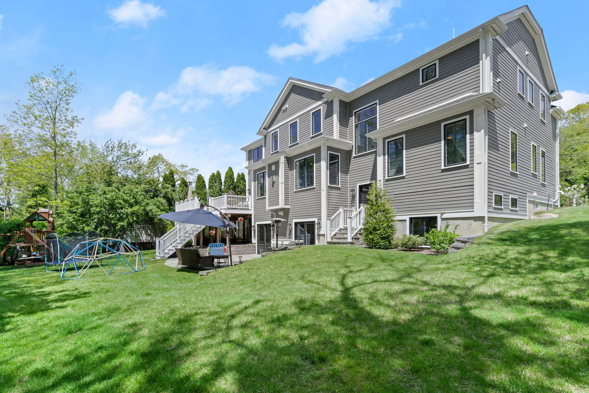 Huge bright lower level, with 10’ ceilings, includes walk-out family room with full sized sliding doors, multi-use bonus room, wet bar and ensuite bedroom. Whole house surround sound and convenient to top rated schools and Boston!