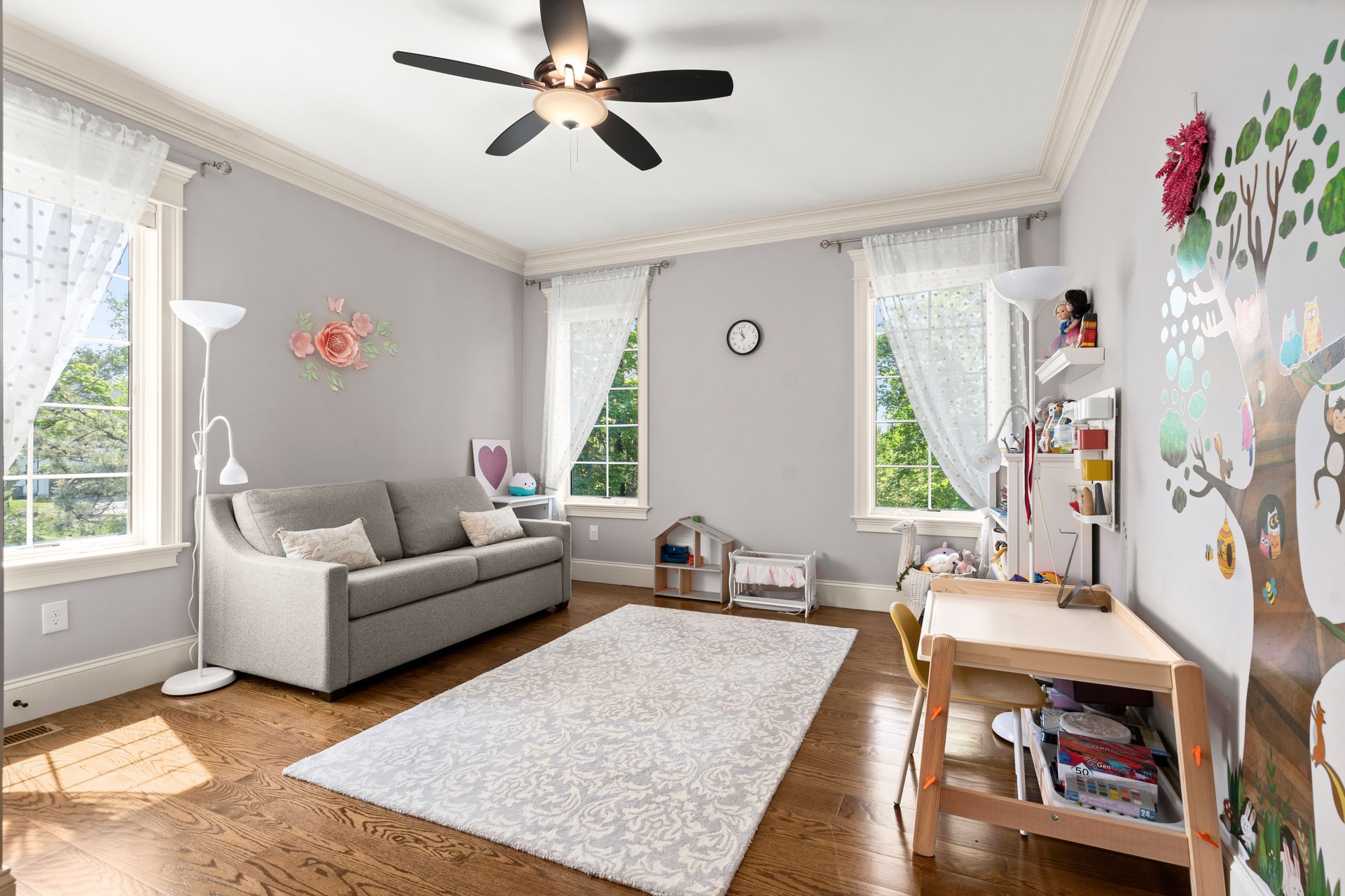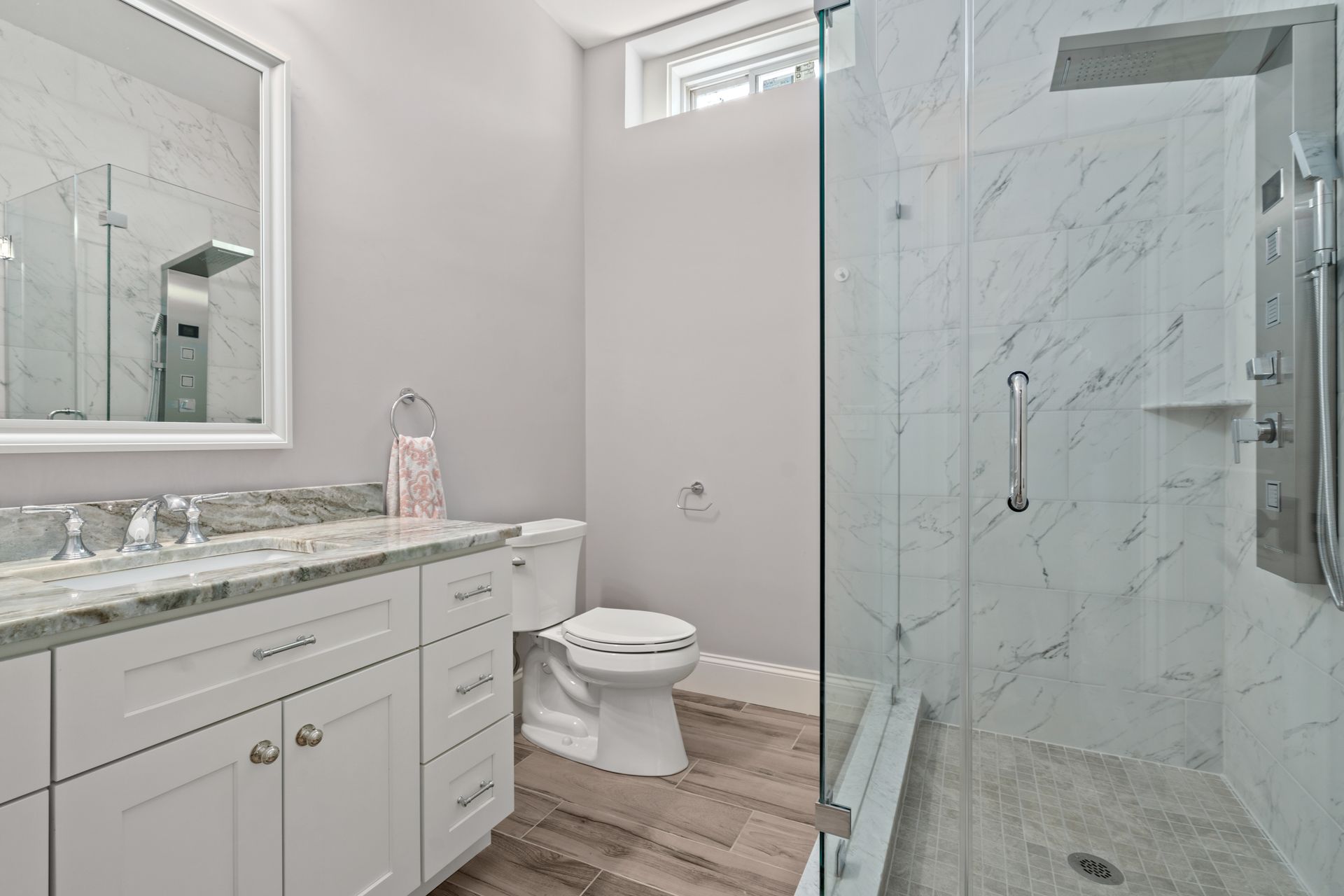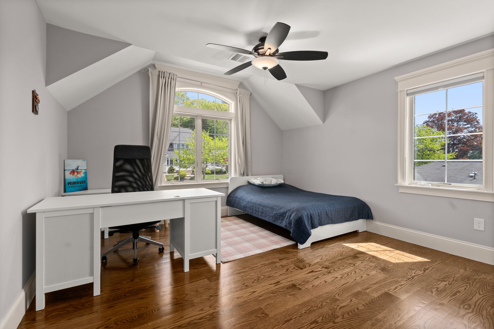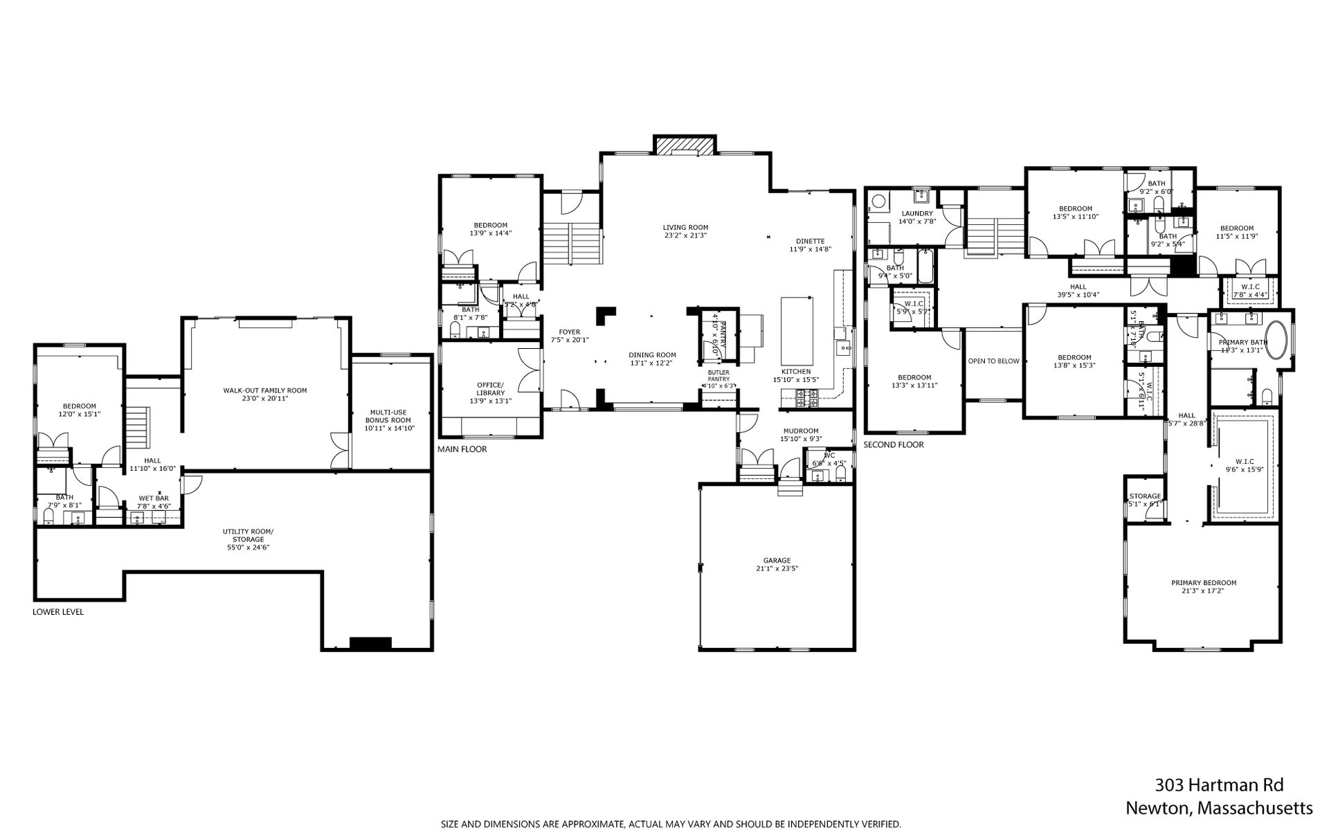 Huge bright lower level, with 10’ ceilings, includes walk-out family room with full sized sliding doors, multi-use bonus room, wet bar and ensuite bedroom. Whole house surround sound and convenient to top rated schools and Boston!