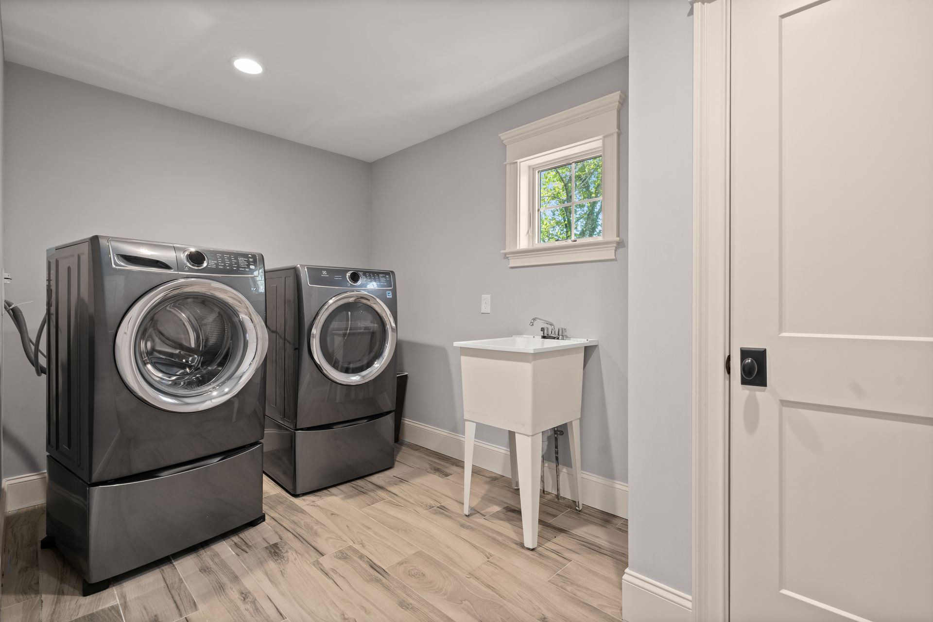 Second floor with windowed laundry room features 5 spacious ensuite bedrooms, including spectacular primary bedroom with private grand hallway, high ceilings, two walk-in closets and spa-like bathroom.