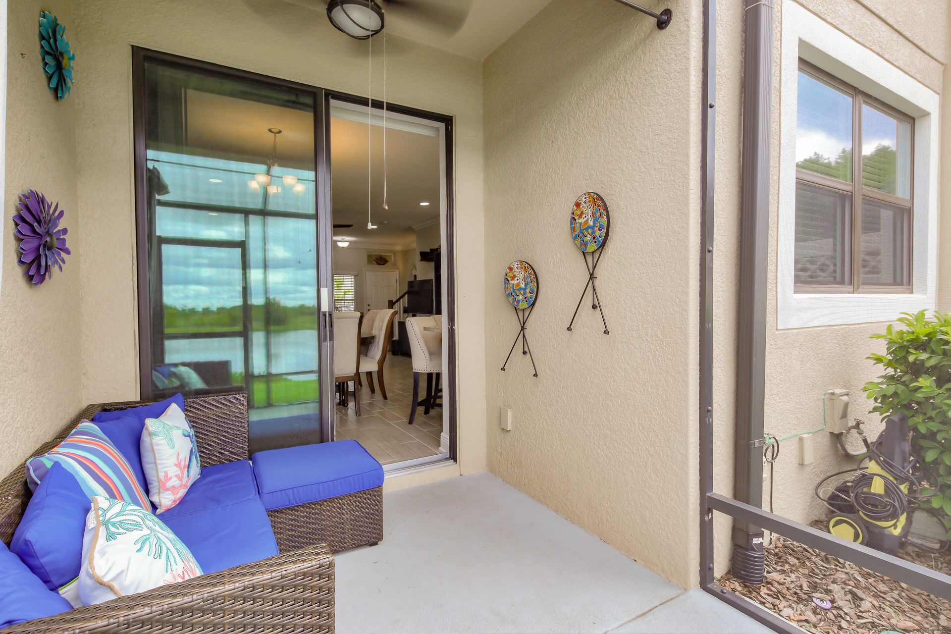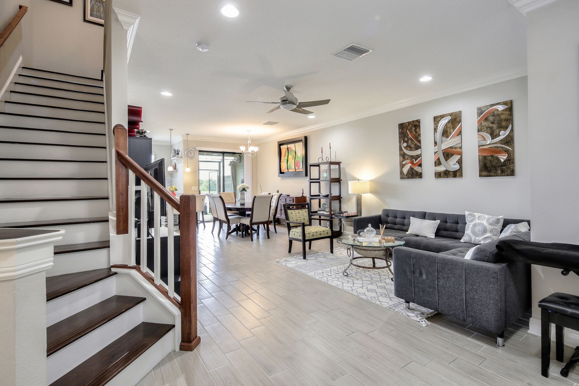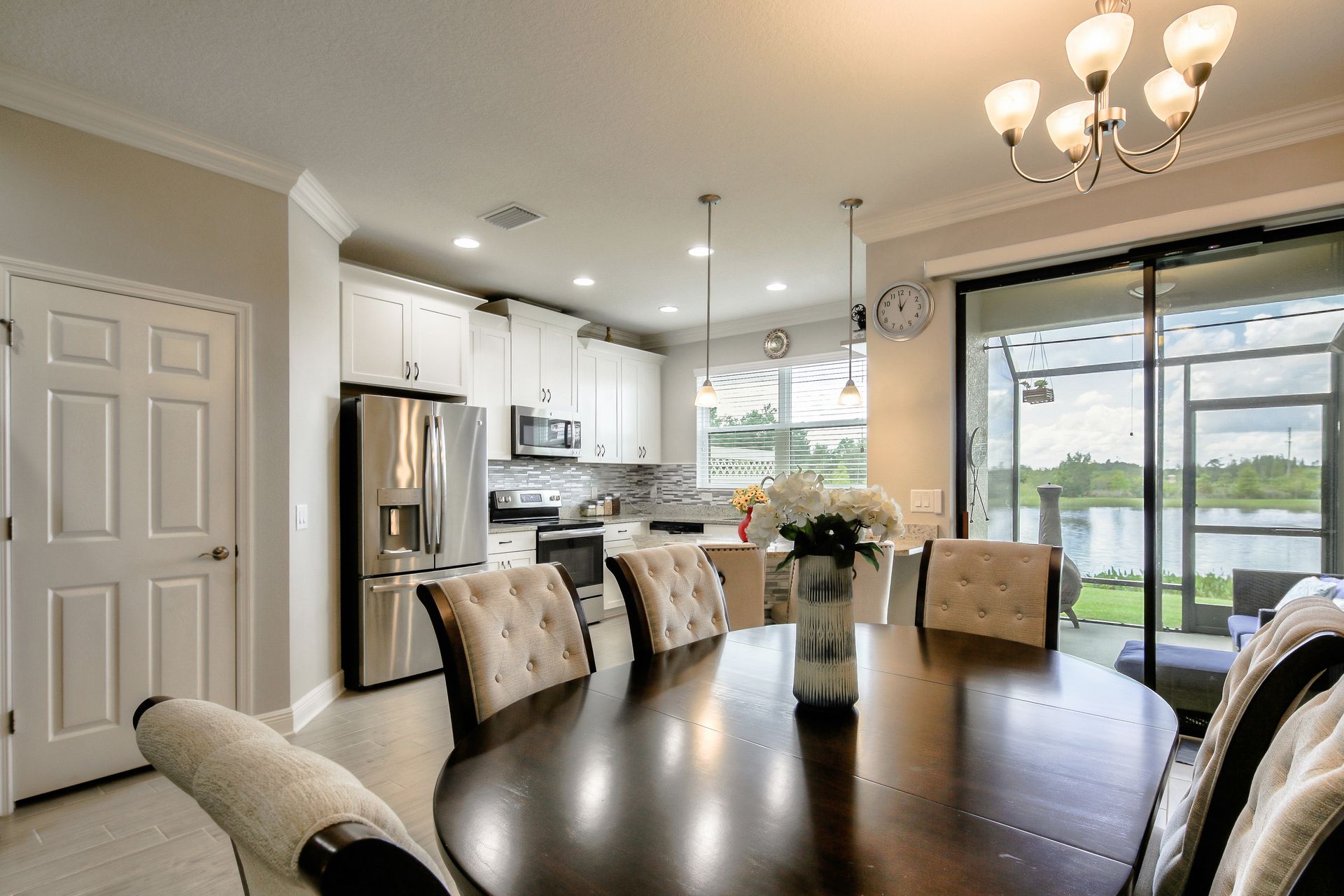 Better Than New! Spectacular two-story, three-bedroom, two-and-one-half-bathroom, one-car garage with amazing pond view, M/I Homes Covington floor plan, approximately 1,850 square foot Townhome located in the Windermere Estates at Wiregrass Ranch. As you walk through the front door, there is a completely open concept downstairs. Beautiful crown molding throughout the entire home enhances its elegance. A half bath is tucked away to the side next to the one car garage, with utility sink and coat closet. Past the foyer and staircase is the family room, which leads into the open dining room and in the rear corner is the kitchen with glass backsplash, stainless steel appliances, tons of countertop space made of granite, 42-inch cabinets with crown molding, breakfast bar, a huge walk-in pantry under the stairs and a large window, over the sink allows for pond view. Downstairs is complete with wood look ceramic tile flooring and a spacious screened-in lanai with ceiling fan as you passed through the double sliders in the family room. The double slider doors can be opened automatically! A solid wood staircase takes you up to the second level. Upstairs is the master suite and it boasts a large walk-in closet, as well as a large master bath complete with dual vanities and a walk-in shower. Down the hall from the master suite, there is a Landry room, as well as two other bedrooms and the second full bathroom. Wood laminate flooring throughout the second level. Windermere Estates is tucked away in the heart of Wesley Chapel just minutes away from shopping, hospitals and highways. It is a luxury, gated townhome community providing a maintenance-free environment.