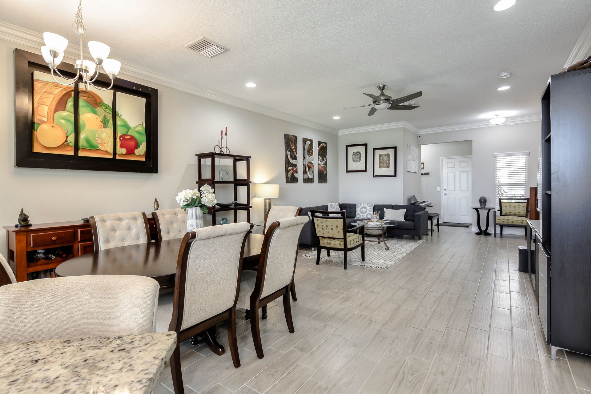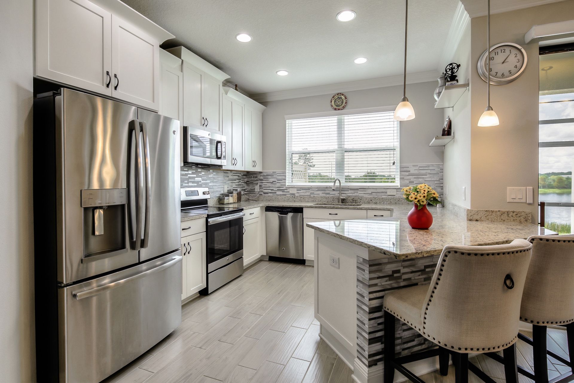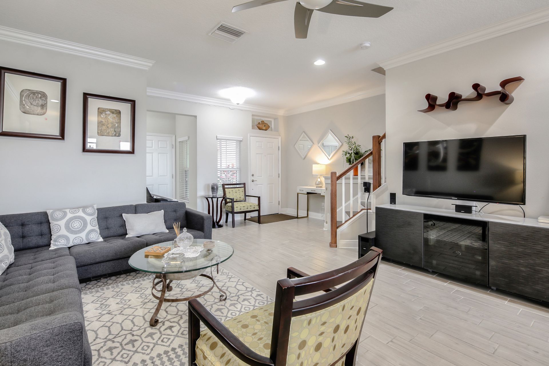 Better Than New! Spectacular two-story, three-bedroom, two-and-one-half-bathroom, one-car garage with amazing pond view, M/I Homes Covington floor plan, approximately 1,850 square foot Townhome located in the Windermere Estates at Wiregrass Ranch. As you walk through the front door, there is a completely open concept downstairs. Beautiful crown molding throughout the entire home enhances its elegance. A half bath is tucked away to the side next to the one car garage, with utility sink and coat closet. Past the foyer and staircase is the family room, which leads into the open dining room and in the rear corner is the kitchen with glass backsplash, stainless steel appliances, tons of countertop space made of granite, 42-inch cabinets with crown molding, breakfast bar, a huge walk-in pantry under the stairs and a large window, over the sink allows for pond view. Downstairs is complete with wood look ceramic tile flooring and a spacious screened-in lanai with ceiling fan as you passed through the double sliders in the family room. The double slider doors can be opened automatically! A solid wood staircase takes you up to the second level. Upstairs is the master suite and it boasts a large walk-in closet, as well as a large master bath complete with dual vanities and a walk-in shower. Down the hall from the master suite, there is a Landry room, as well as two other bedrooms and the second full bathroom. Wood laminate flooring throughout the second level. Windermere Estates is tucked away in the heart of Wesley Chapel just minutes away from shopping, hospitals and highways. It is a luxury, gated townhome community providing a maintenance-free environment.