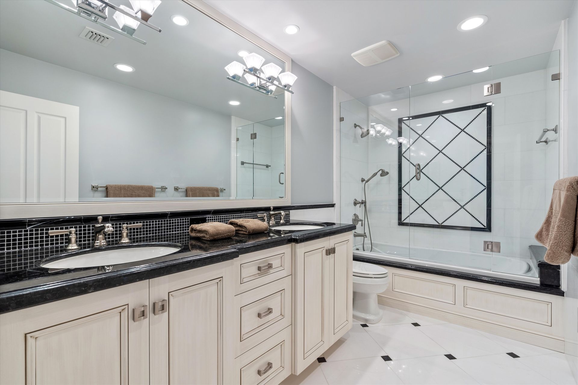 All bathrooms (two with steam showers) and kitchen, custom made just a little over ten years old.
