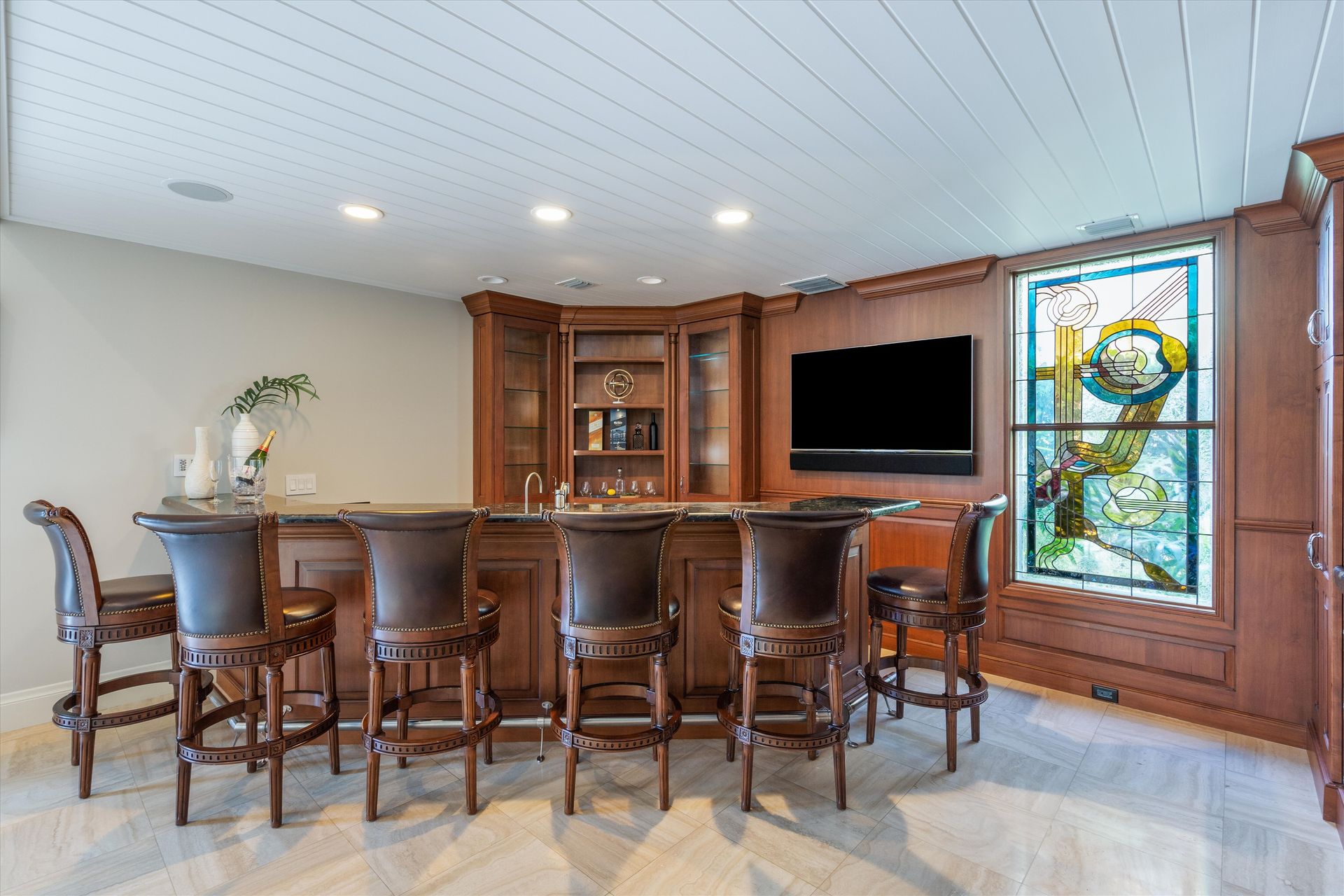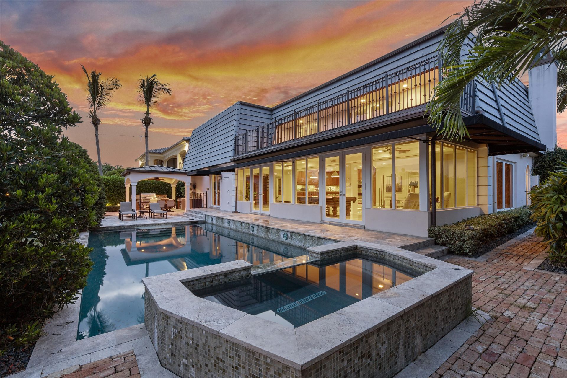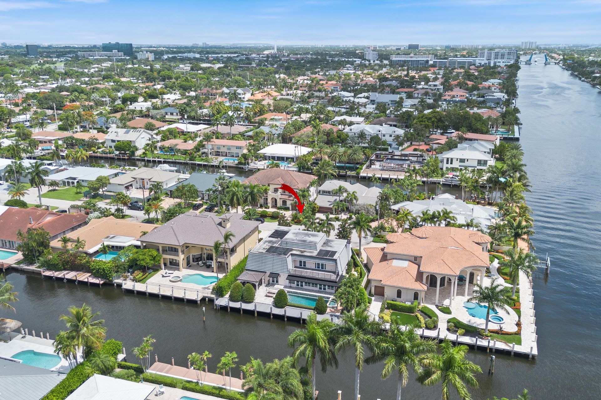 Beautiful large home, one-off point with 90-foot dock. The primary suite has a wet bar, and sundeck overlooking the Intracoastal with a huge steam shower and custom TV unit along with two walk-in closets with custom shelving. You will love the beautiful cherry wood floors throughout the second floor leading to the loft overlooking the living area and bar room.