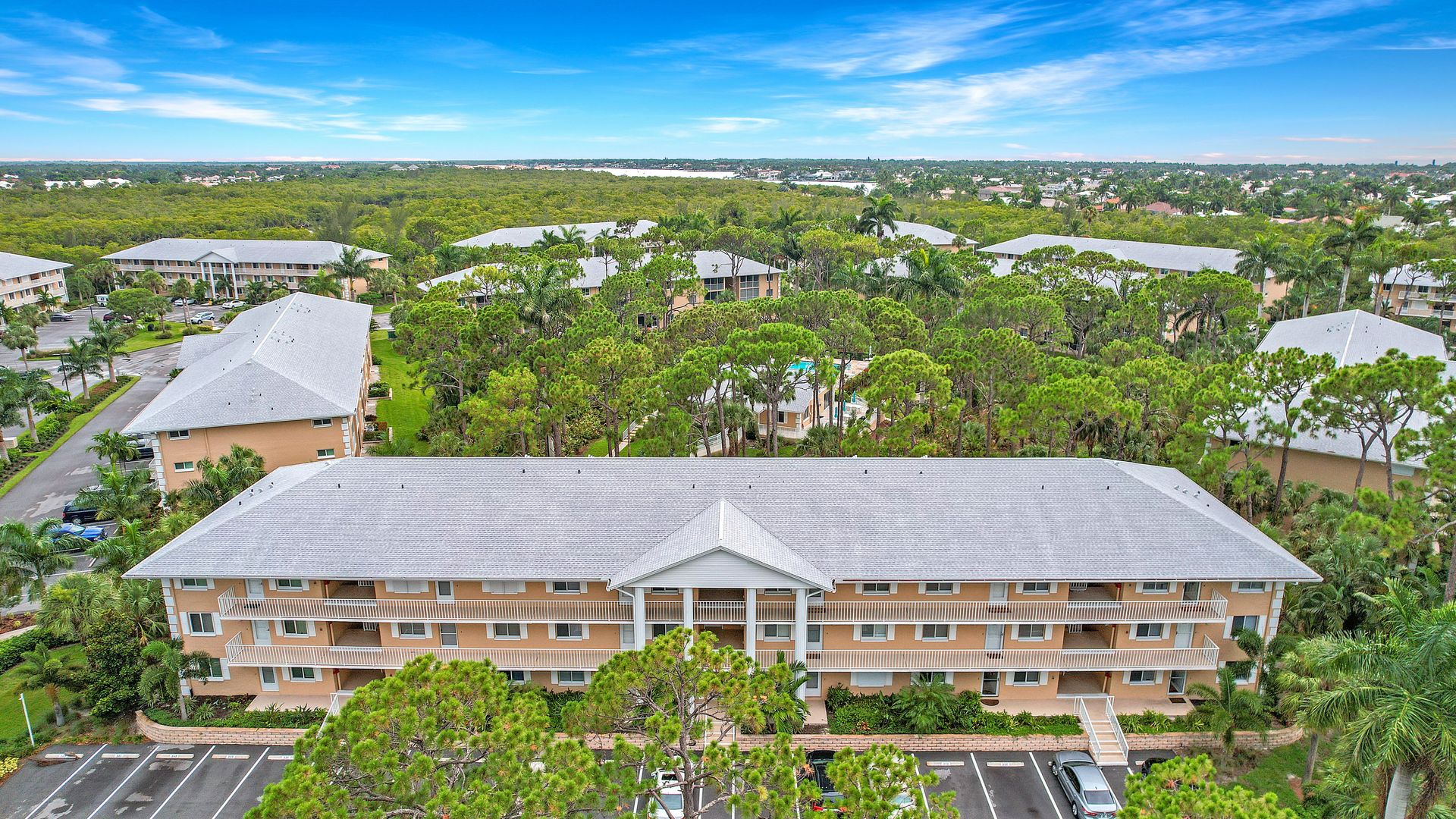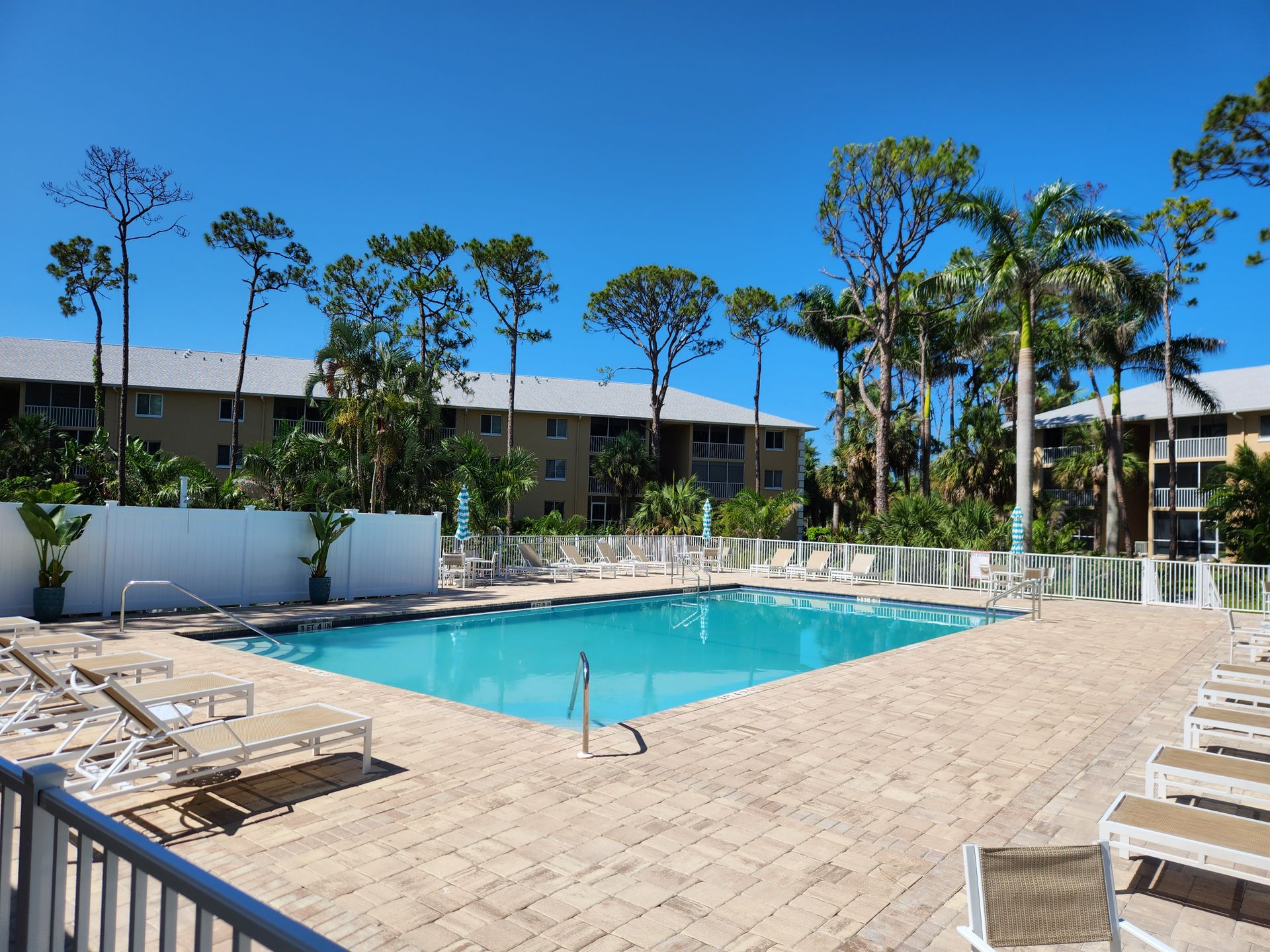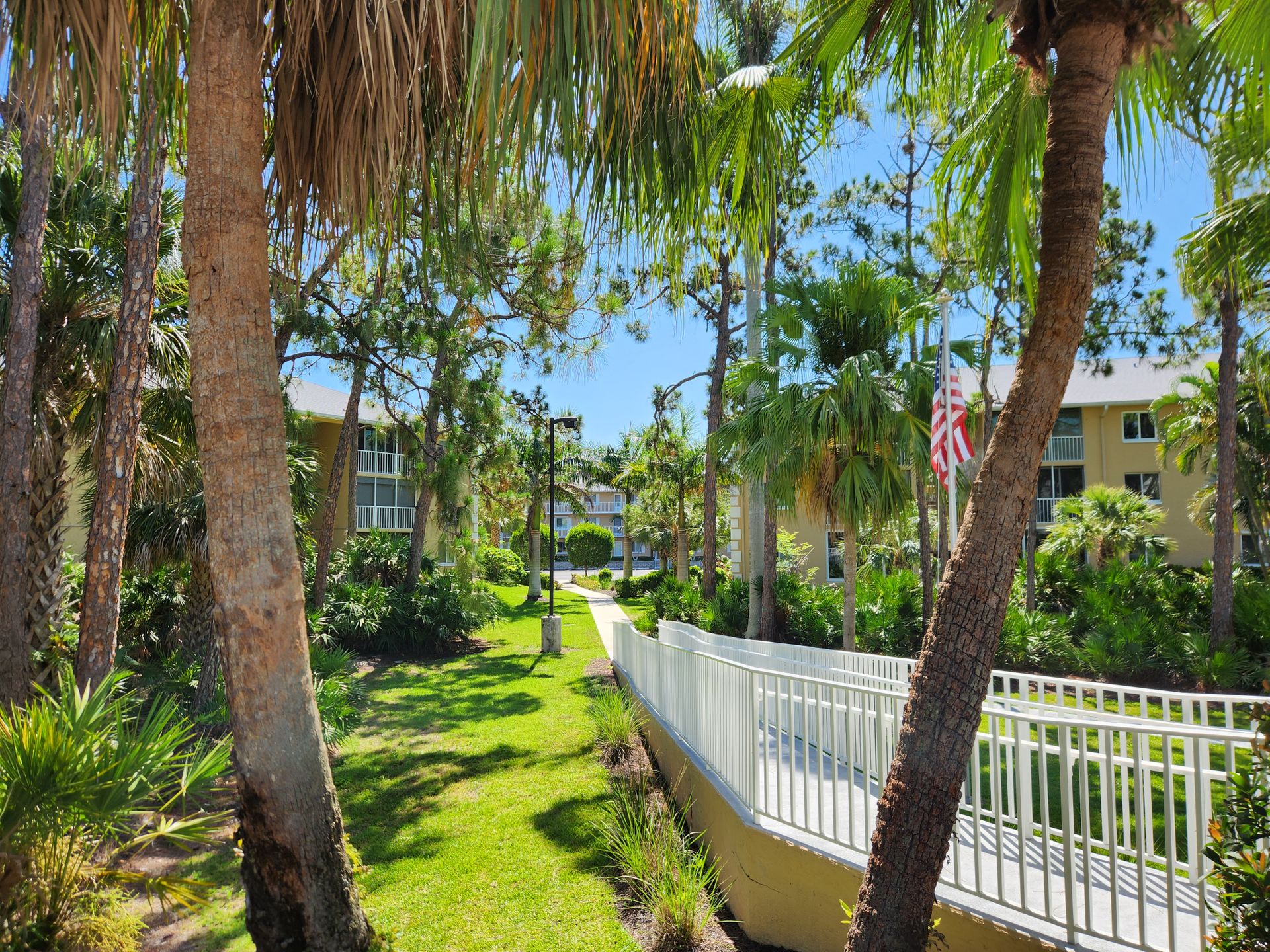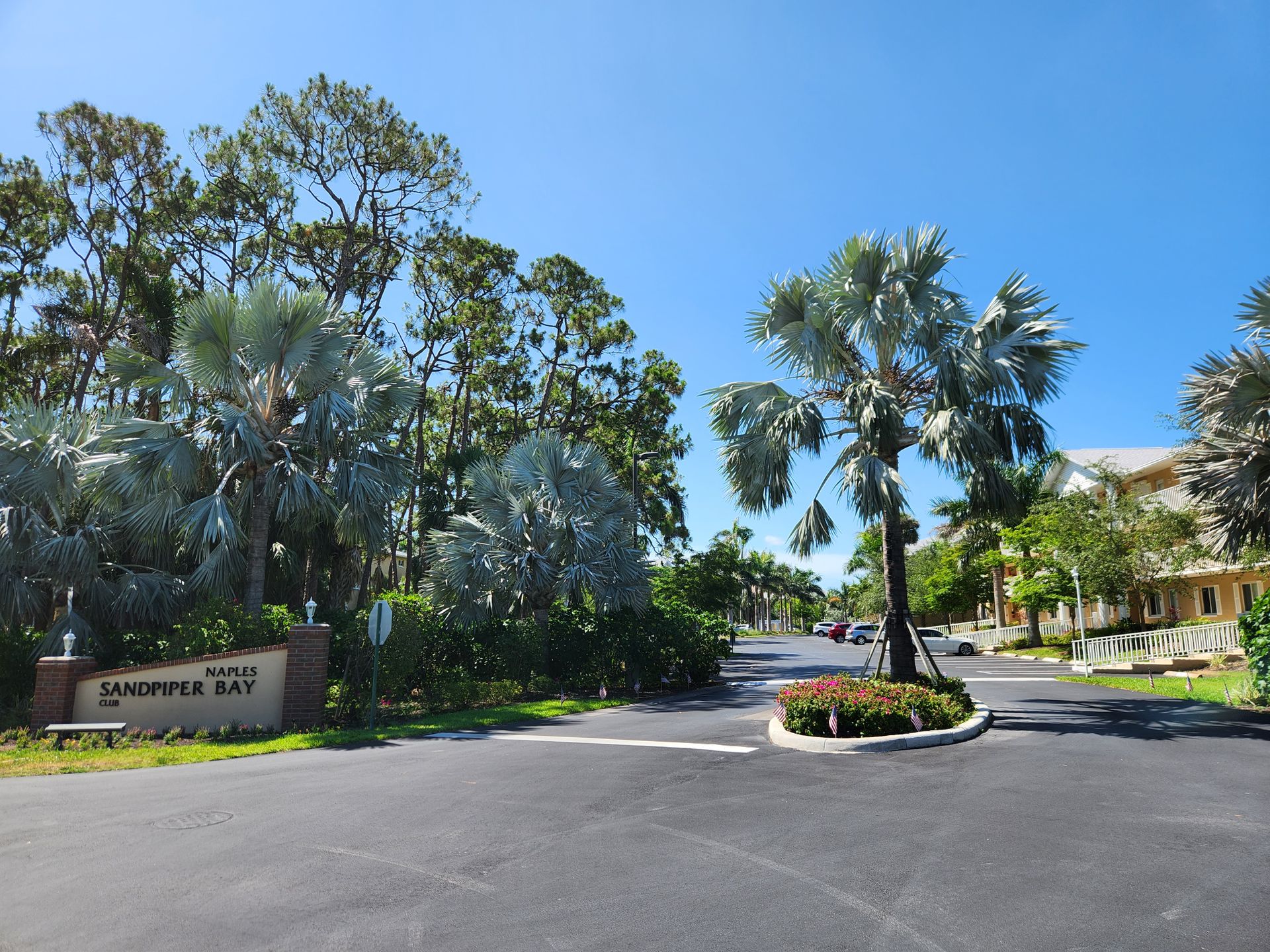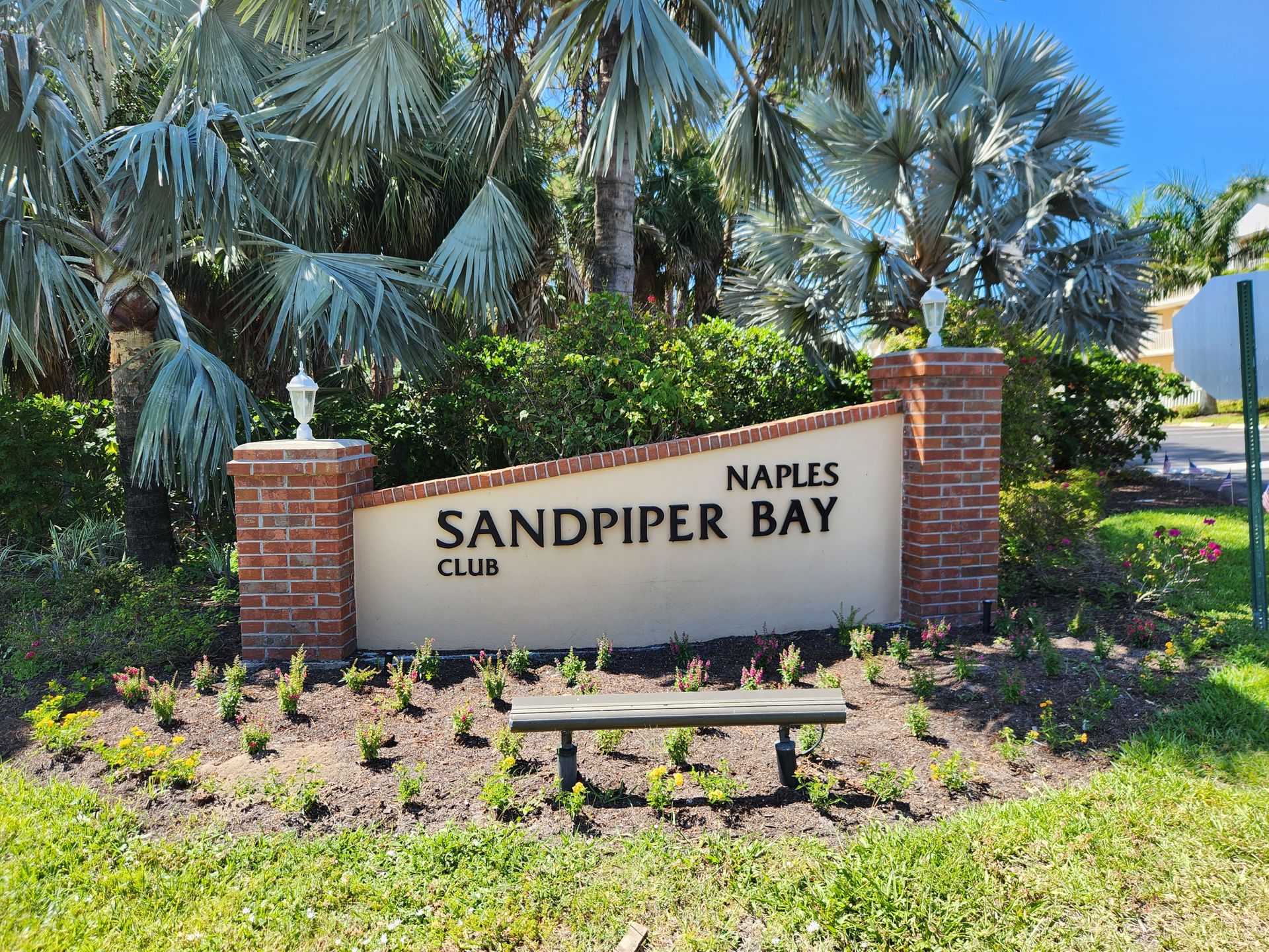 Just two miles east of Olde Naples, 5th Avenue, popular fine dining and shopping district and pristine white sandy beaches is the secluded community of Sandpiper Bay. The 15-acre property is nestled into and surrounded by nature preserve including a navigable waterway to Naples Bay and the Gulf of Mexico. The property offers natural and landscaped foliage, multiple low-rise buildings with elevators and stairs, comfortable two bedroom, two bath condos, two swimming pools with decks, lounges, tables and chairs, a clubhouse with an activity room, full kitchen and manager’s office plus an outdoor patio. A raised waterside boardwalk provides access to about 30 small power boat slips. Winding walkways and shaded seating areas with stainless steel grills are scattered about the property for the residents’ use and enjoyment. Occupancy can be owners or tenants, year-round or seasonal. Unit 305, a top-floor unit in building M, is being offered for sale. It is a two bedroom, two bathroom, 1,100 square-foot unit with a kitchen, a large living/dining room, cathedral ceiling, utility room and screened lanai. Flooring throughout is white ceramic tile and/or plush white carpeting.