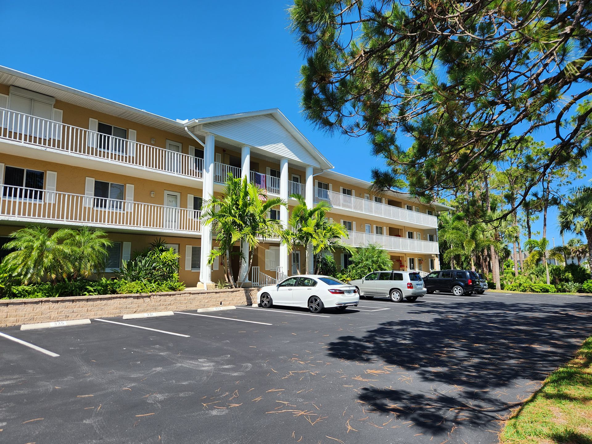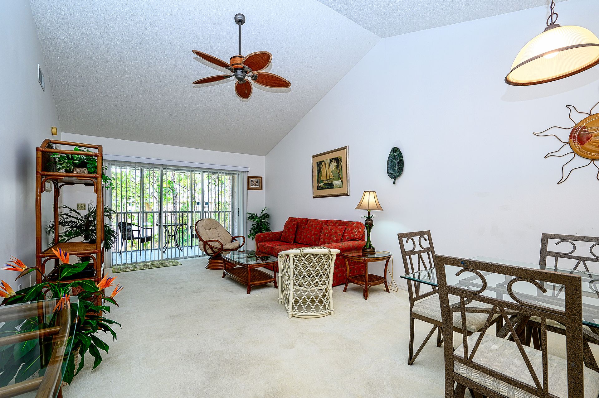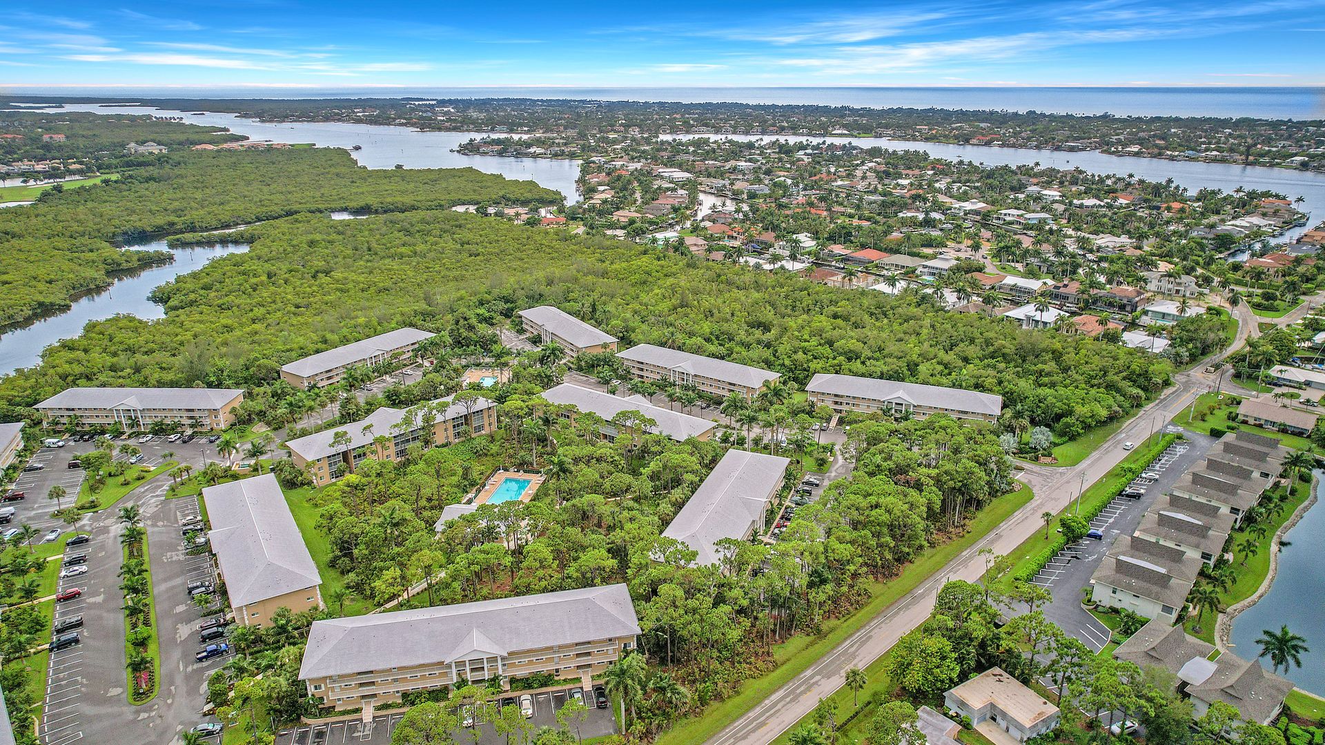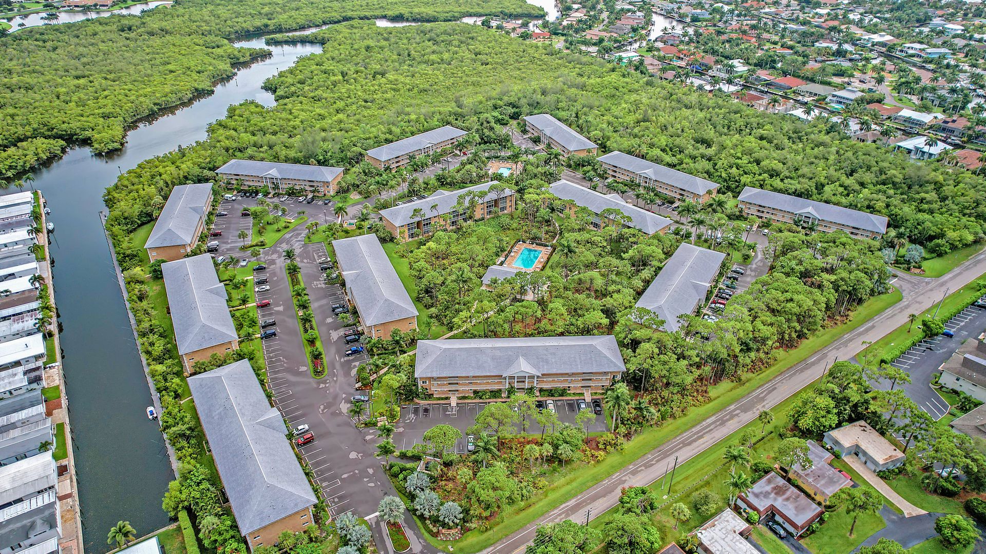 Just two miles east of Olde Naples, 5th Avenue, popular fine dining and shopping district and pristine white sandy beaches is the secluded community of Sandpiper Bay. The 15-acre property is nestled into and surrounded by nature preserve including a navigable waterway to Naples Bay and the Gulf of Mexico. The property offers natural and landscaped foliage, multiple low-rise buildings with elevators and stairs, comfortable two bedroom, two bath condos, two swimming pools with decks, lounges, tables and chairs, a clubhouse with an activity room, full kitchen and manager’s office plus an outdoor patio. A raised waterside boardwalk provides access to about 30 small power boat slips. Winding walkways and shaded seating areas with stainless steel grills are scattered about the property for the residents’ use and enjoyment. Occupancy can be owners or tenants, year-round or seasonal. Unit 305, a top-floor unit in building M, is being offered for sale. It is a two bedroom, two bathroom, 1,100 square-foot unit with a kitchen, a large living/dining room, cathedral ceiling, utility room and screened lanai. Flooring throughout is white ceramic tile and/or plush white carpeting.
