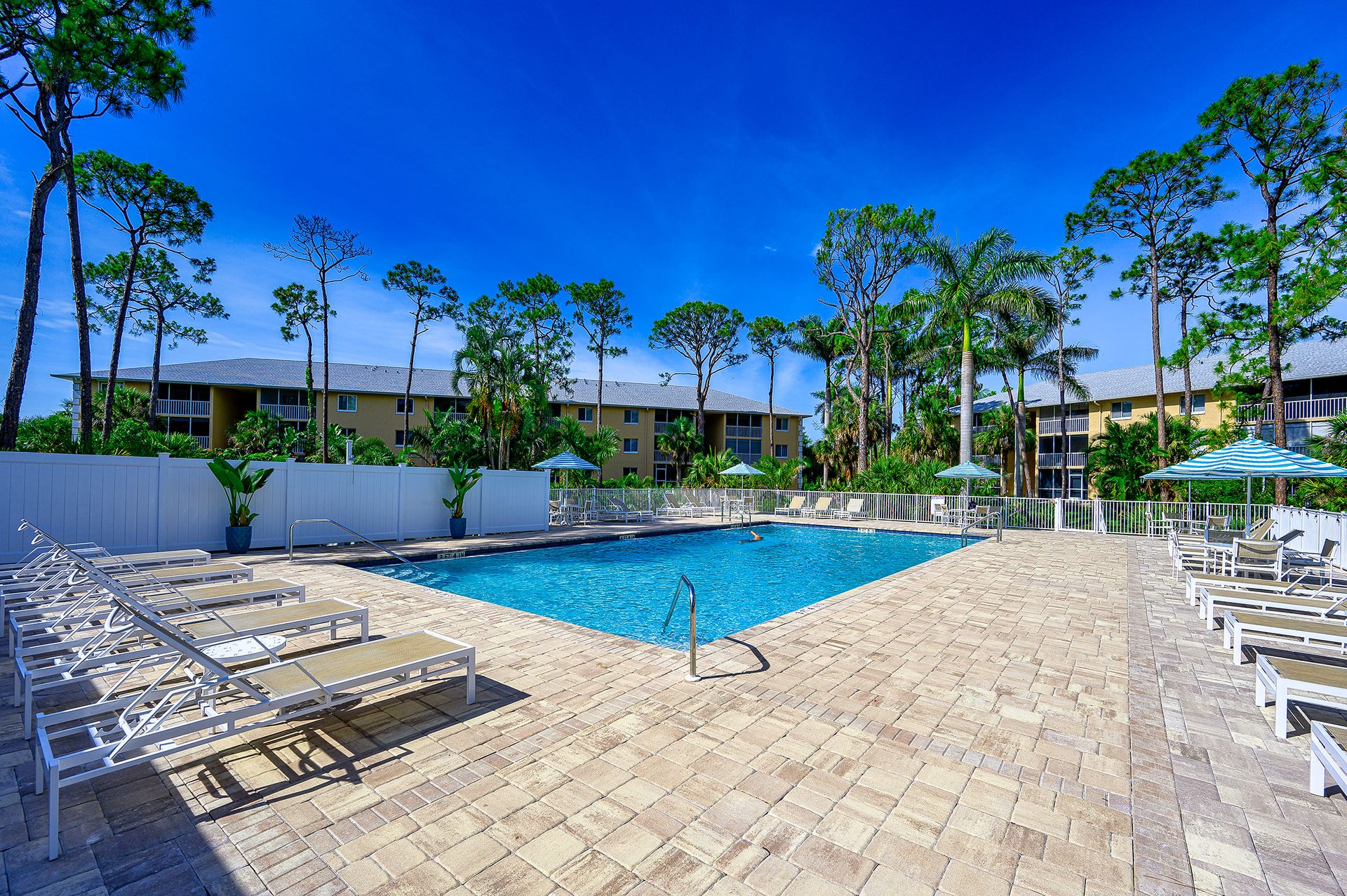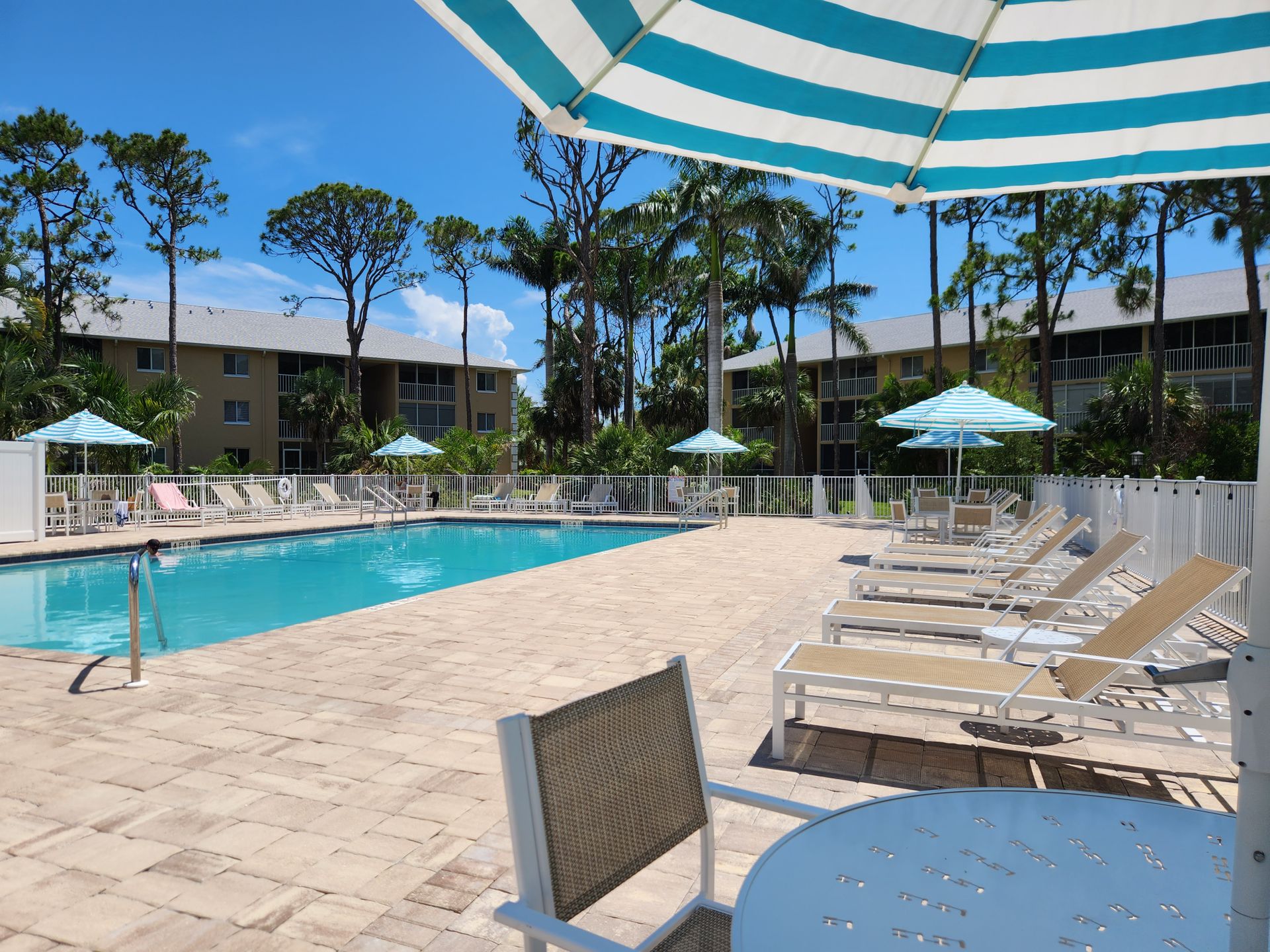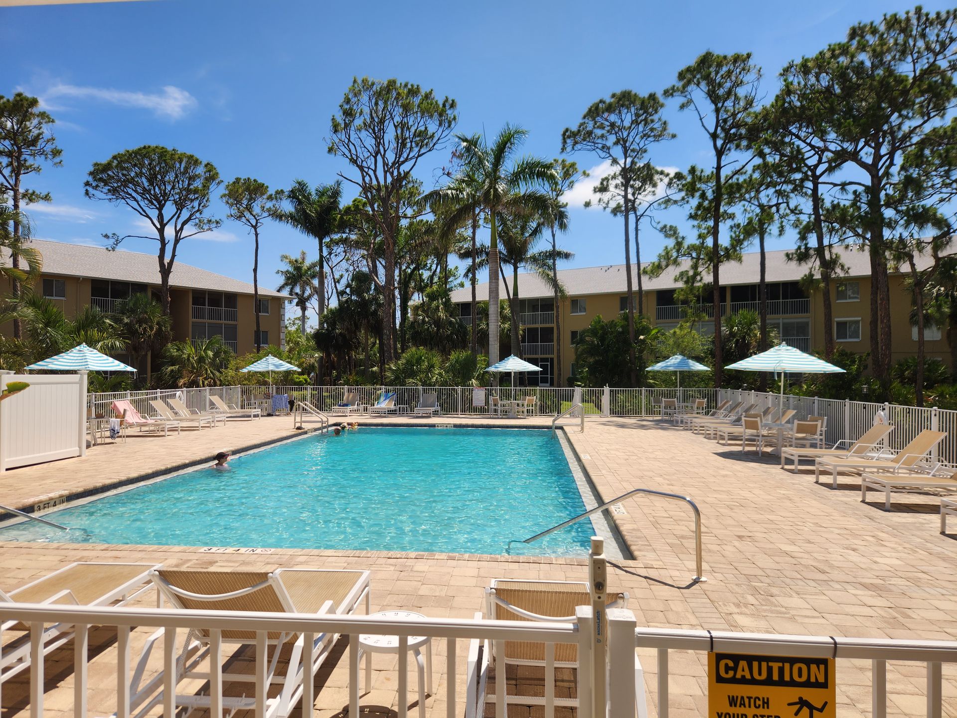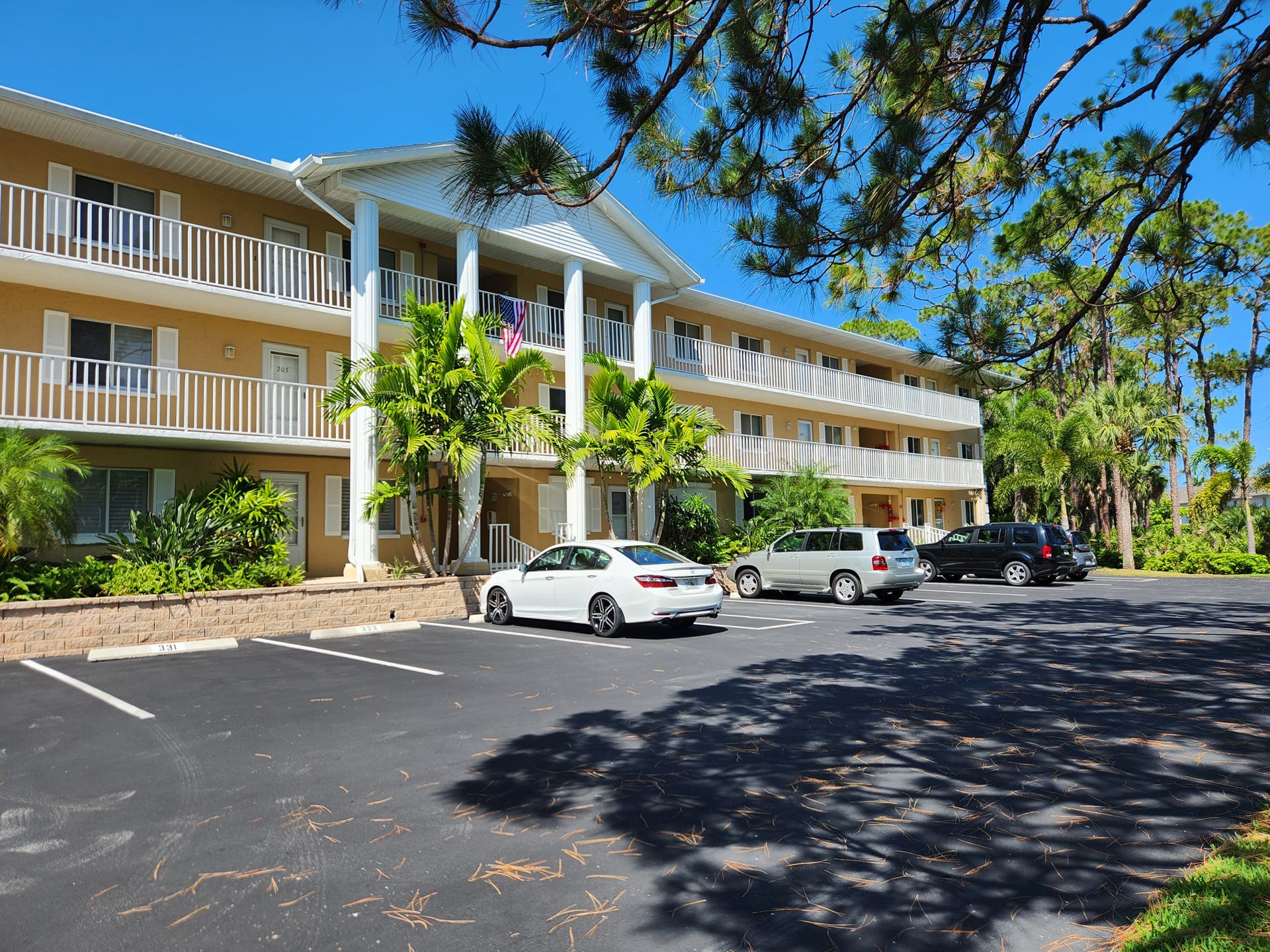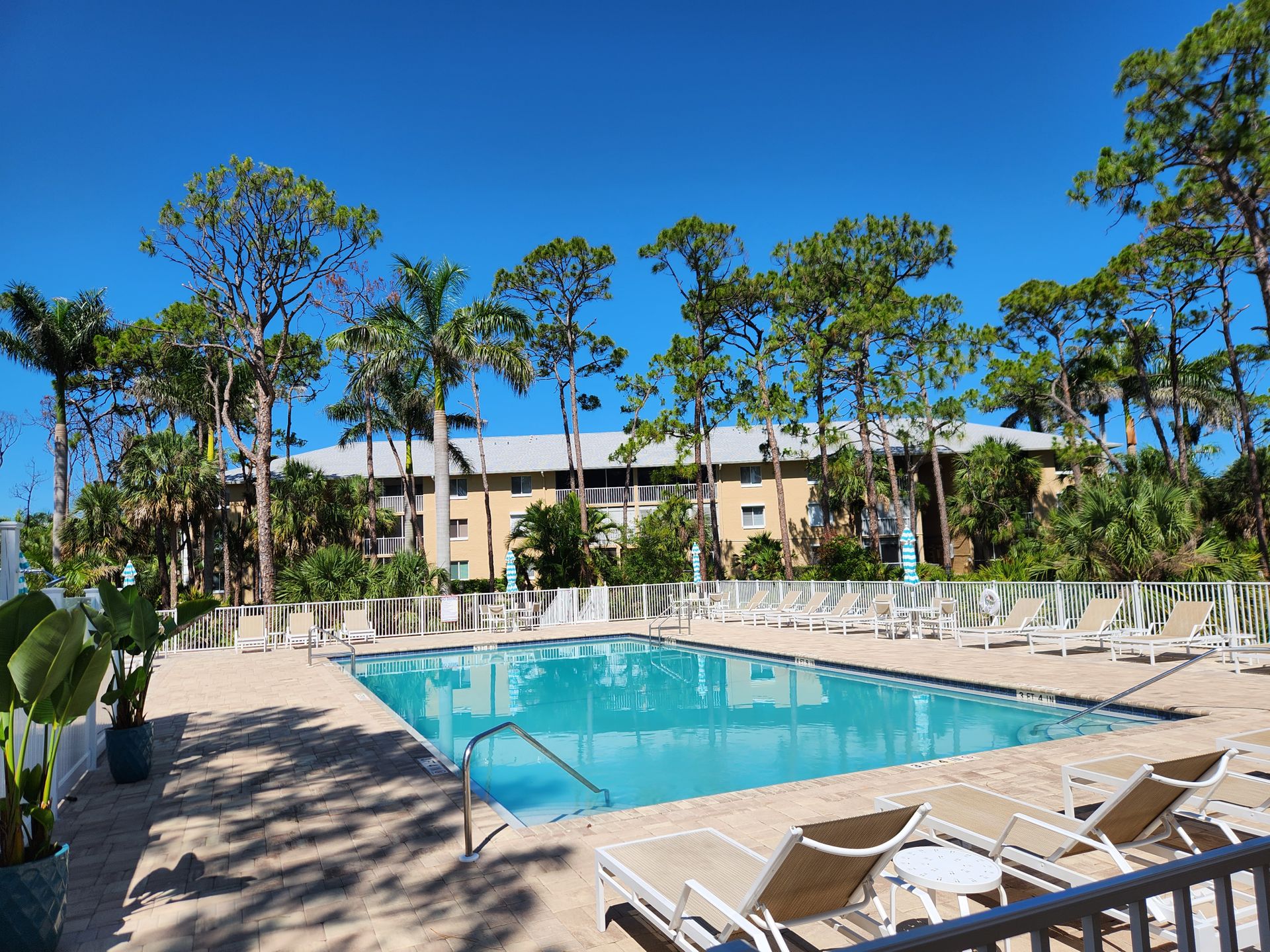 Just two miles east of Olde Naples, 5th Avenue, popular fine dining and shopping district and pristine white sandy beaches is the secluded community of Sandpiper Bay. The 15-acre property is nestled into and surrounded by nature preserve including a navigable waterway to Naples Bay and the Gulf of Mexico. The property offers natural and landscaped foliage, multiple low-rise buildings with elevators and stairs, comfortable two bedroom, two bath condos, two swimming pools with decks, lounges, tables and chairs, a clubhouse with an activity room, full kitchen and manager’s office plus an outdoor patio. A raised waterside boardwalk provides access to about 30 small power boat slips. Winding walkways and shaded seating areas with stainless steel grills are scattered about the property for the residents’ use and enjoyment. Occupancy can be owners or tenants, year-round or seasonal. Unit 305, a top-floor unit in building M, is being offered for sale. It is a two bedroom, two bathroom, 1,100 square-foot unit with a kitchen, a large living/dining room, cathedral ceiling, utility room and screened lanai. Flooring throughout is white ceramic tile and/or plush white carpeting.