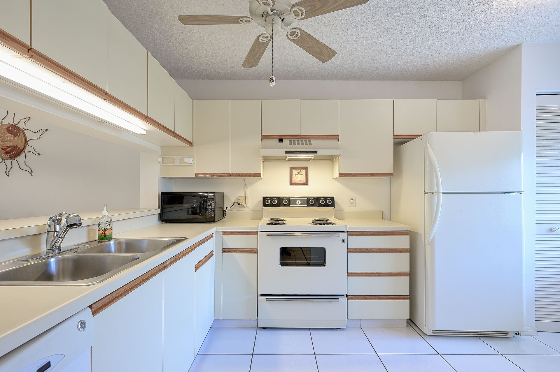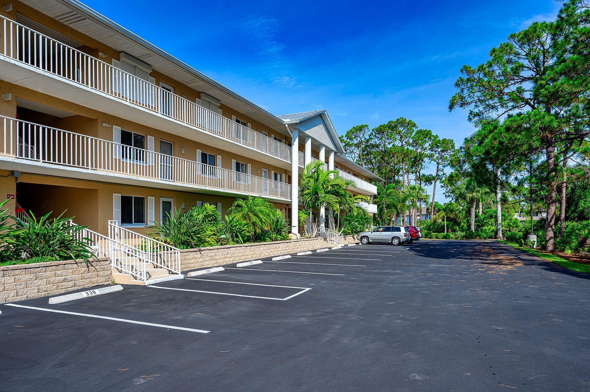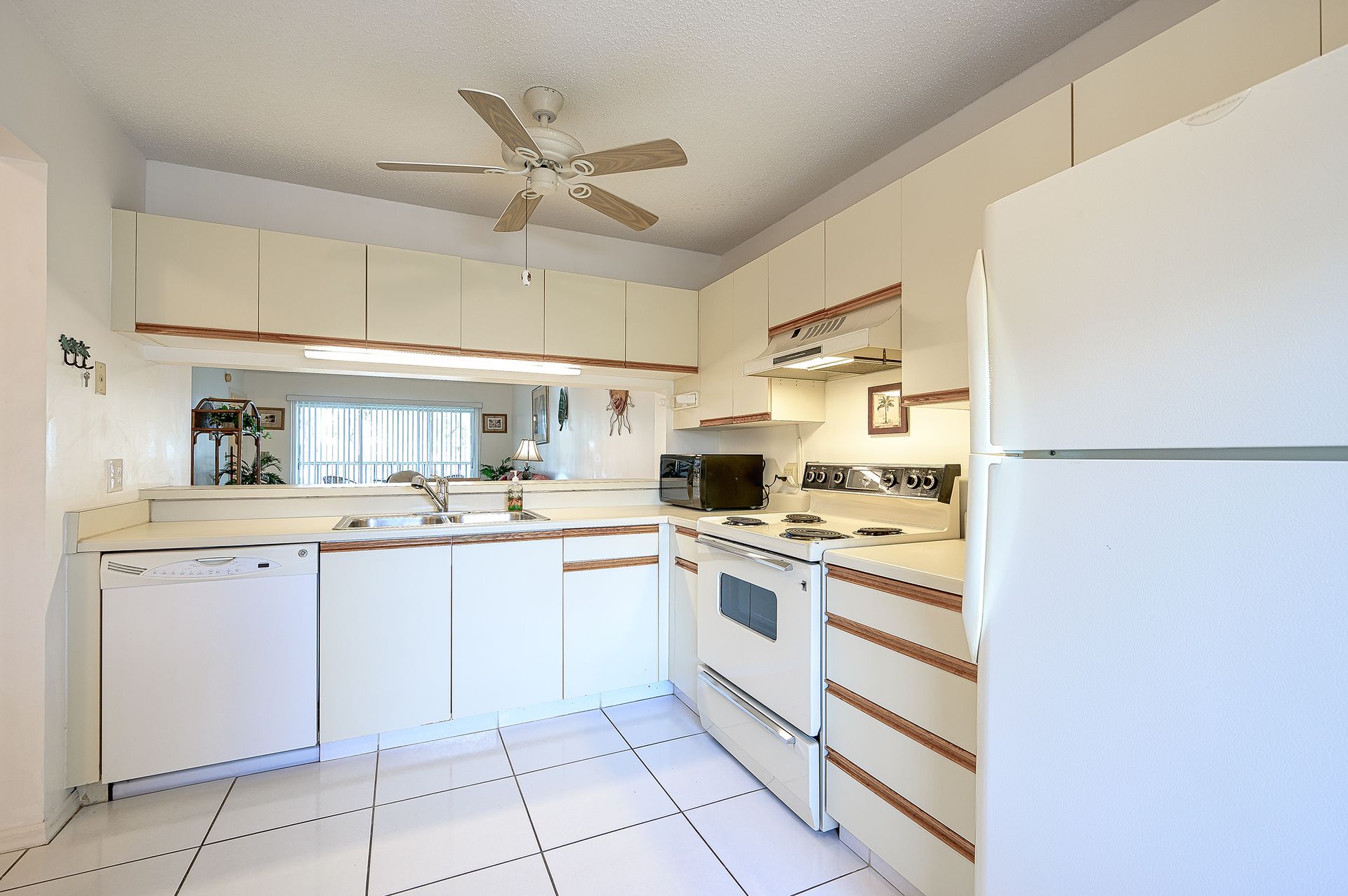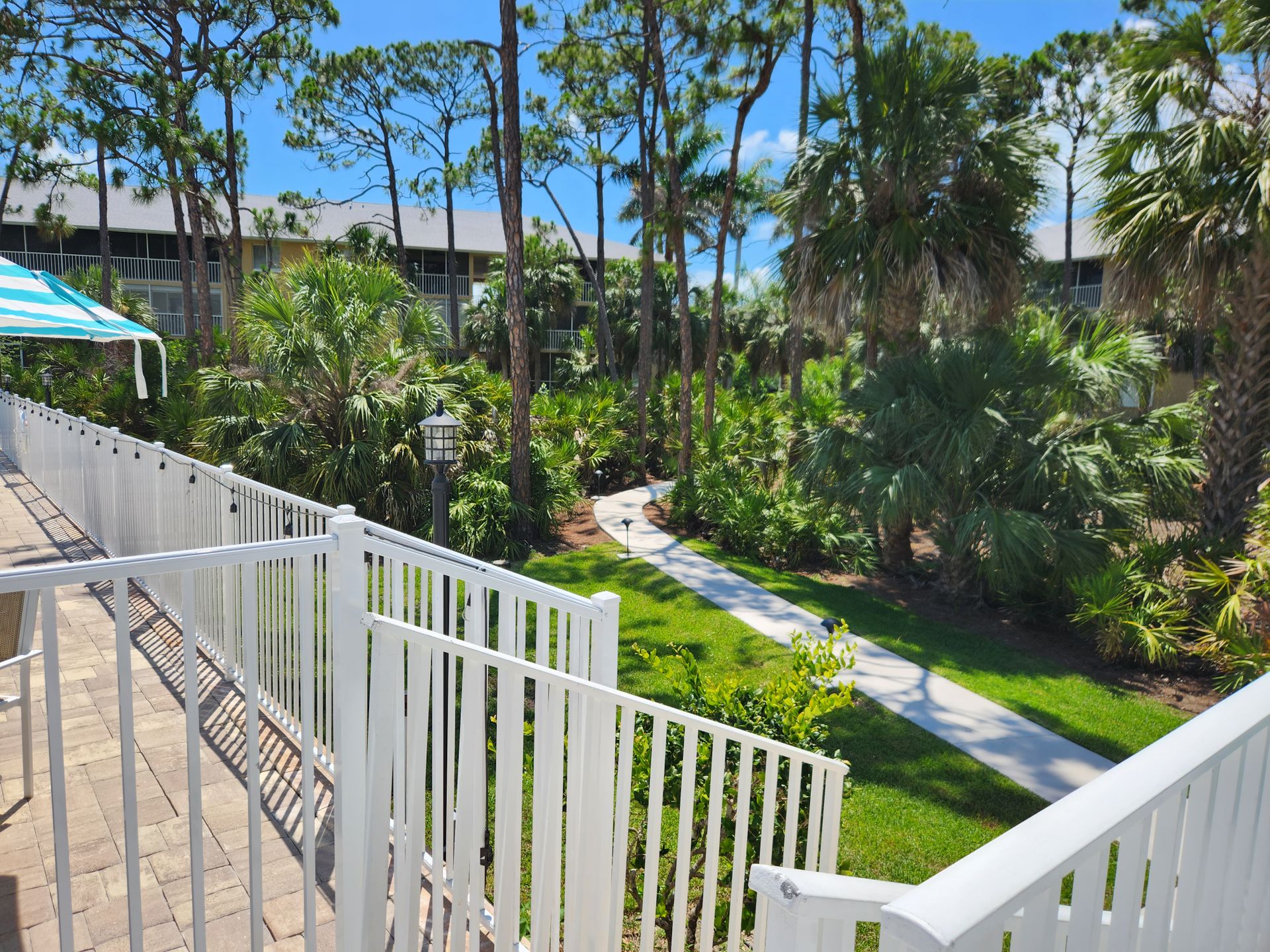 Just two miles east of Olde Naples, 5th Avenue, popular fine dining and shopping district and pristine white sandy beaches is the secluded community of Sandpiper Bay. The 15-acre property is nestled into and surrounded by nature preserve including a navigable waterway to Naples Bay and the Gulf of Mexico. The property offers natural and landscaped foliage, multiple low-rise buildings with elevators and stairs, comfortable two bedroom, two bath condos, two swimming pools with decks, lounges, tables and chairs, a clubhouse with an activity room, full kitchen and manager’s office plus an outdoor patio. A raised waterside boardwalk provides access to about 30 small power boat slips. Winding walkways and shaded seating areas with stainless steel grills are scattered about the property for the residents’ use and enjoyment. Occupancy can be owners or tenants, year-round or seasonal. Unit 305, a top-floor unit in building M, is being offered for sale. It is a two bedroom, two bathroom, 1,100 square-foot unit with a kitchen, a large living/dining room, cathedral ceiling, utility room and screened lanai. Flooring throughout is white ceramic tile and/or plush white carpeting.