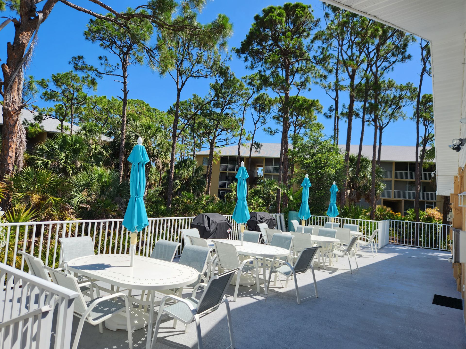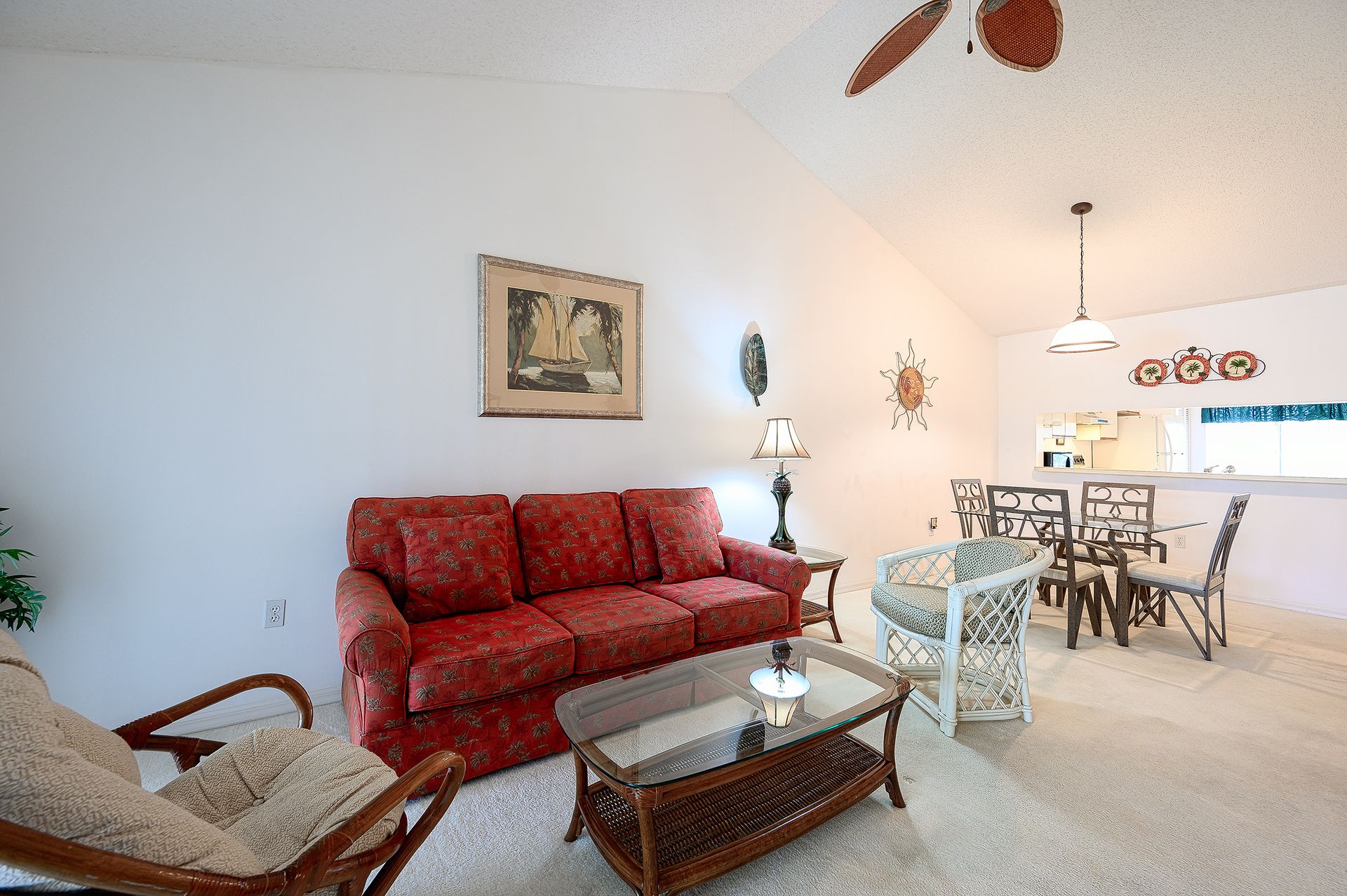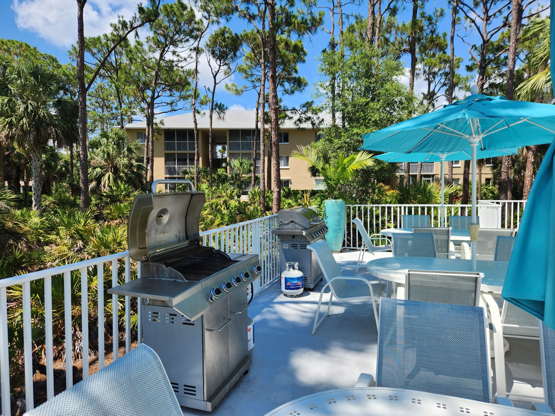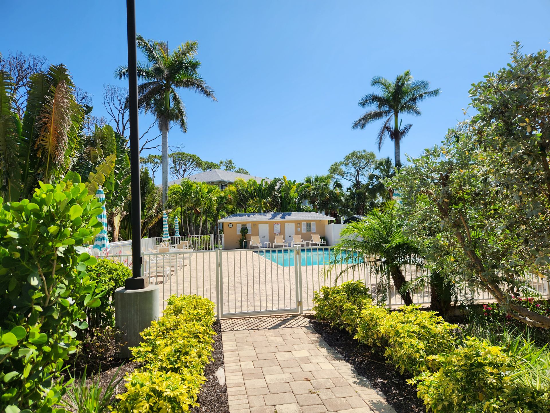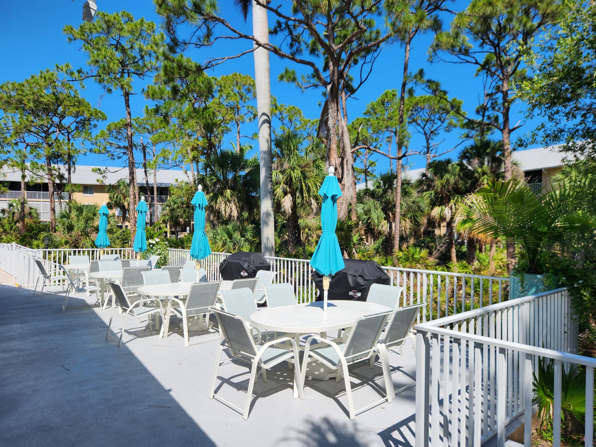Just two miles east of Olde Naples, 5th Avenue, popular fine dining and shopping district and pristine white sandy beaches is the secluded community of Sandpiper Bay. The 15-acre property is nestled into and surrounded by nature preserve including a navigable waterway to Naples Bay and the Gulf of Mexico. The property offers natural and landscaped foliage, multiple low-rise buildings with elevators and stairs, comfortable two bedroom, two bath condos, two swimming pools with decks, lounges, tables and chairs, a clubhouse with an activity room, full kitchen and manager’s office plus an outdoor patio. A raised waterside boardwalk provides access to about 30 small power boat slips. Winding walkways and shaded seating areas with stainless steel grills are scattered about the property for the residents’ use and enjoyment. Occupancy can be owners or tenants, year-round or seasonal. Unit 305, a top-floor unit in building M, is being offered for sale. It is a two bedroom, two bathroom, 1,100 square-foot unit with a kitchen, a large living/dining room, cathedral ceiling, utility room and screened lanai. Flooring throughout is white ceramic tile and/or plush white carpeting.