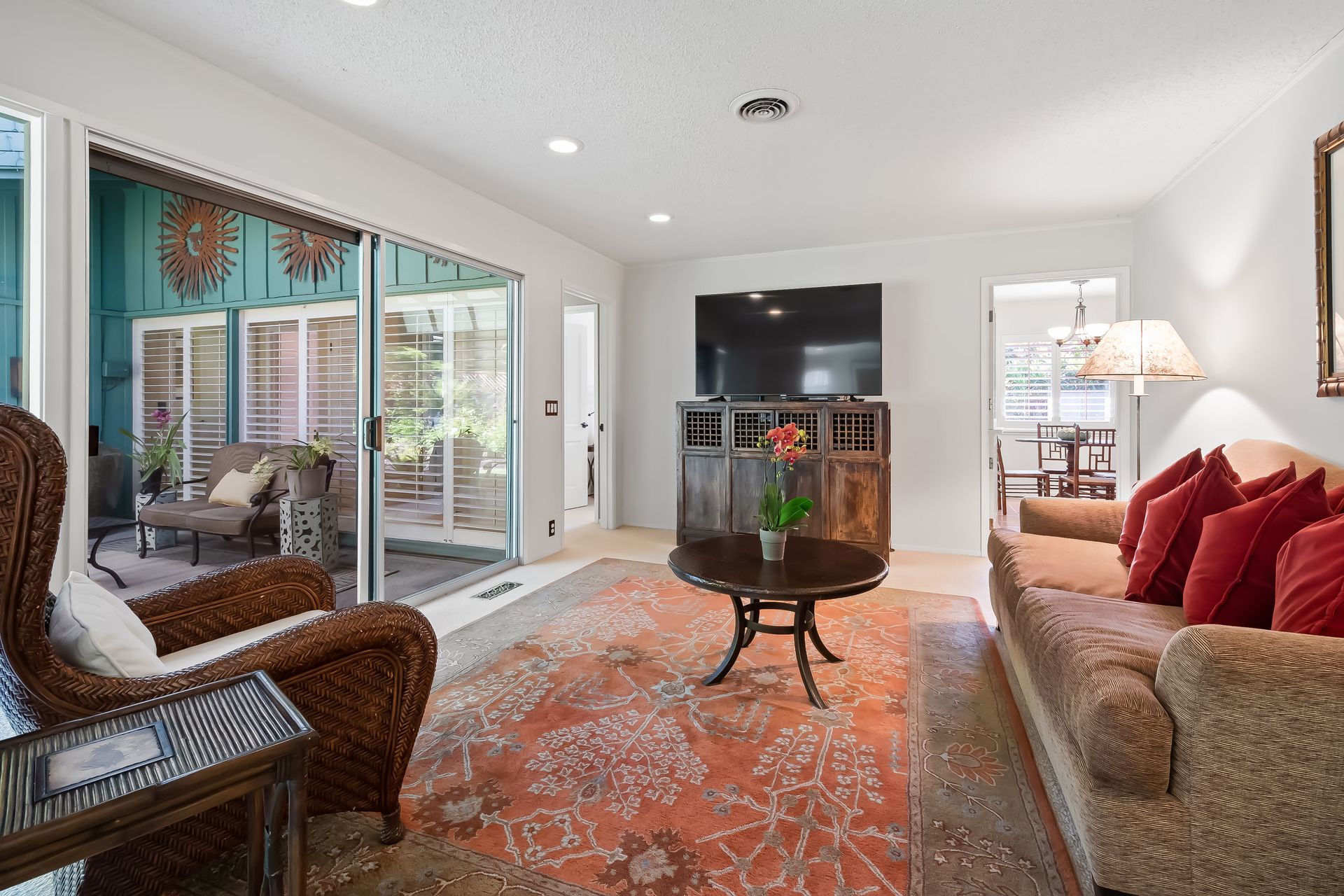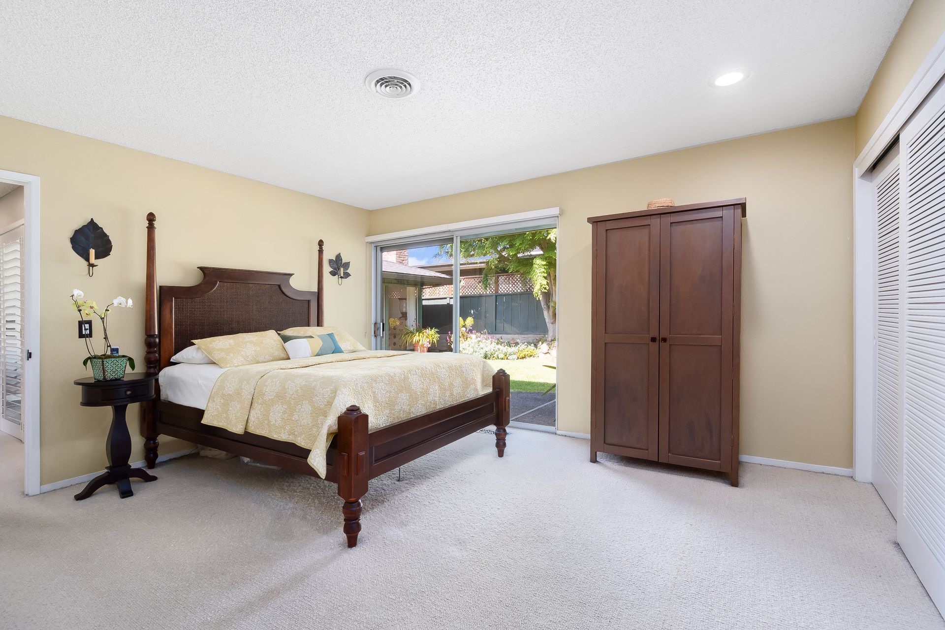 Comfortable and stylish, this 3-bedroom, 2.5-bath Peacock Gap residence offers the laid-back lifestyle you've always wanted! Inside the 1,900-sq ft layout, nothing says comfort like your living room with peaceful views of your lush garden framed by an array of expansive glass windows. A brick-clad accent wall draws your eye to the raised hearth fireplace, a warm spot to gather. Delight in blissful movie nights in the cozy family room with direct outdoor access. Natural light filters in through plantation shutters as you feast in the formal dining or the cheerful breakfast nook. Steps away, the chef's kitchen treats you to a full set of appliances, plenty of cabinetry, and tile countertops.