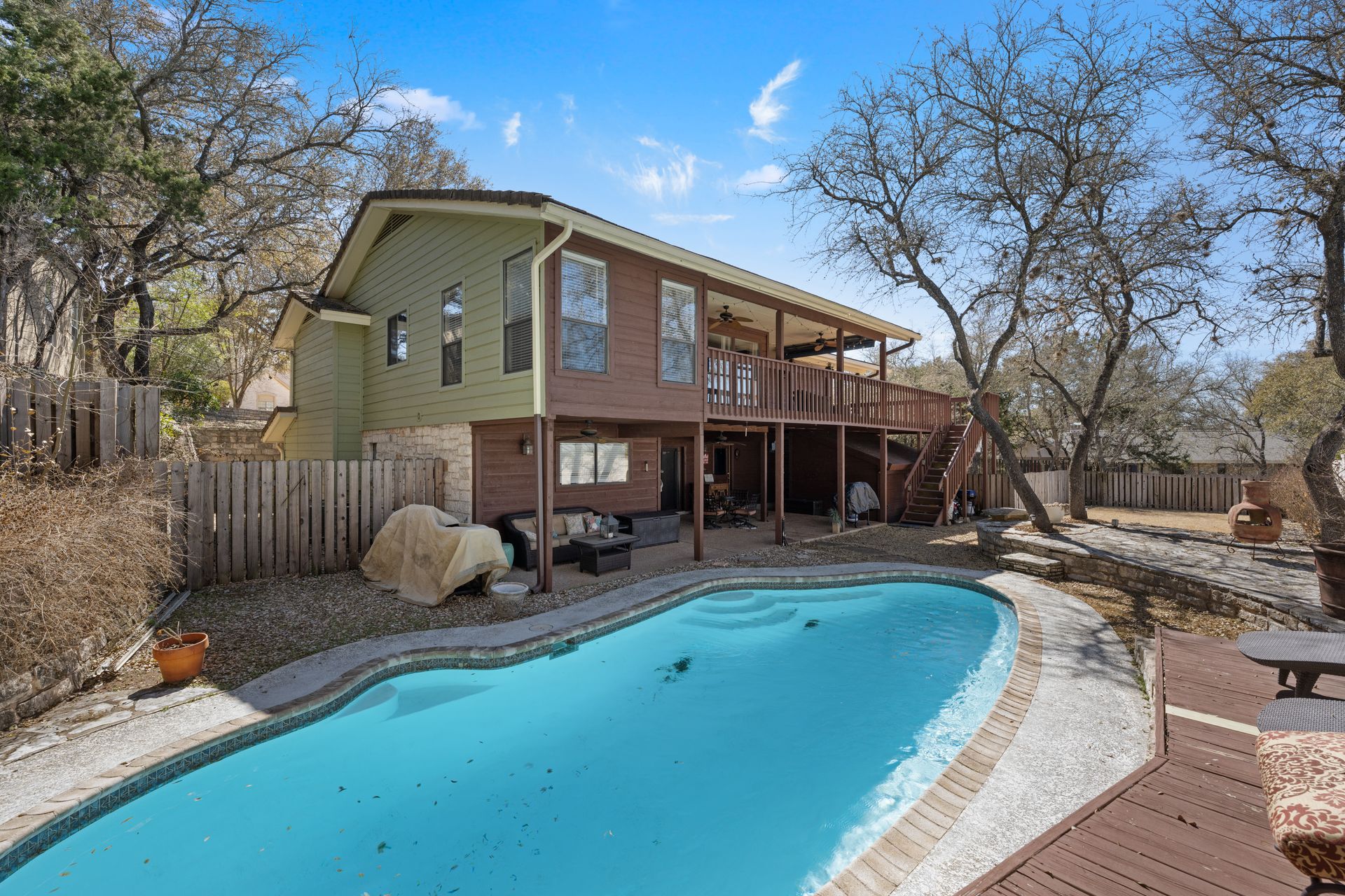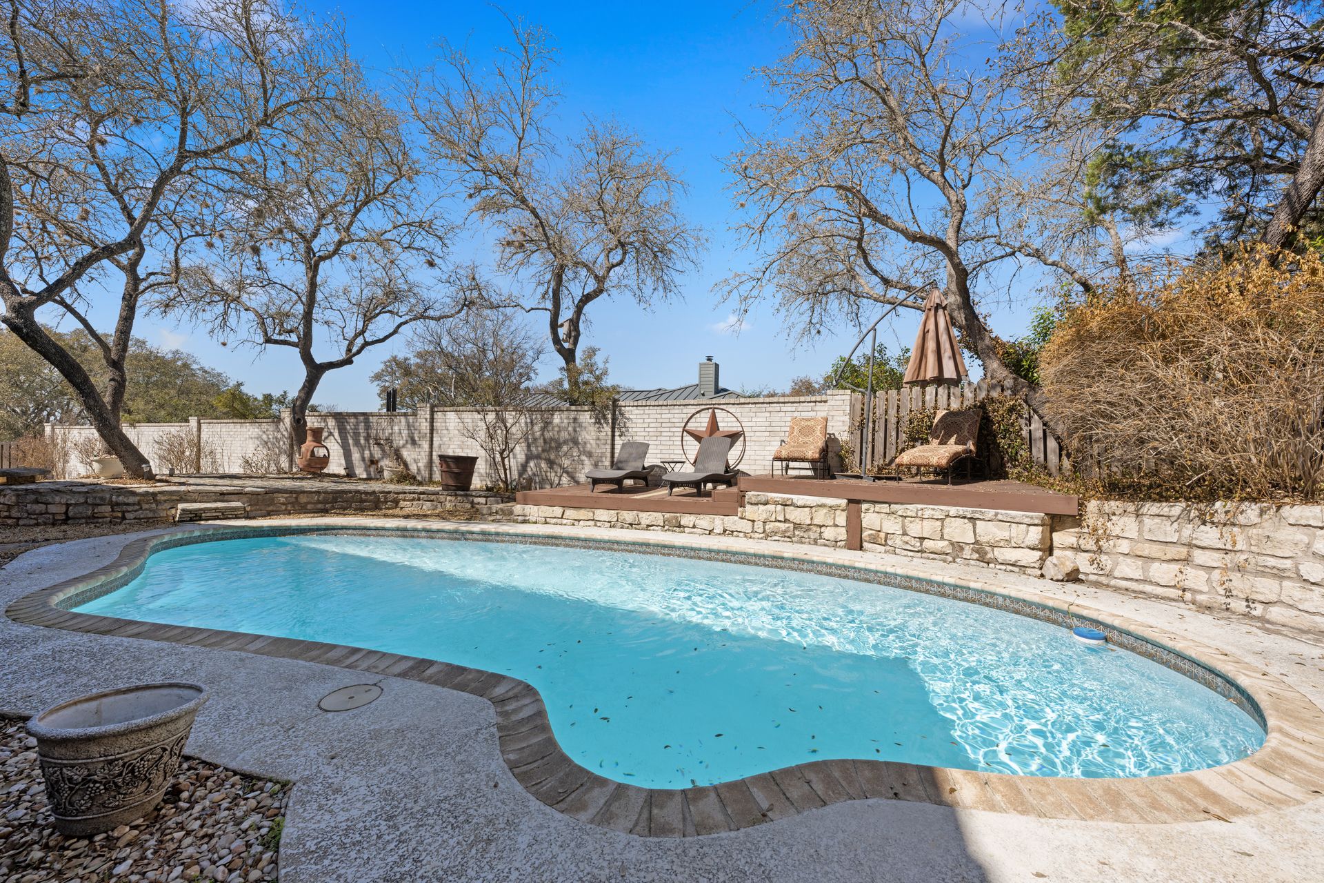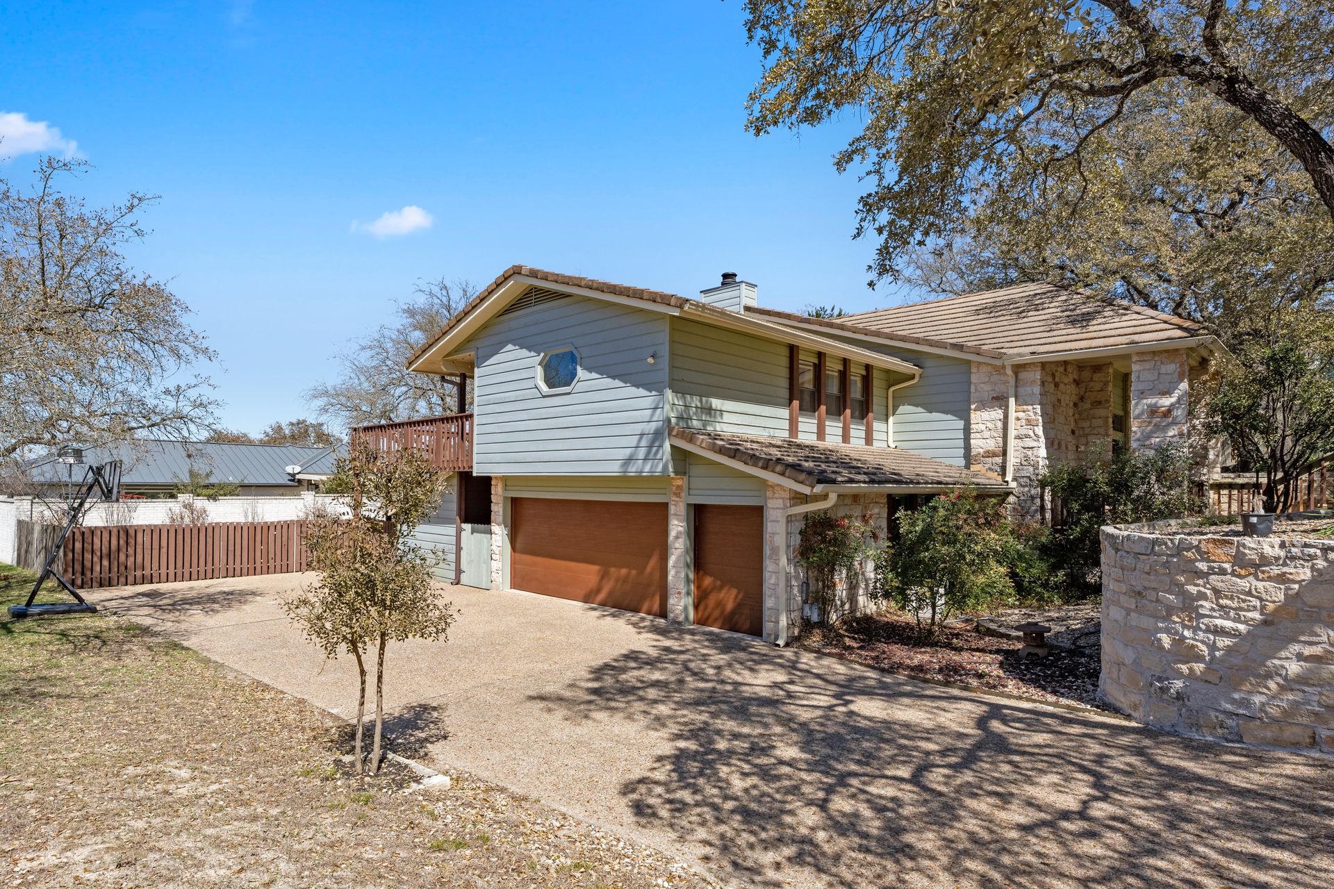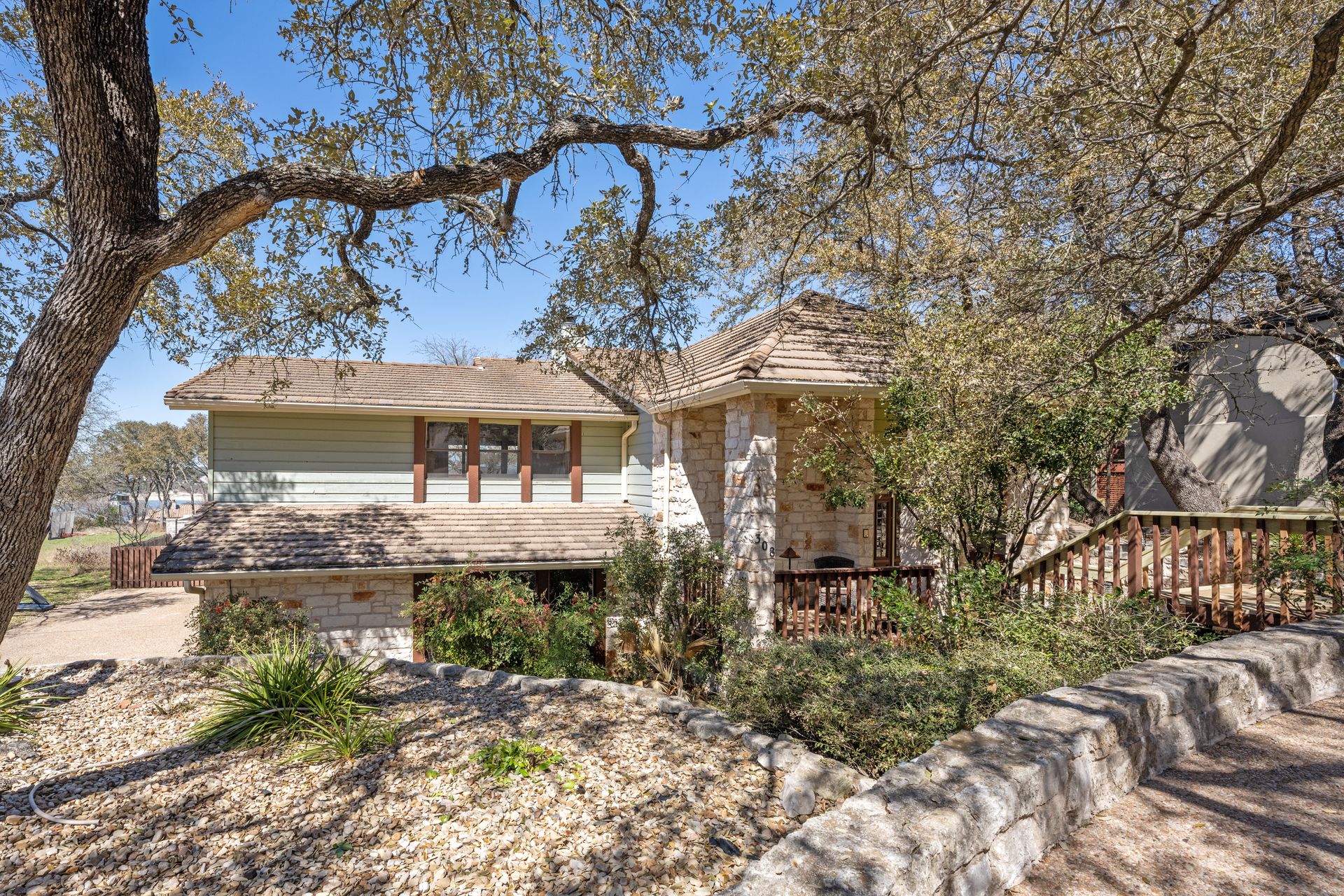 Hits all the high points you’ve been waiting for! Lake view CHECK ~ Pool CHECK ~ Lake Travis Schools CHECK ~ Coveted Old Lakeway CHECK ~ four bedrooms CHECK ~ Sitting on nearly half an acre, this split level home has everything you need in the backyard living space for perfect enjoyment this summer with a large upper deck, pool, covered patio, and sundeck areas. The upper level features beautiful wood floors, owner’s suite with two walk-in closets and access to the outdoor deck space. Large living area with wood burning fireplace, natural light, breakfast area, dining room and kitchen. Kitchen-Aid stainless appliances including an oversized oven. Three large bedrooms and full bath downstairs with access to pool and patio areas, large laundry room. Two and a half car garage with golf cart access and large built-in storage/shop shed. Plenty of storage. Concrete tile roof with a low maintenance front yard and fenced area out back with gorgeous rose bushes.