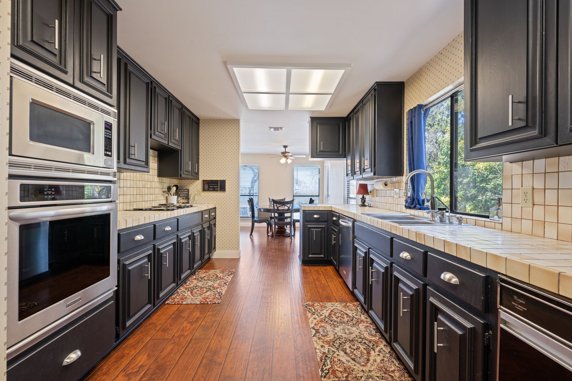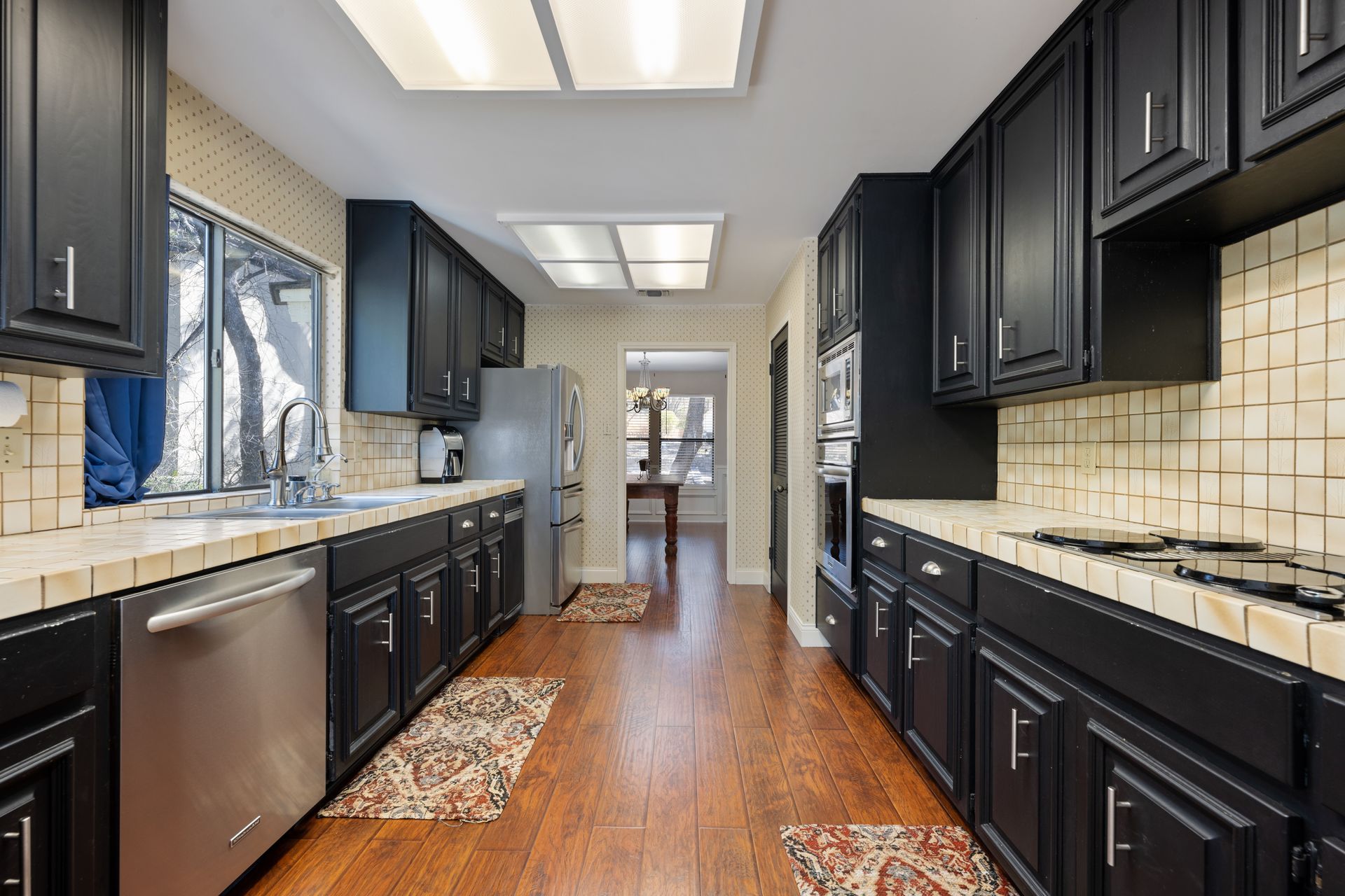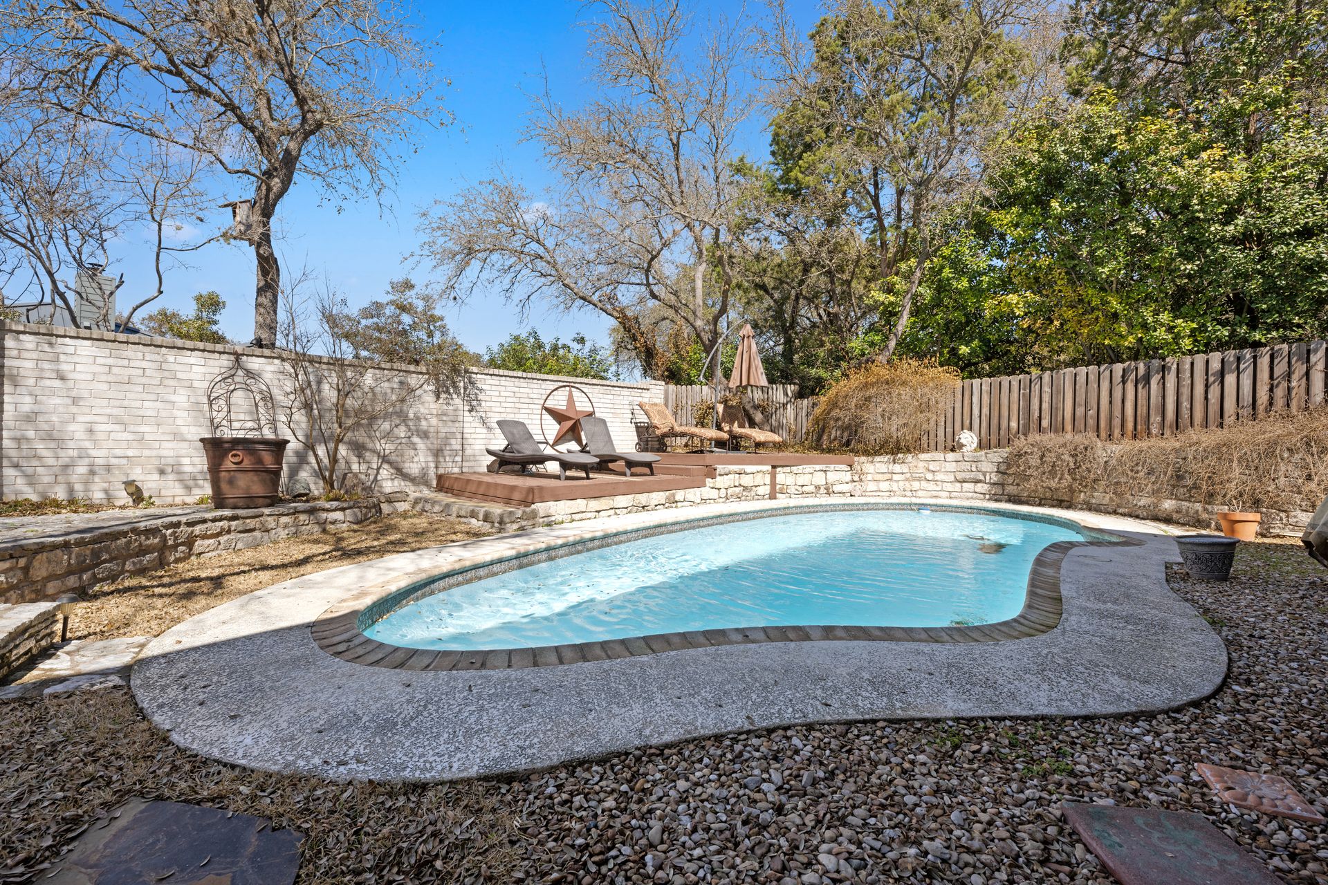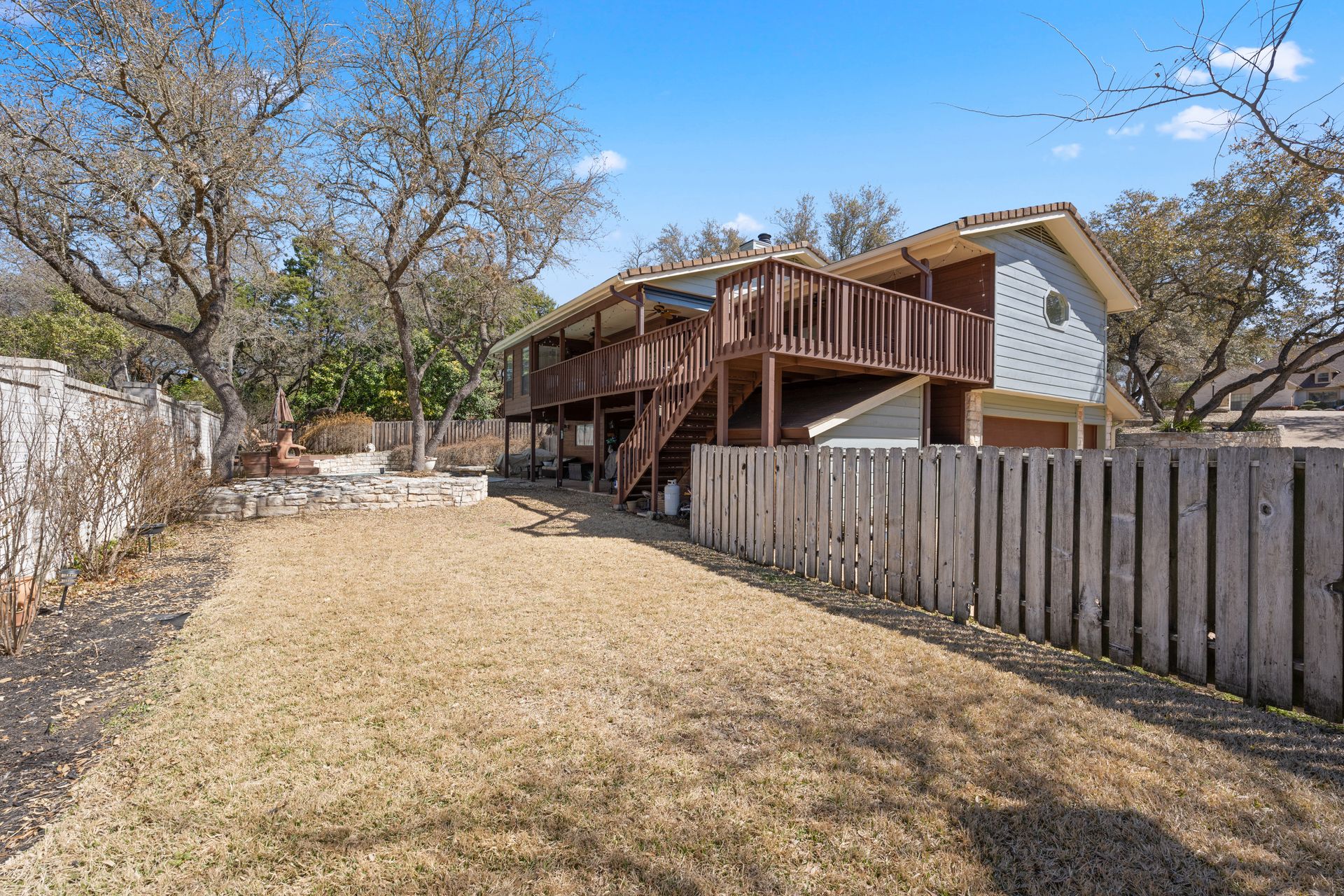 Hits all the high points you’ve been waiting for! Lake view CHECK ~ Pool CHECK ~ Lake Travis Schools CHECK ~ Coveted Old Lakeway CHECK ~ four bedrooms CHECK ~ Sitting on nearly half an acre, this split level home has everything you need in the backyard living space for perfect enjoyment this summer with a large upper deck, pool, covered patio, and sundeck areas. The upper level features beautiful wood floors, owner’s suite with two walk-in closets and access to the outdoor deck space. Large living area with wood burning fireplace, natural light, breakfast area, dining room and kitchen. Kitchen-Aid stainless appliances including an oversized oven. Three large bedrooms and full bath downstairs with access to pool and patio areas, large laundry room. Two and a half car garage with golf cart access and large built-in storage/shop shed. Plenty of storage. Concrete tile roof with a low maintenance front yard and fenced area out back with gorgeous rose bushes.