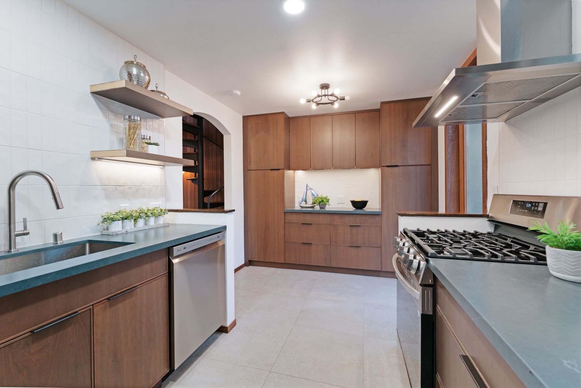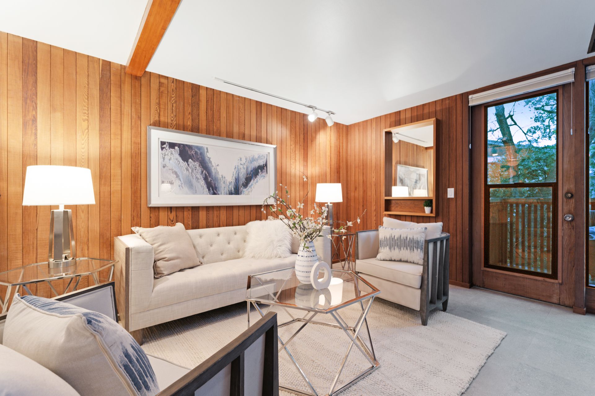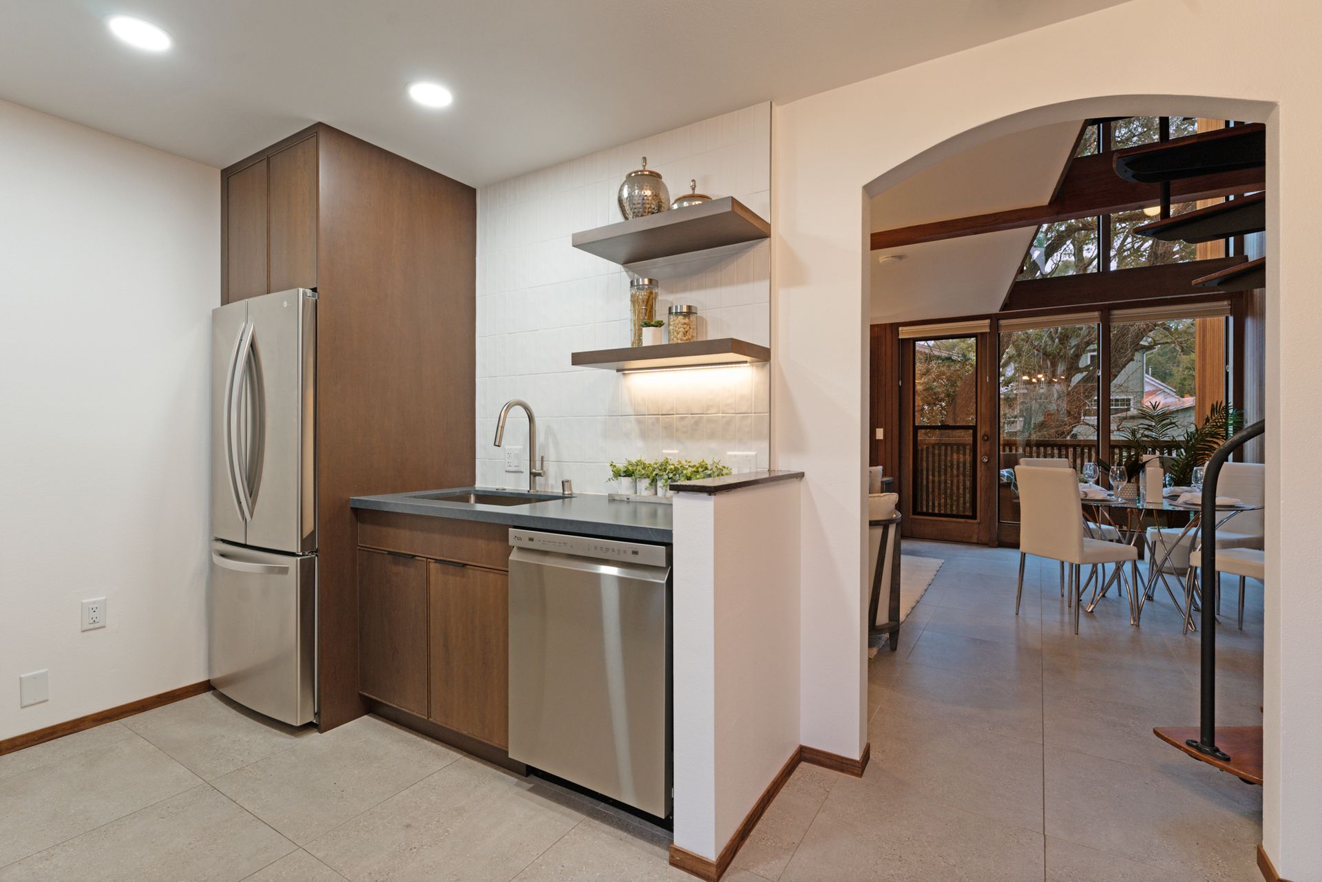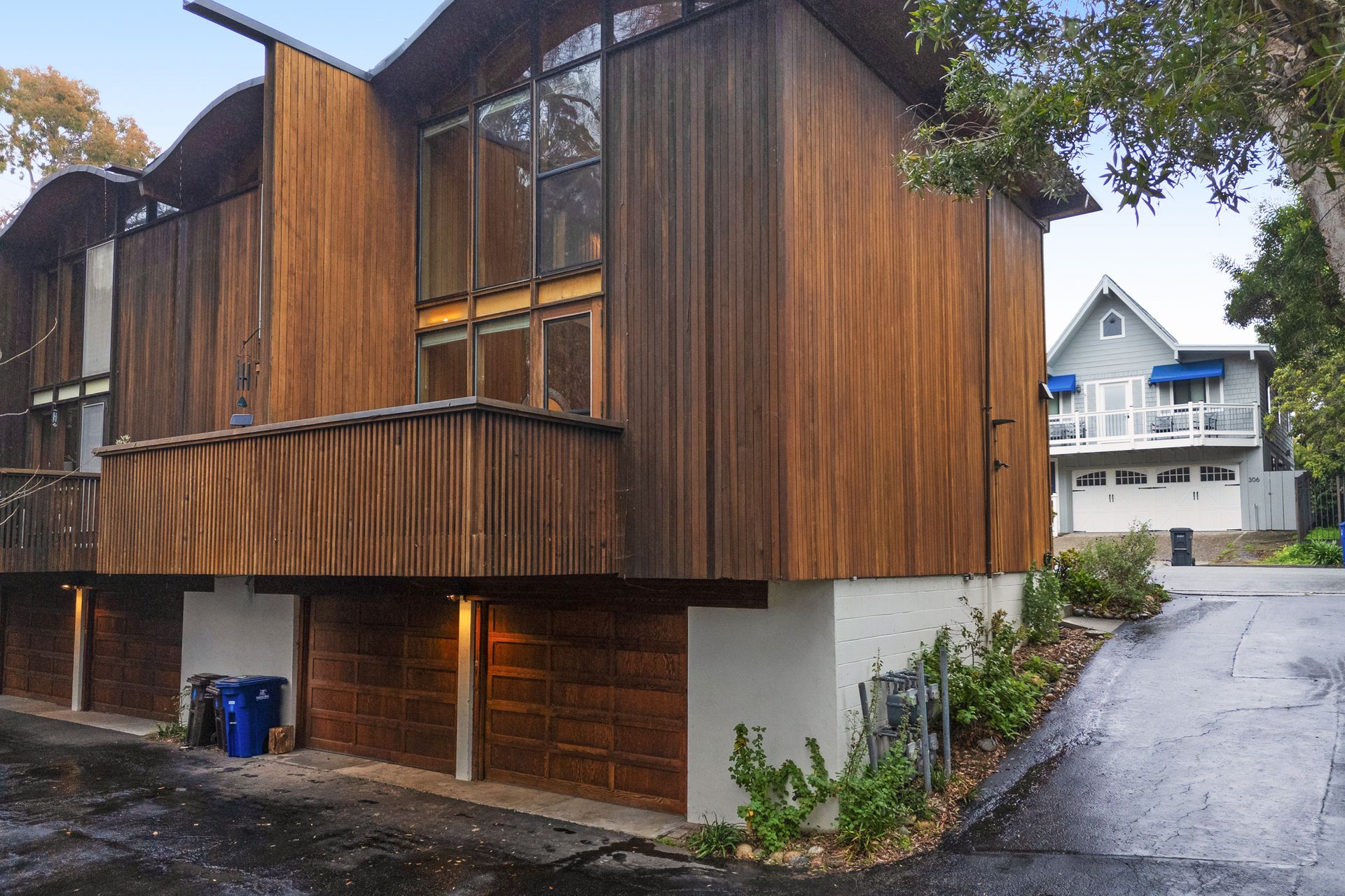 Fabulous home in the heart of Seabright. Recently updated in 2022 with a sleek contemporary kitchen with flat panel cabinetry, designer tile, floating shelves and quartz countertops. It also includes an open concept living area with treetop views and a private rear deck. The main living area has sophisticated tile flooring, crisp white and natural wood lined walls which creates an organic warm environment. The spiral stair case leads to the upstairs area with two bedrooms and a newly updated bathroom. Both bedrooms have built-in closet systems and the windows were replaced throughout the home The private driveway provides access to the unit's one-car garage with additional storage closets. The small six unit complex has a community laundry room with a washer and dryer. In close proximity to some of Santa Cruz's most beautiful beaches, the natural history museum and wonderful restaurants. Welcome home!