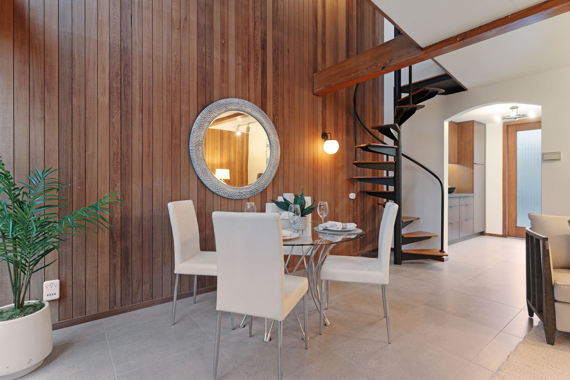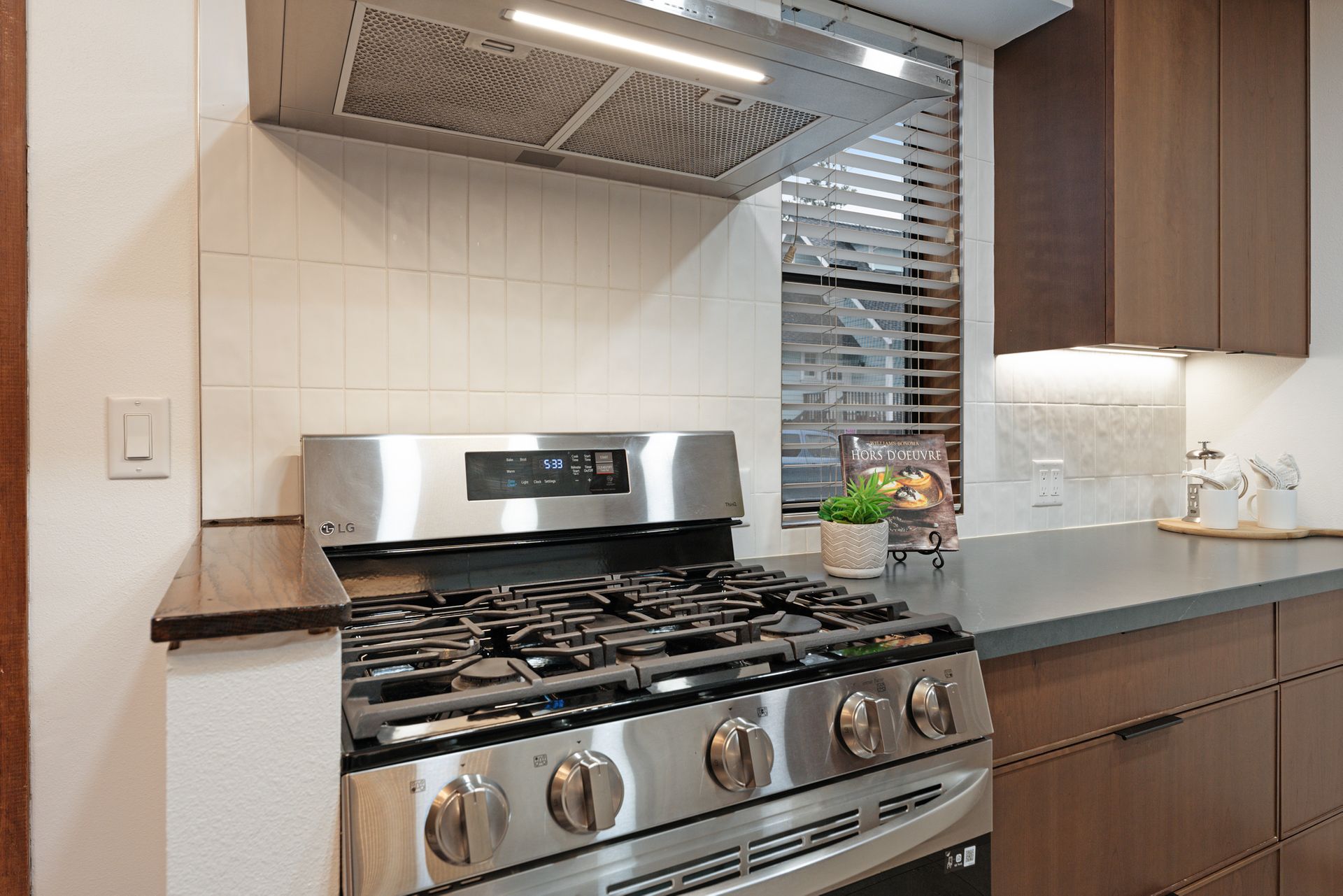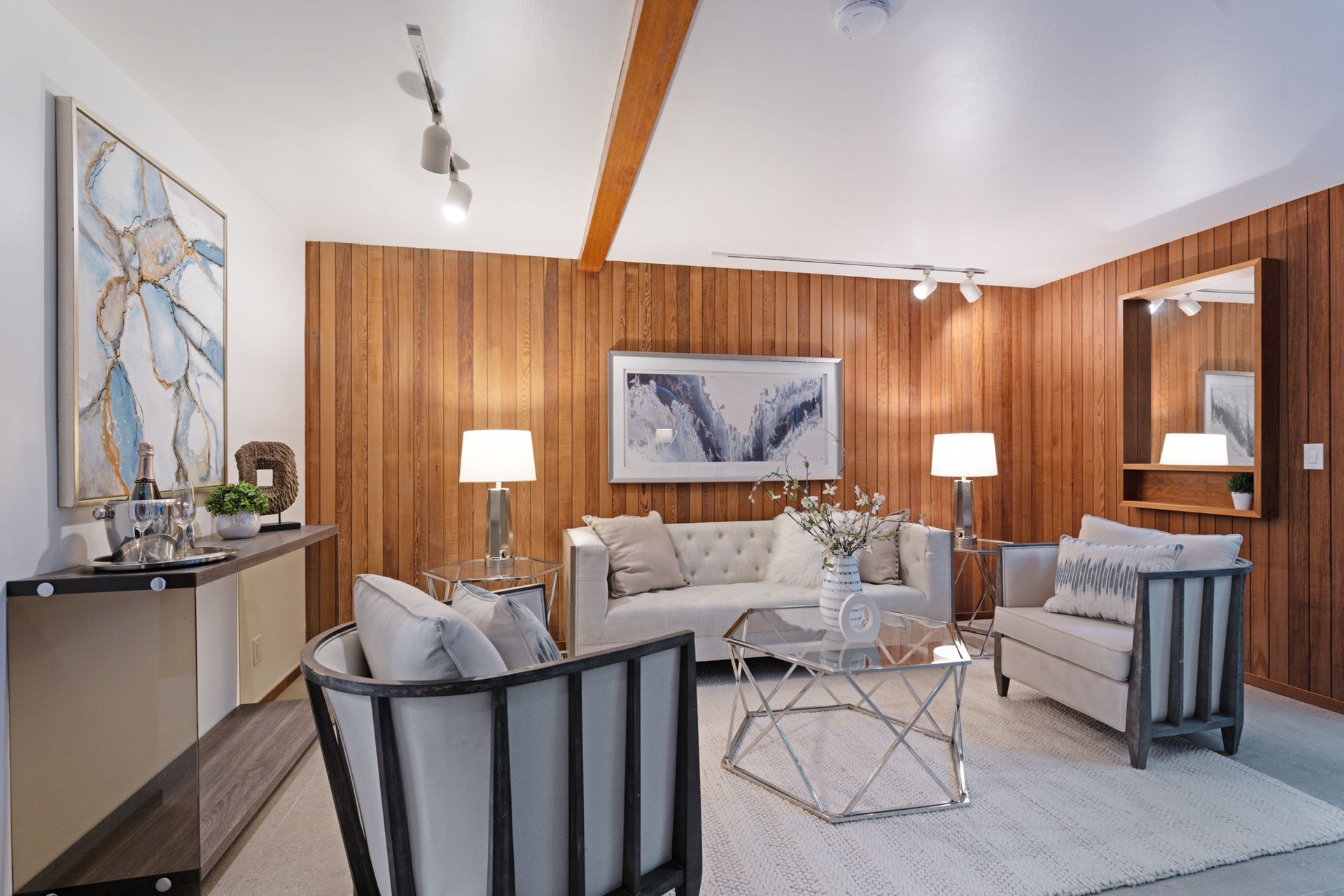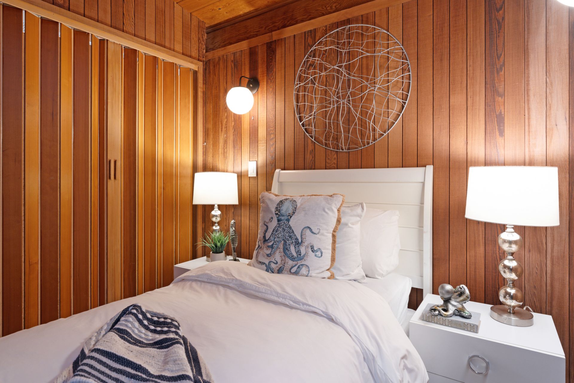 Fabulous home in the heart of Seabright. Recently updated in 2022 with a sleek contemporary kitchen with flat panel cabinetry, designer tile, floating shelves and quartz countertops. It also includes an open concept living area with treetop views and a private rear deck. The main living area has sophisticated tile flooring, crisp white and natural wood lined walls which creates an organic warm environment. The spiral stair case leads to the upstairs area with two bedrooms and a newly updated bathroom. Both bedrooms have built-in closet systems and the windows were replaced throughout the home The private driveway provides access to the unit's one-car garage with additional storage closets. The small six unit complex has a community laundry room with a washer and dryer. In close proximity to some of Santa Cruz's most beautiful beaches, the natural history museum and wonderful restaurants. Welcome home!