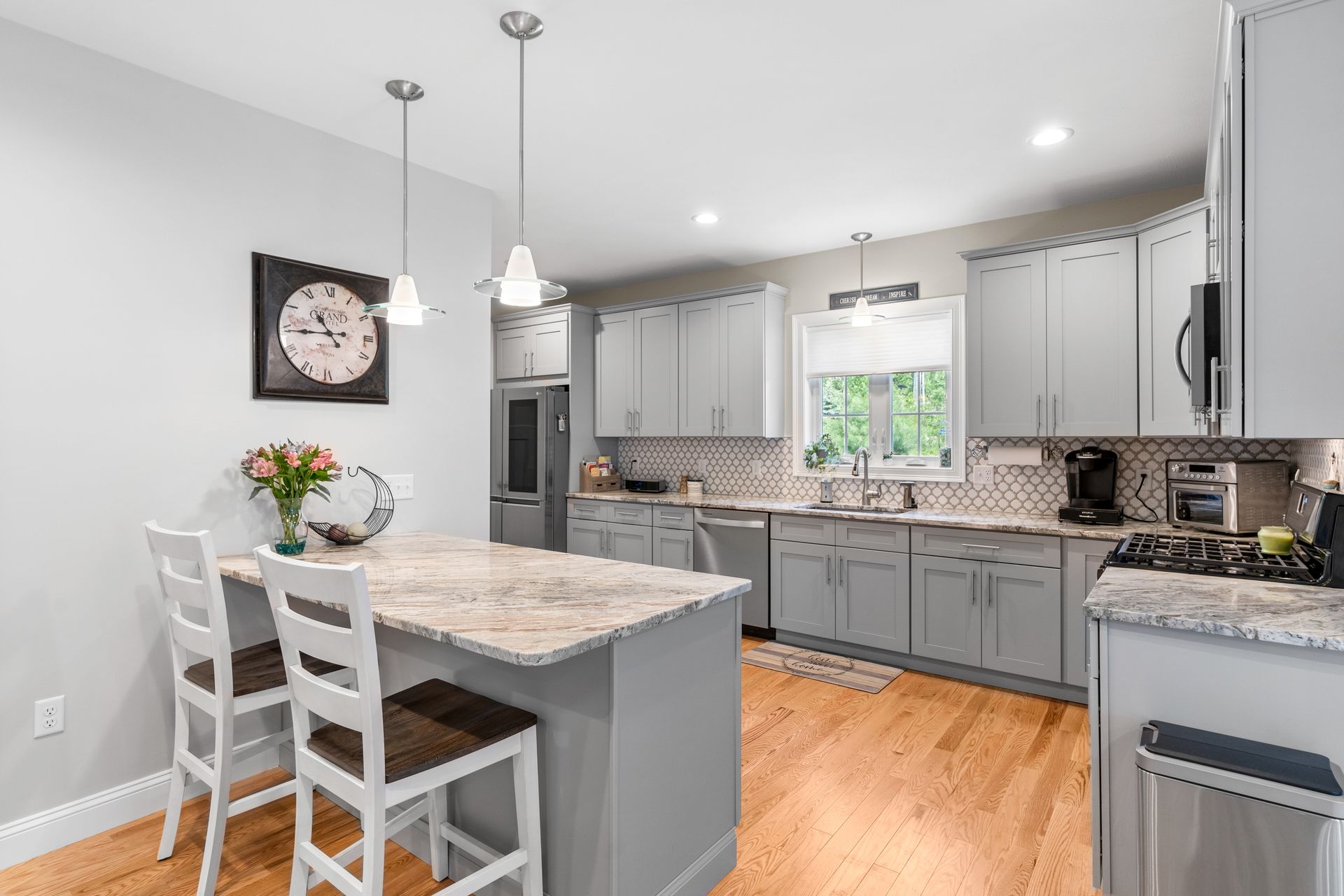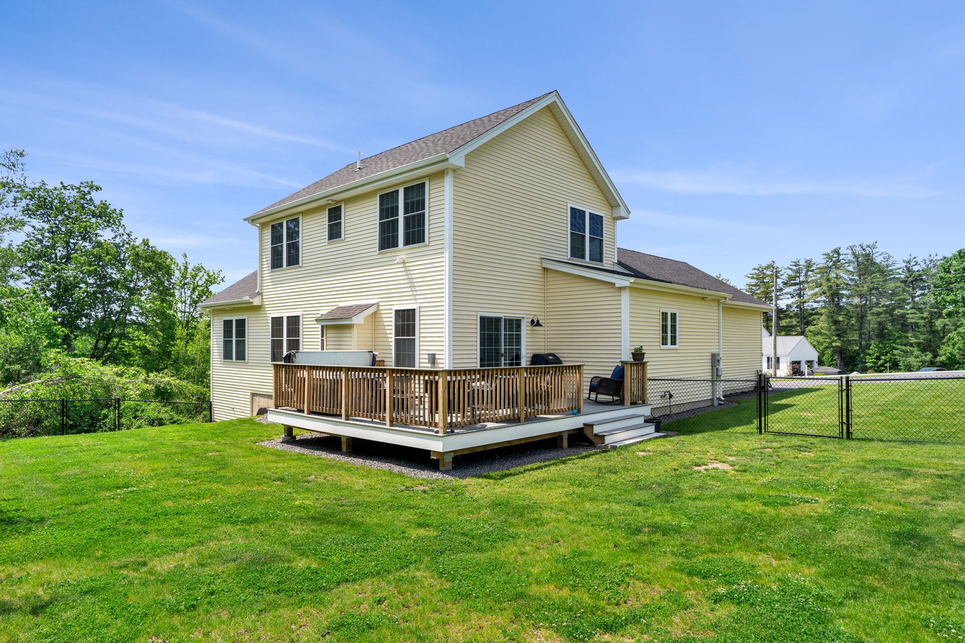 Pride of ownership throughout this wonderful and unique contemporary colonial with a craftsman flair and it looks better than the day it was built barely 2 years ago! First floor en-suite primary bedroom with gorgeous tiled shower and a walk in closet PLUS a good sized 2nd closet. Soaring 9 FT ceilings throughout the main floor with cathedral ceilings in the Primary Suite. Walk in directly from the garage to the Custom Kitchen (with a laundry room/pantry off to the right) and the kitchen opens up to the spacious living room and dining area as well as a flex room that could be used as a den or office and a first floor powder room, too. Upgrades throughout and high end finishes from the Crown Moulding to the SS appliances, granite counters, custom window treatments, upgraded lighting, trim, doors and tiled backsplash in the kitchen. Almost 1500 square feet of living space on the main floor alone offering plenty of space should you desire one level living. Upstairs you will find3 additional immaculate (barely touched) bedrooms and a full bath. The walkout basement with double doors is just waiting to be finished and is almost 1500 square feet itself! Outside you'll find gorgeous landscaping, a fenced area for the dogs, gutters all around and a Large wraparound deck off the living room and a 7 zone irrigation system. What a perfect place to enjoy the stars at night. A must see that will NOT disappoint!