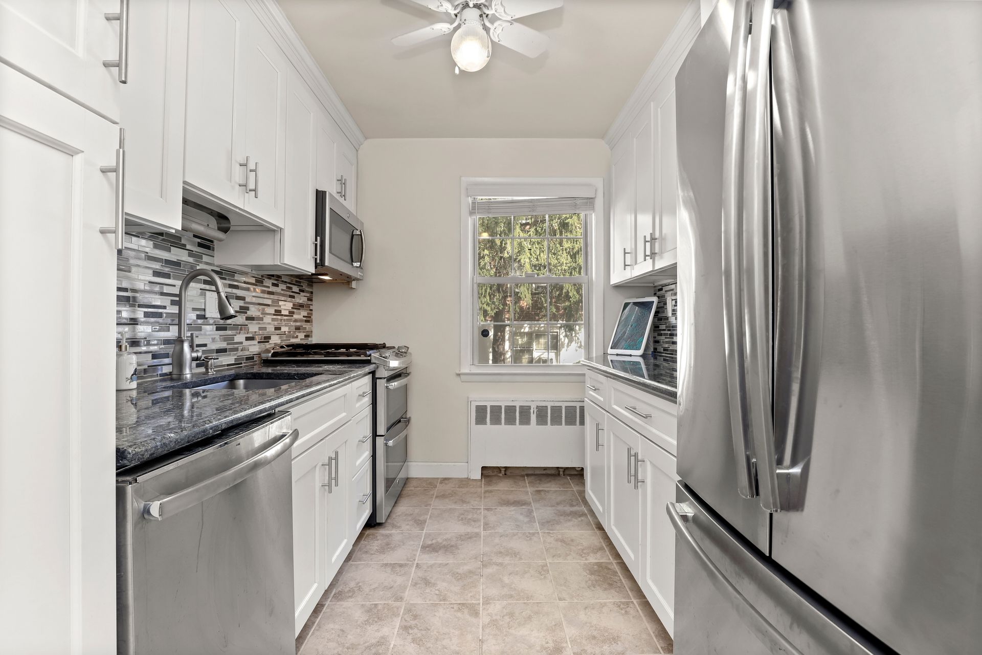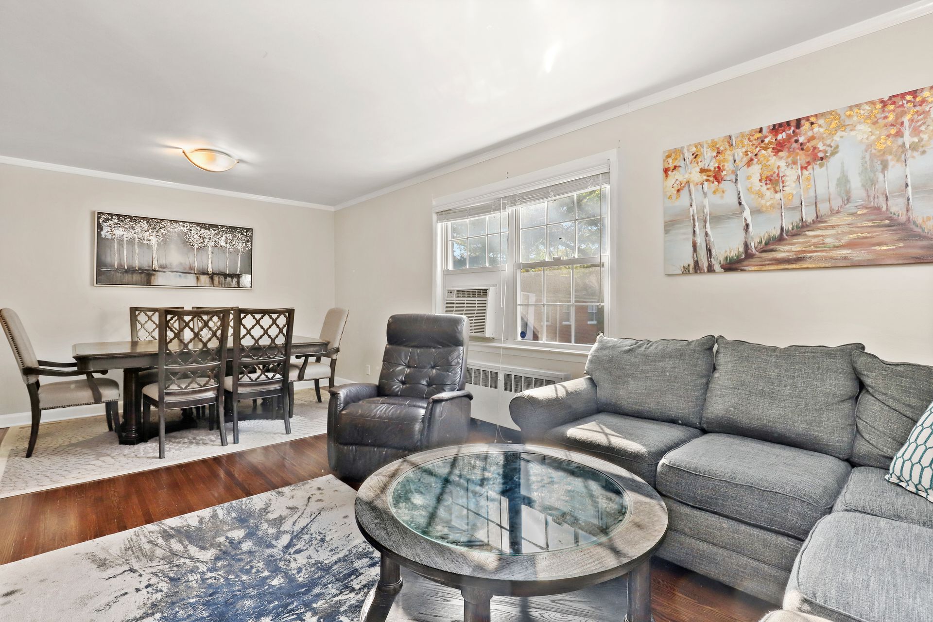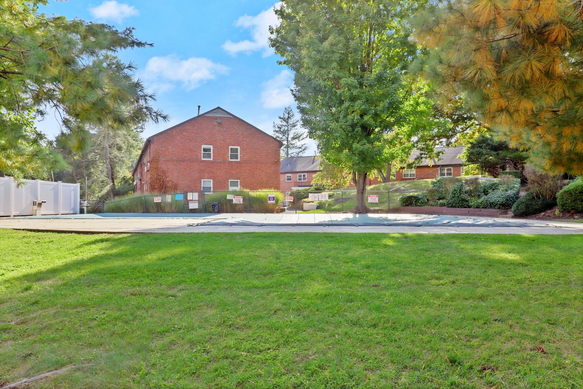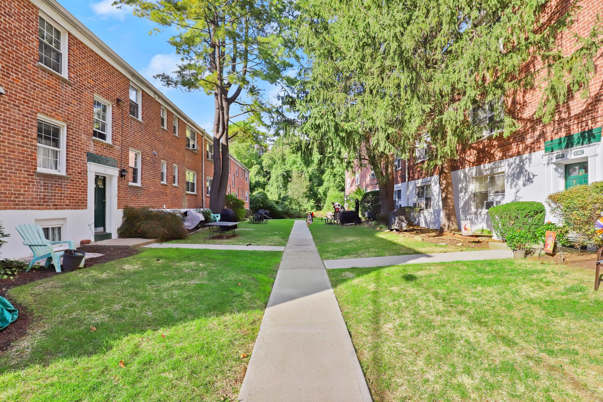 Desirable first floor unit in the Rex Ridge Complex features two bedrooms, two full baths and beautiful hardwood floors. The updated kitchen boasts white wood cabinets, granite counters and tile floor and back splash. Windows front and back let the sun stream in. A large living/dining room can easily accommodate many guests. Main bedroom has two closets and a full bath with shower. Second bedroom is also a nice size. Hall bath has been updated and there is a laundry closet with a stacked washer and dryer. Right outside is a nice area that can be used for outdoor dining and cooking. Enjoy the nearby complex pool for summer fun.