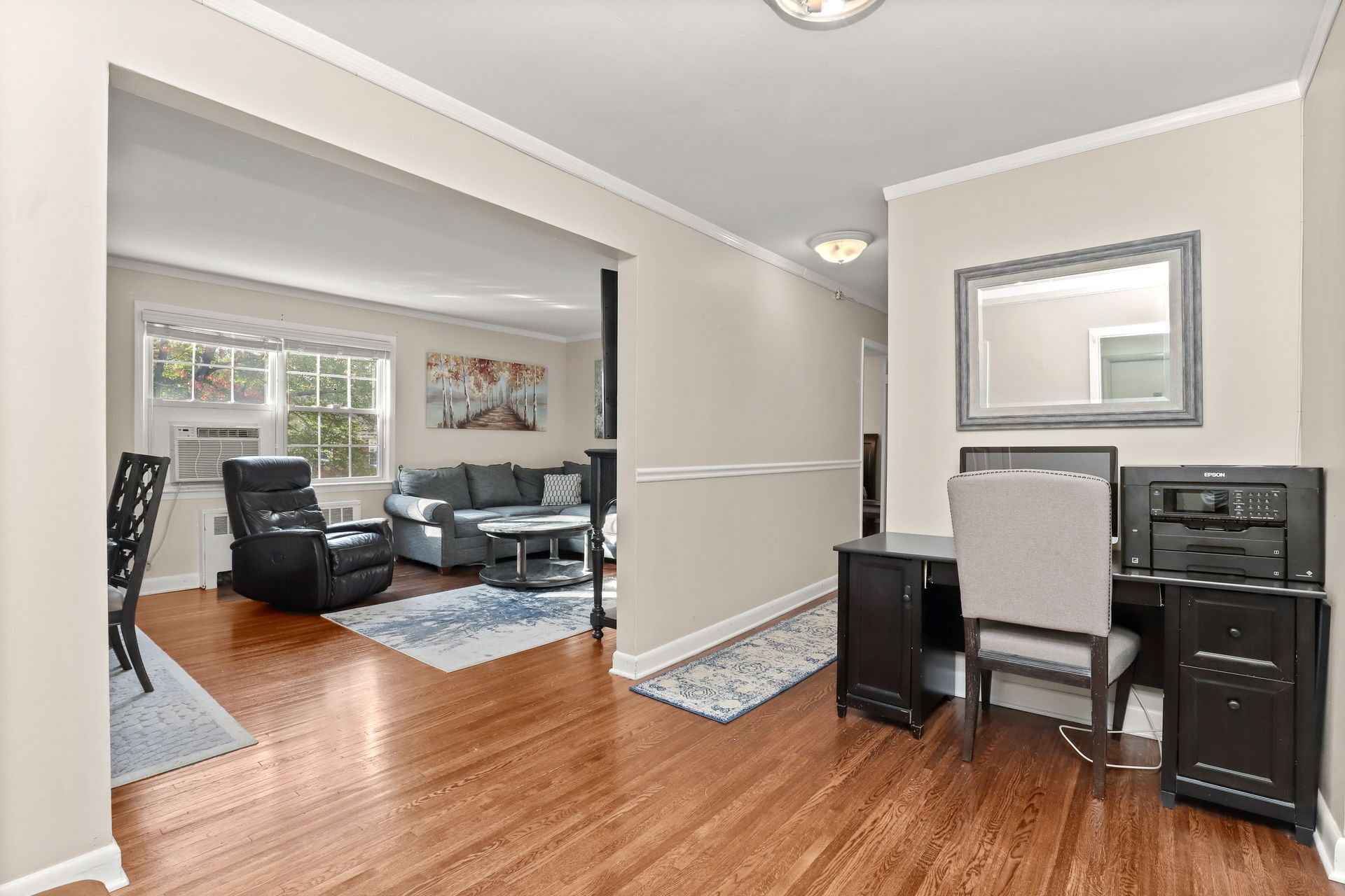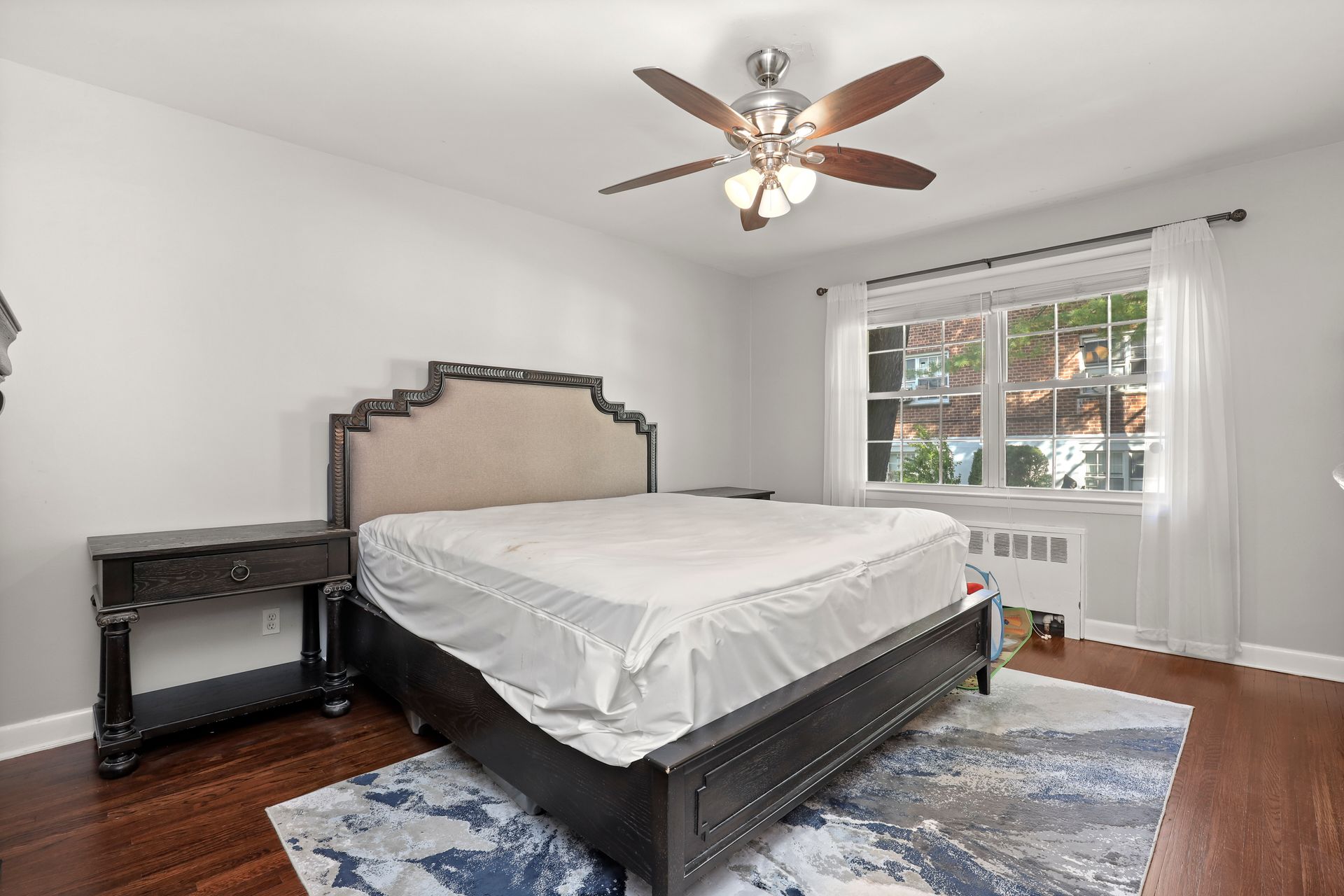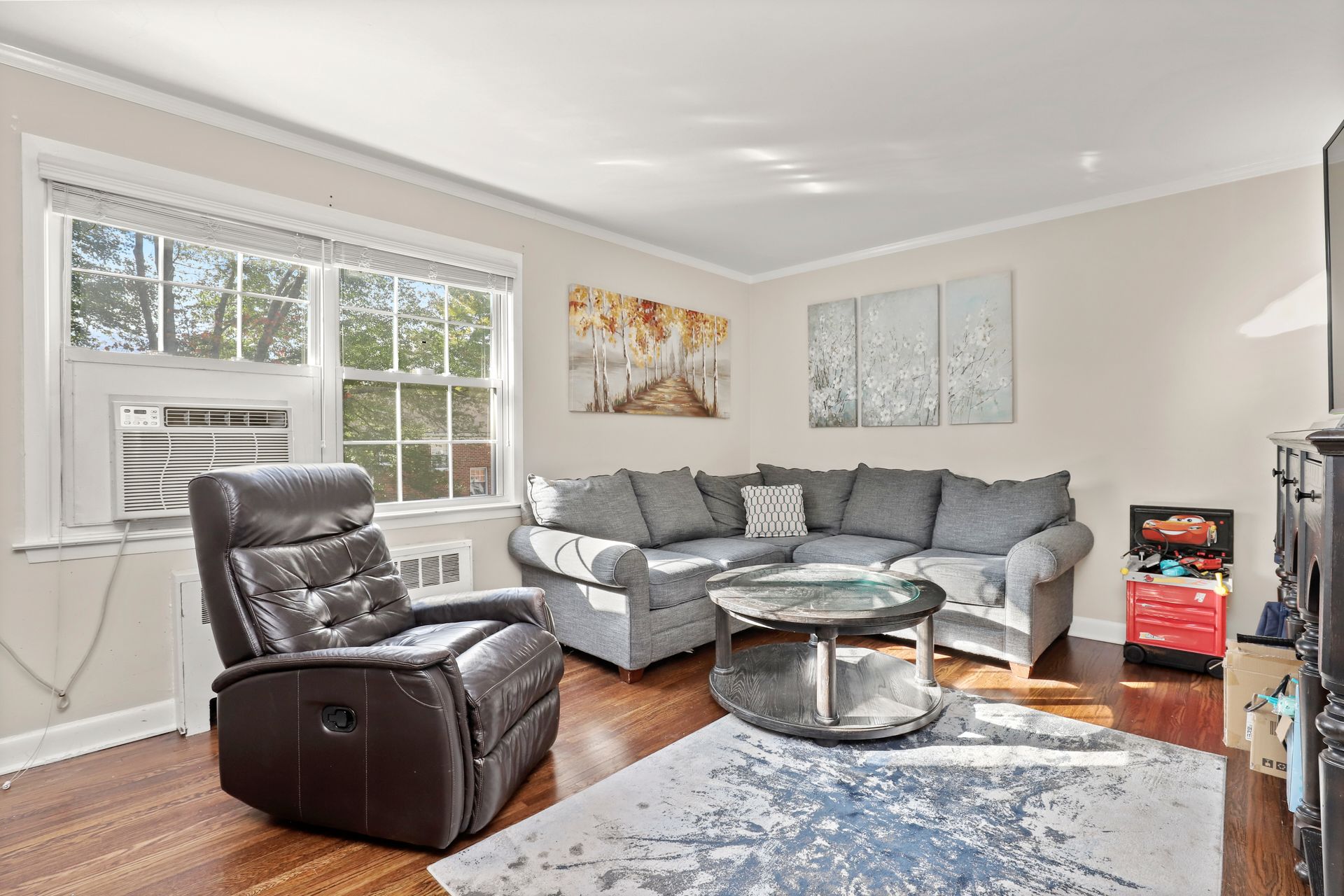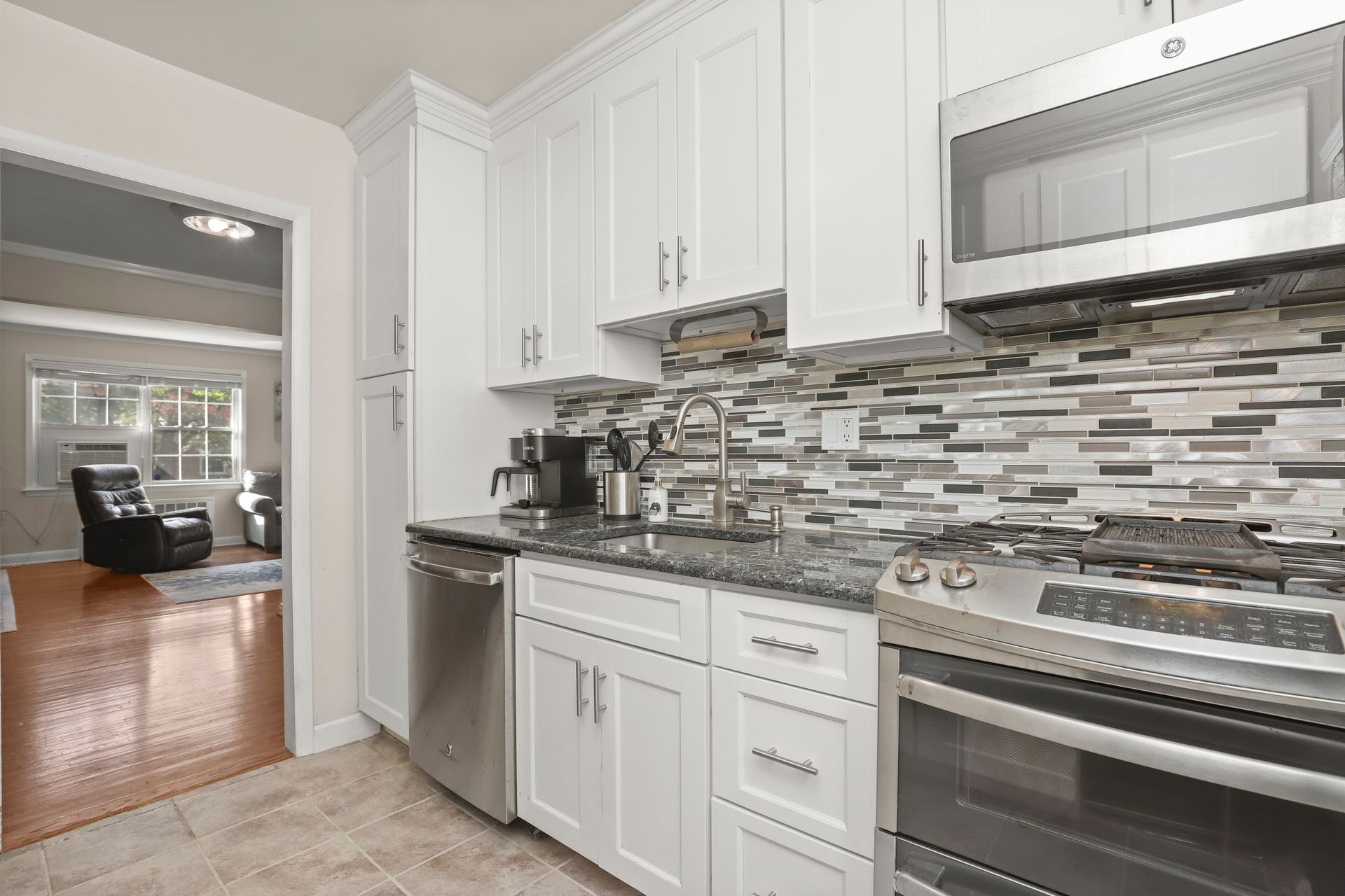 Desirable first floor unit in the Rex Ridge Complex features two bedrooms, two full baths and beautiful hardwood floors. The updated kitchen boasts white wood cabinets, granite counters and tile floor and back splash. Windows front and back let the sun stream in. A large living/dining room can easily accommodate many guests. Main bedroom has two closets and a full bath with shower. Second bedroom is also a nice size. Hall bath has been updated and there is a laundry closet with a stacked washer and dryer. Right outside is a nice area that can be used for outdoor dining and cooking. Enjoy the nearby complex pool for summer fun.
