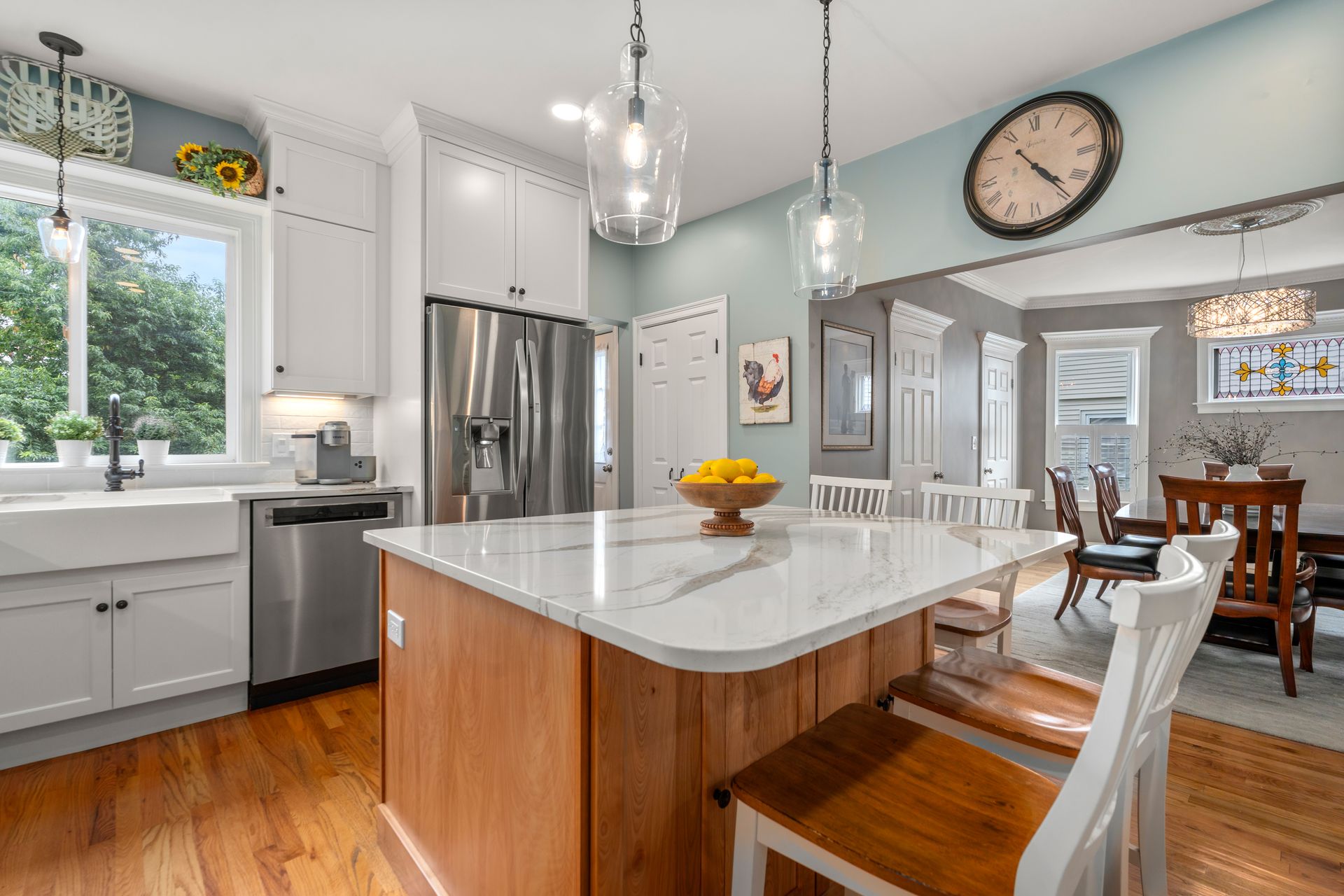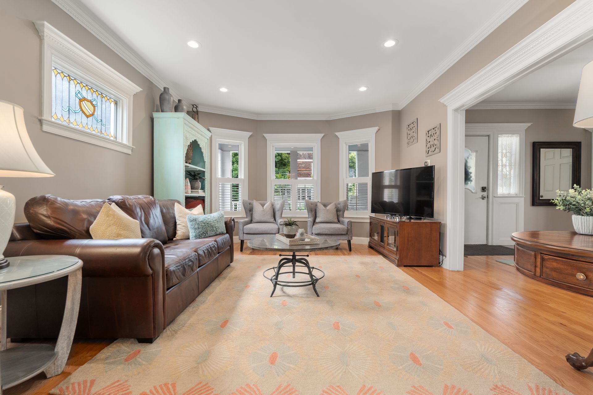 Discover timeless elegance in this Colonial from the Victorian Era, where a grand foyer and stained-glass windows welcome you. Completely renovated down to the studs in 2013, this home features new HVAC systems, roof, windows and blown foam insulation, all beautifully maintained with pride of ownership. The open floor plan flows into a NEW KITCHEN (2023) with custom cabinetry and generous island adjacent to a large dining room with butler’s pantry, perfect for entertaining. Retreat to the primary suite of rooms with a lovely bathroom, walk in closet and separate office. Or, enjoy the finished lower level with a gas fireplace for fun and entertainment. Detailed wood trim and hardwood floors add character. Outdoors, a private fenced yard with a lovely garden, patio and shed awaits. With six bedrooms and three and a half baths, this home accommodates both large households and guests with ease. Near the train and Melrose Center, it’s the epitome of convenience and charm.